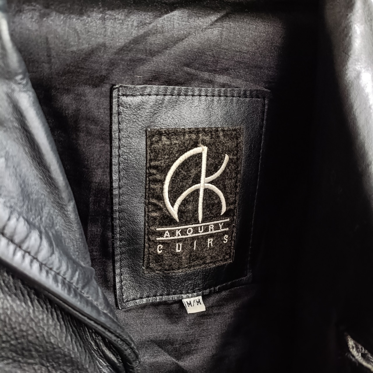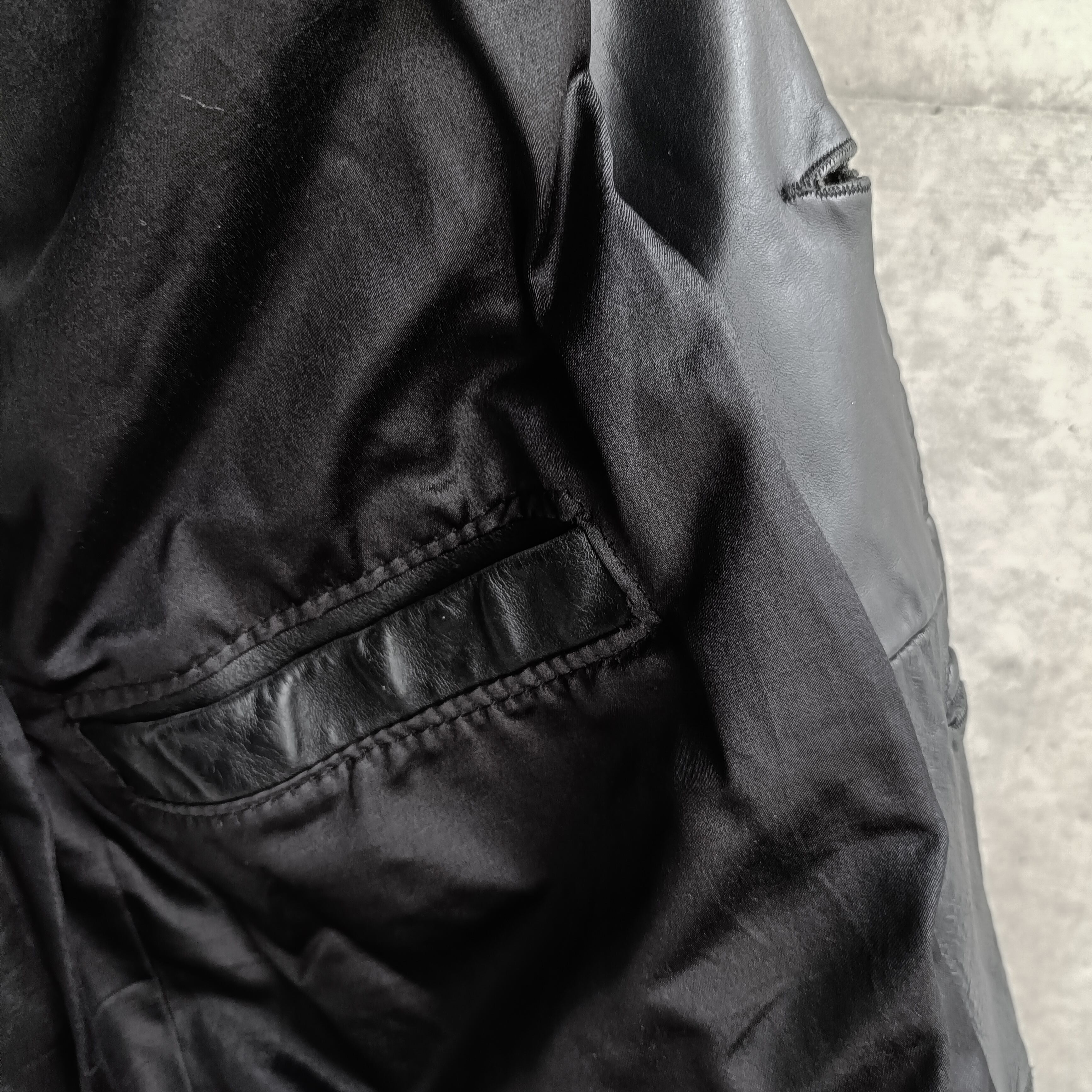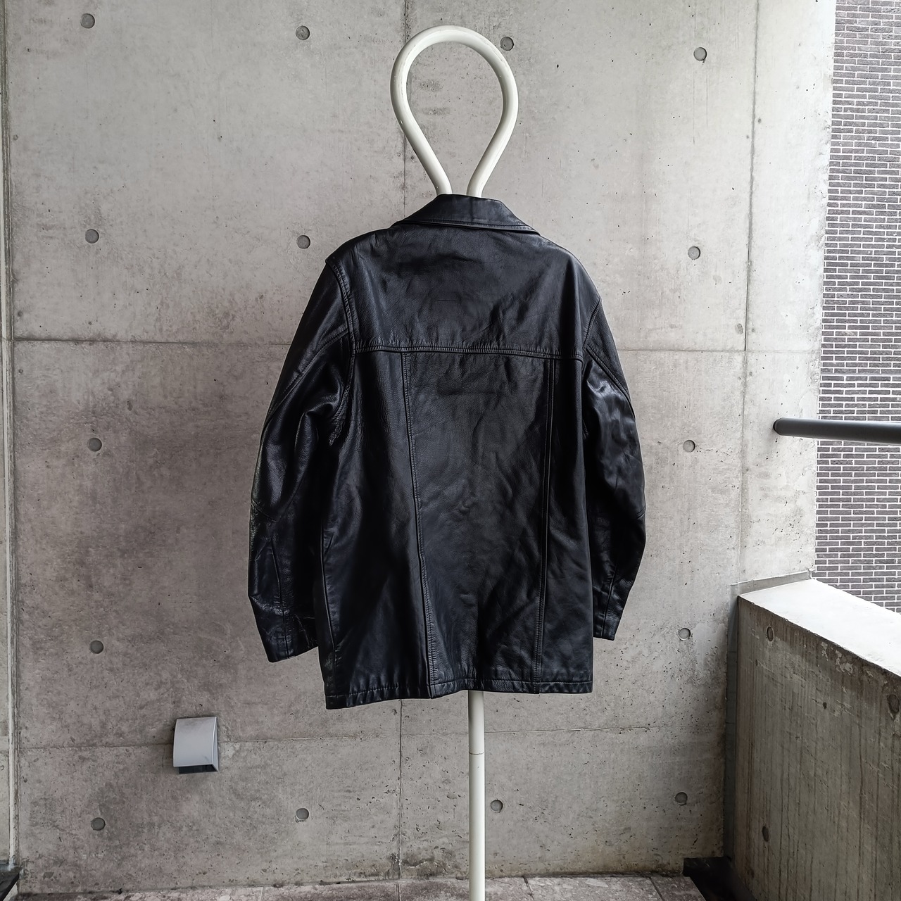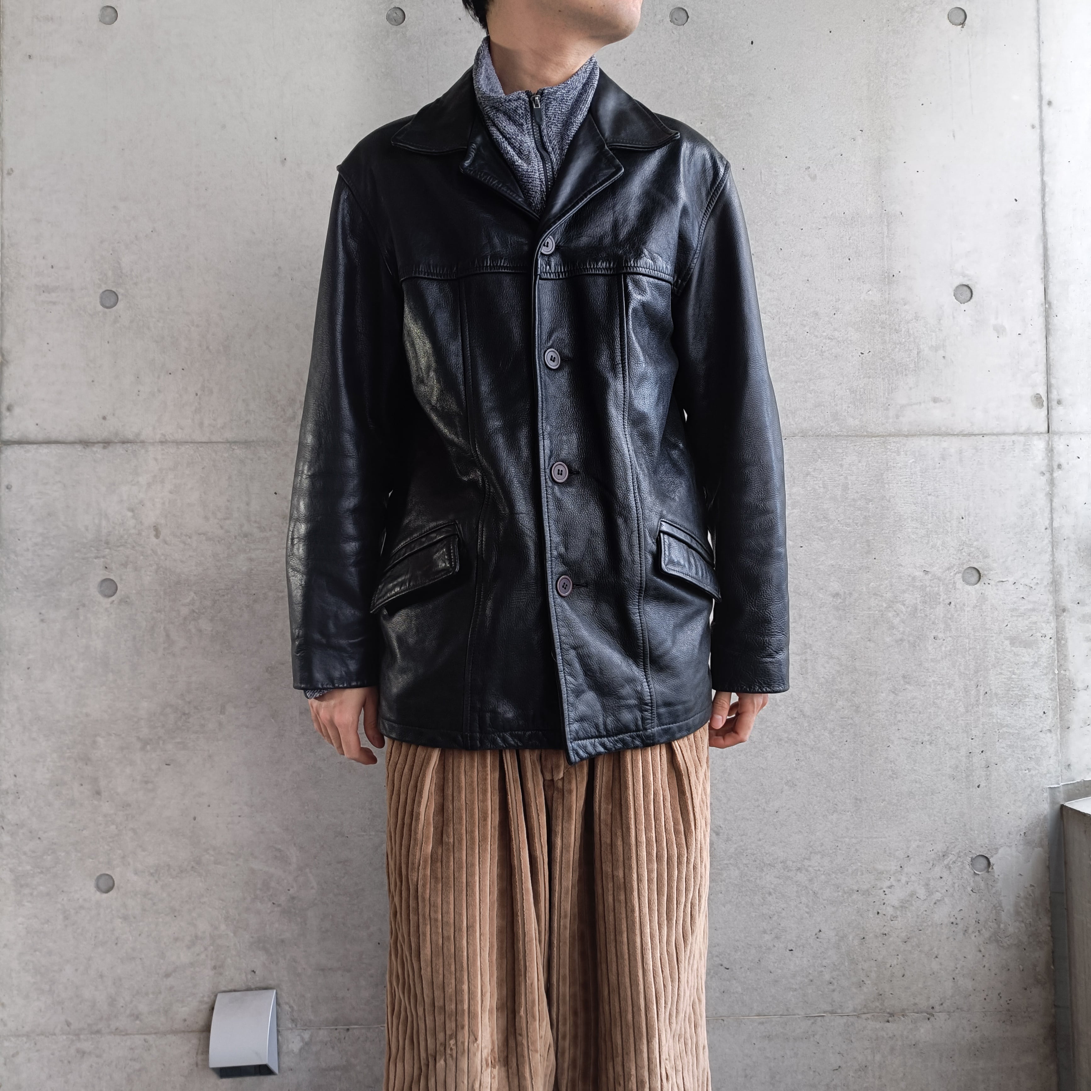 vintage black grained leather tailored coat