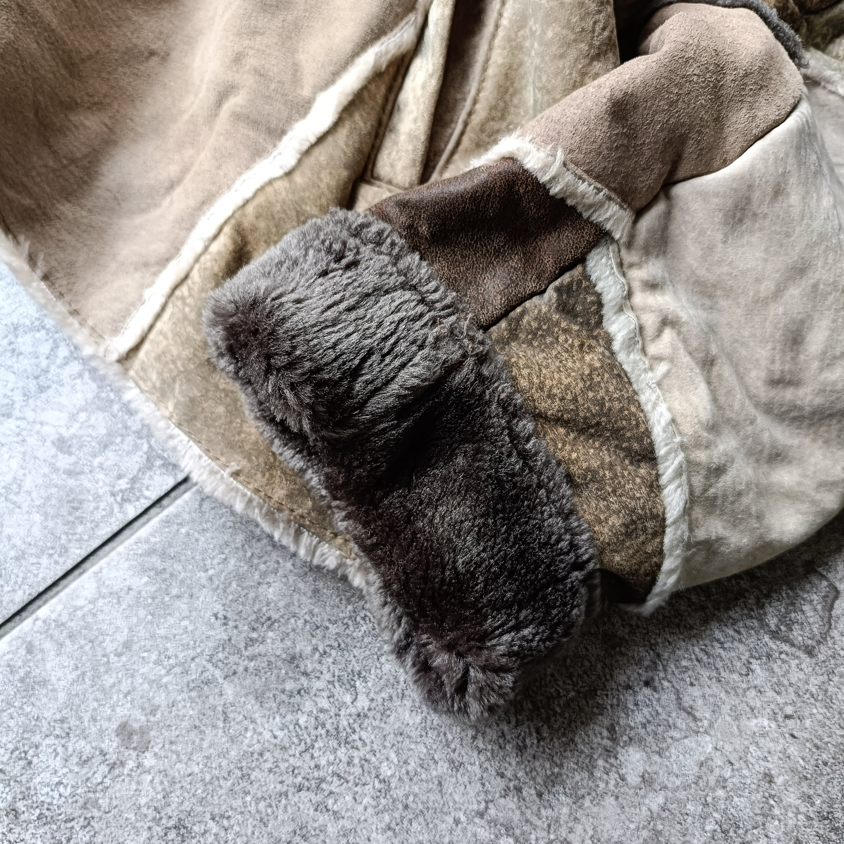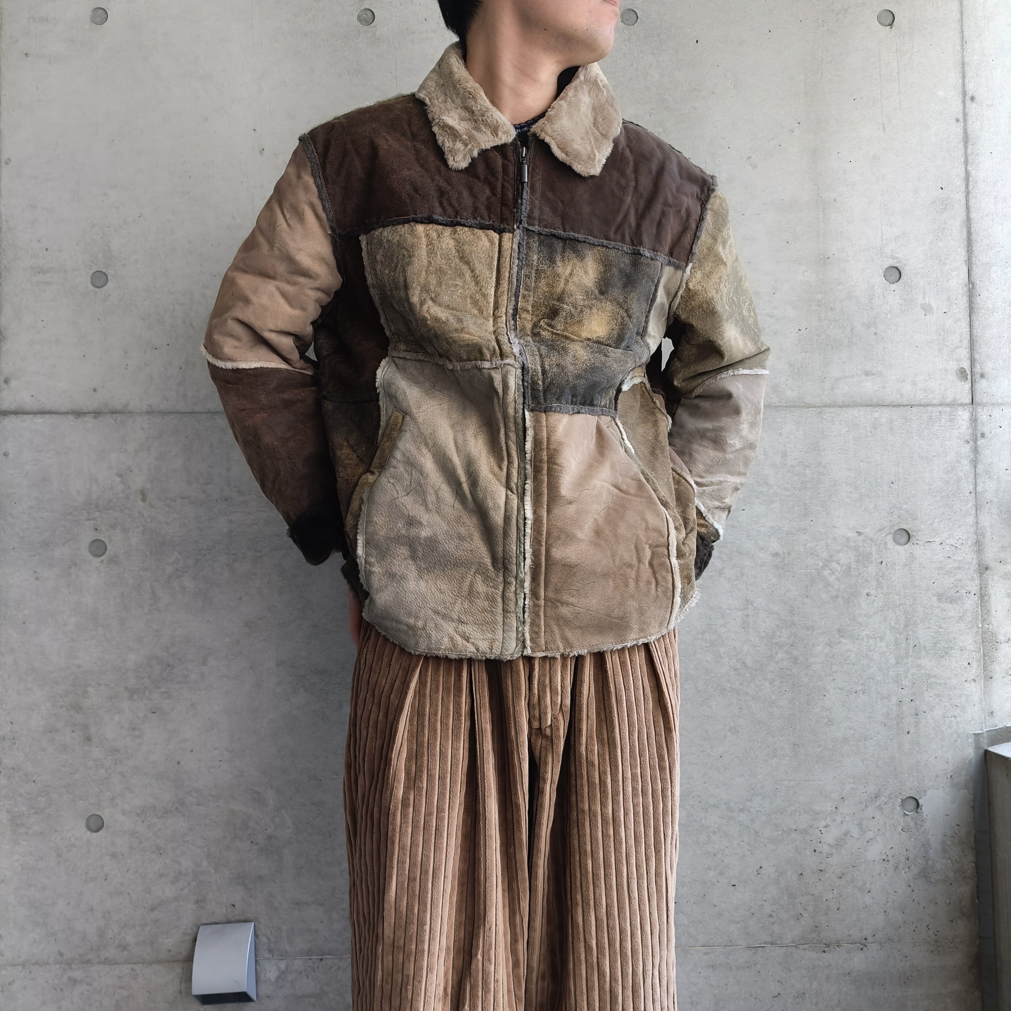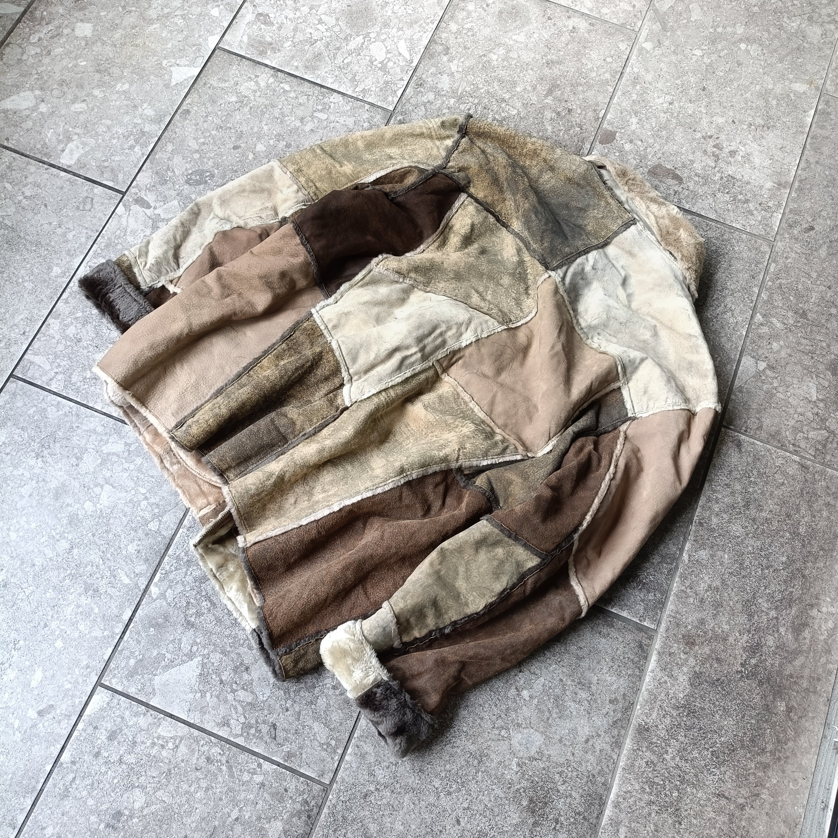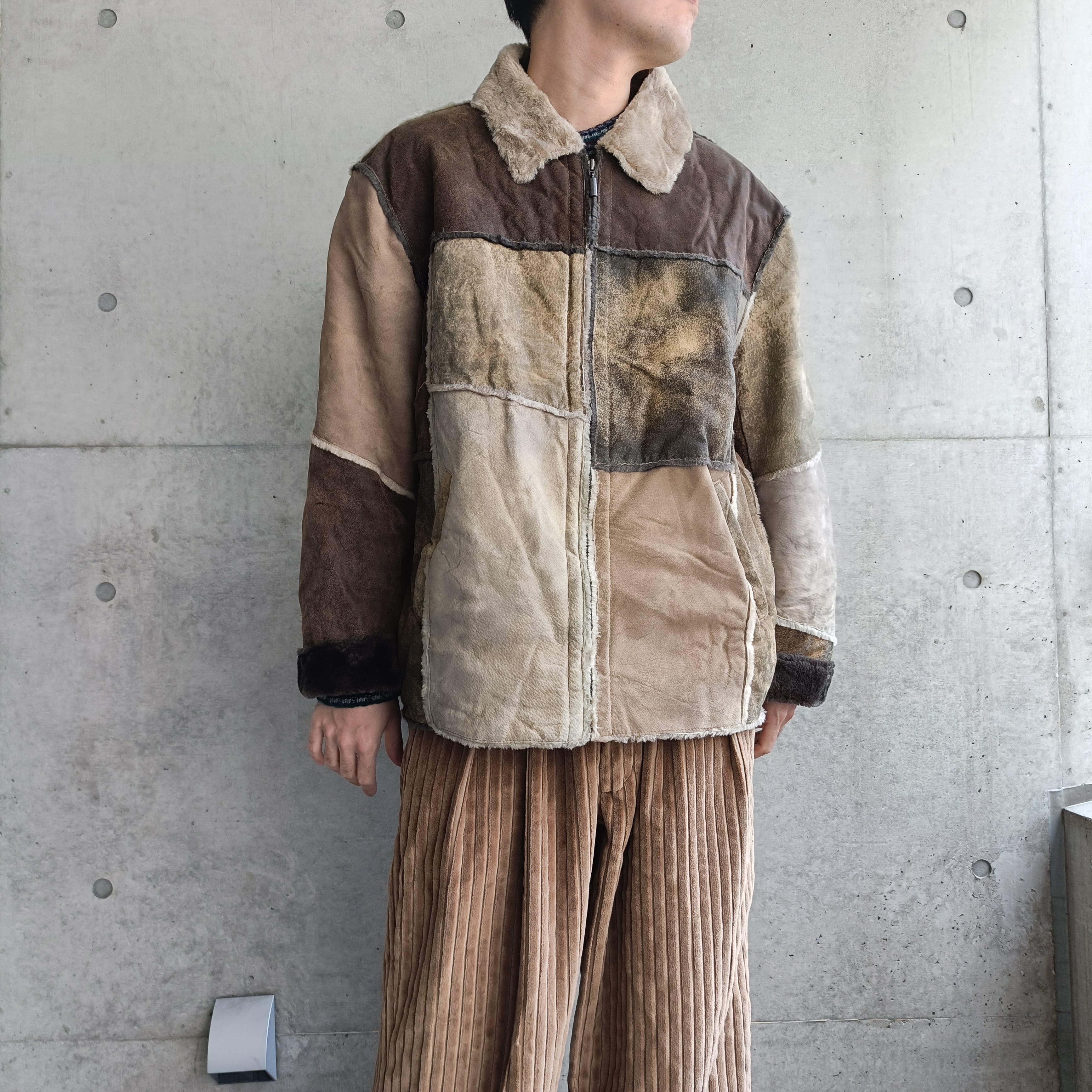 超スペシャル。当店8年で初見なパッチワークでクレイジーパターンのムートン。色んな種類のムートンが組み合わさって豪華です。ダメージ加工されてるムートンもめちゃくちゃいけてます。袖は折り返すとボア仕様。緩く着れるシルエットです。
