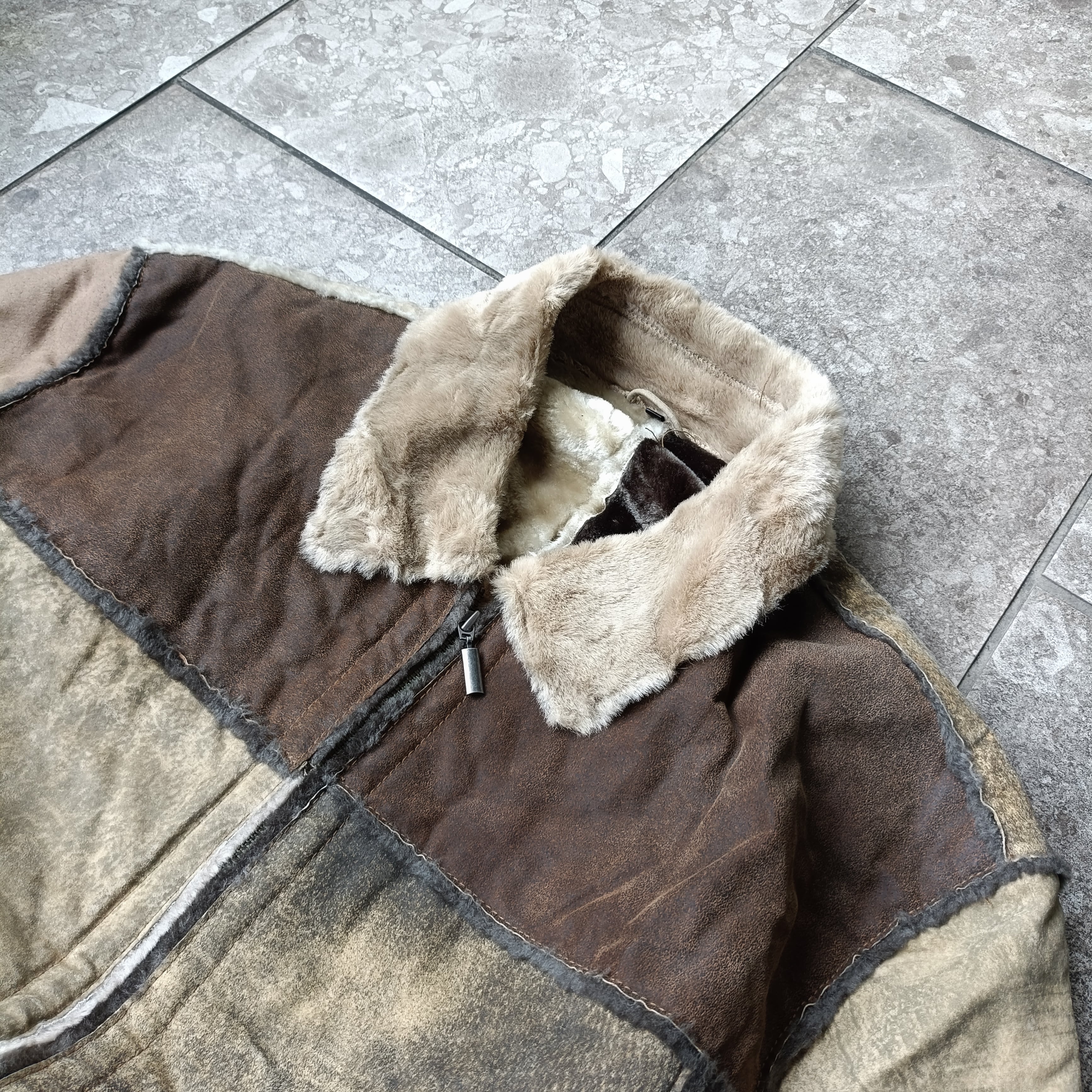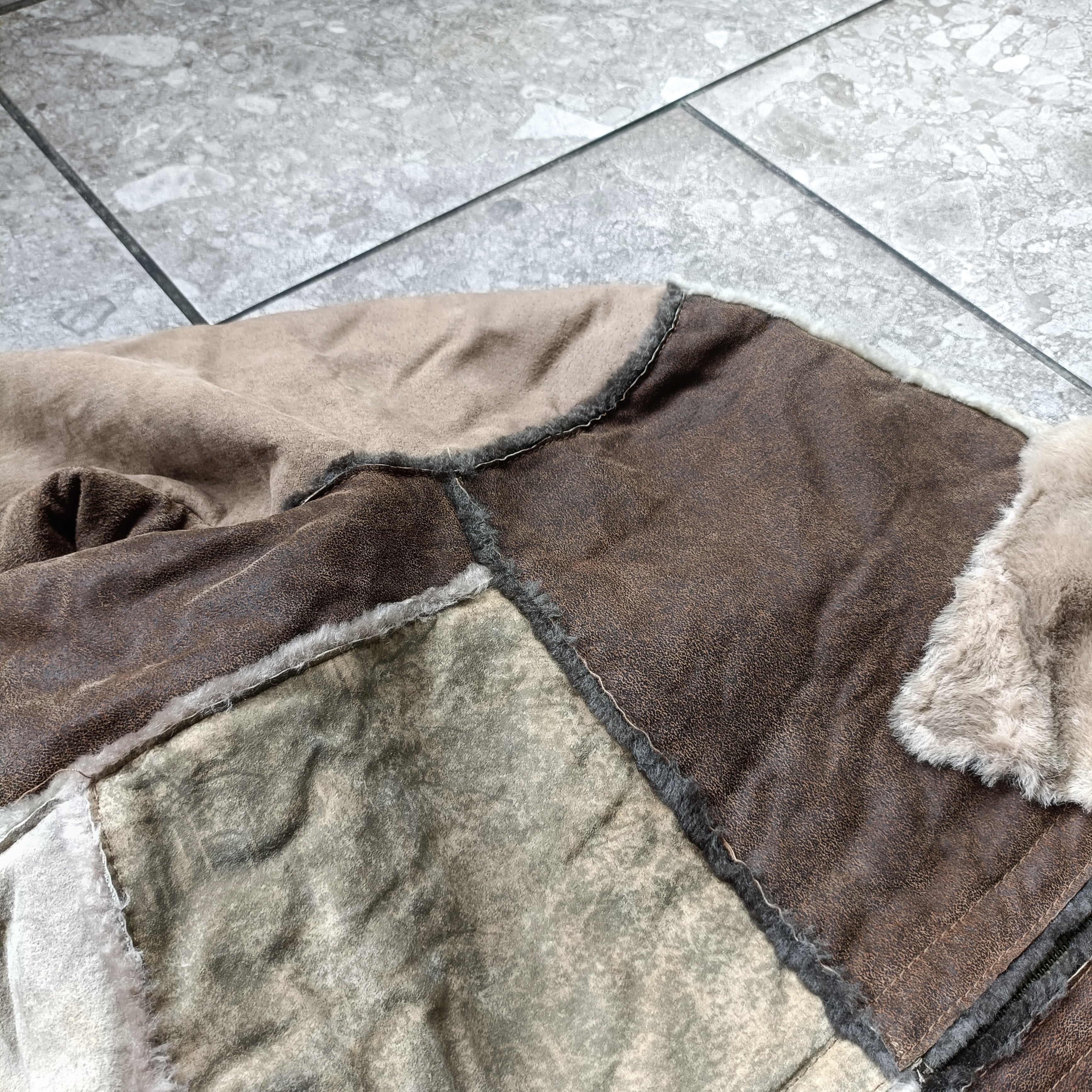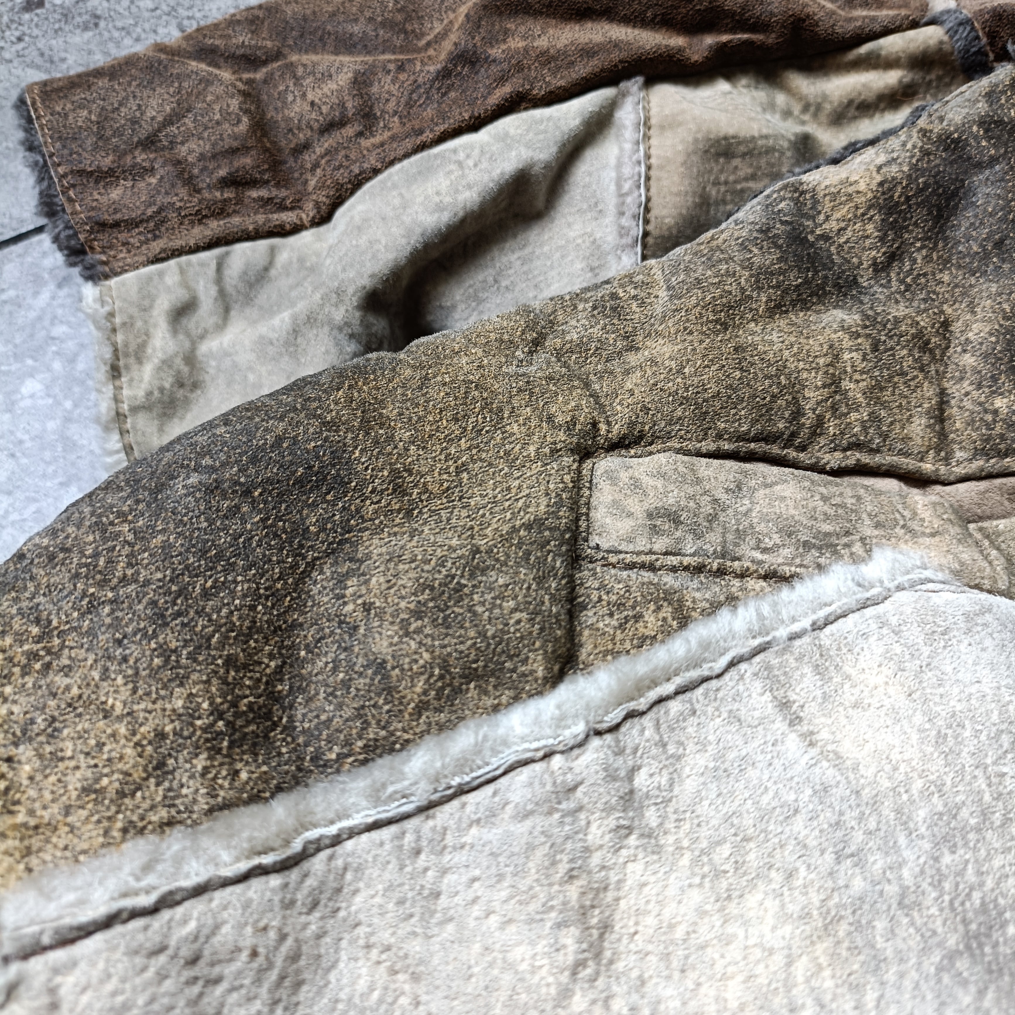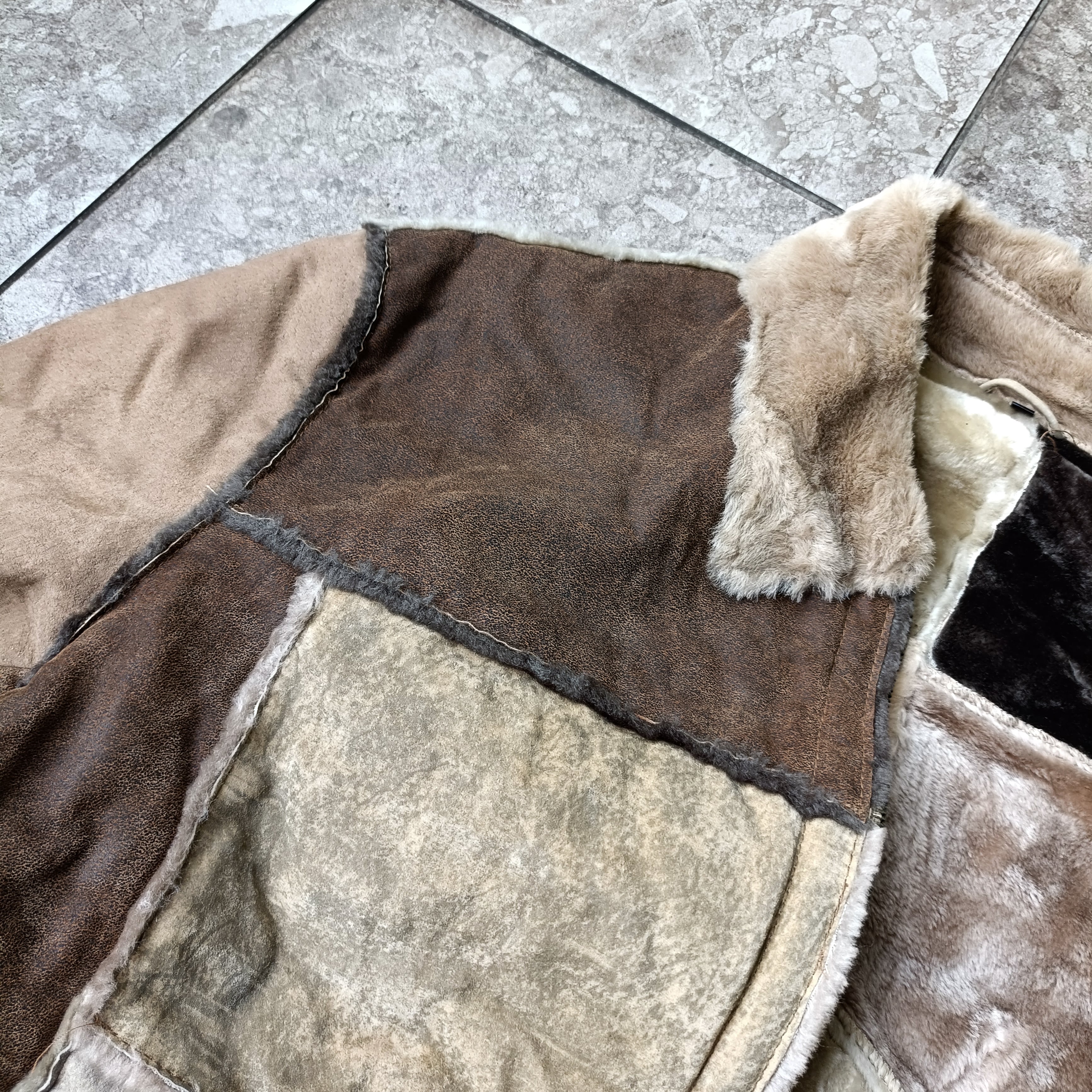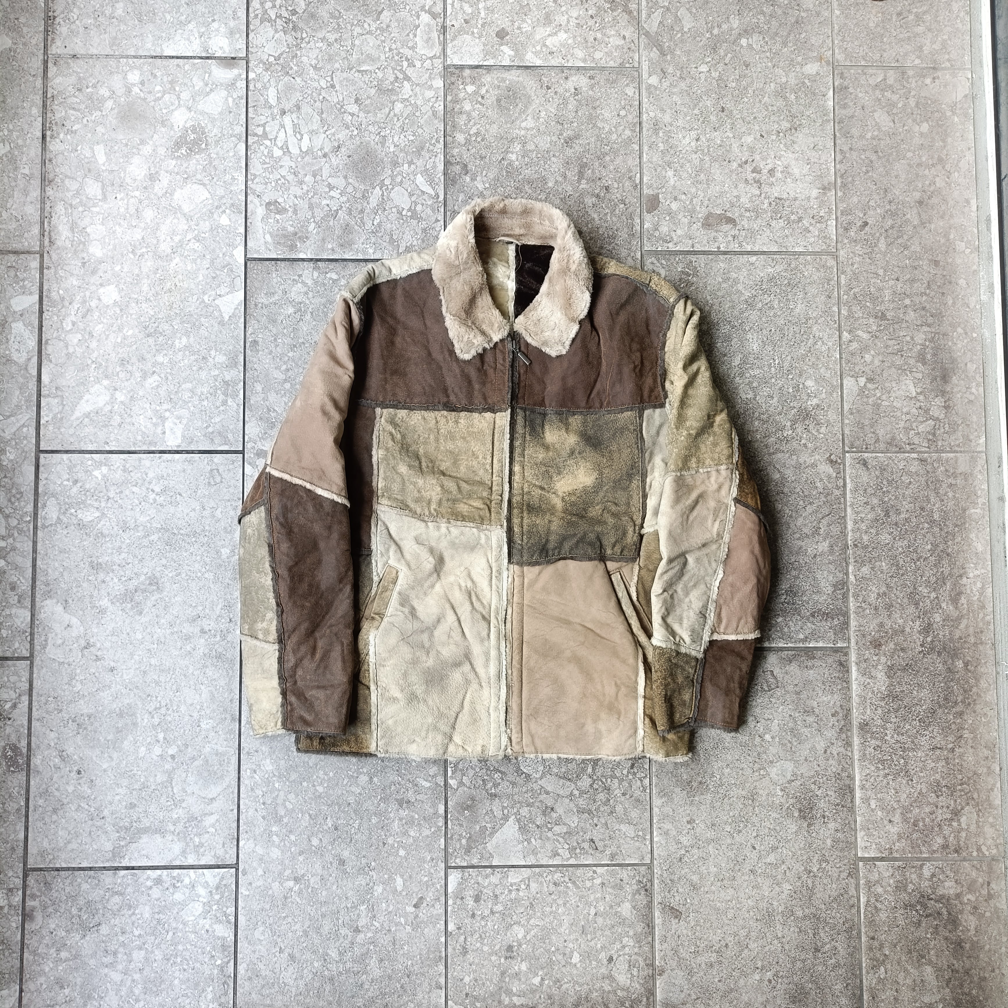 超スペシャル。当店8年で初見なパッチワークでクレイジーパターンのムートン。色んな種類のムートンが組み合わさって豪華です。ダメージ加工されてるムートンもめちゃくちゃいけてます。袖は折り返すとボア仕様。緩く着れるシルエットです。