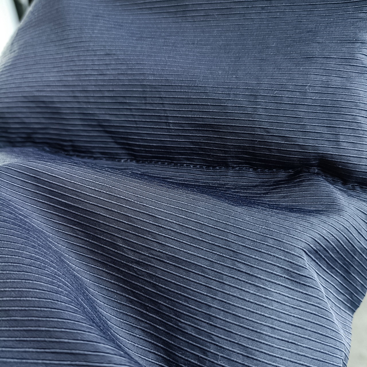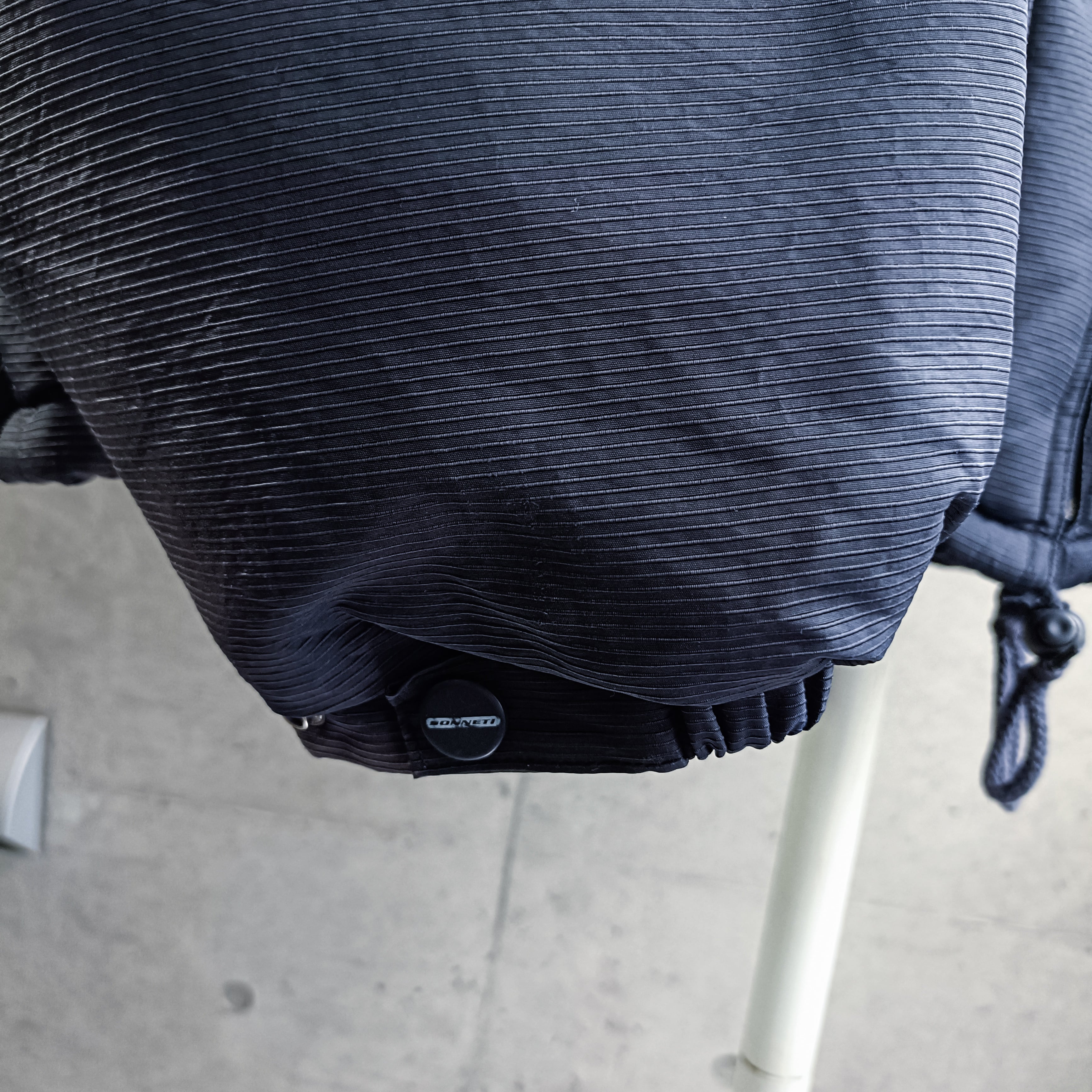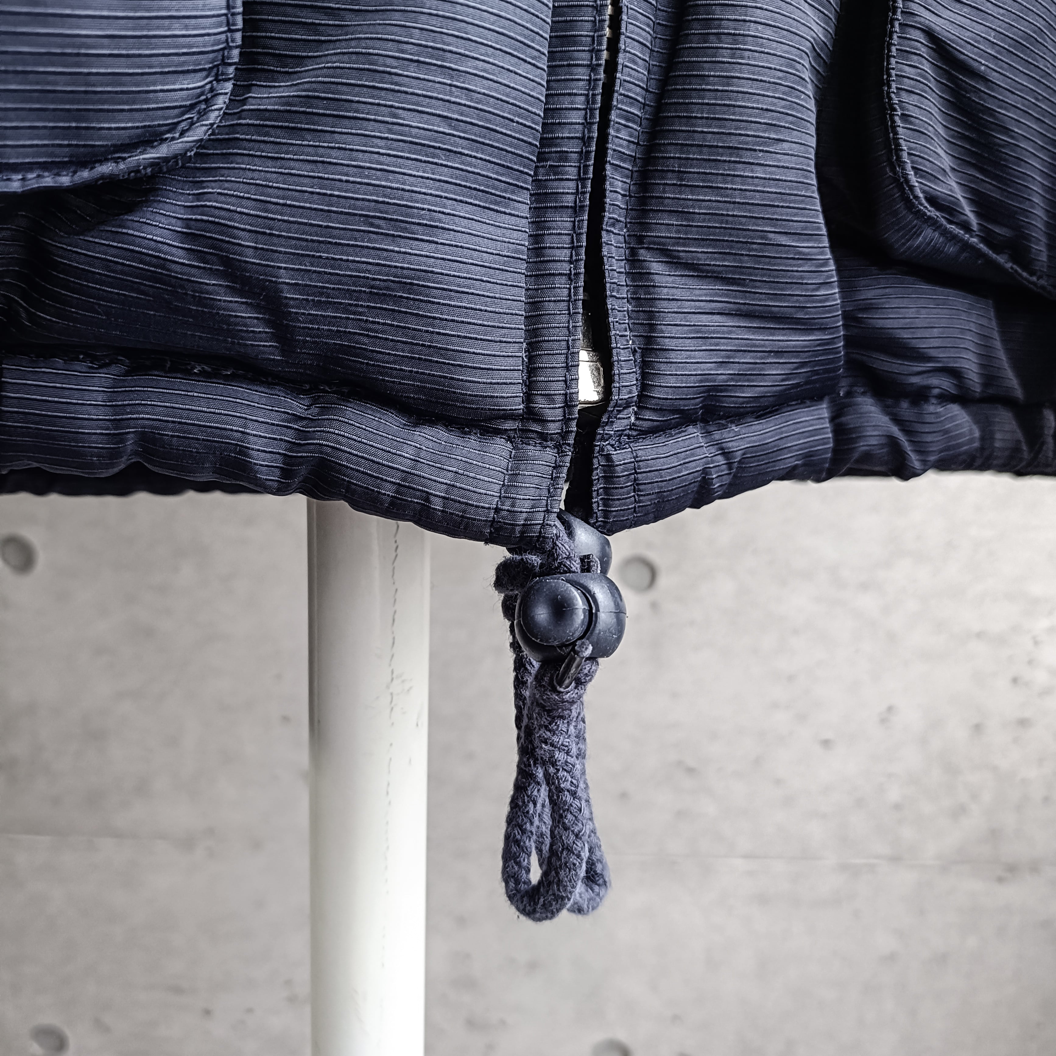 スペシャルファブリックのダウンです。見たことない横に畝が入ったナイロンコーデュロイのようなダウンジャケット。メゾンブランドがするラグジュアリーにダウンを落とし込む時にする生地使いです。ポケットも横から手を突っ込める仕様。シルエットも完璧です。