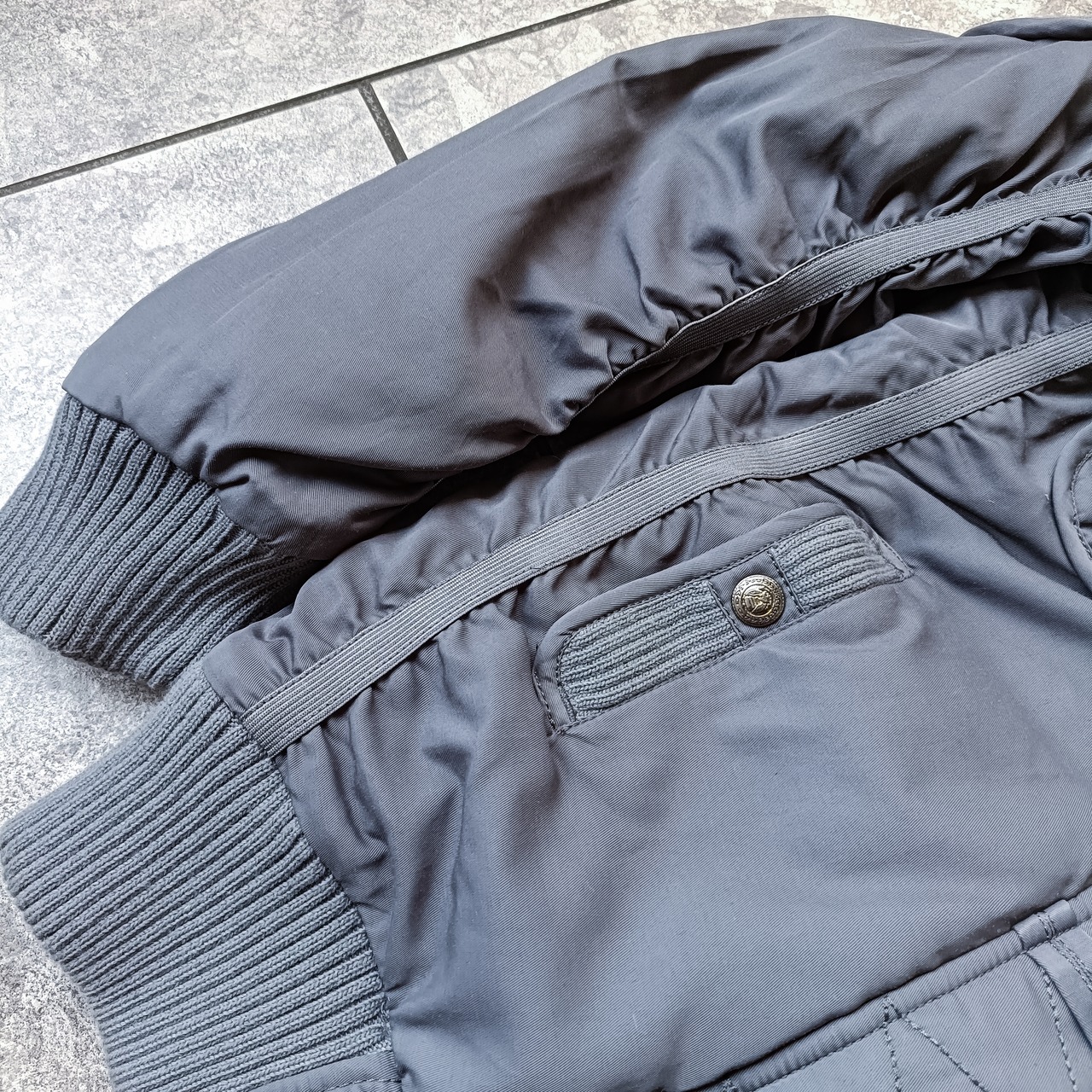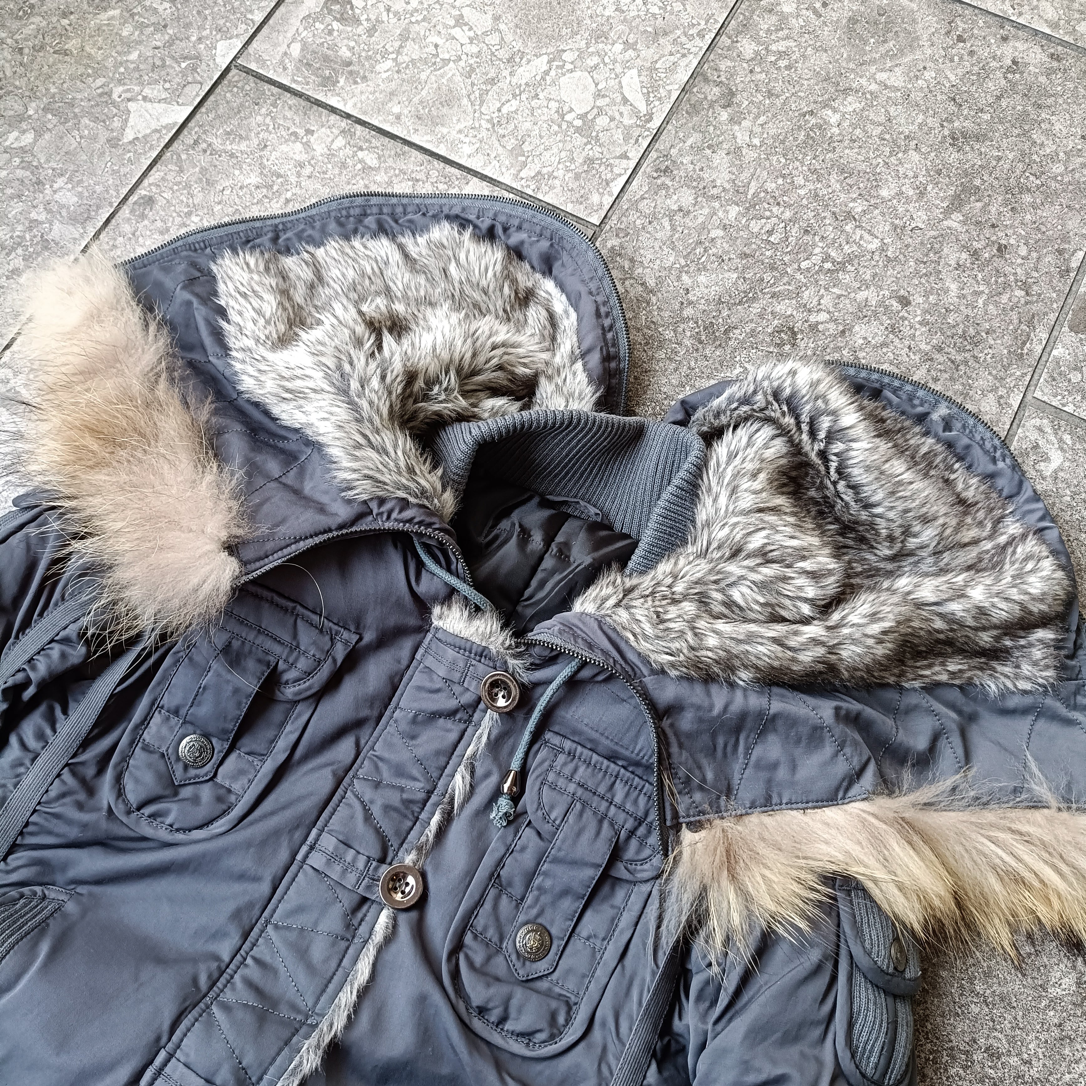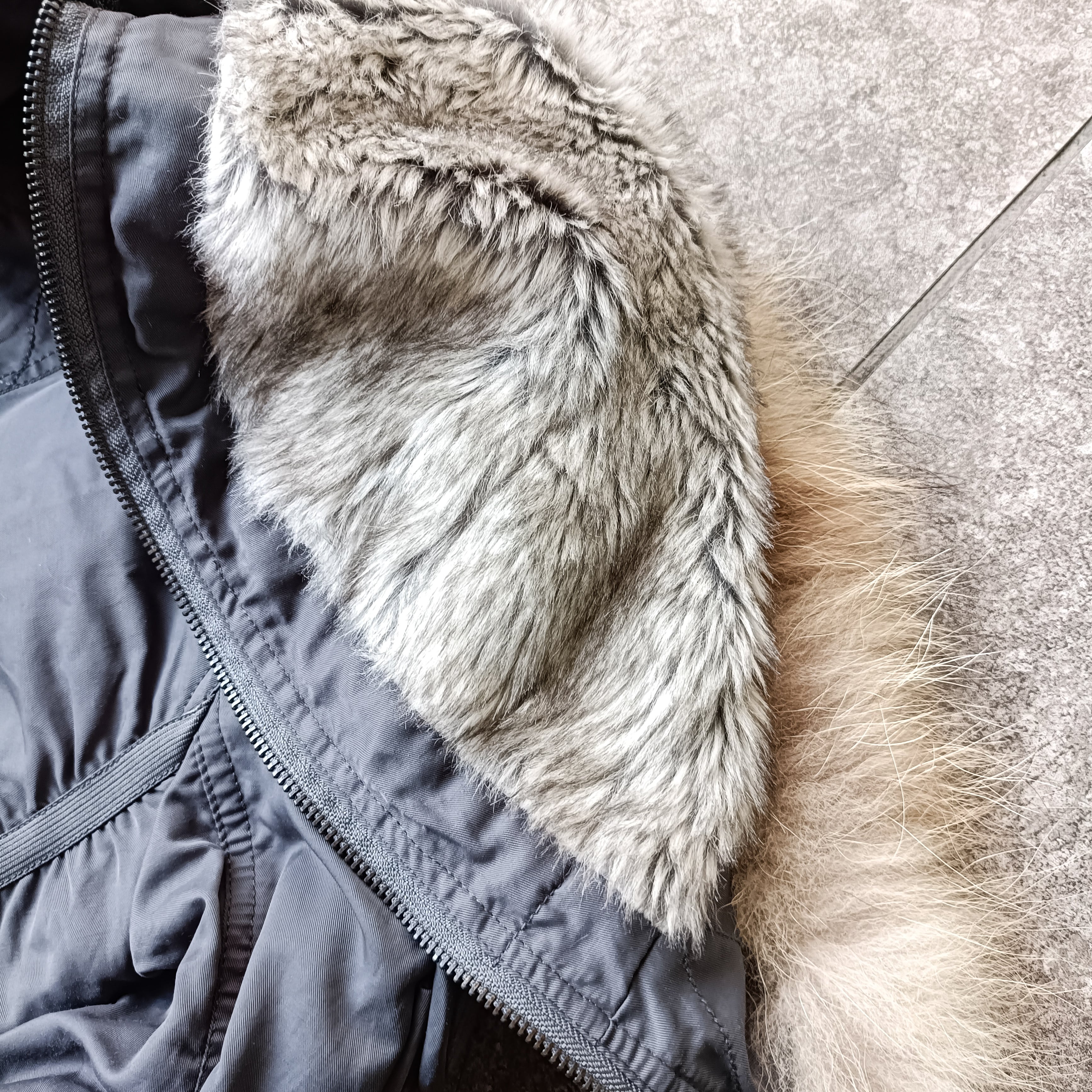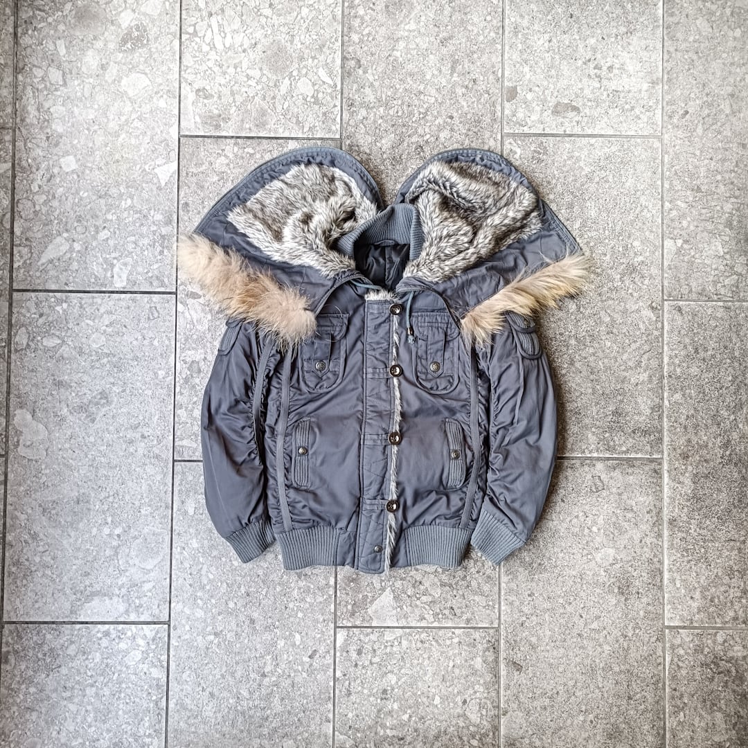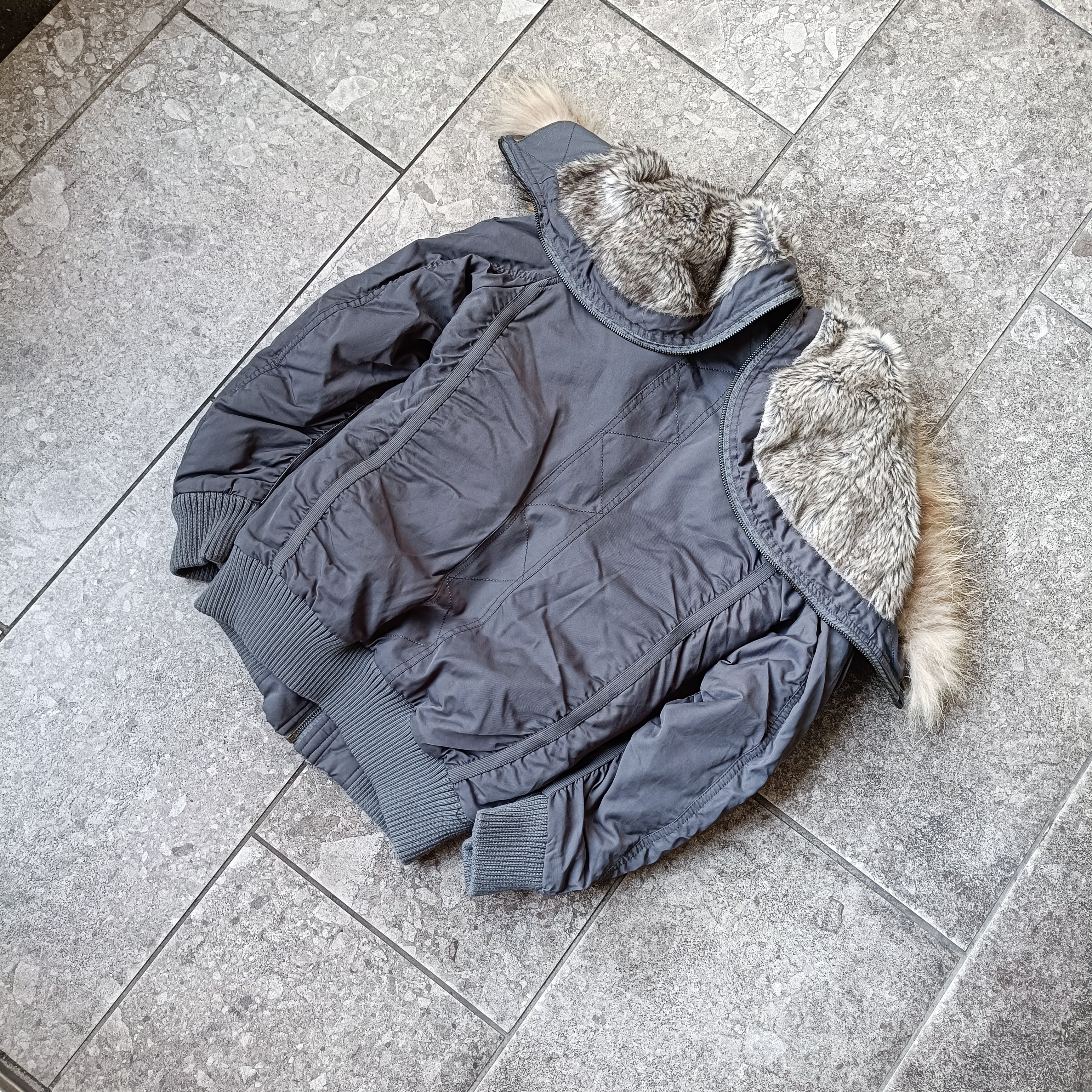 珍しいグレーカラーのN-2Bフライトジャケットの入荷です。しっかりスプリット型のフーディー。前たてもファー付き。細身のメンズ、レディース向けサイズです。
