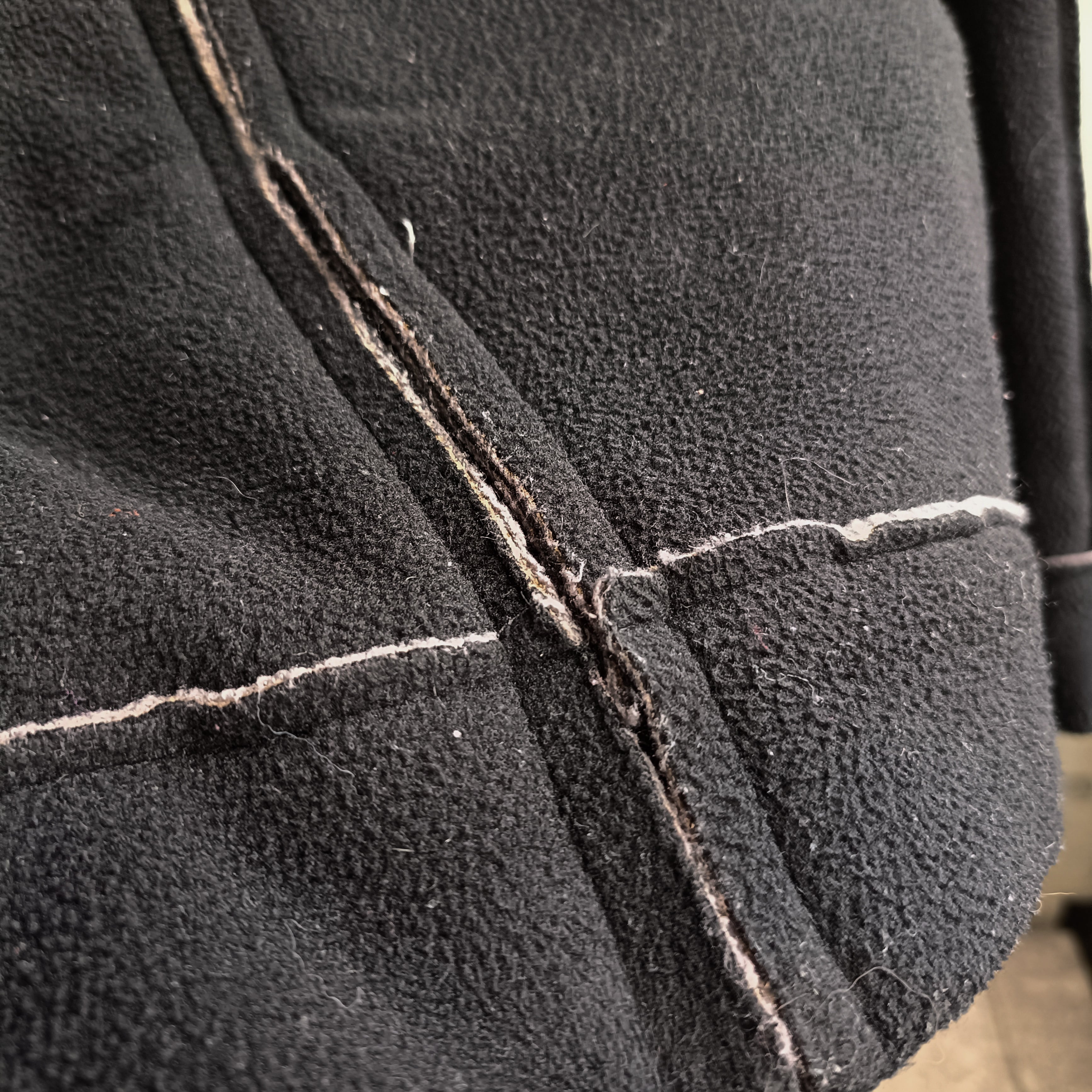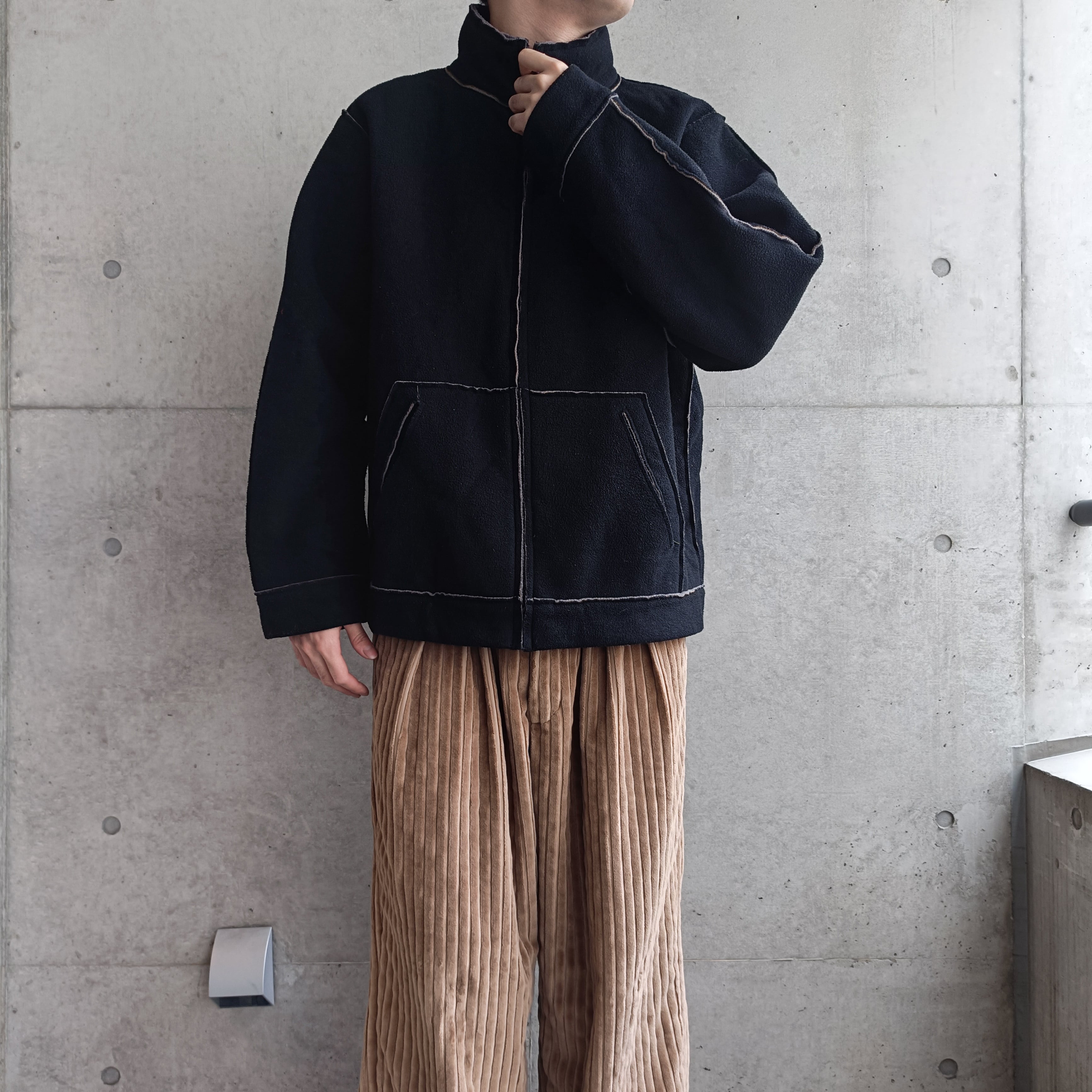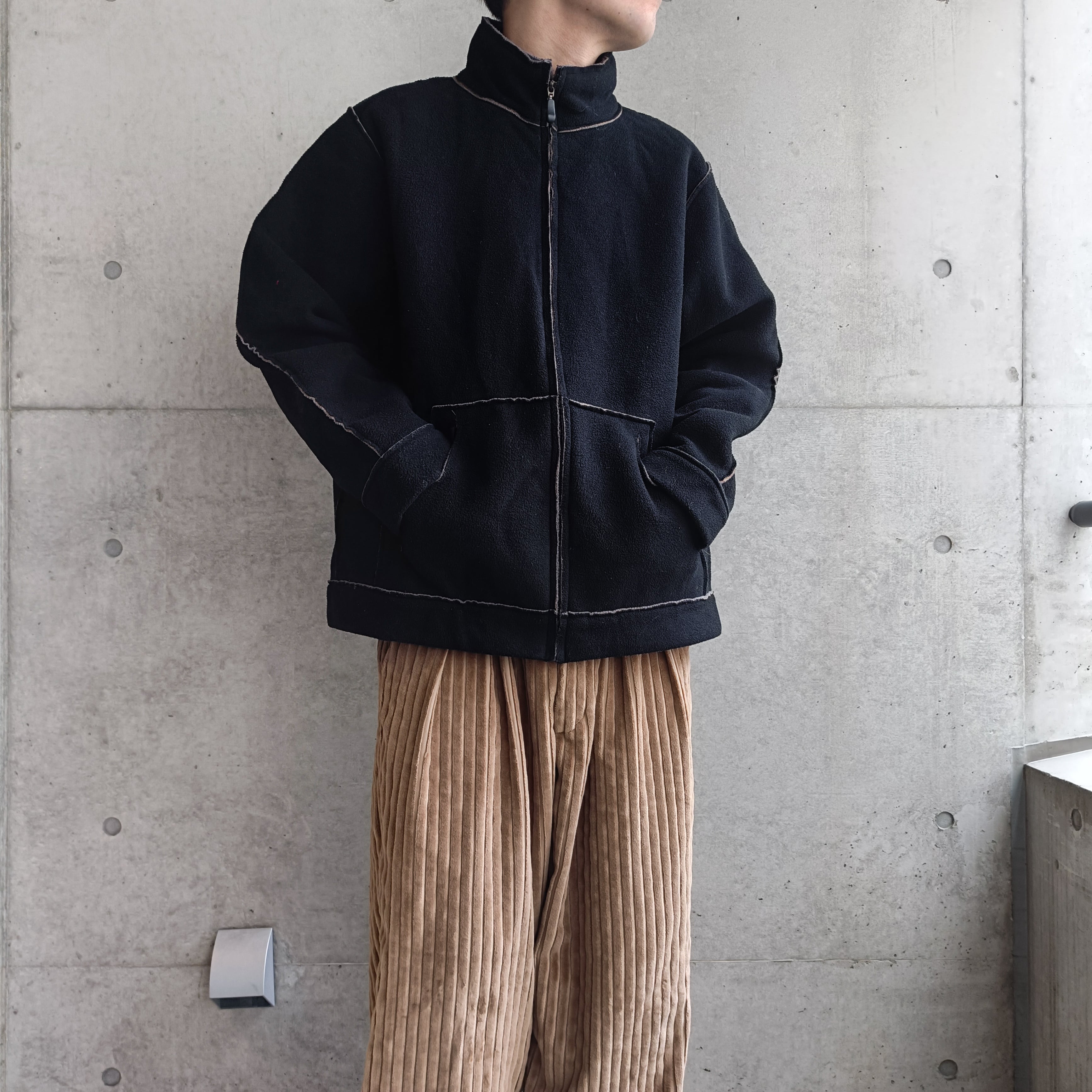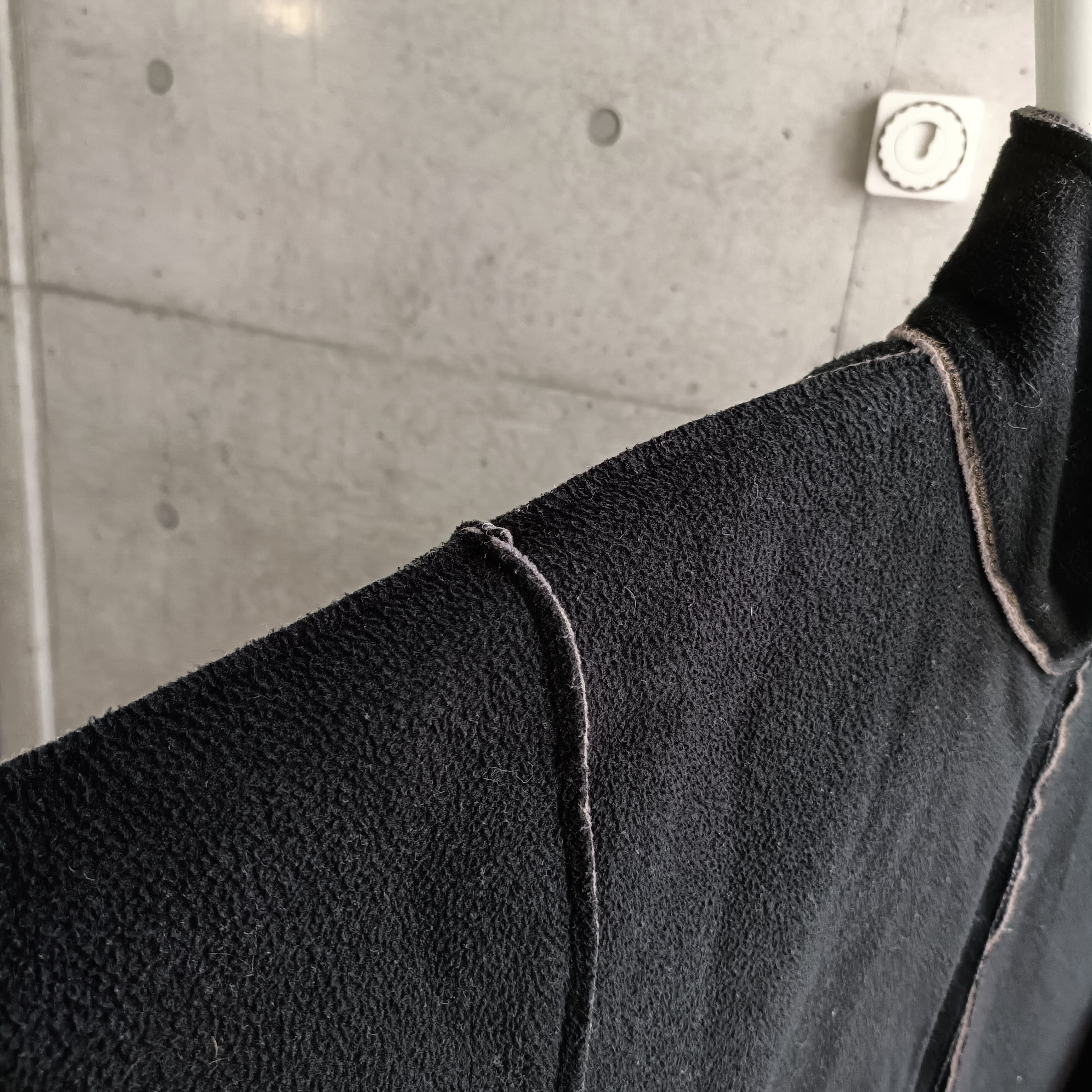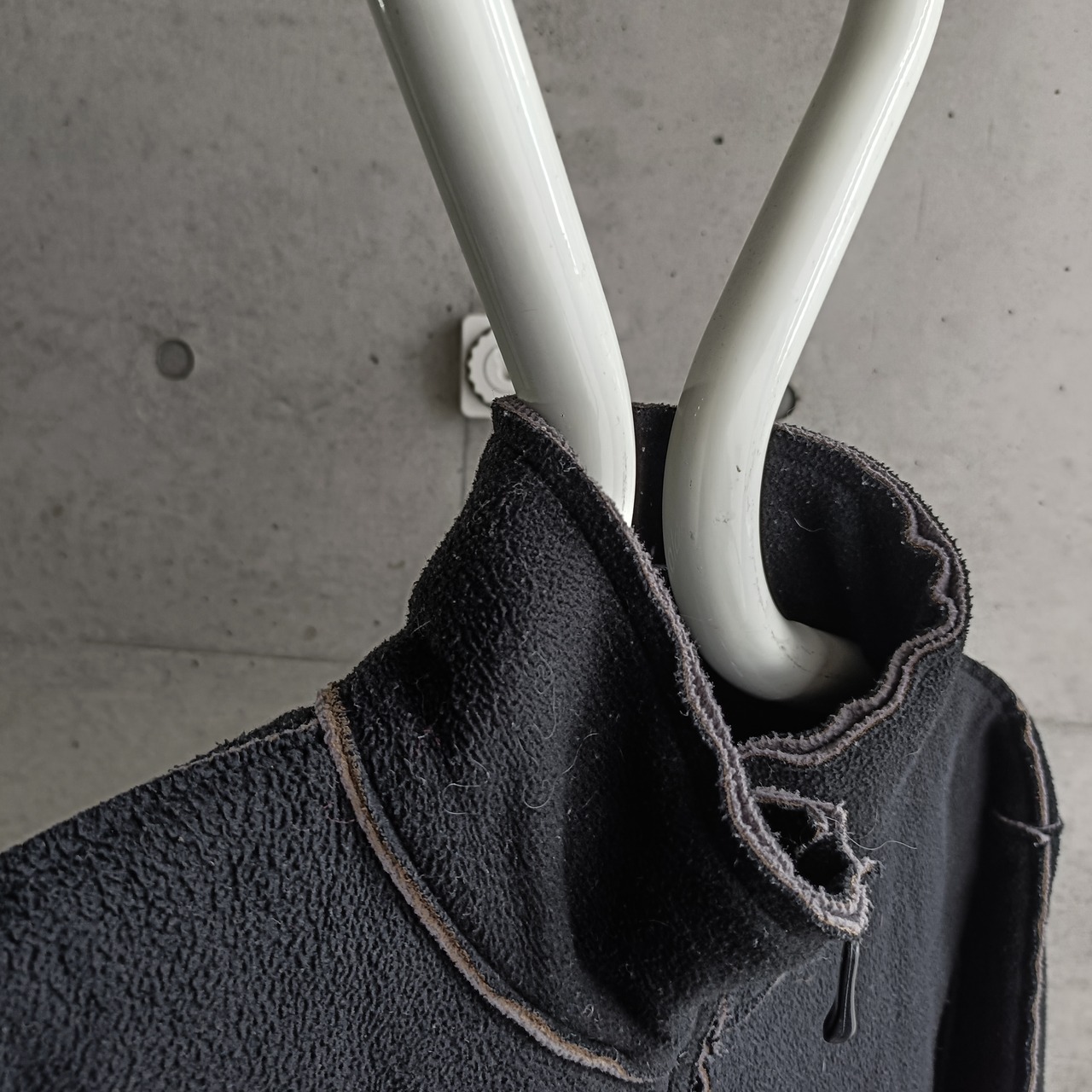 ブラックのフリースジャケット。インサイドアウトで切りっぱなしのようなディテールです。フリースでこういうデザイン効いたのは珍しいです。ザックリ大きめに羽織れるサイズ。