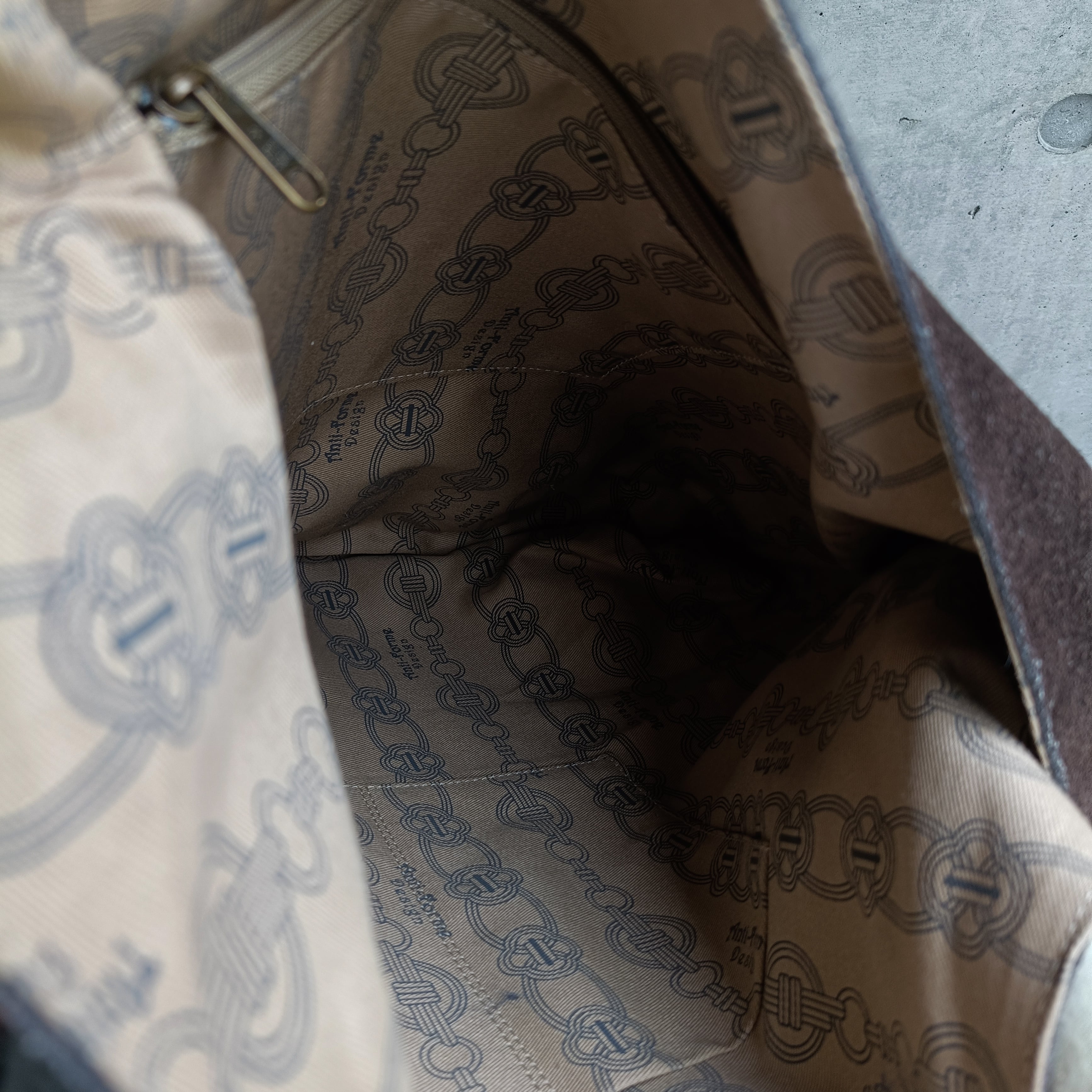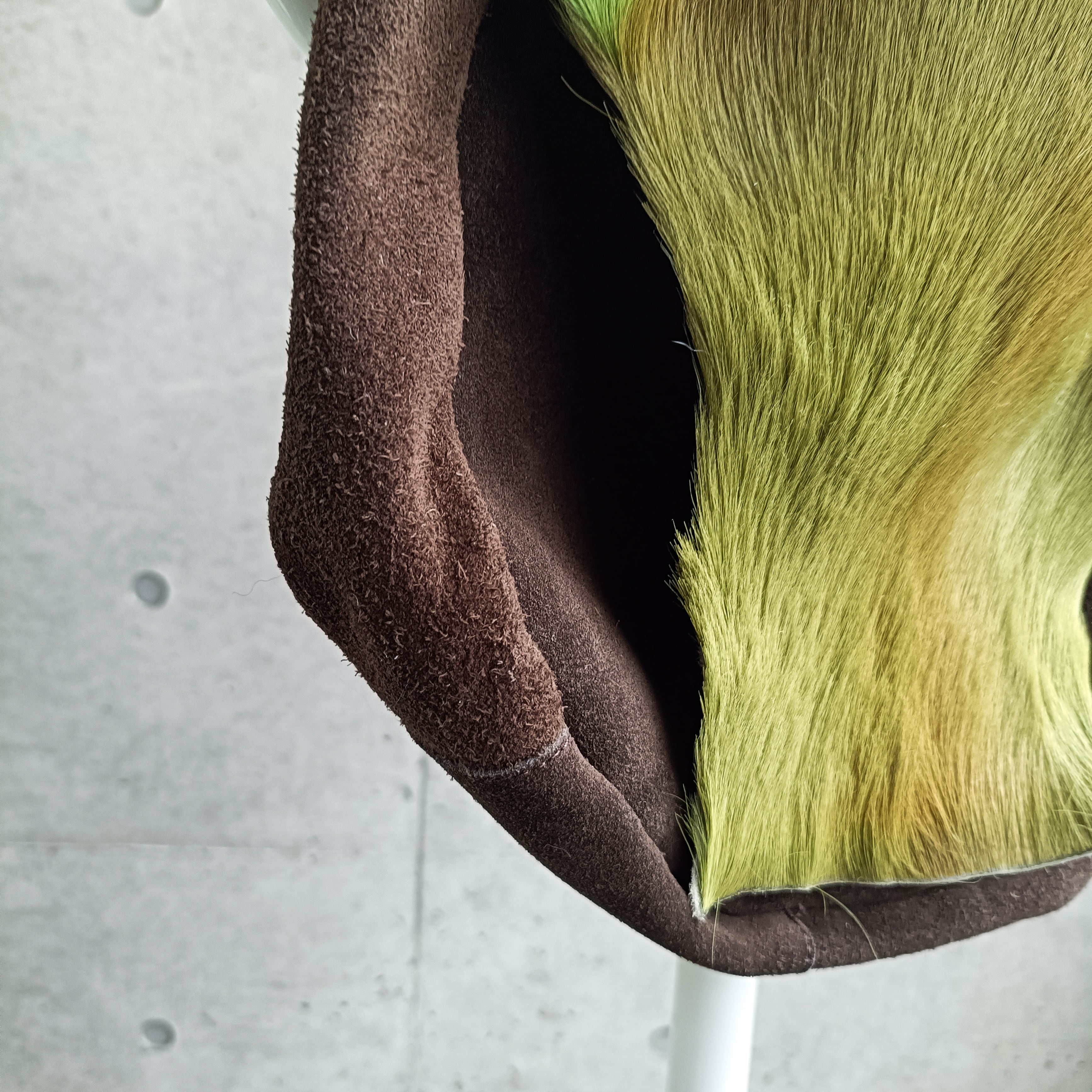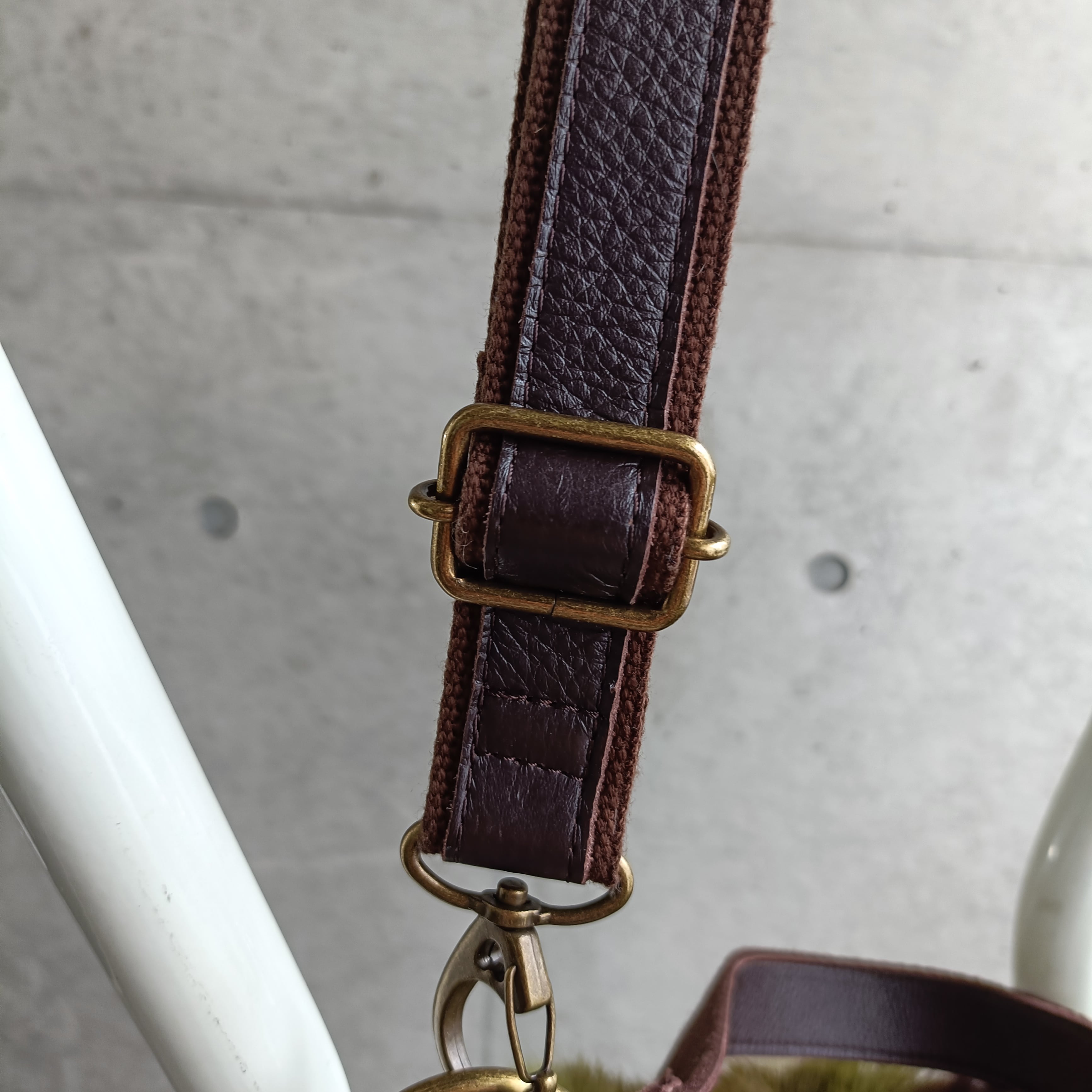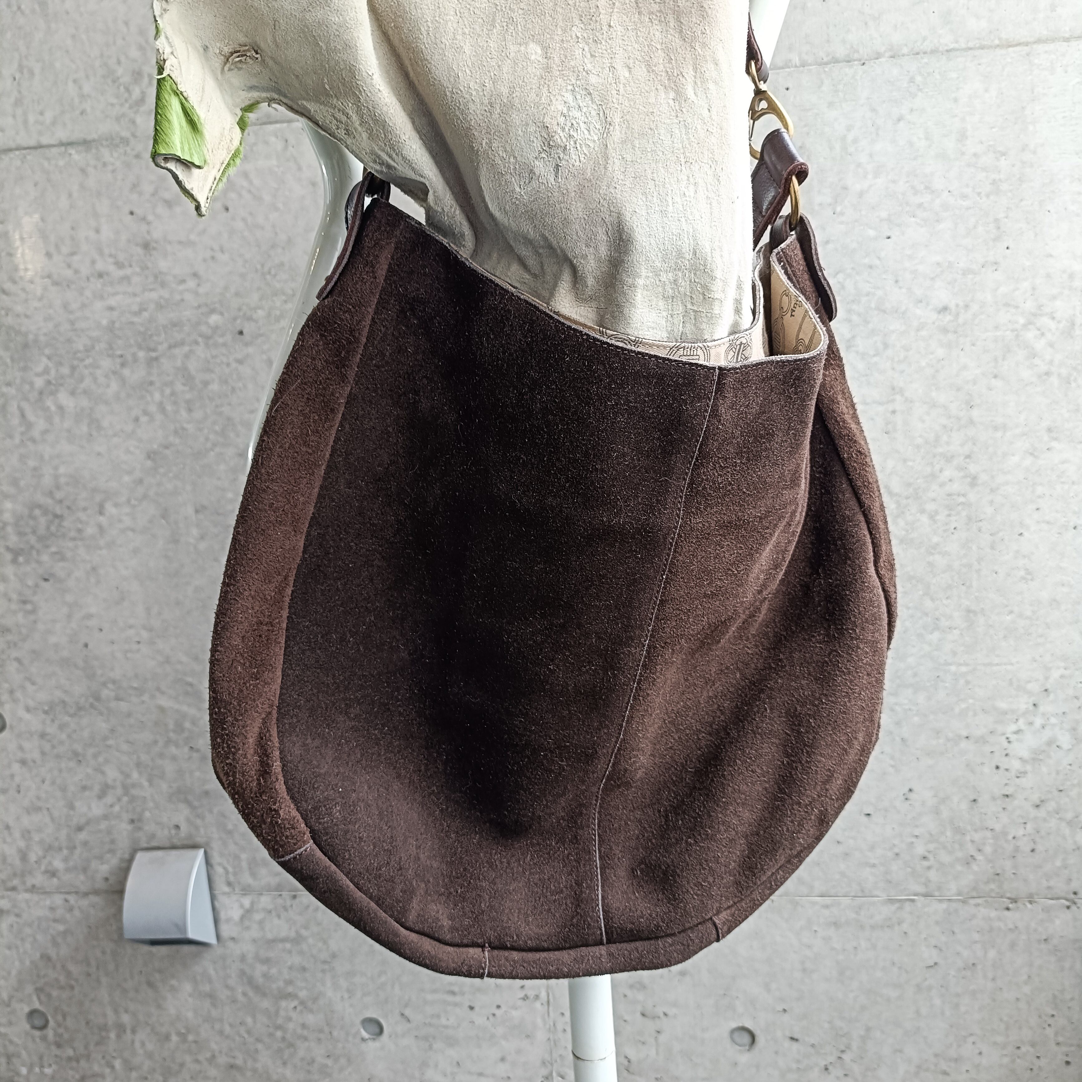 超スペシャル。ライムカラーのハラコレザーがフラップになったショルダーバッグ。ベースはブラウンのスウェードです。ハラコ部分のフラップは着脱可能です。使い易い大きさ。背負うだけでスタイリングに雰囲気出るアイテムです。
