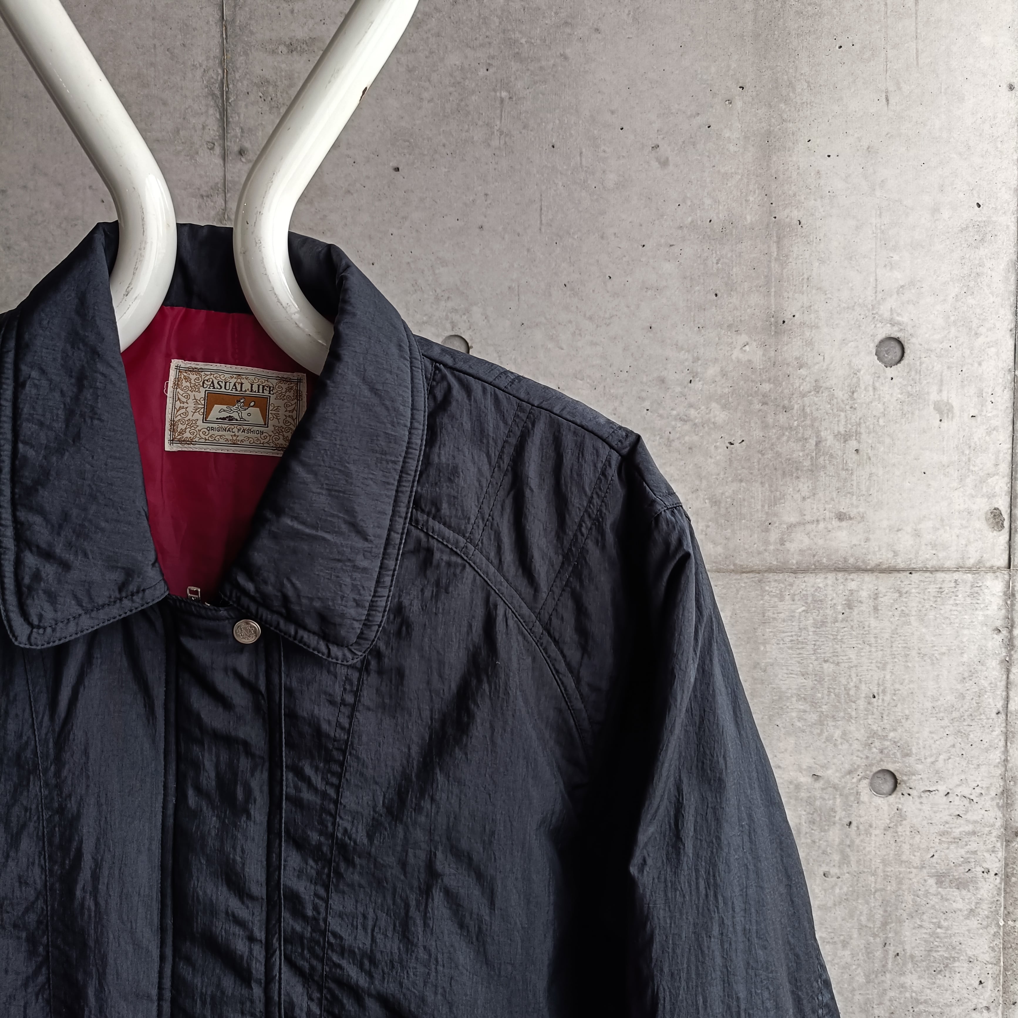 ブラックのシェルブルゾン。裏地がピンクなのもチラッと見えた時◎。王道、シンプルでヘビロテ間違いないやつです。中綿入り。