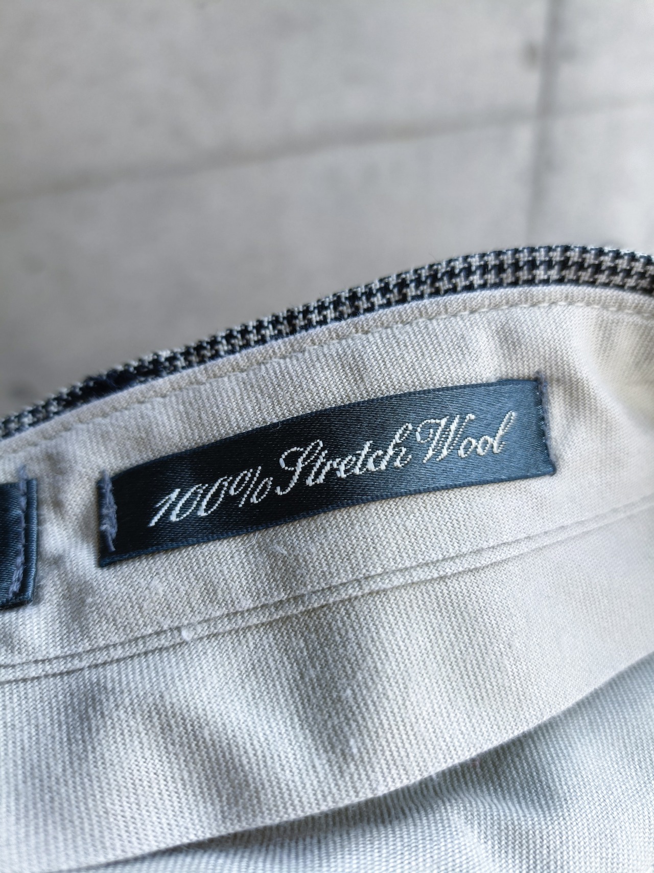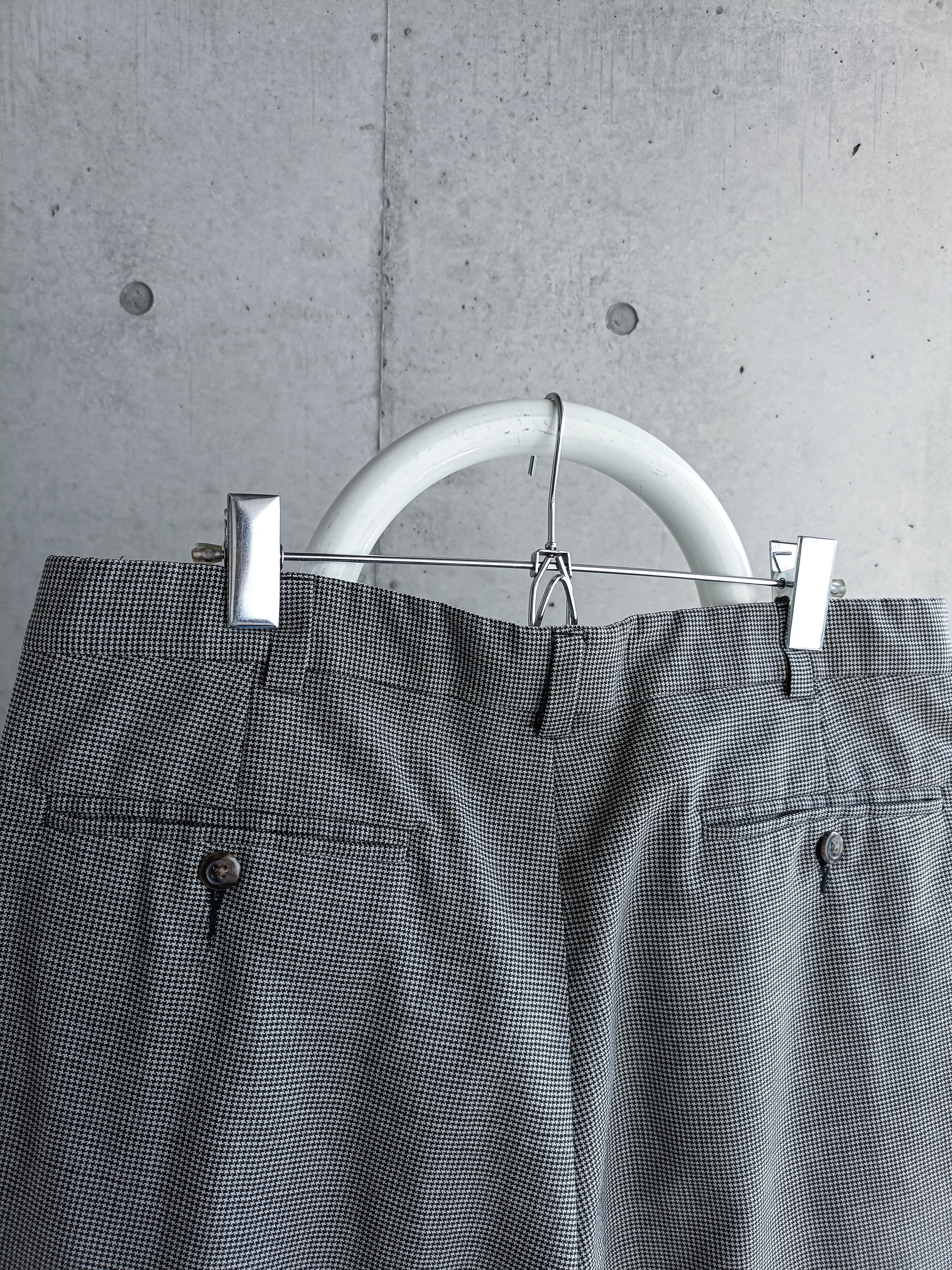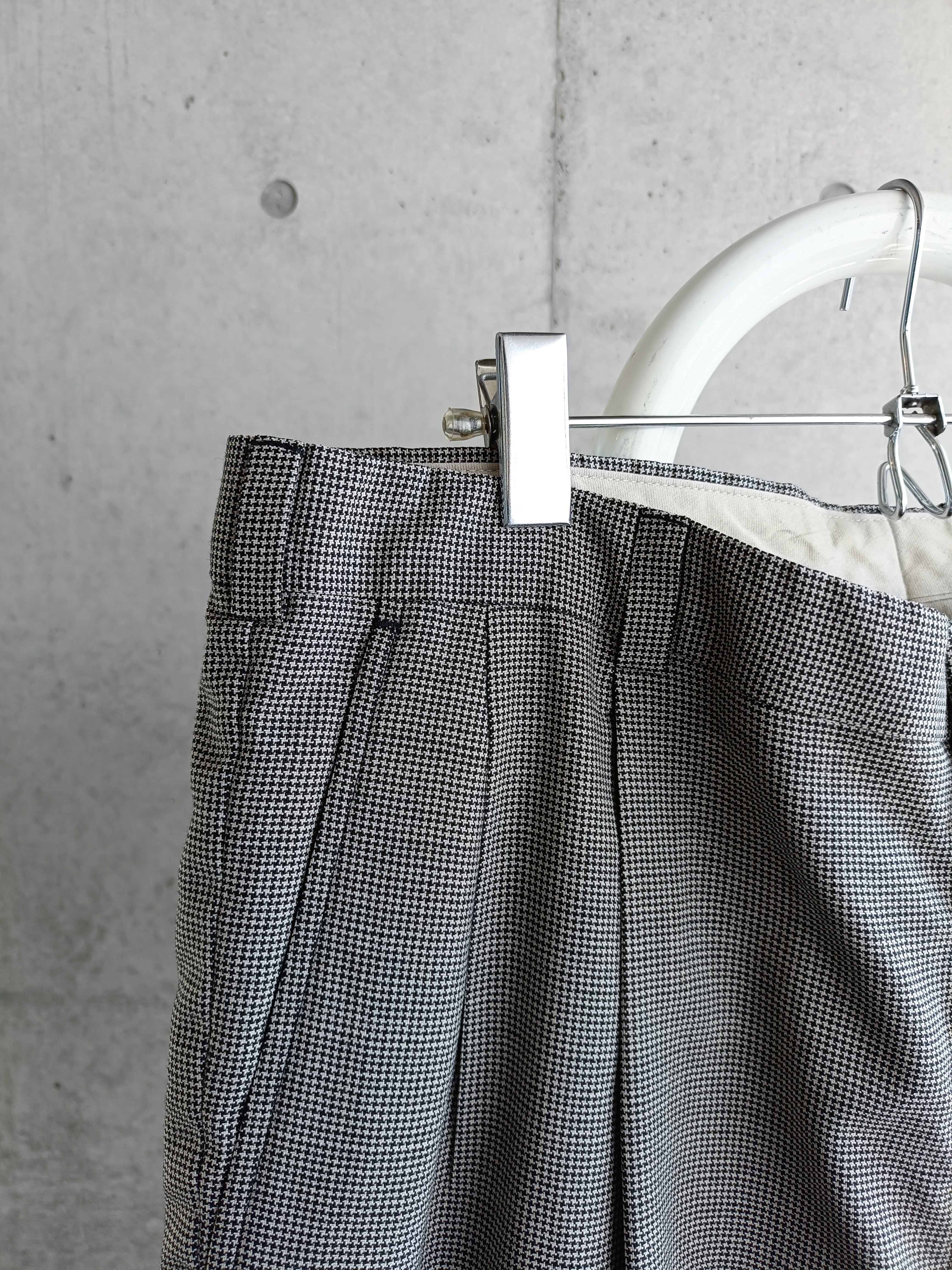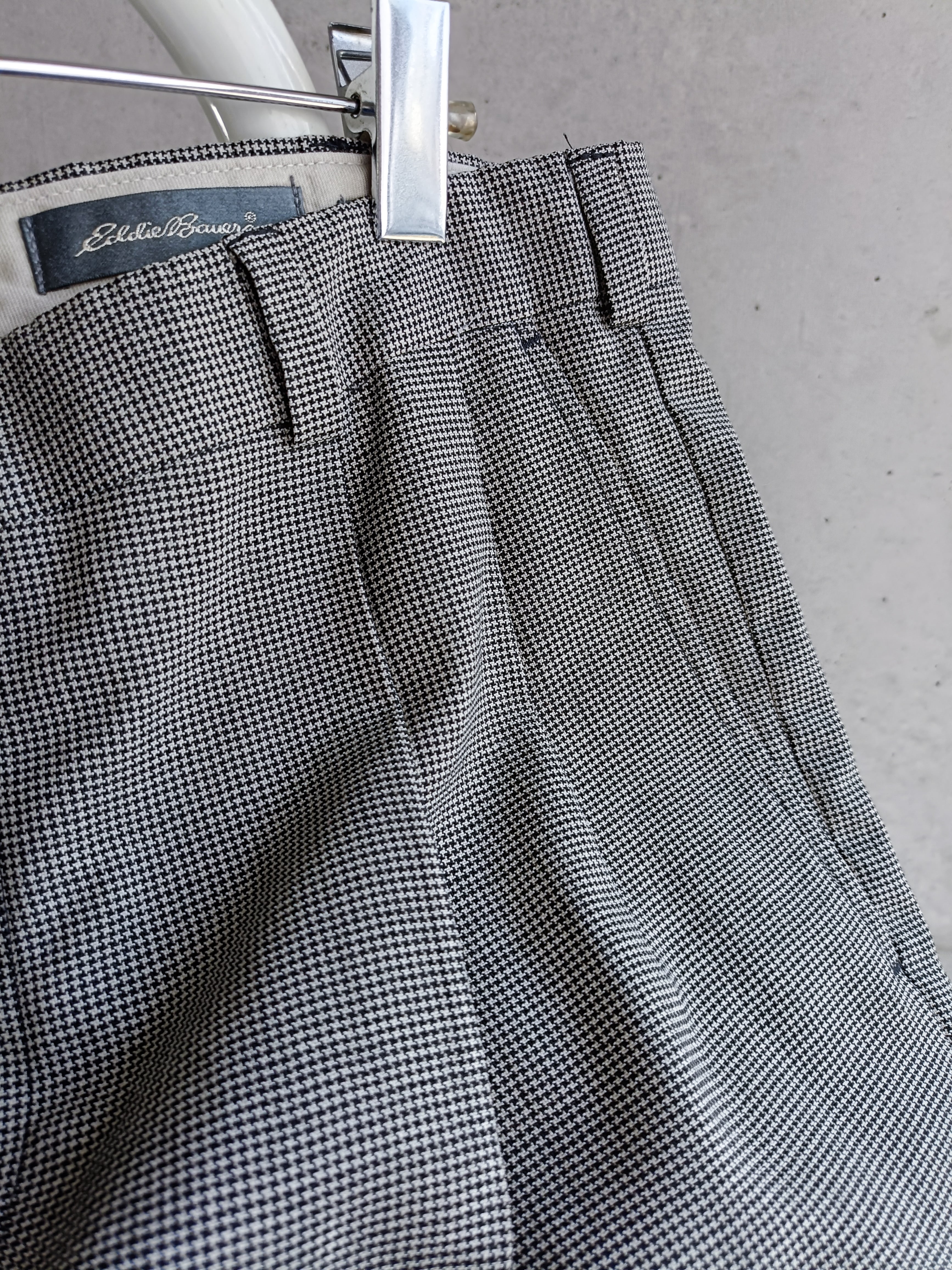 Eddie Bauerのウールスラックス。ブラックの千鳥格子柄。ストンと落ちるワイドシルエットです。当店今季イチオシの千鳥格子柄のスラックスです。普段無地しか履かない方にもオススメな一着。