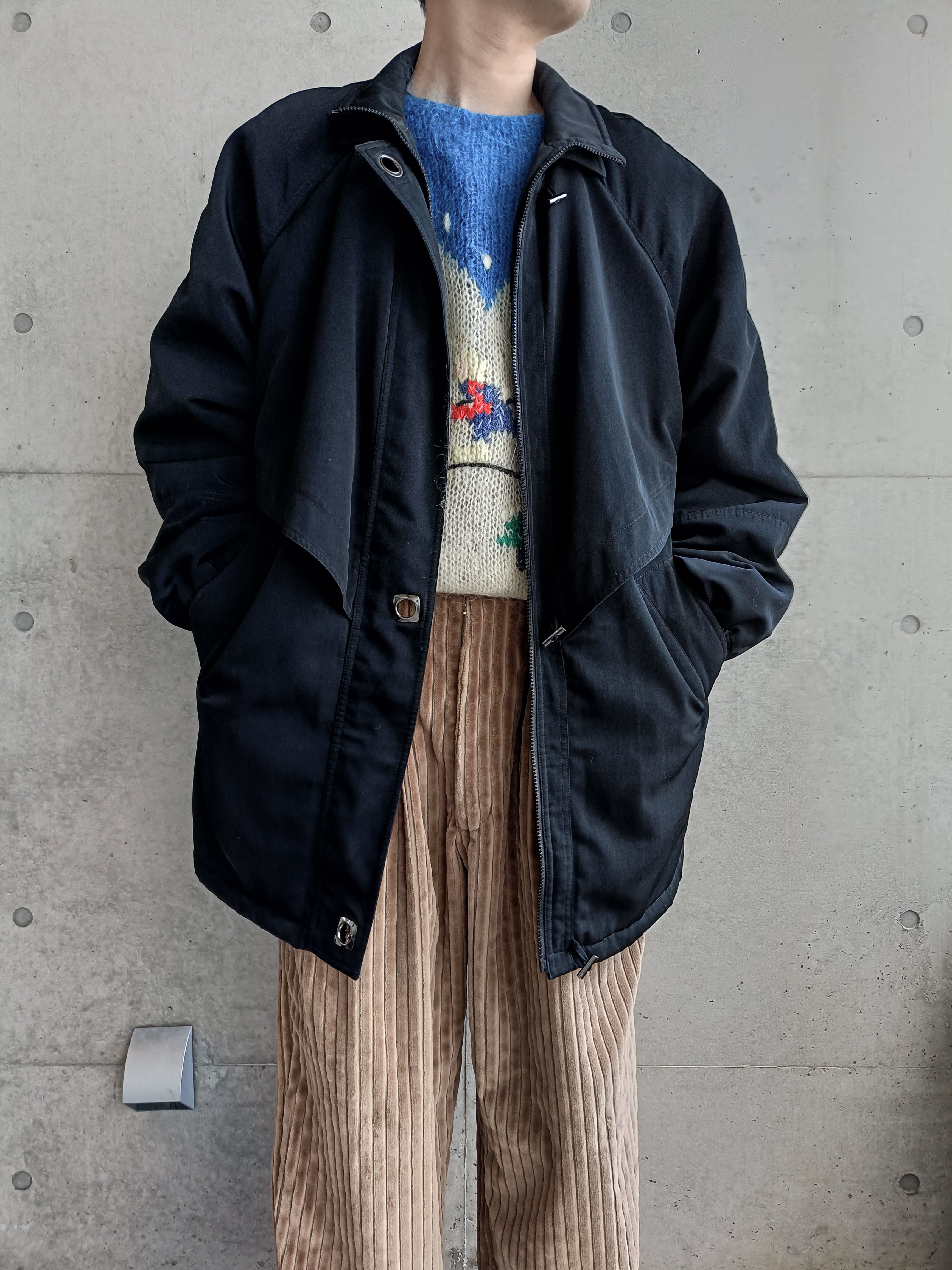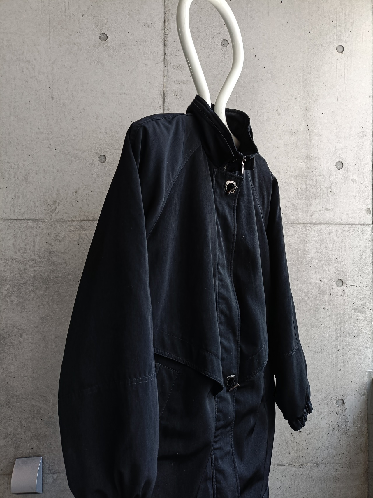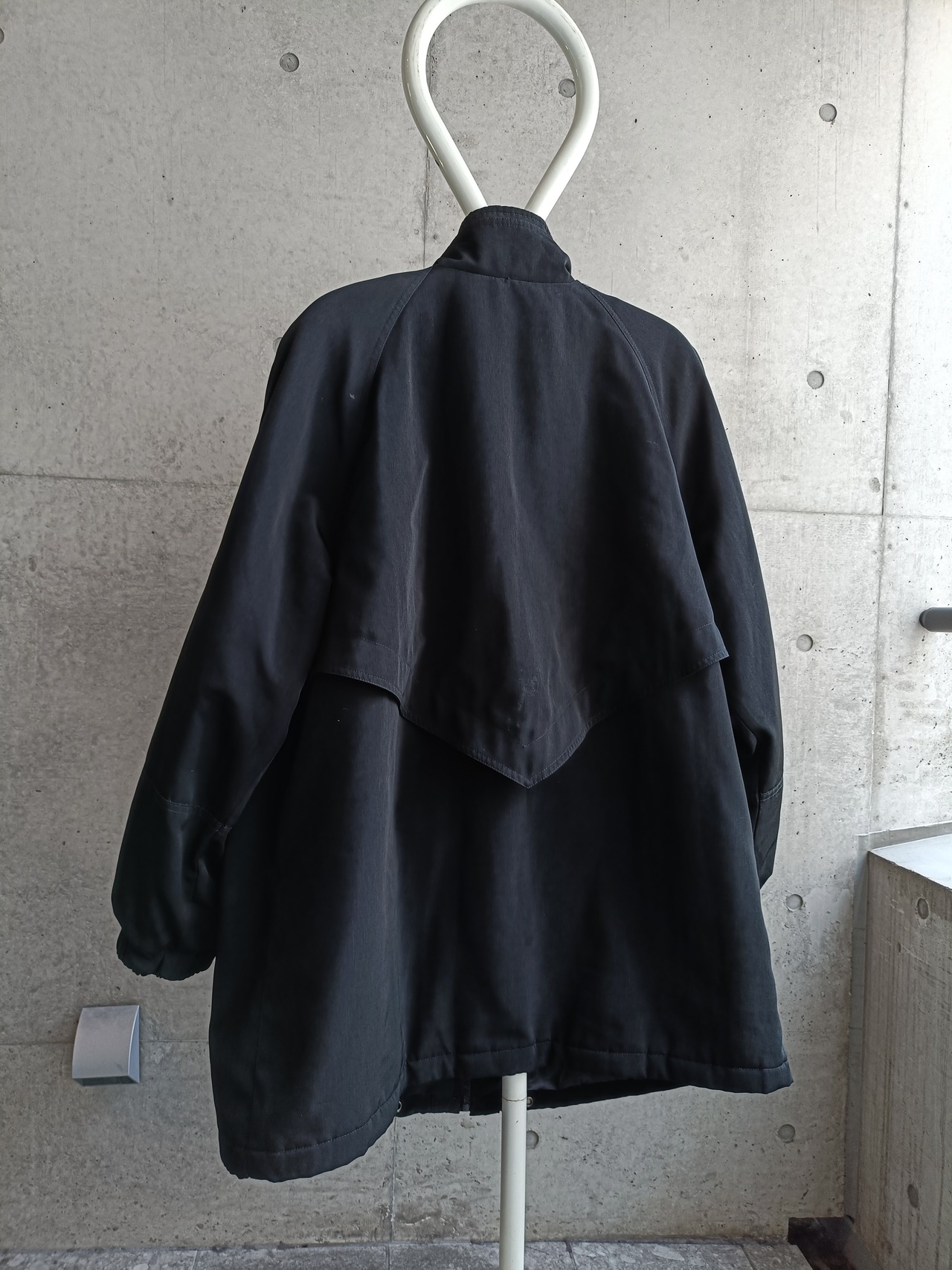 久しぶりに入荷のアイレット仕様のボタンになったコートの入荷です。しかも黒無地はめちゃくちゃ久しぶりです。極太アームで、メンズが緩く着れる希少なサイズ。背面の雨除けも剣先のような形で、デザイナーズ感も溢れるディテールです。