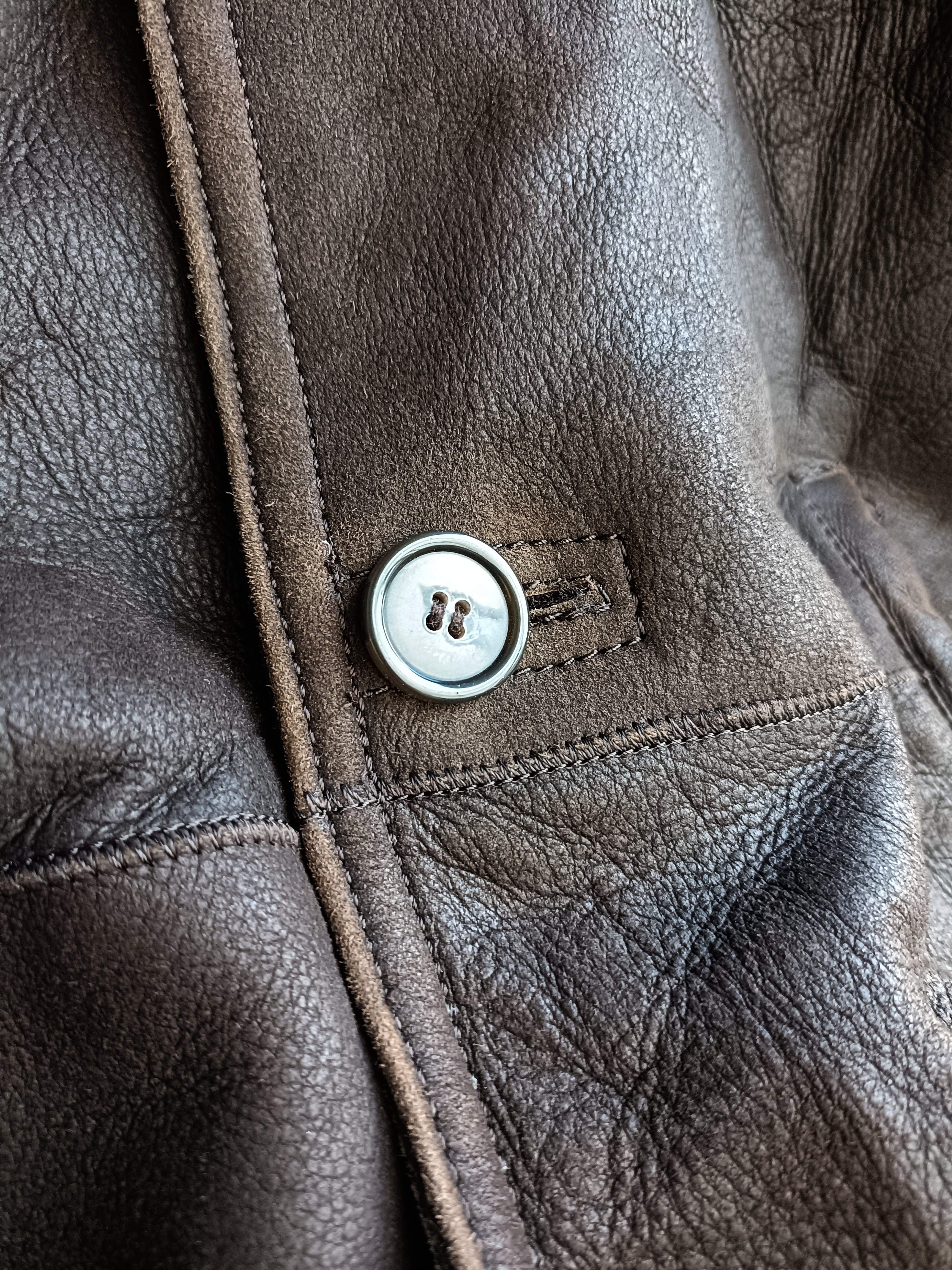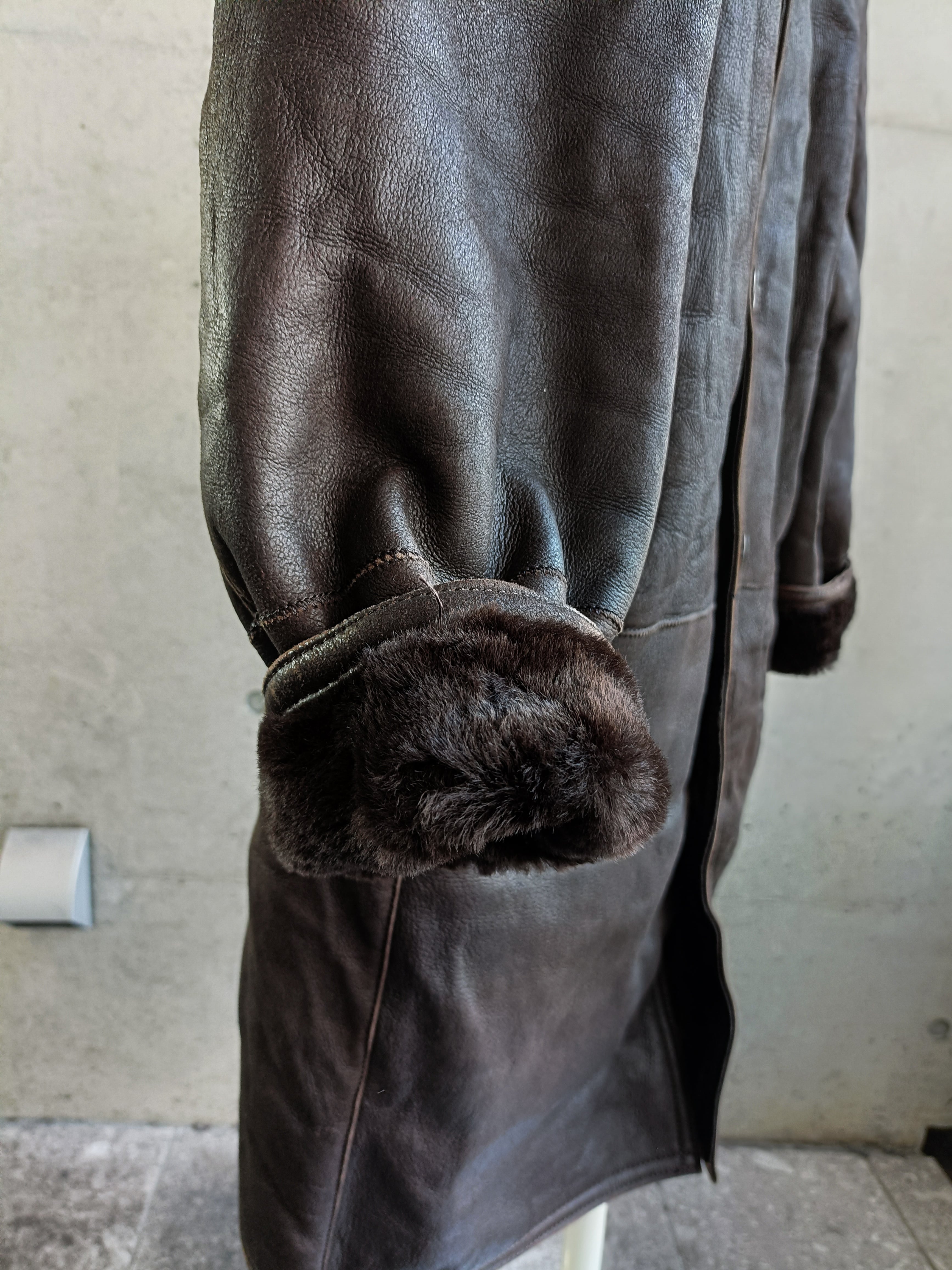 vintage tobacco brown mouton leather coat
