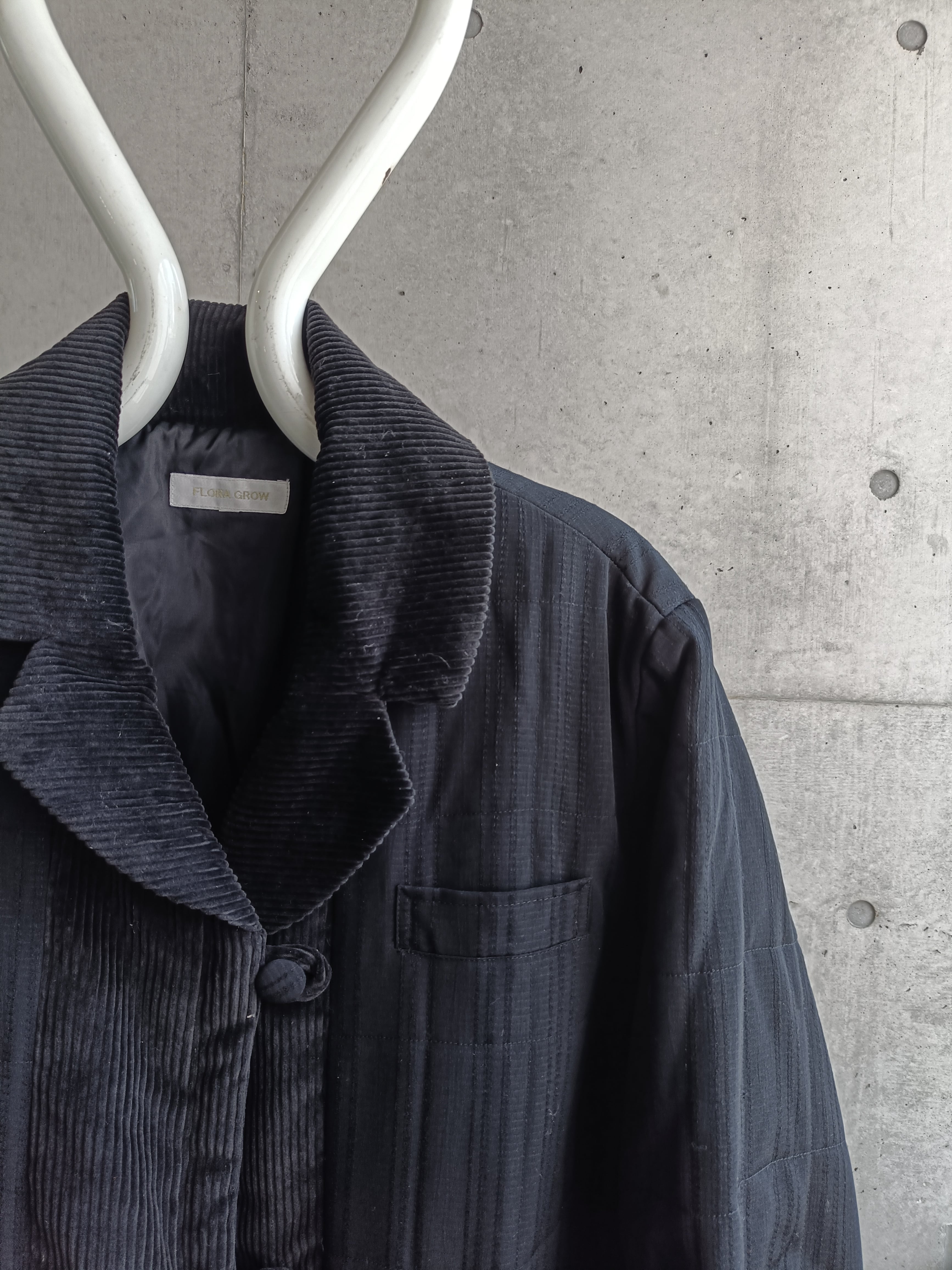 vintage black corduroy switching strings coat