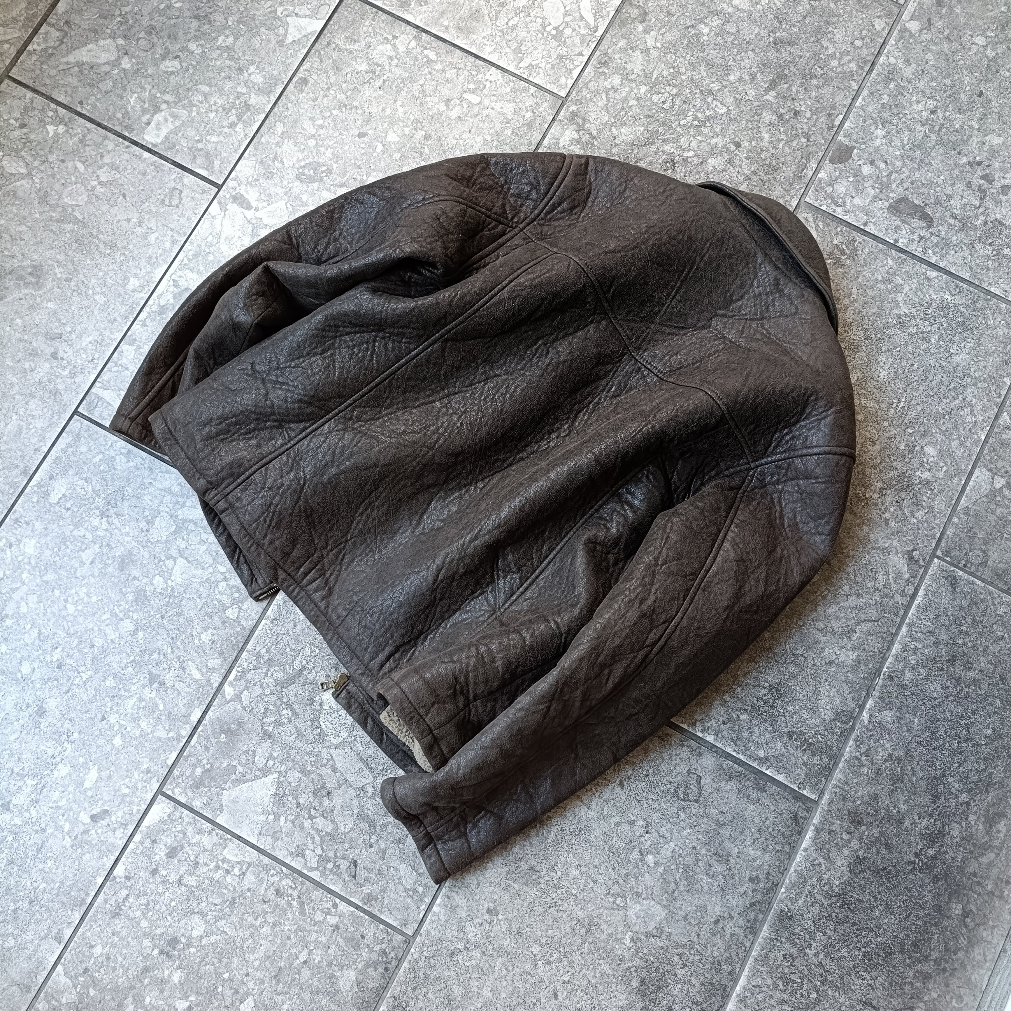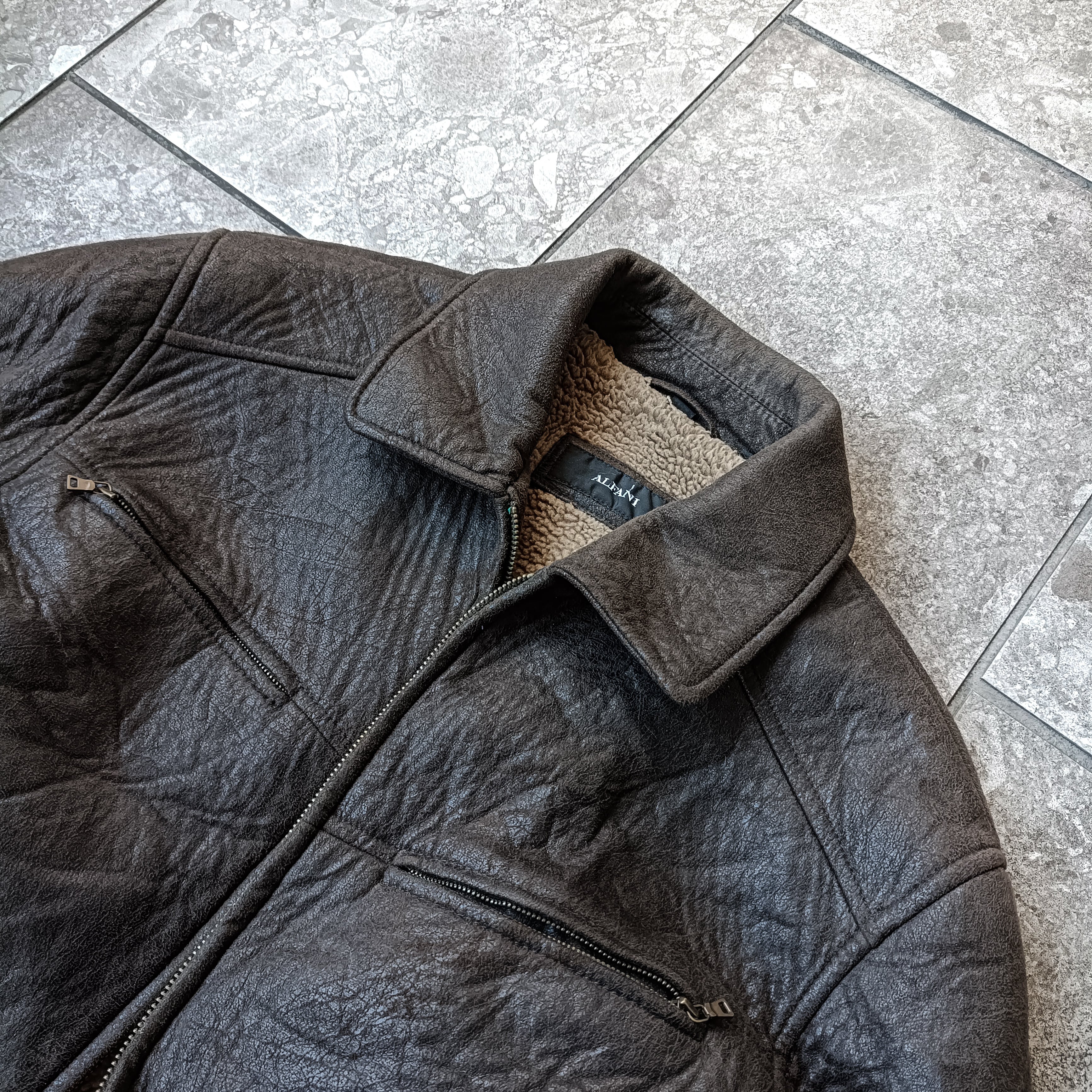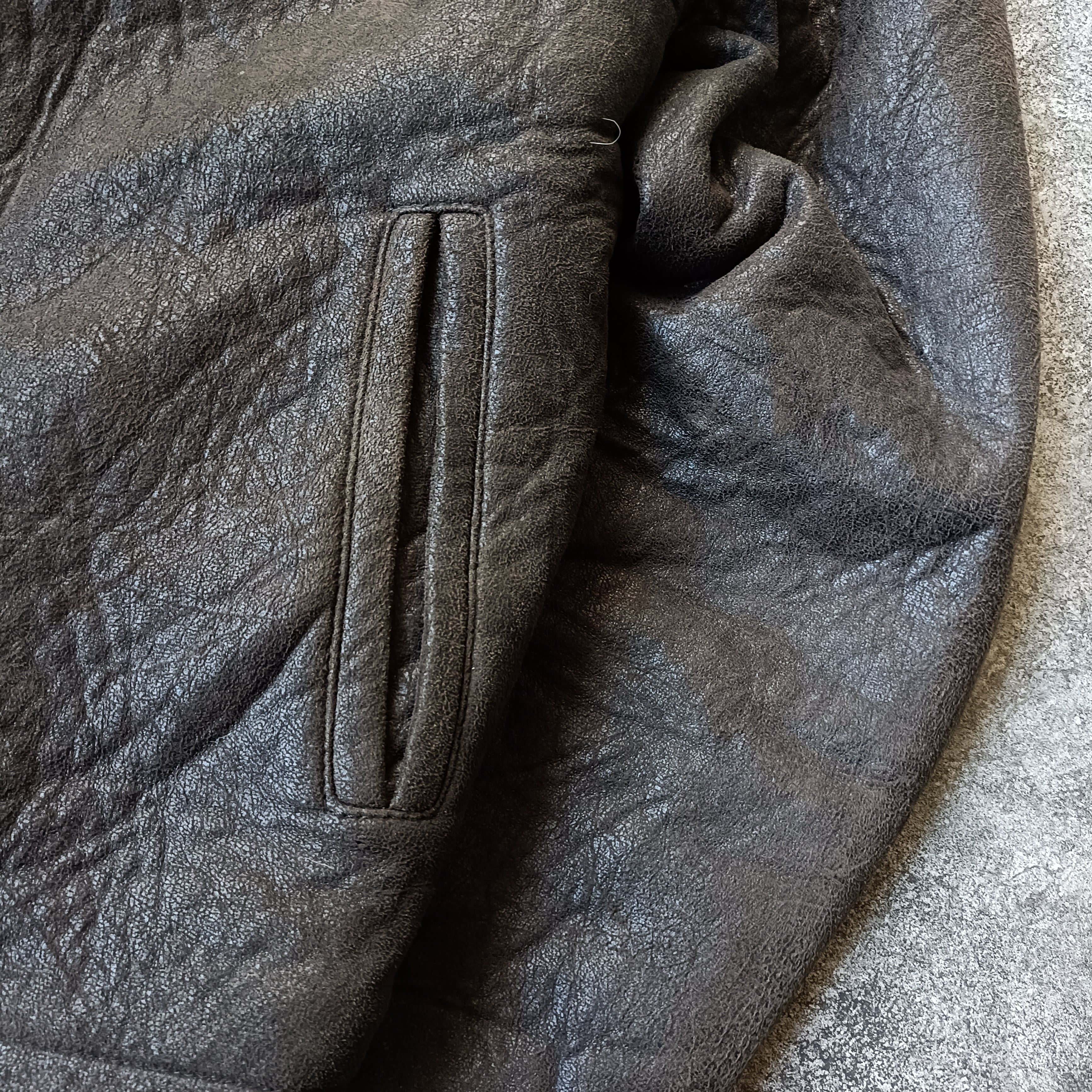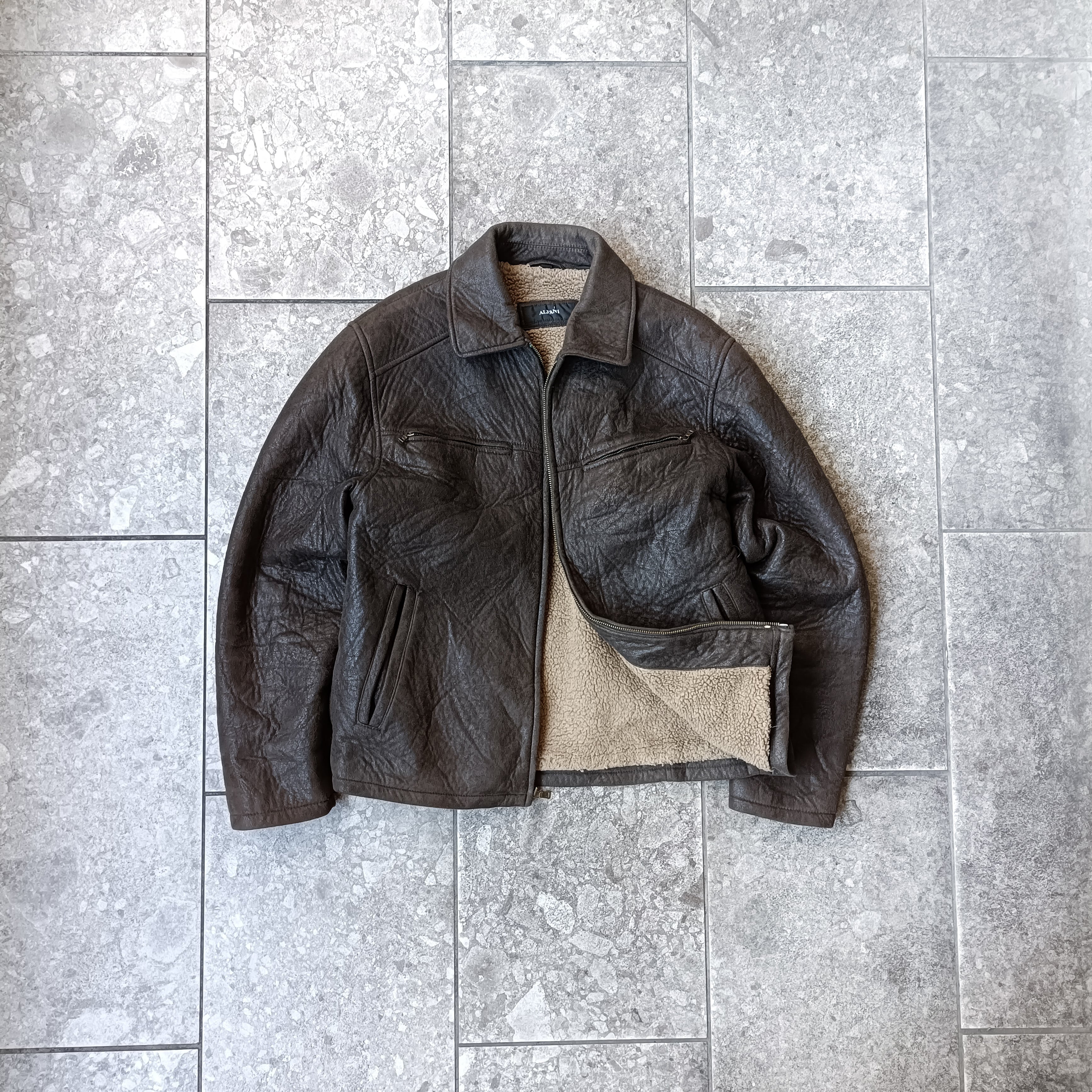 ブラウンのフェイクムートンブルゾン。普段はフェイクムートン系は入荷しないですが、こちらは生地感が凄くリアルで、フェイクの良さが出ててピックしました。ムートン特有のシワ感も表現されてます。シンプルなブルゾン型のムートン。小柄なメンズ、レディース向けサイズです。