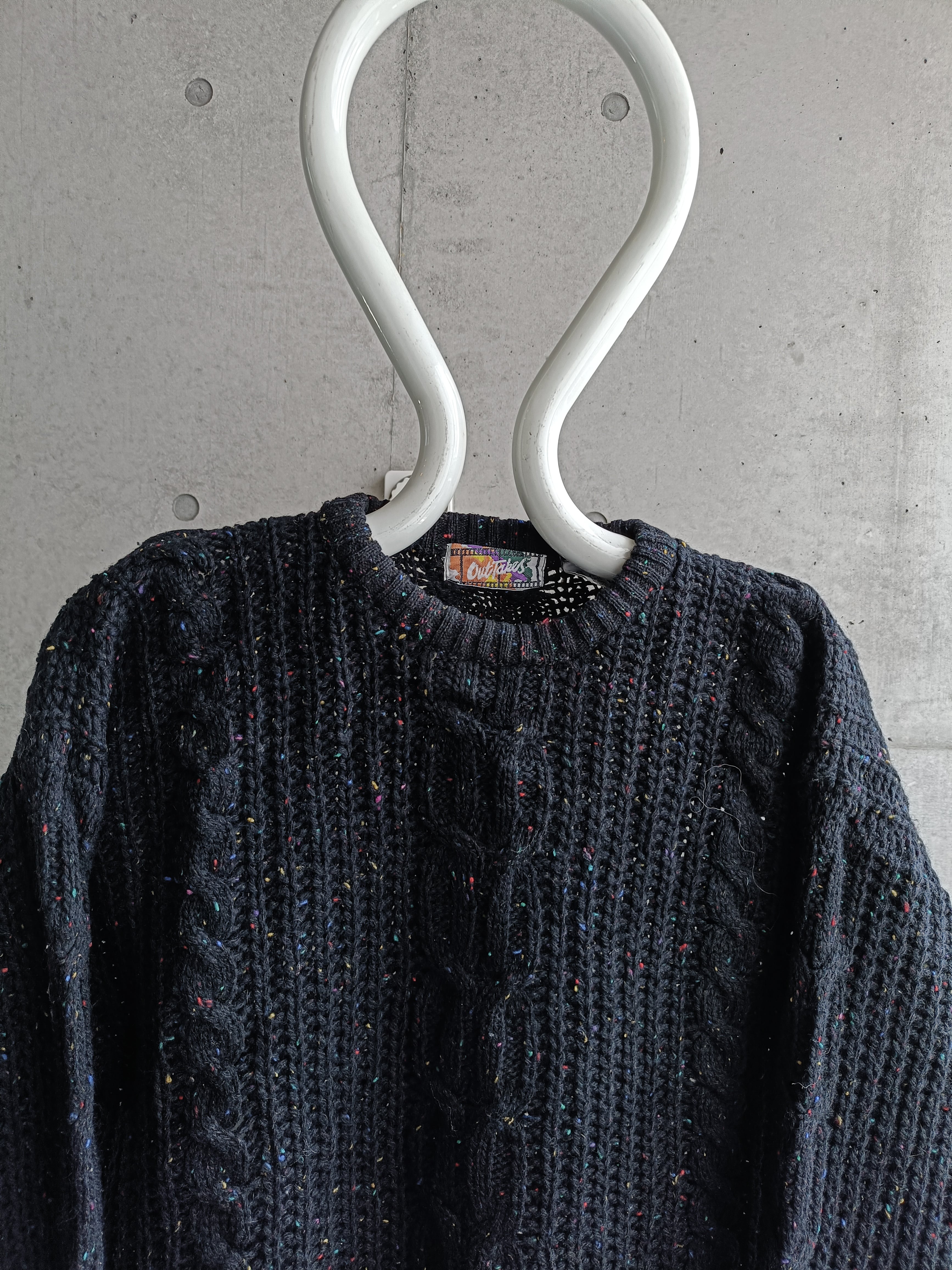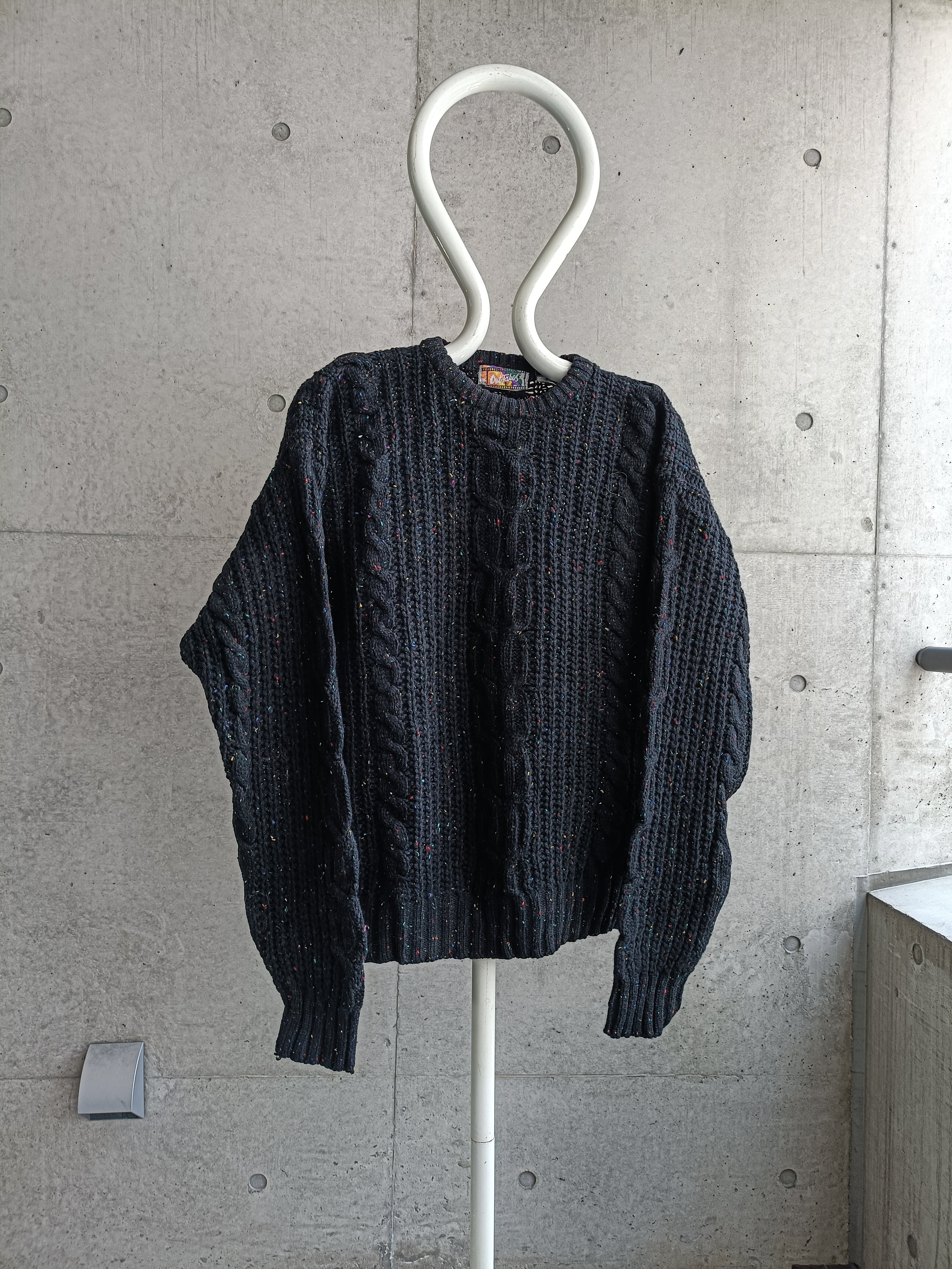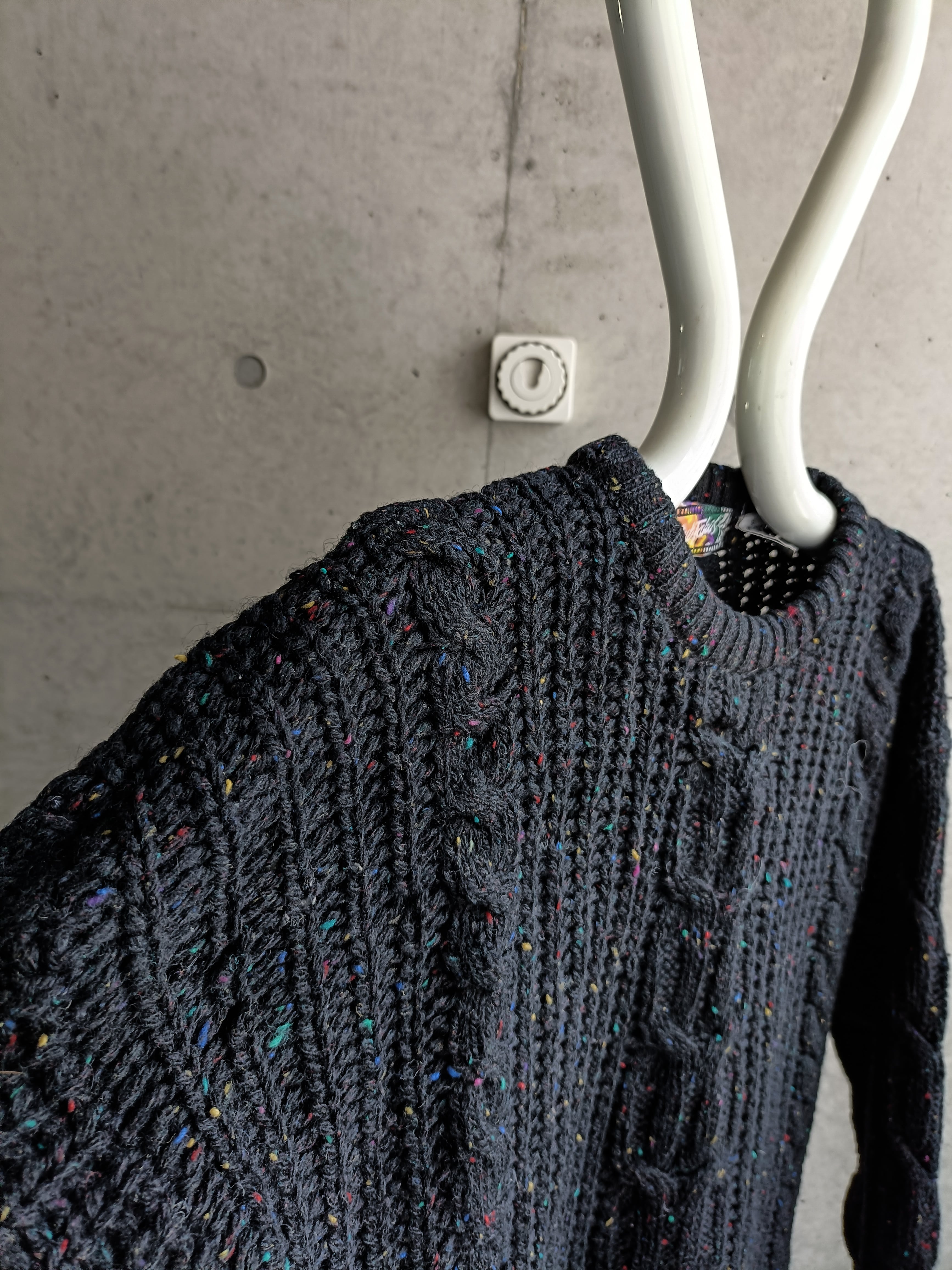 スペシャル。希少なブラックのフィッシャーマンニット。中でも更に珍しいレインボーネップ入りです。シルエットも完璧。年に一着出るかどうかの古着です。
