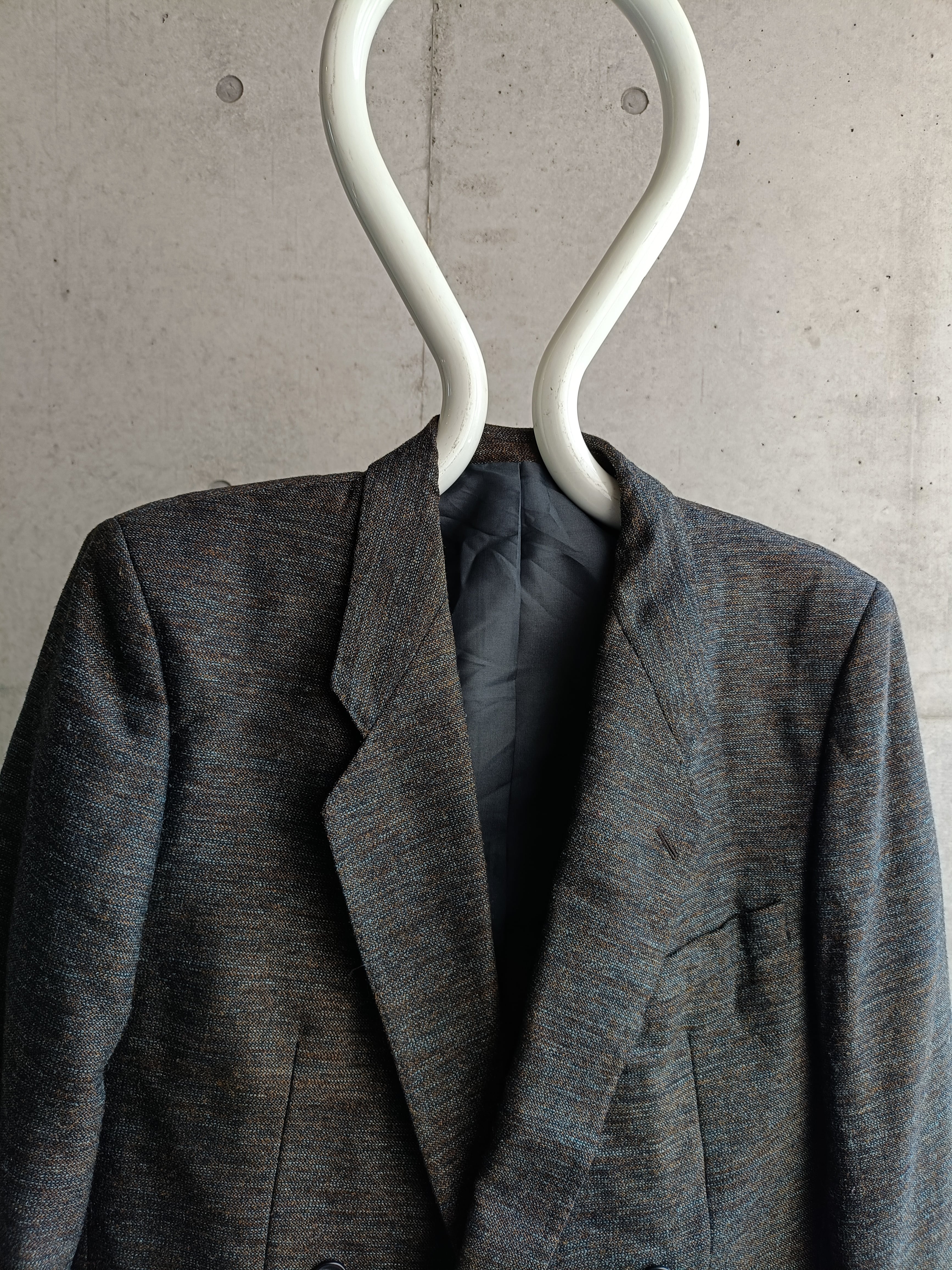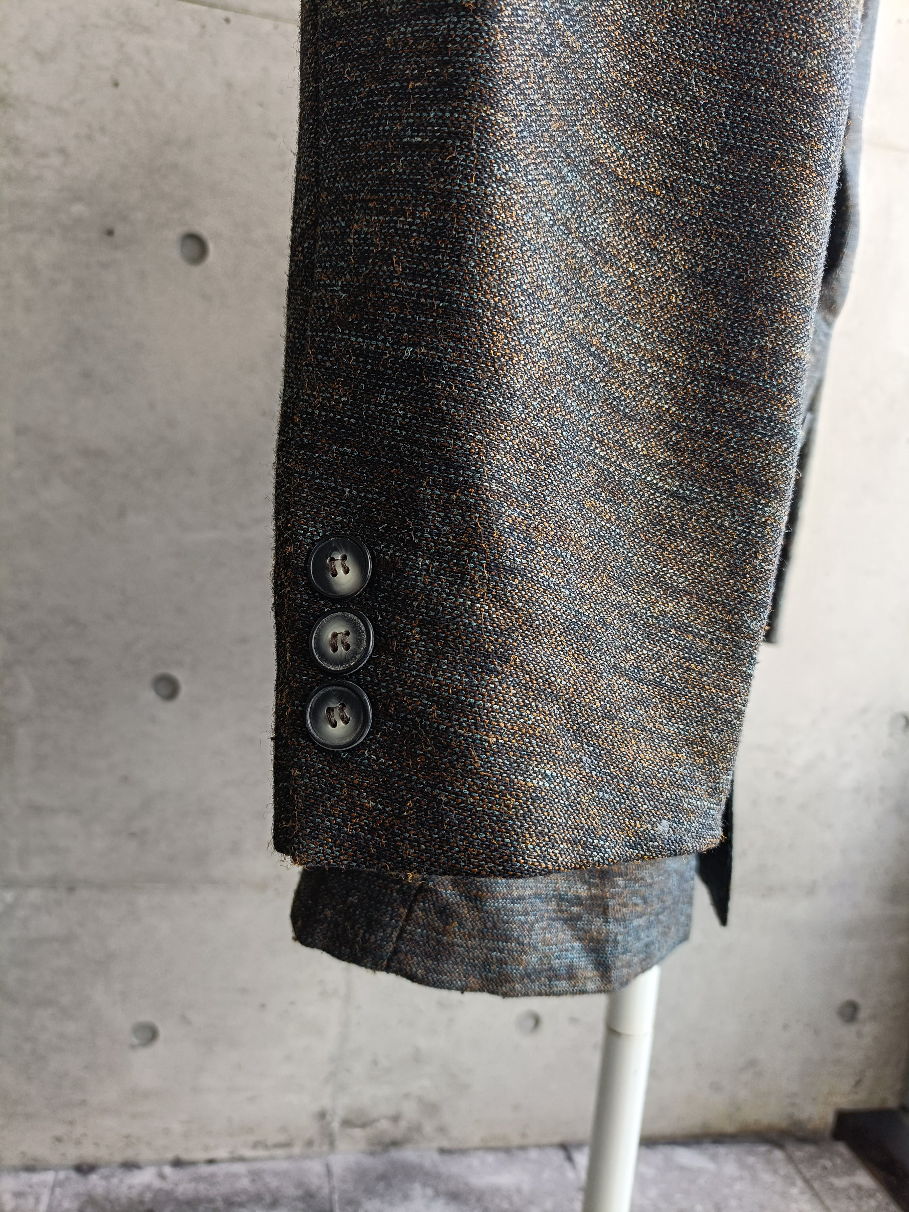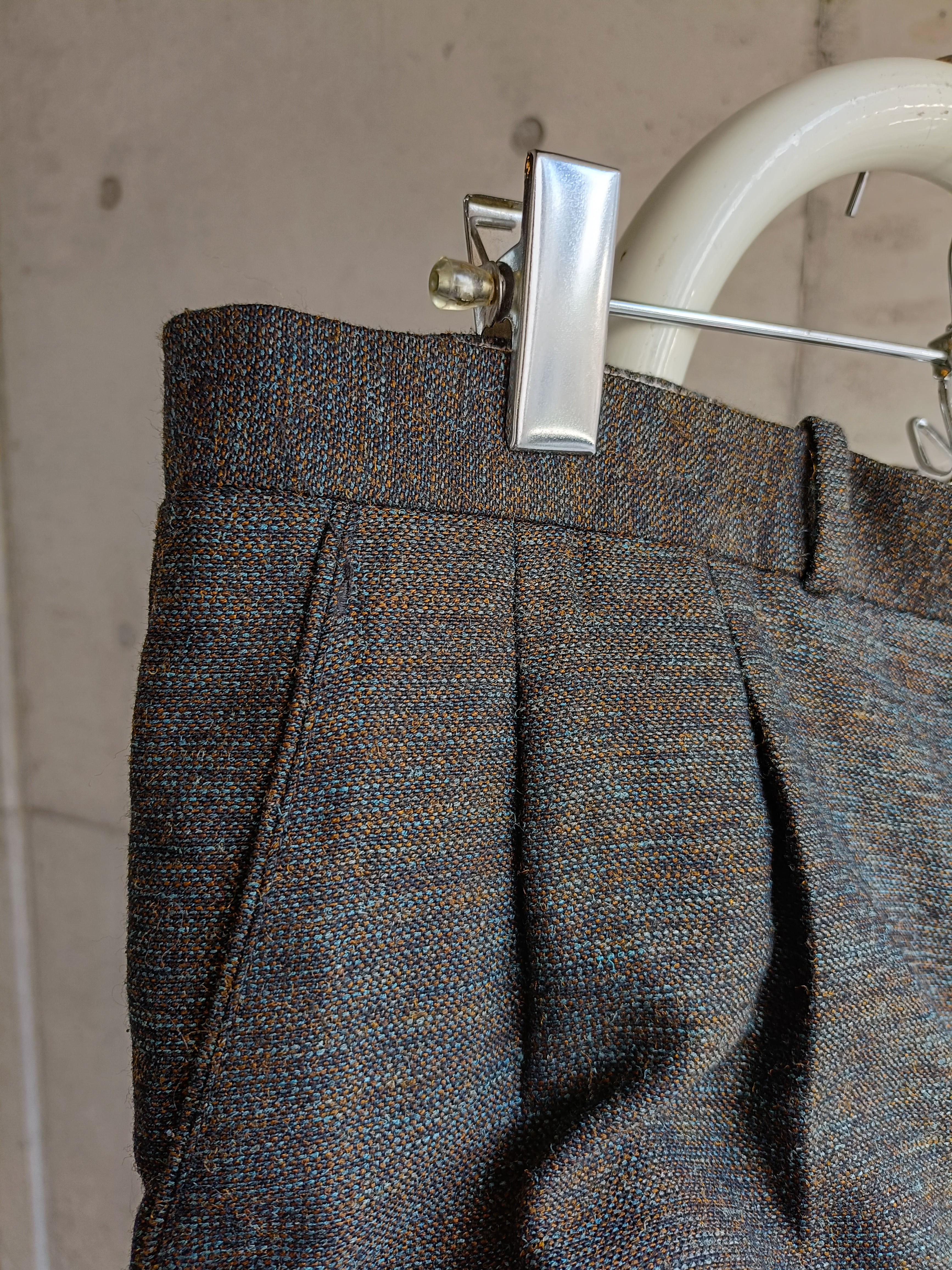 ブラウンとブルーのミックスウール生地のセットアップ。実物は写真よりブラウン強めで、丁度良いブルーの加減です。ヴィンテージにしかだせない質感のウール生地。上下別々でも使い易いです。小柄なメンズ、レディース向けサイズ。