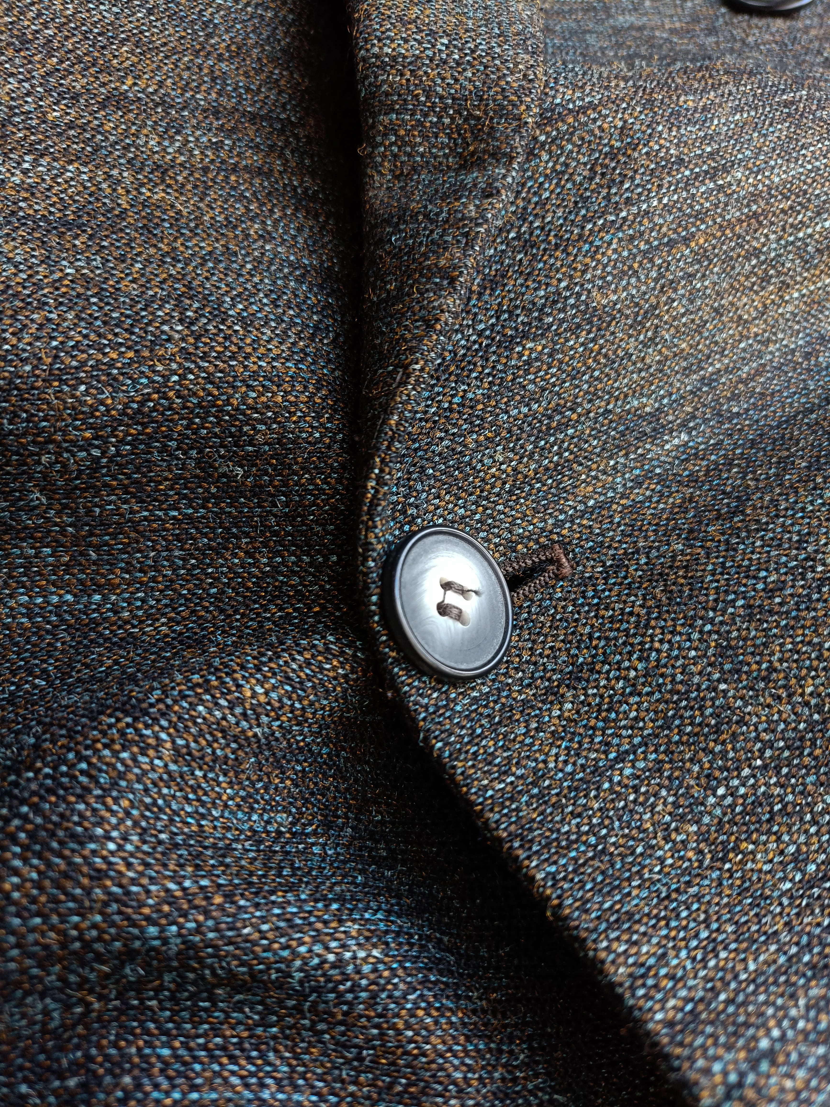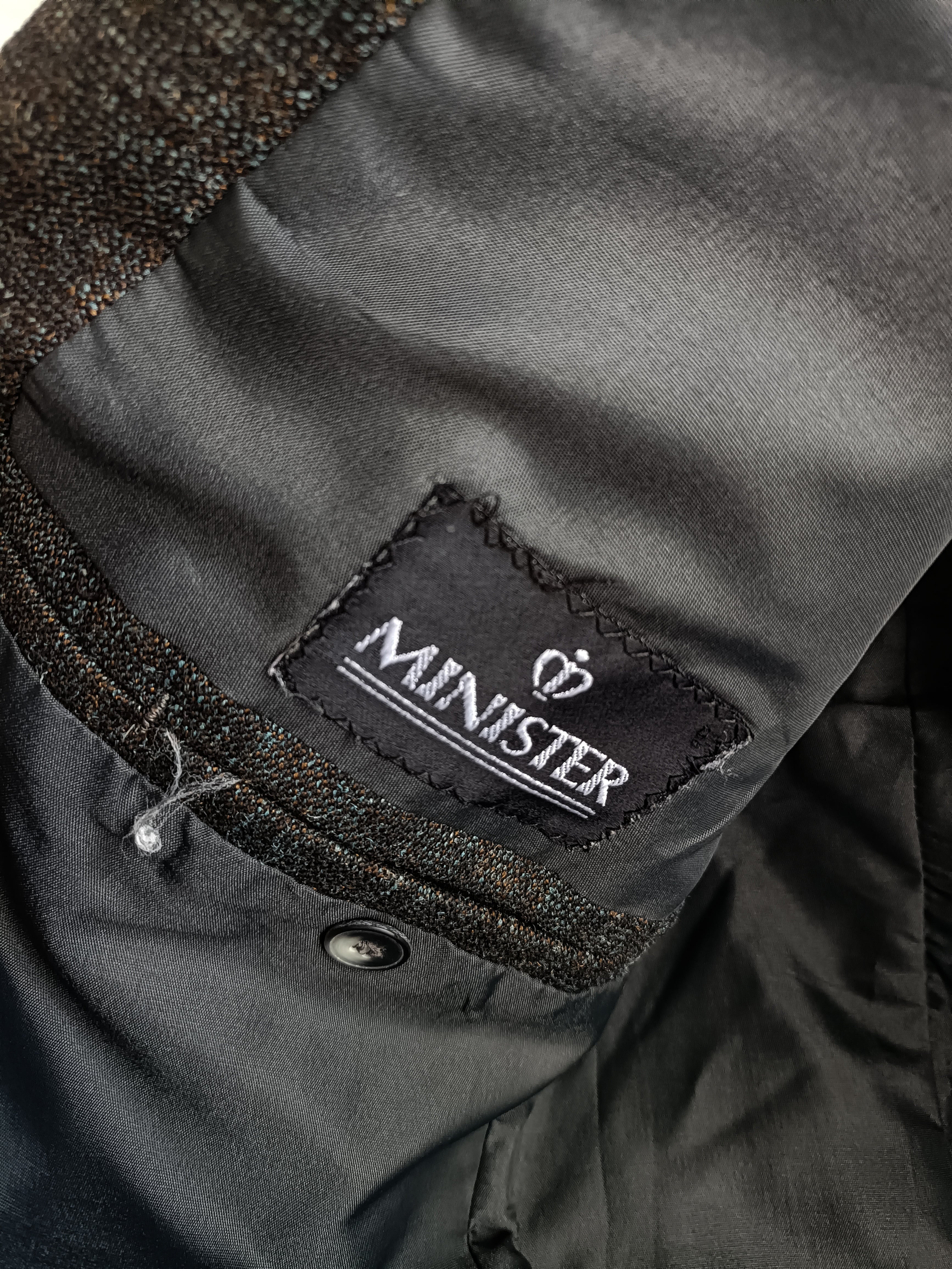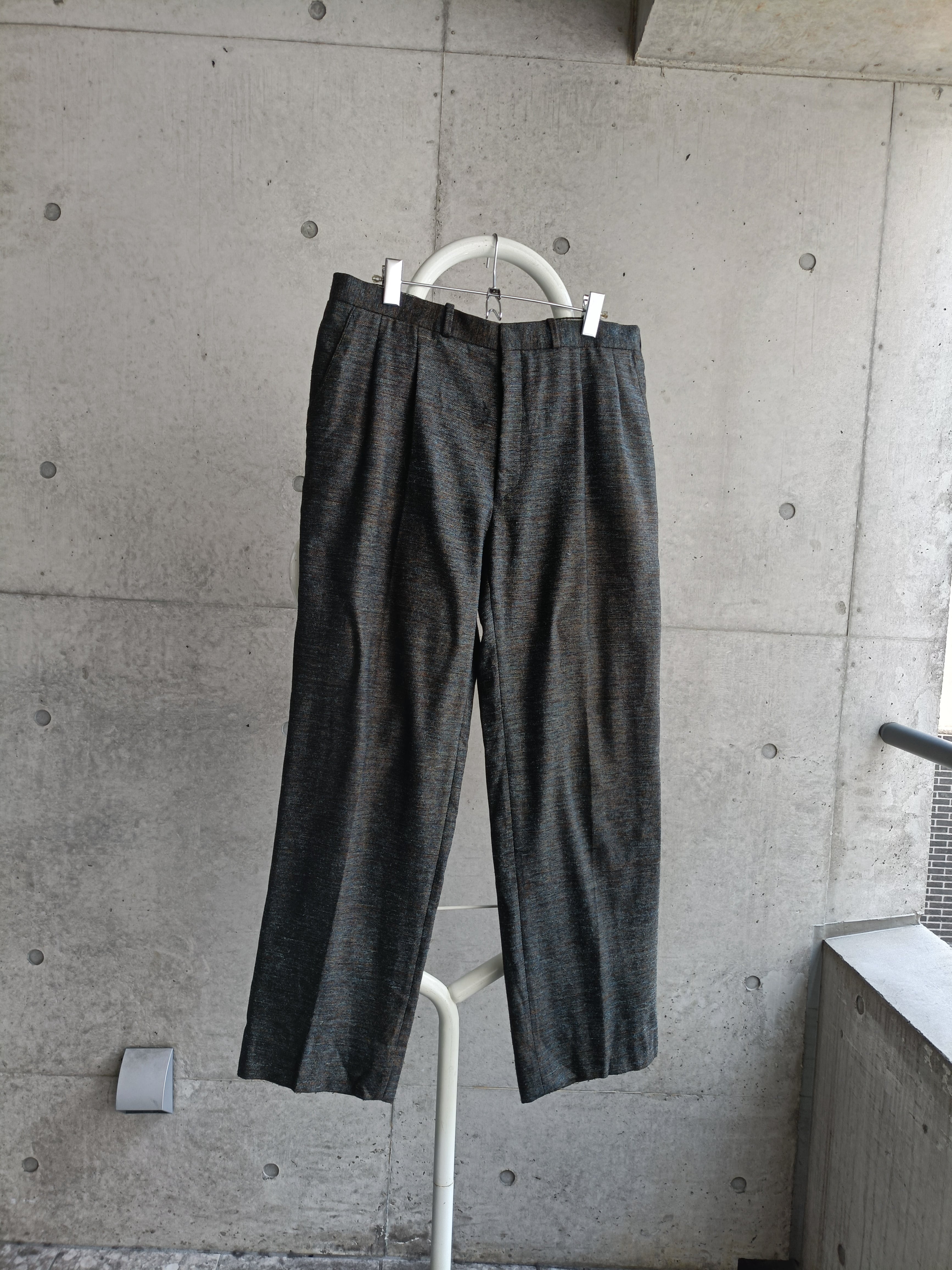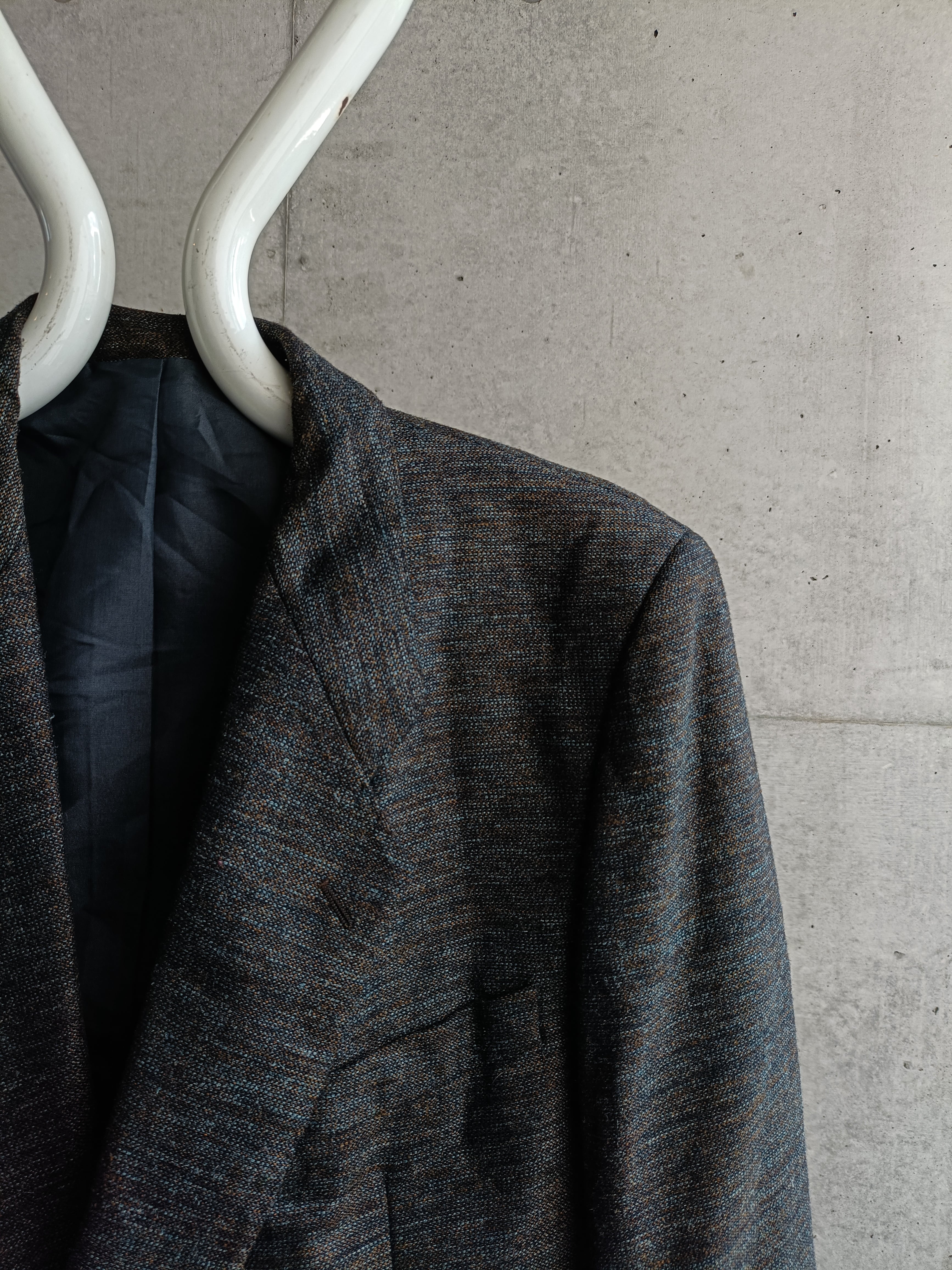 ブラウンとブルーのミックスウール生地のセットアップ。実物は写真よりブラウン強めで、丁度良いブルーの加減です。ヴィンテージにしかだせない質感のウール生地。上下別々でも使い易いです。小柄なメンズ、レディース向けサイズ。