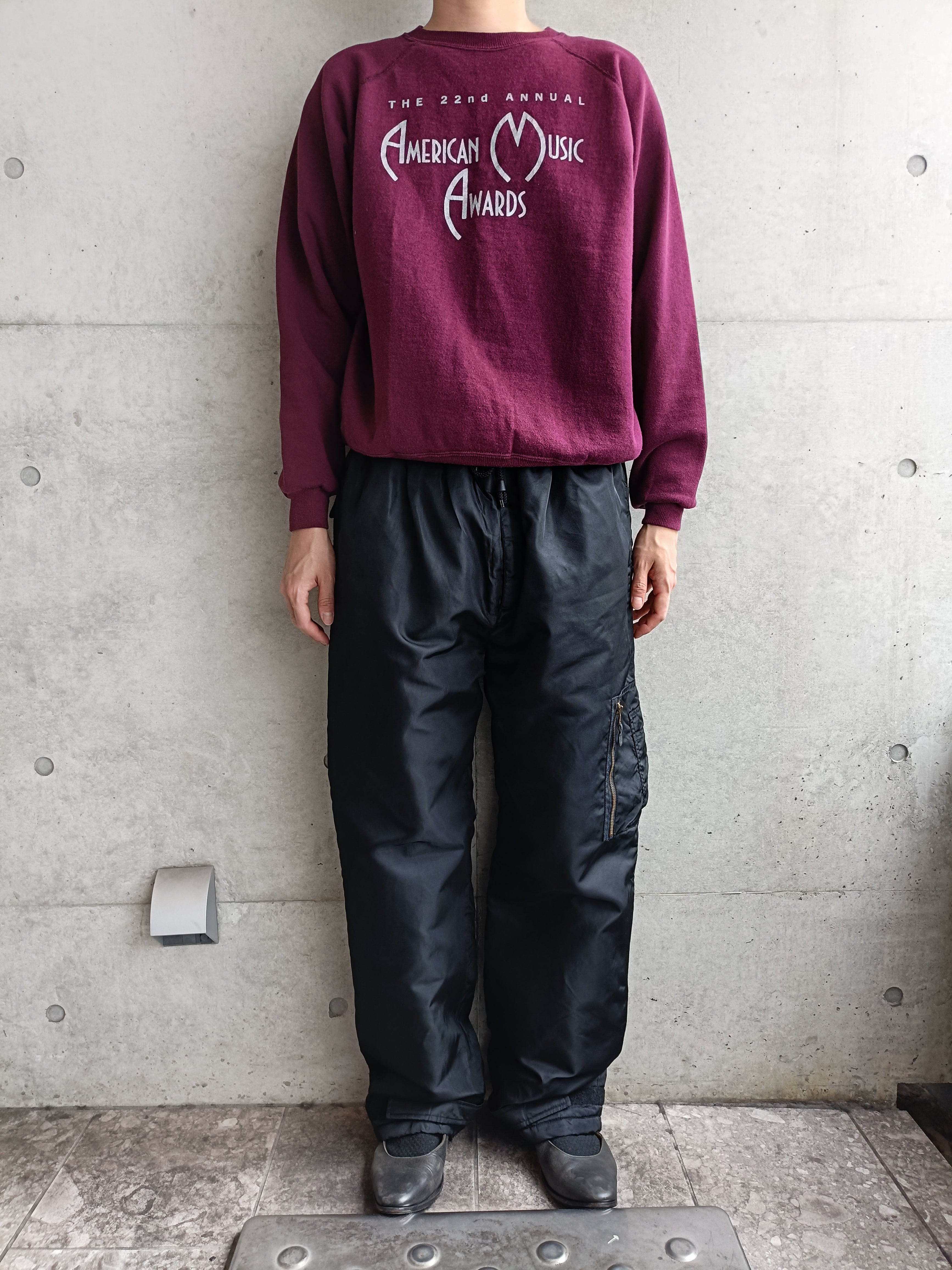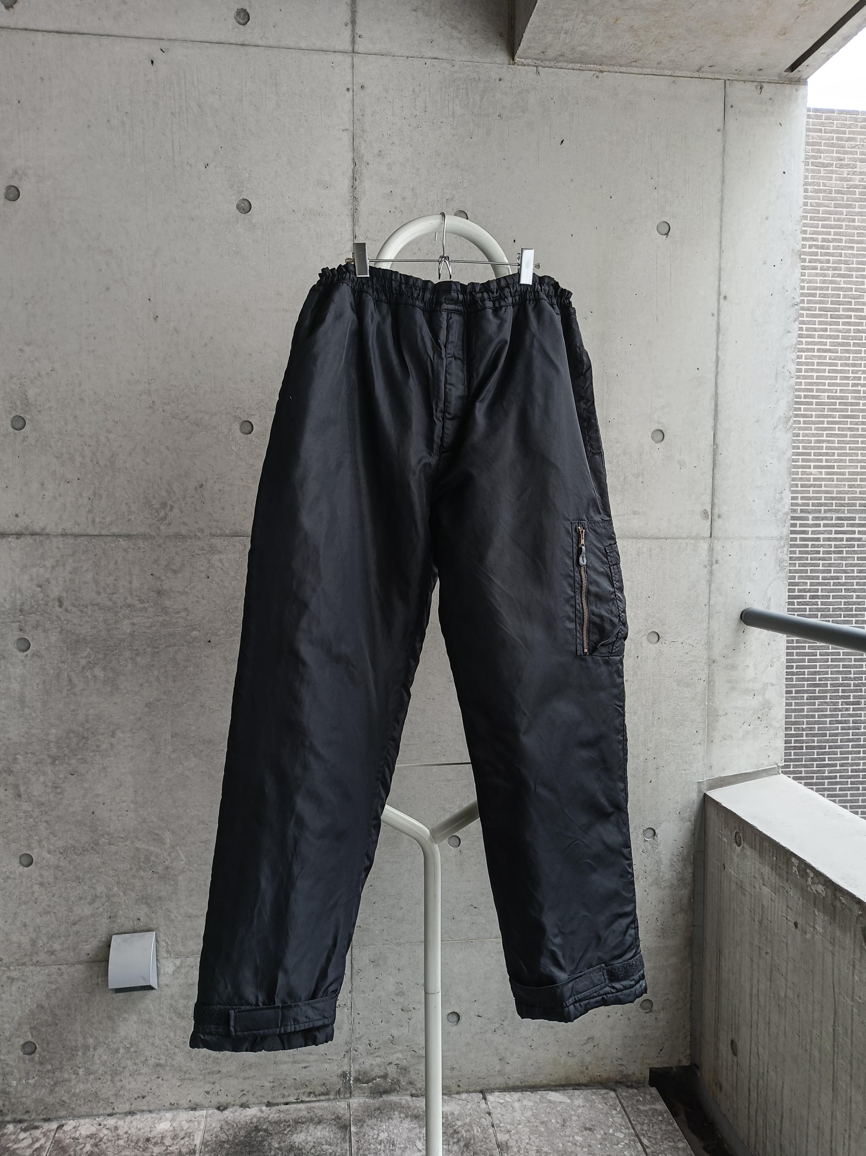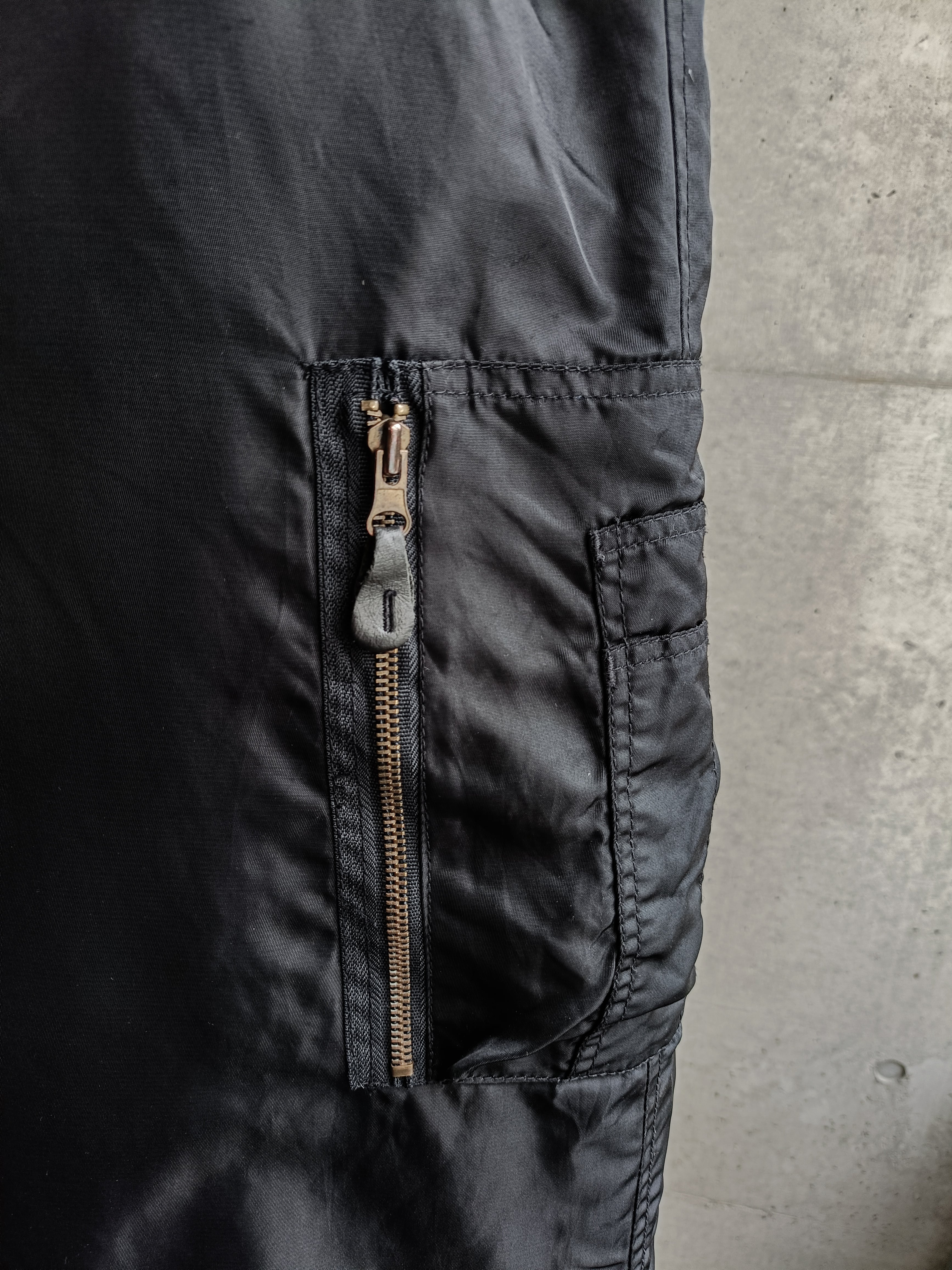 スペシャル。ブラックのMa-1生地のパンツ。この前カーキ入荷しましたが、奇跡的にブラック出ました。裏地はしっかりオレンジ。ズドンと太いワイドシルエットです。Ma-1生地特有のサイドのパッカリングも◎。