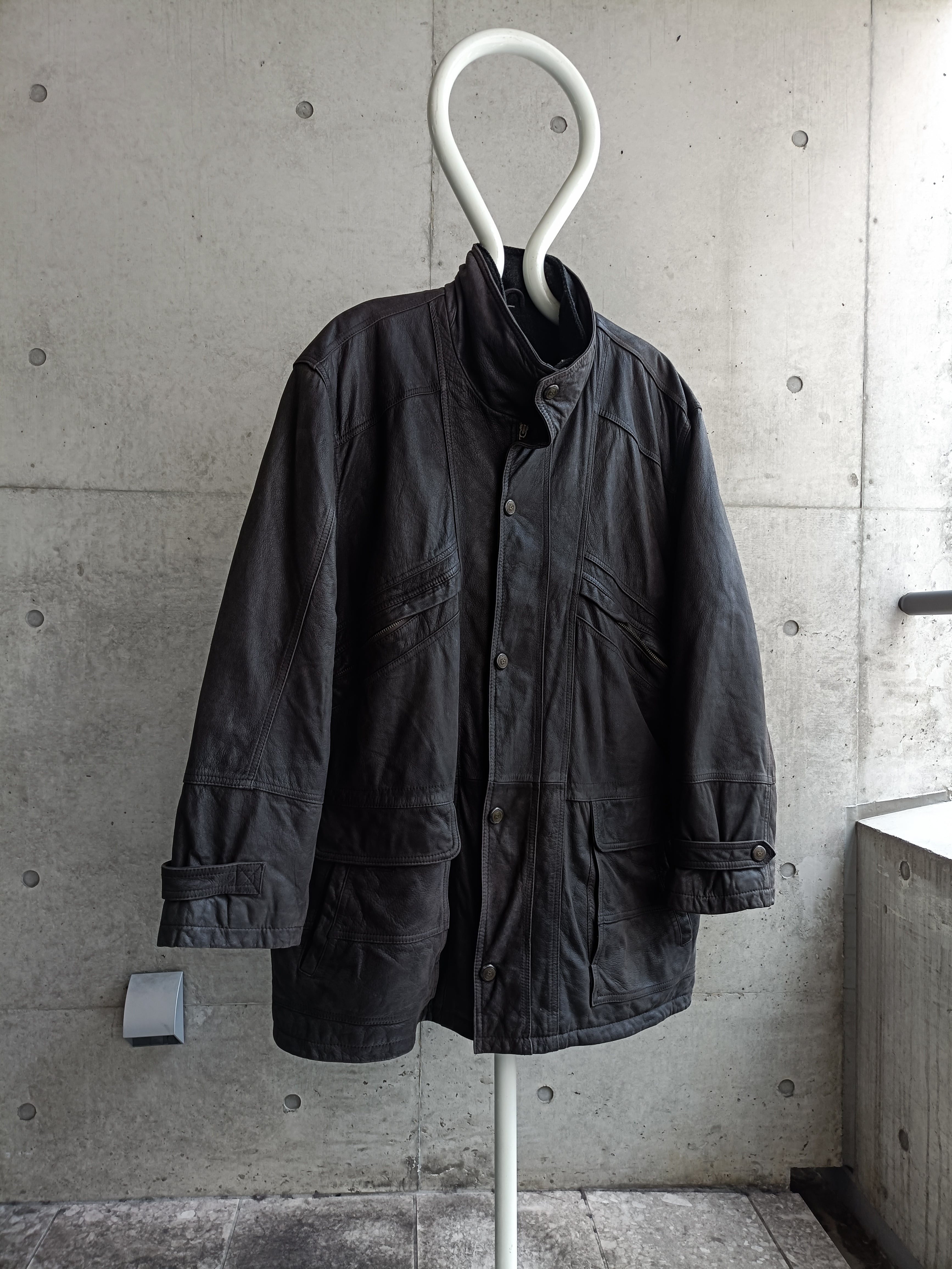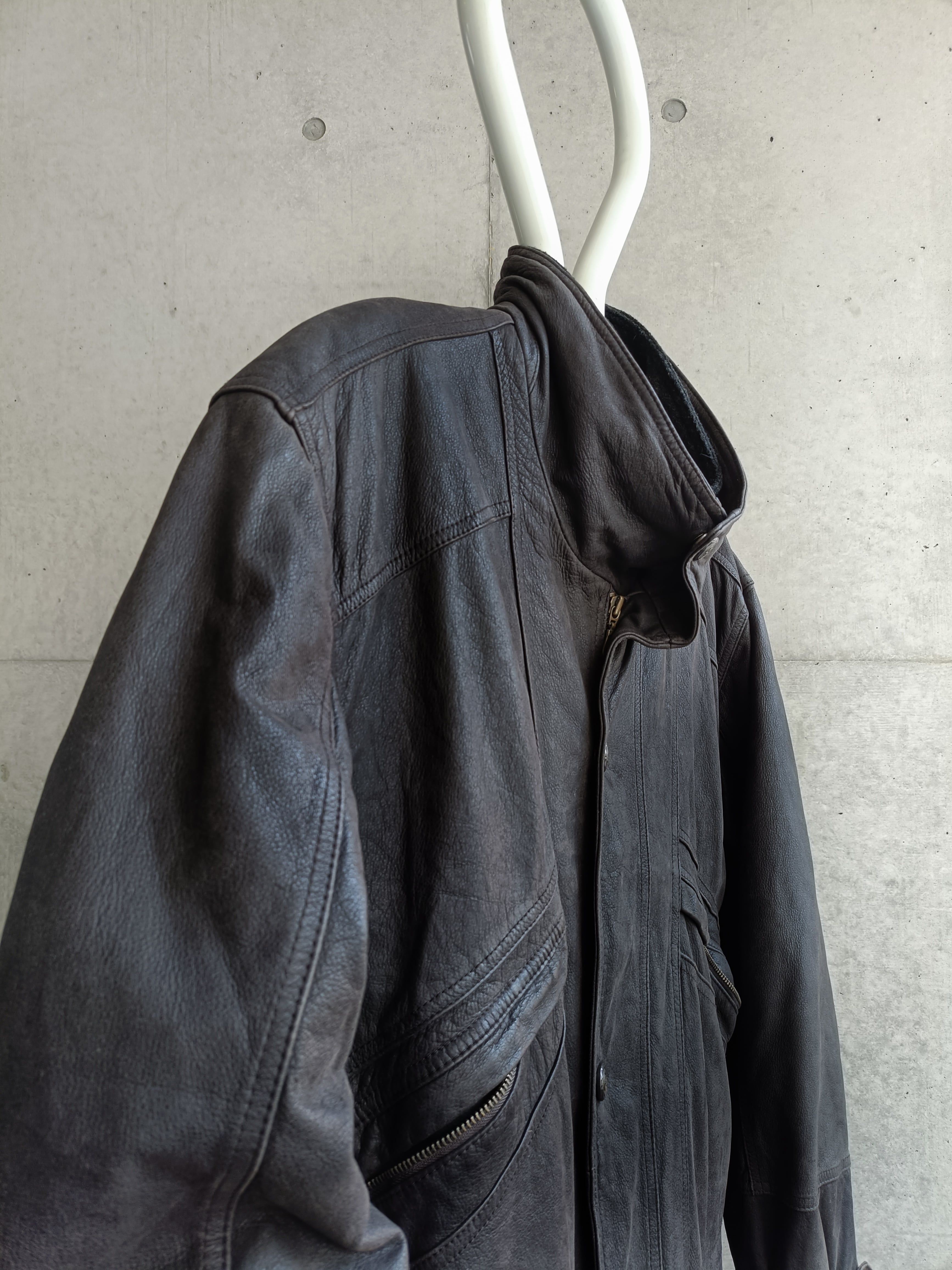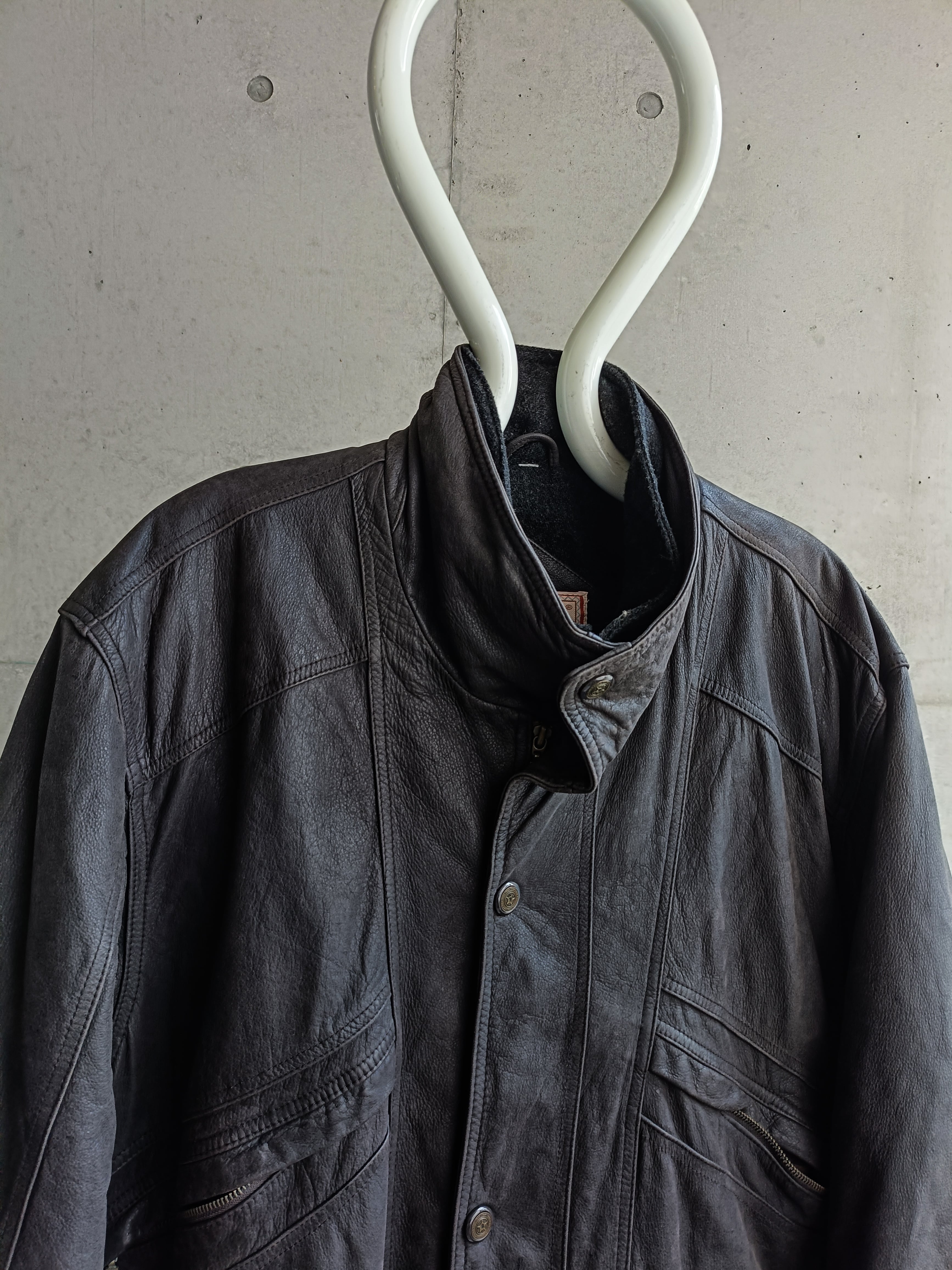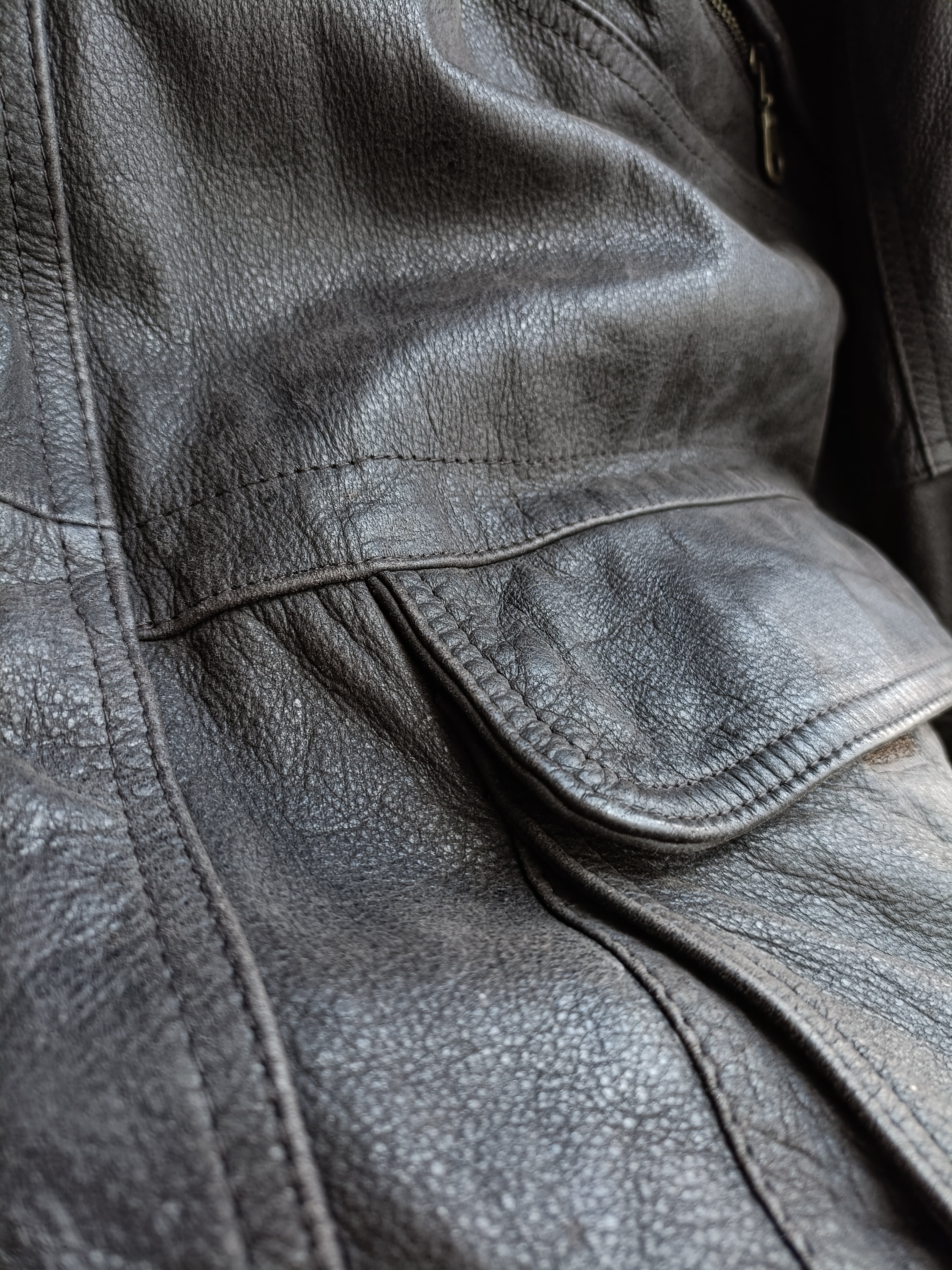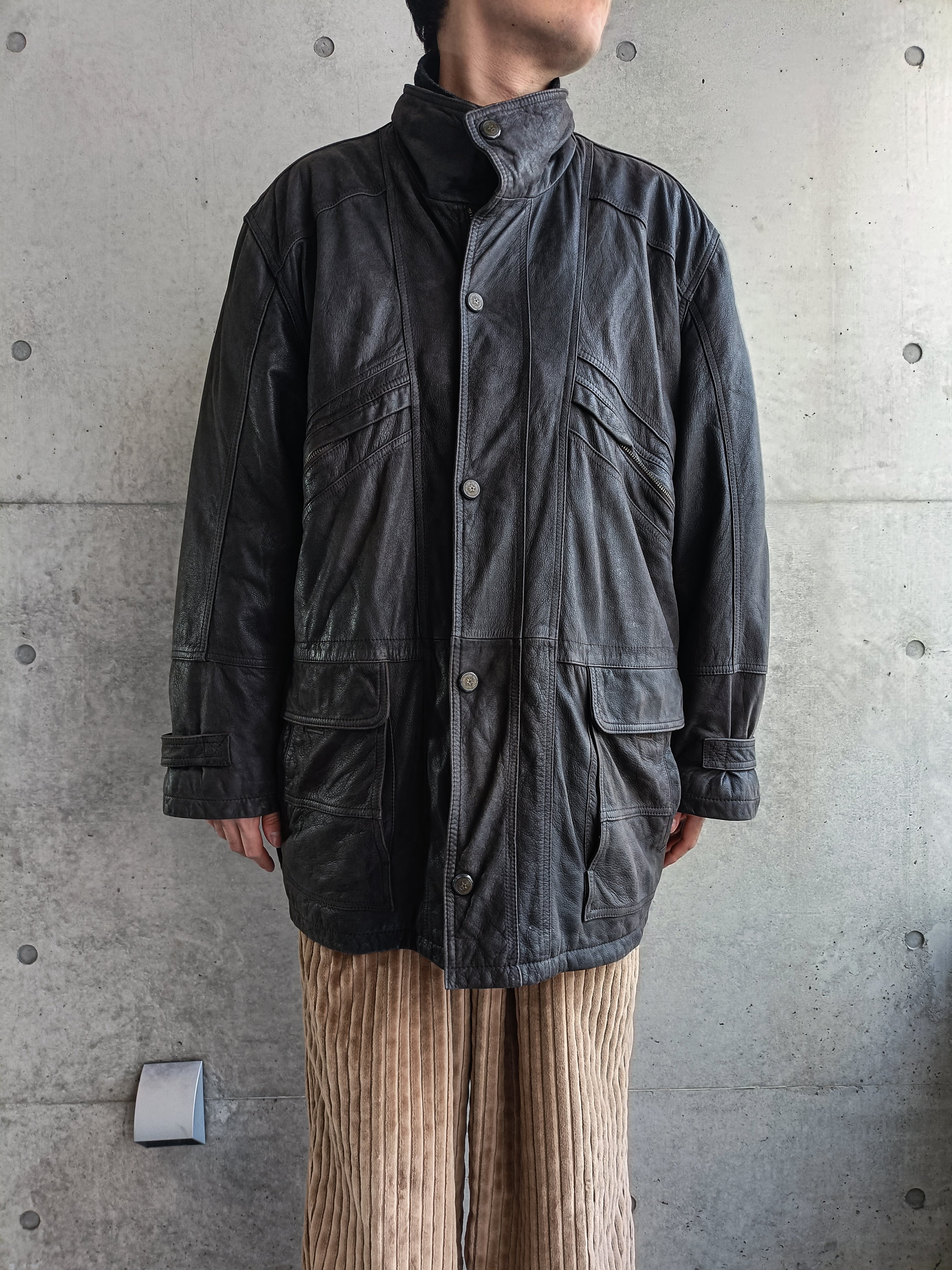 vintage charcoal gray leather coat