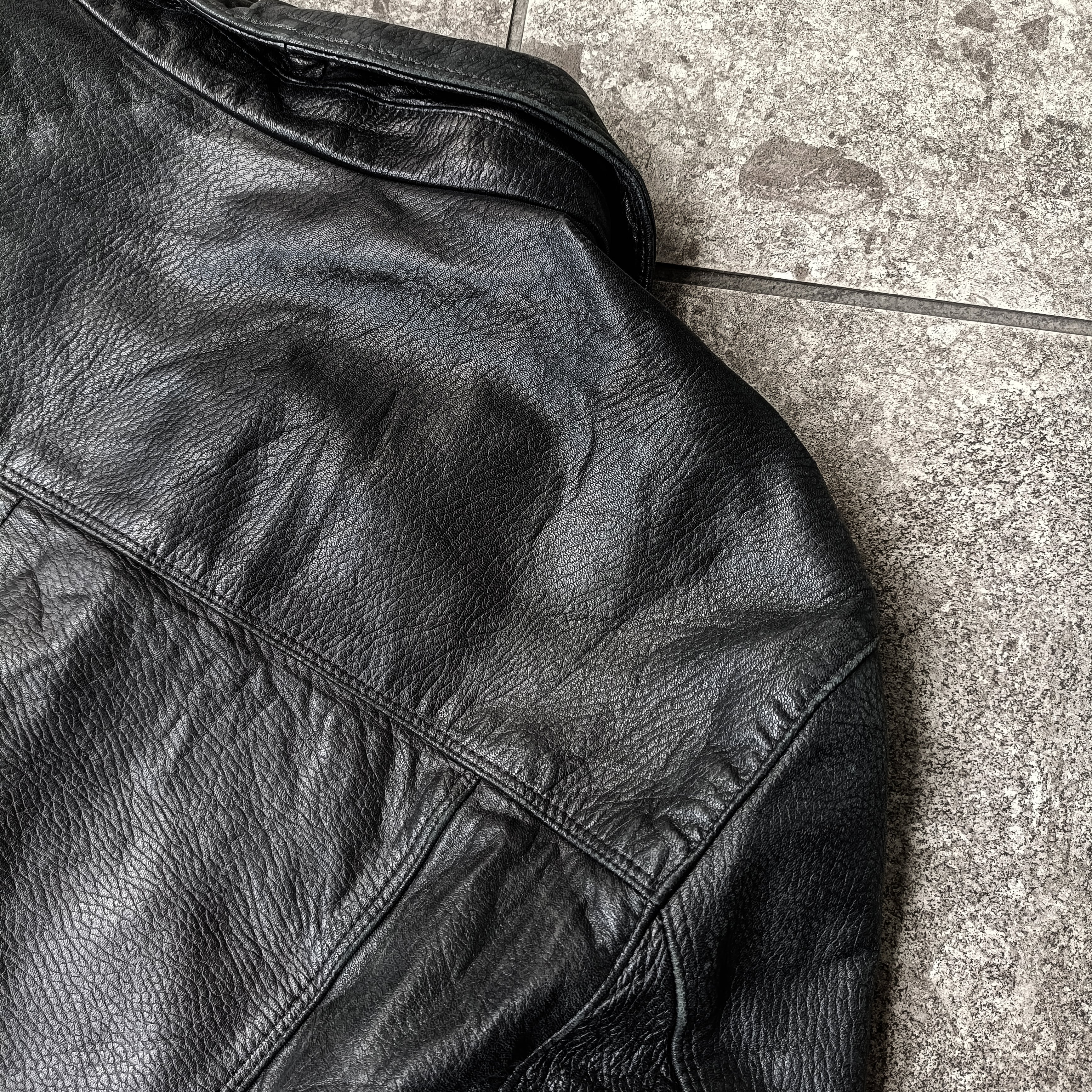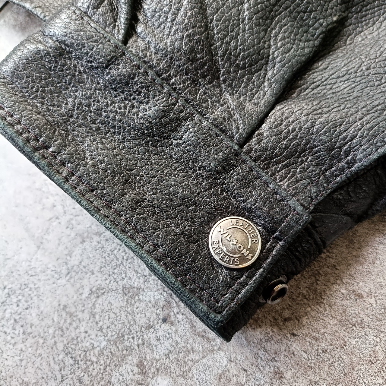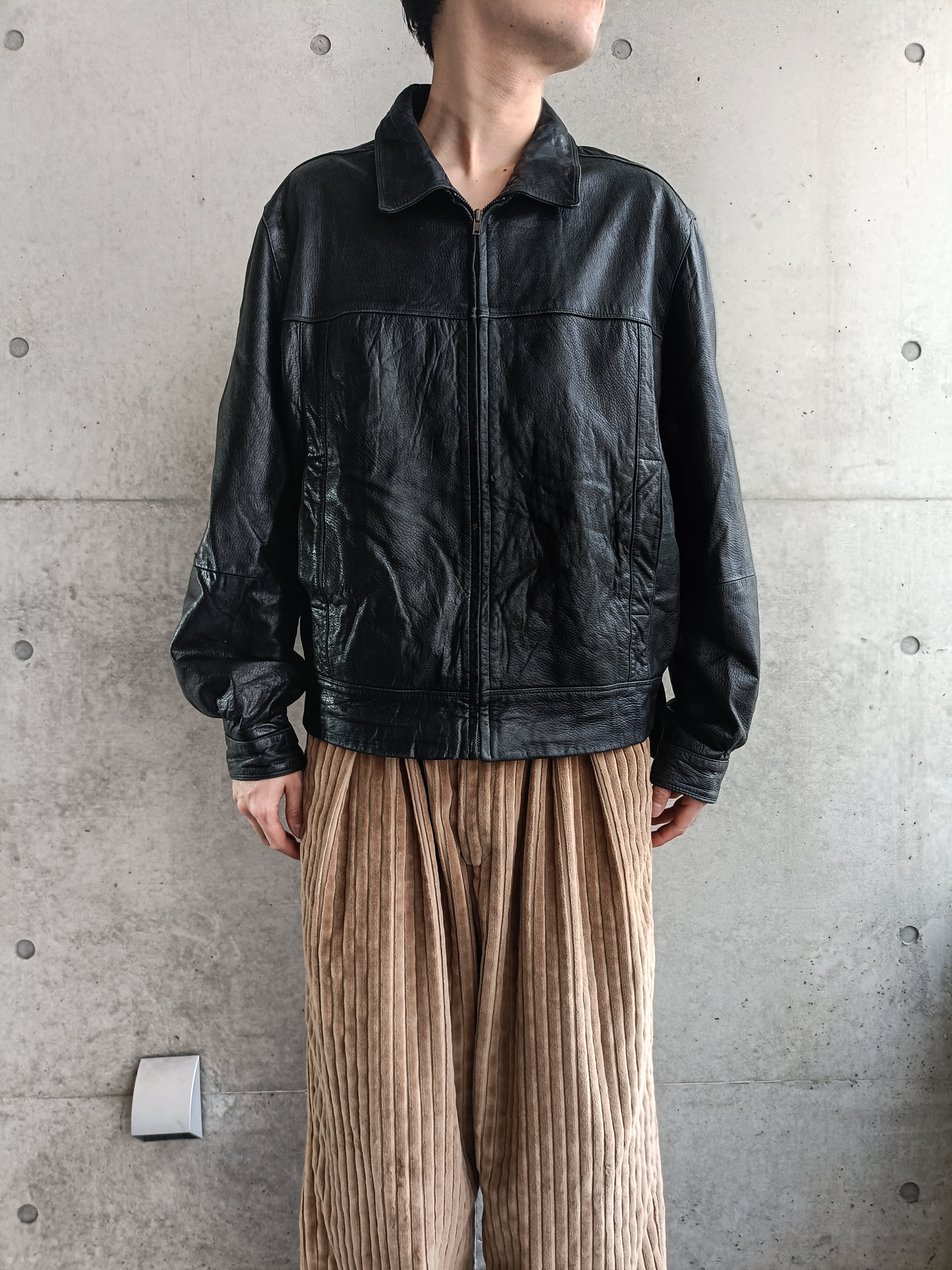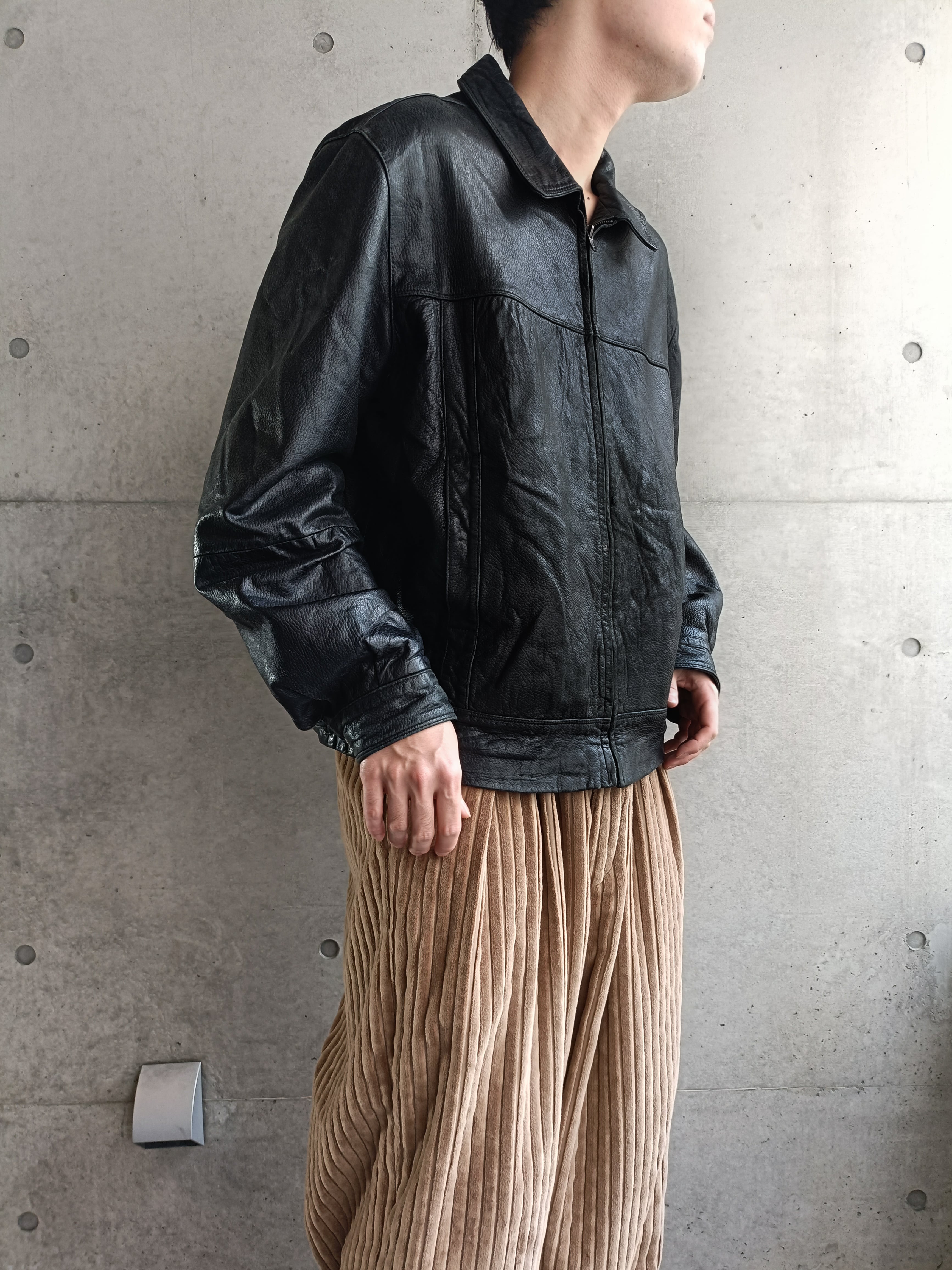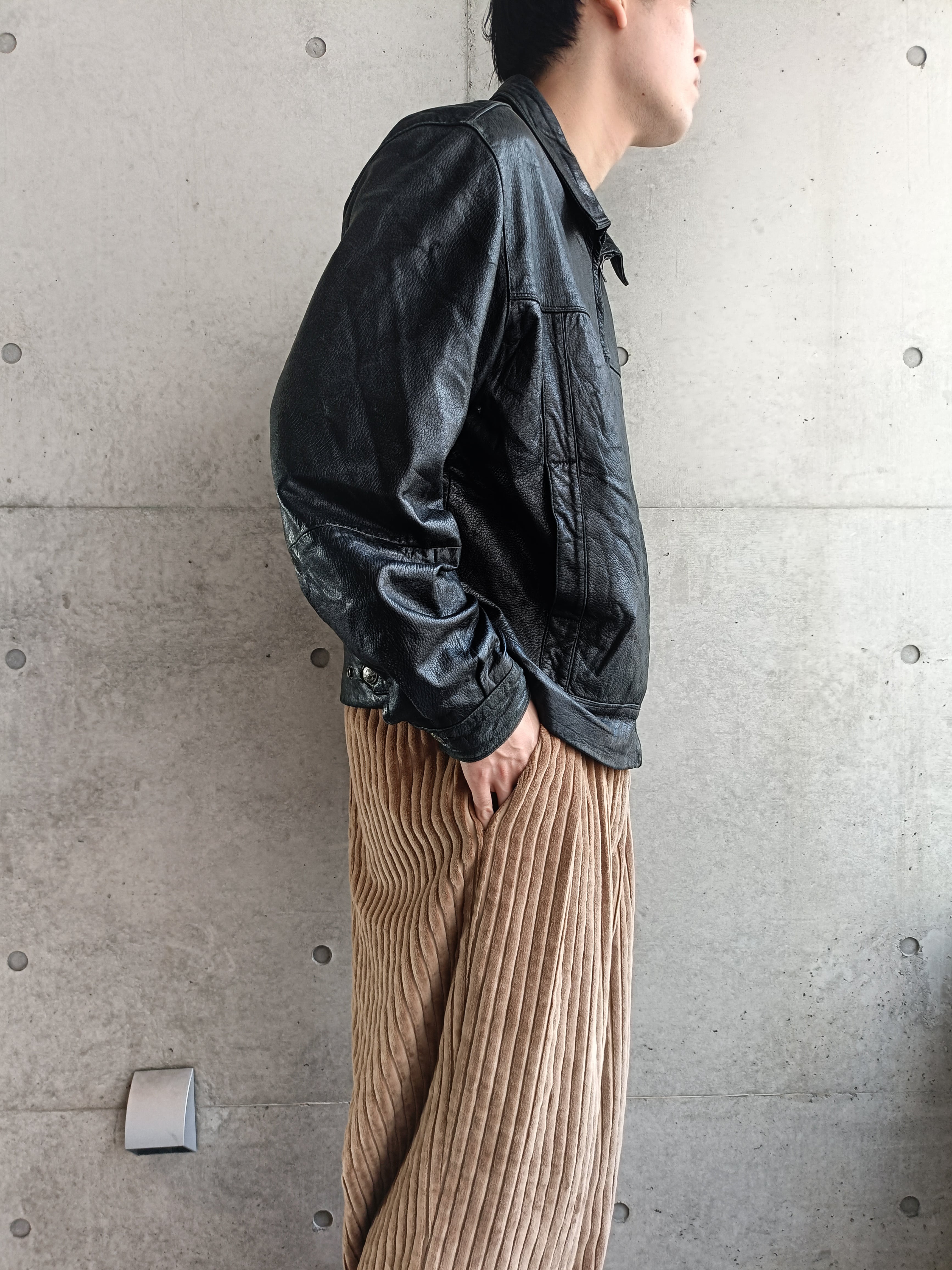 とてつもない高品質なシボ革レザーブルゾンの入荷です。革を薄くするのは技術がいるのですが、これは薄くて軽いのにしっとりした革質。手に吸い付きます。シンプルなドリズラー型。袖もタック入りで横からのシルエットも綺麗です。