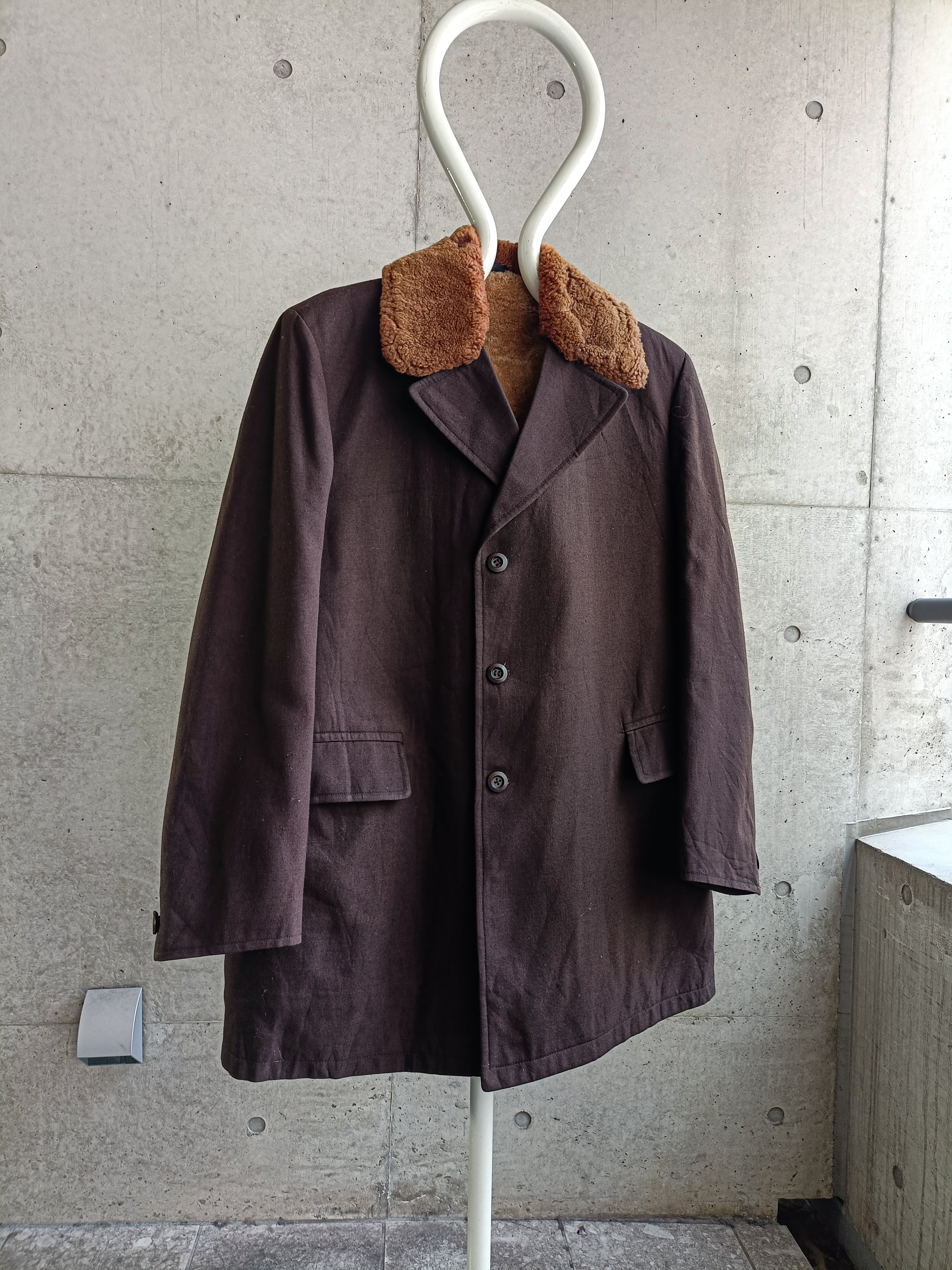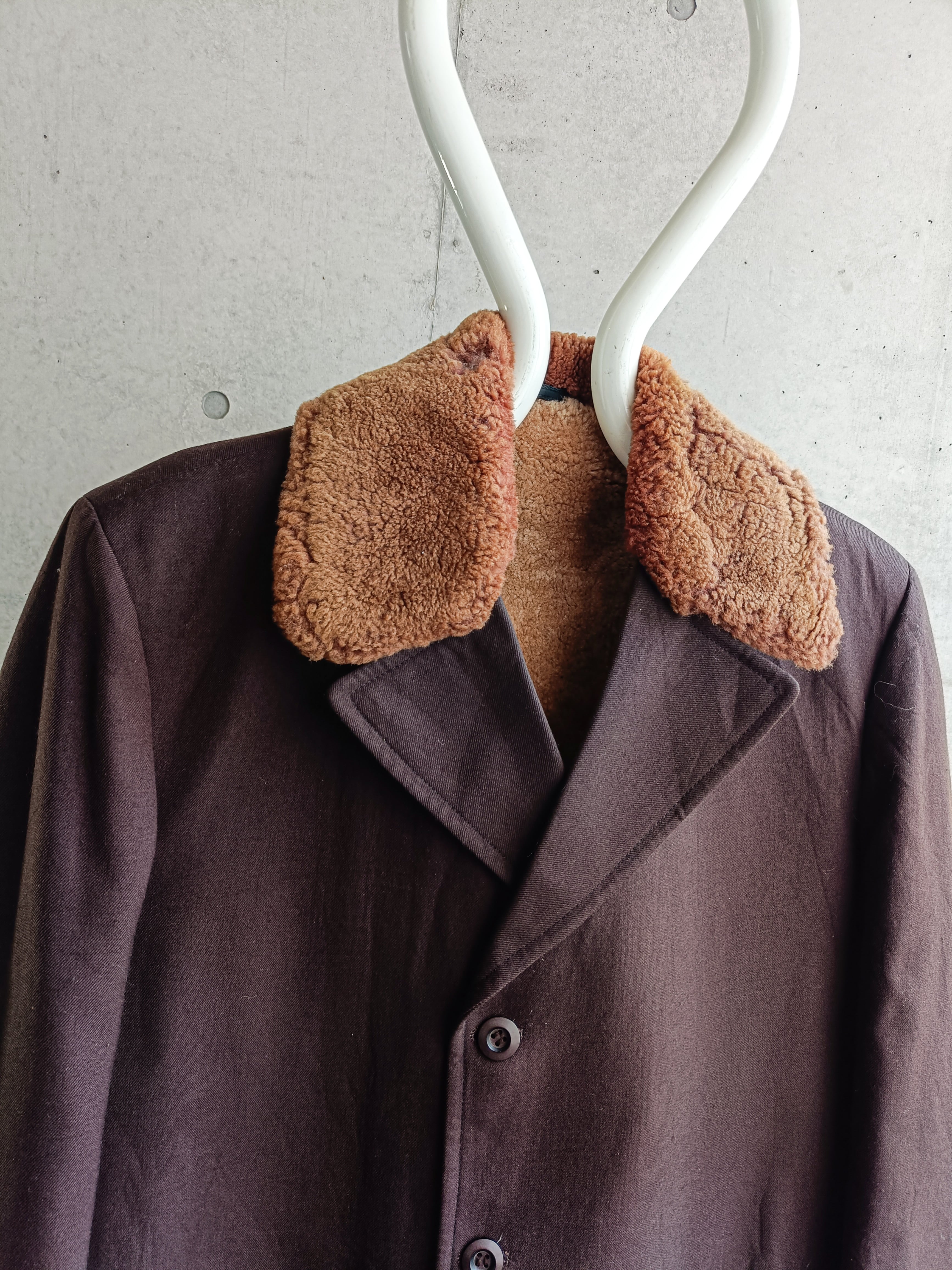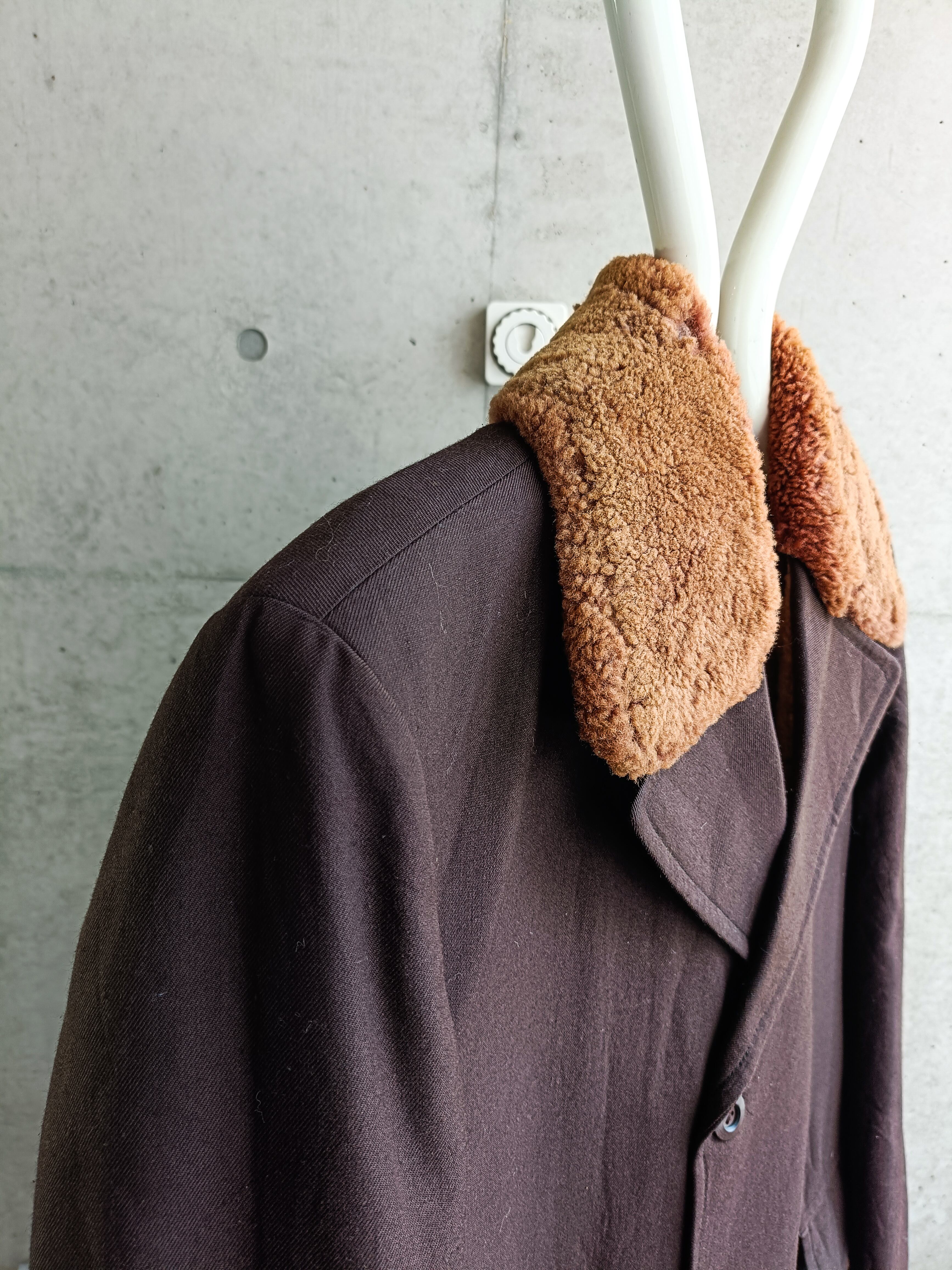 vintage 60s brown wool serge boa collar coat