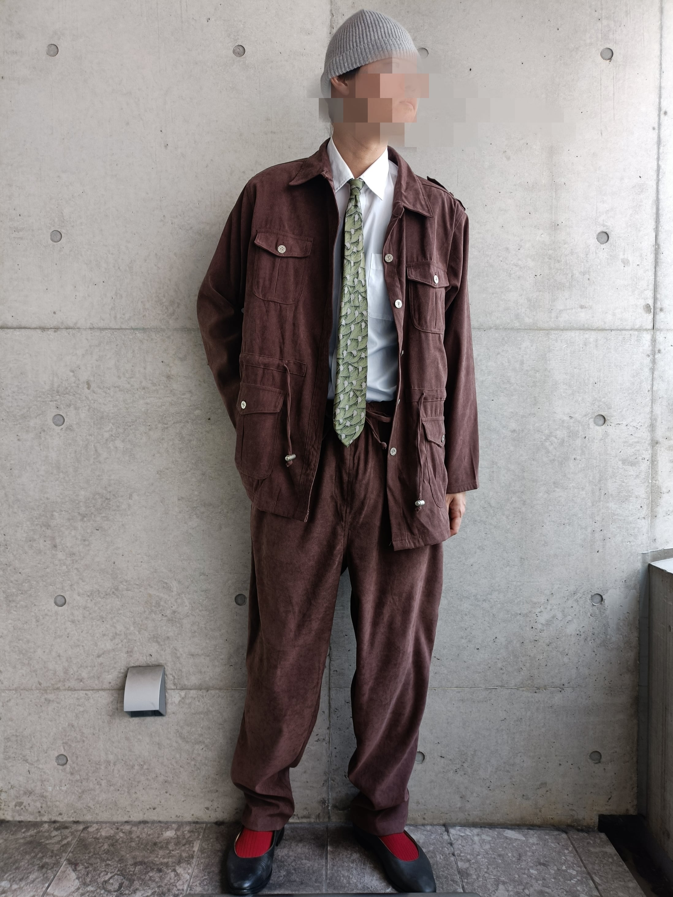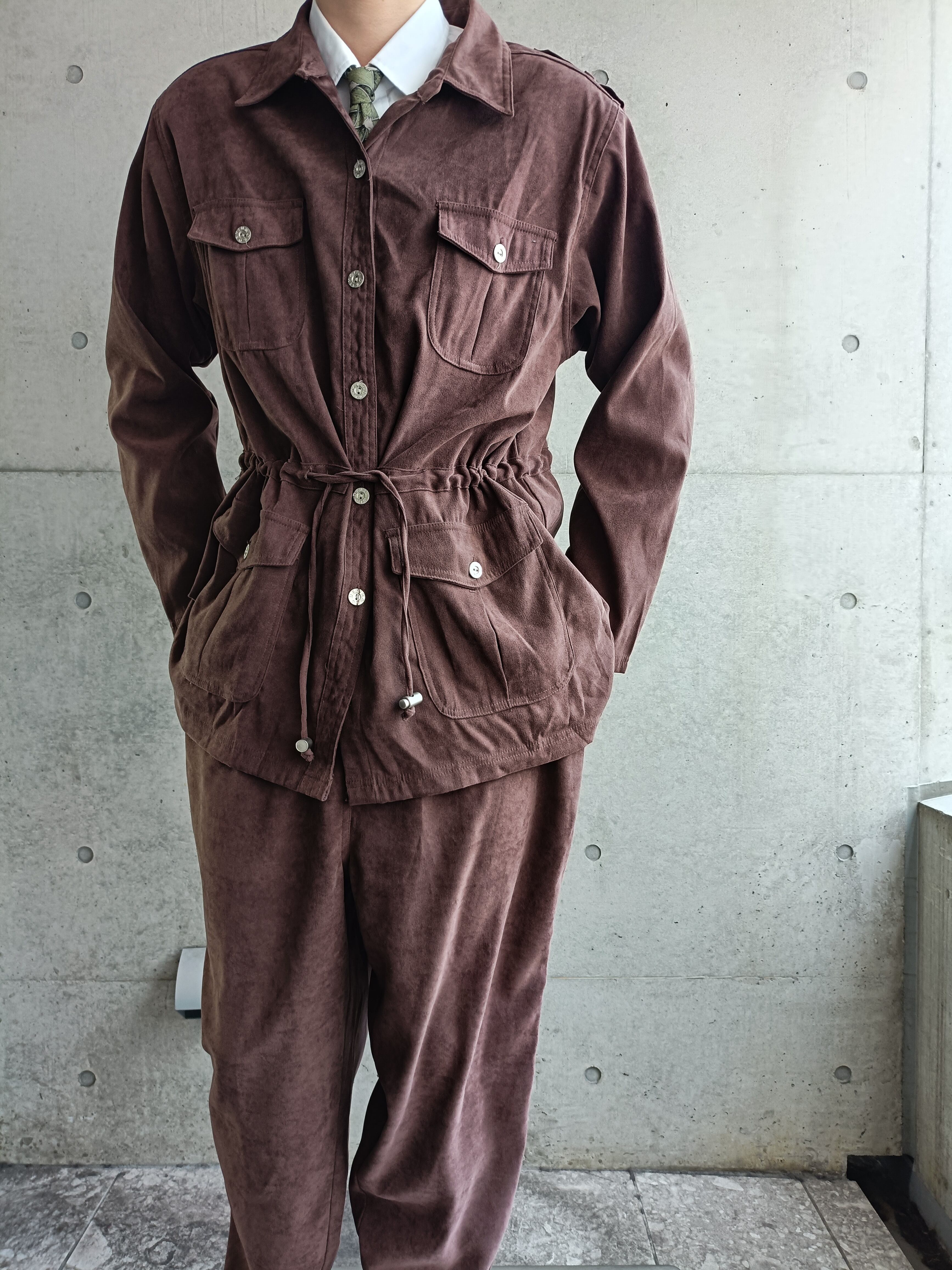 スペシャルなセットアップの入荷です。カジュアルで使えるスムース生地のセットアップ。スーツ以外のセットアップ探してますが、皆無です。ブラウンにシルバーのメタルボタン。上下別々でも使い易いです。ウエスト絞って着るスタイリングもオススメです。