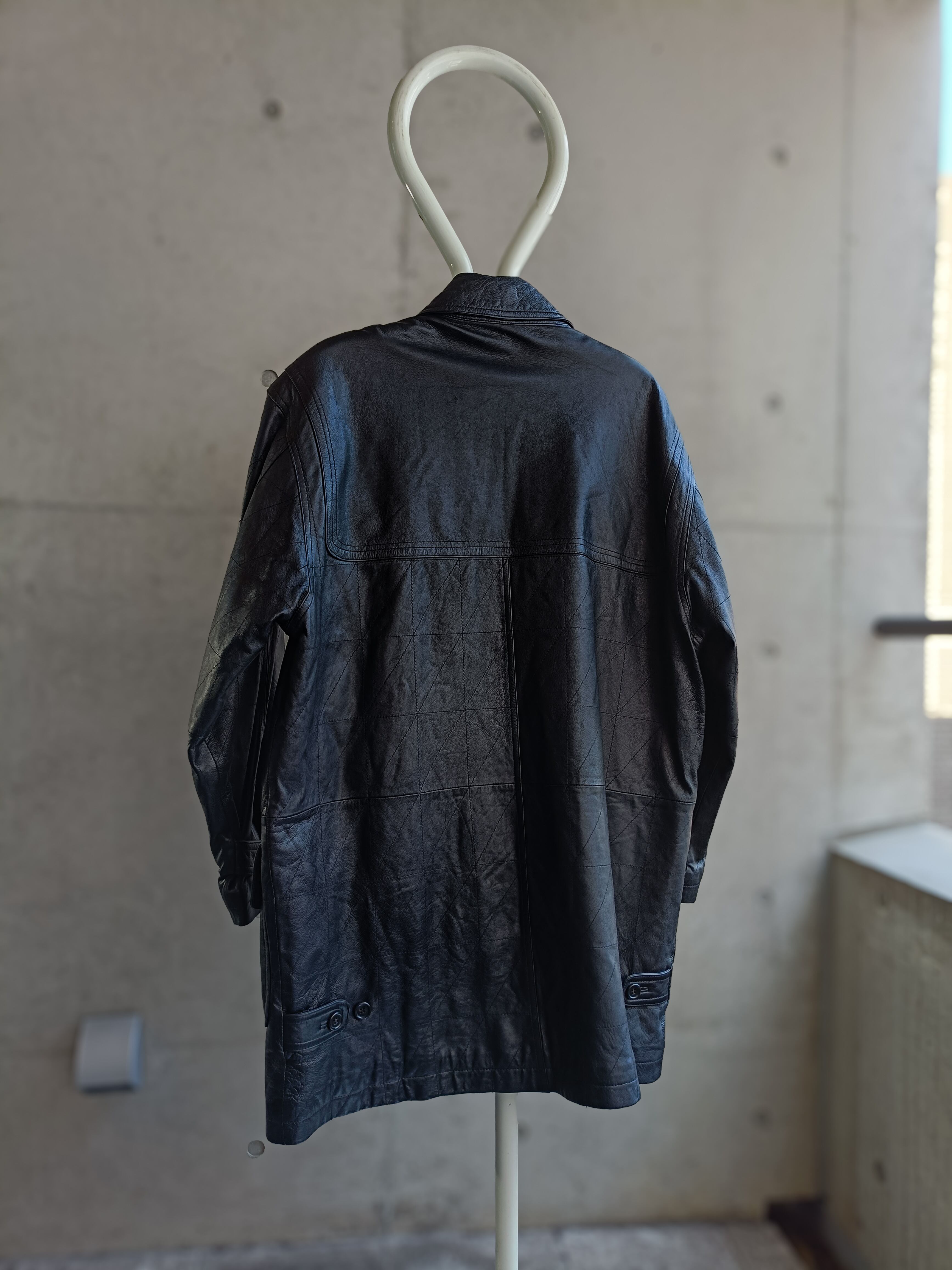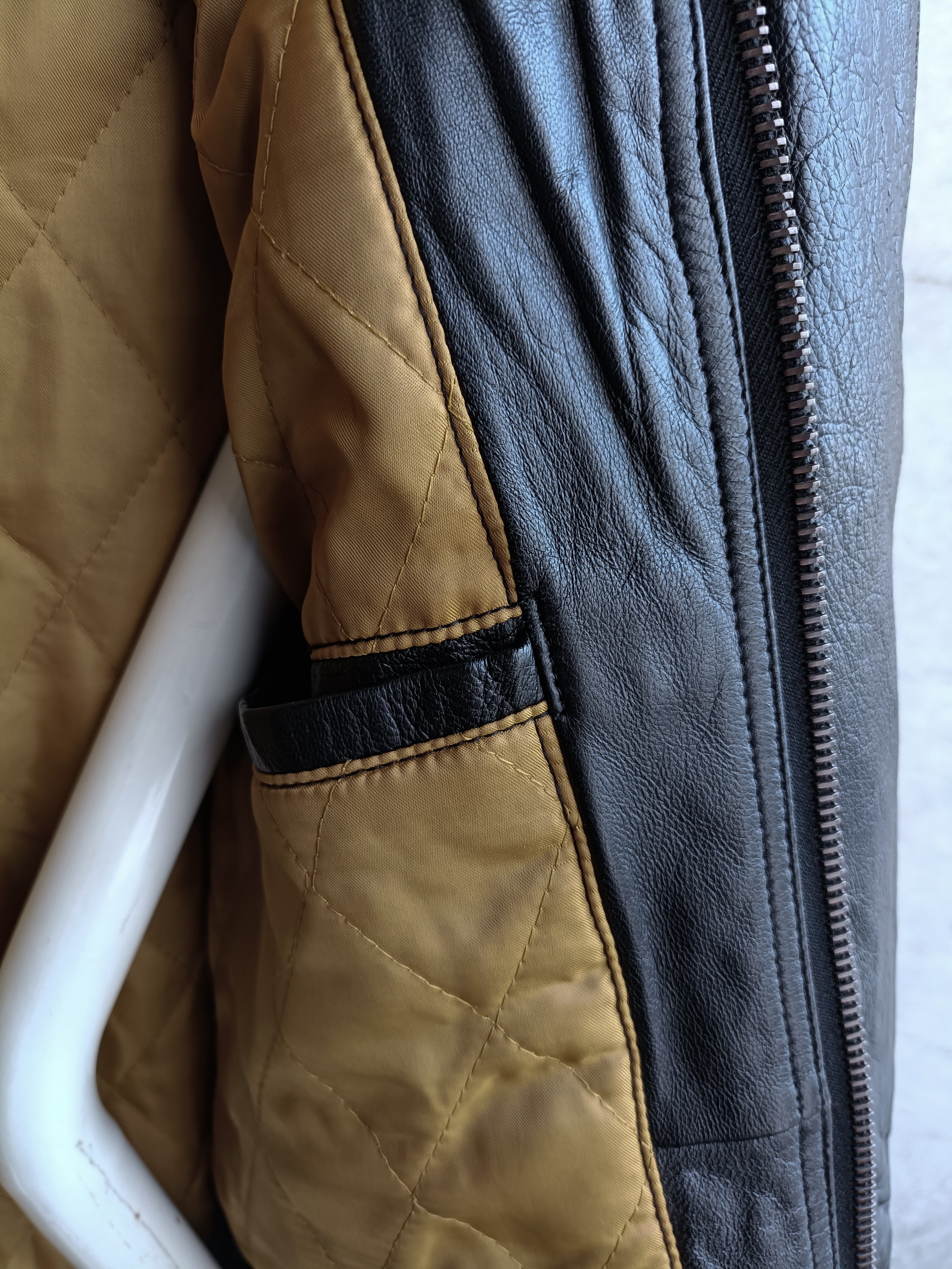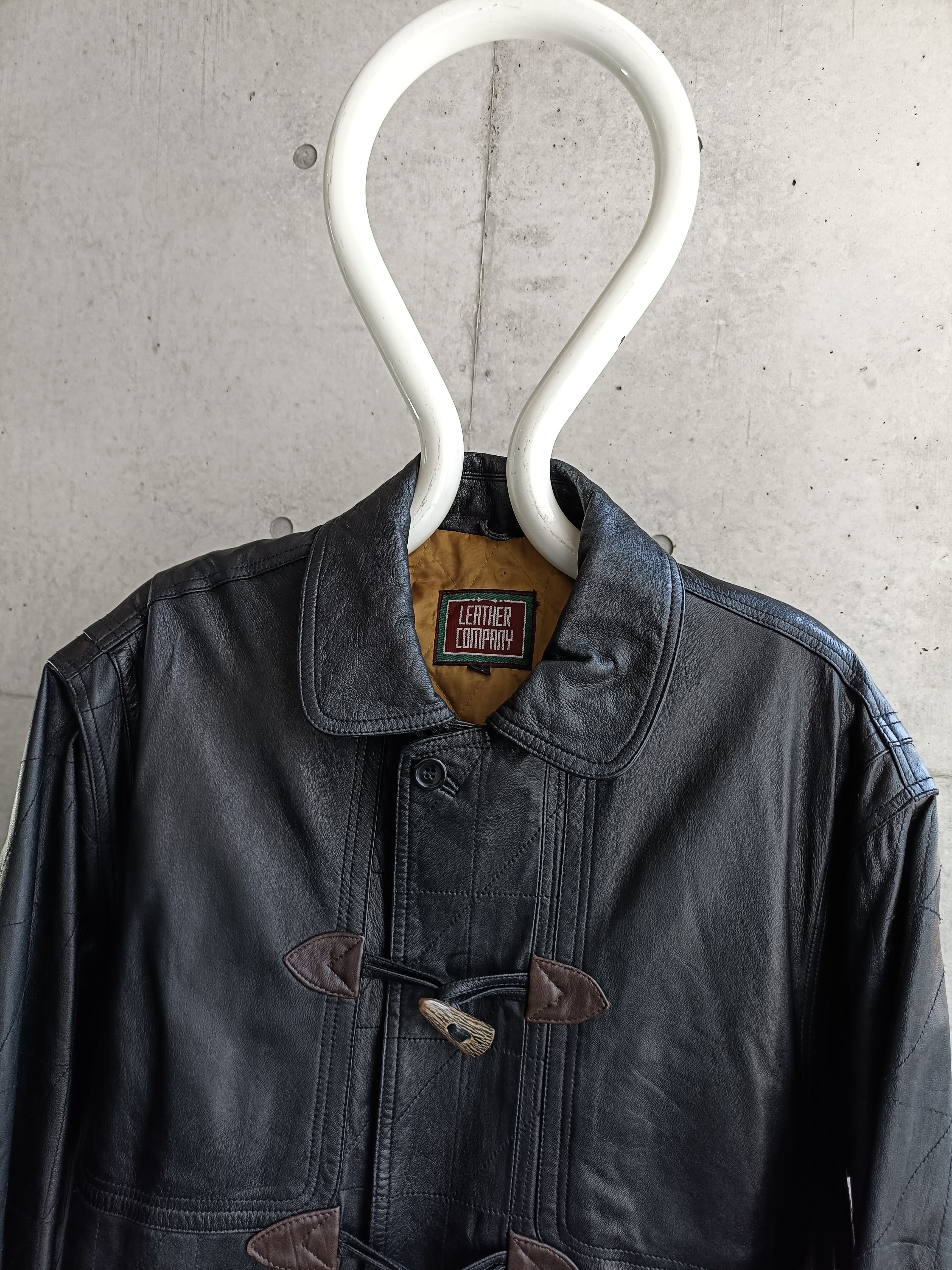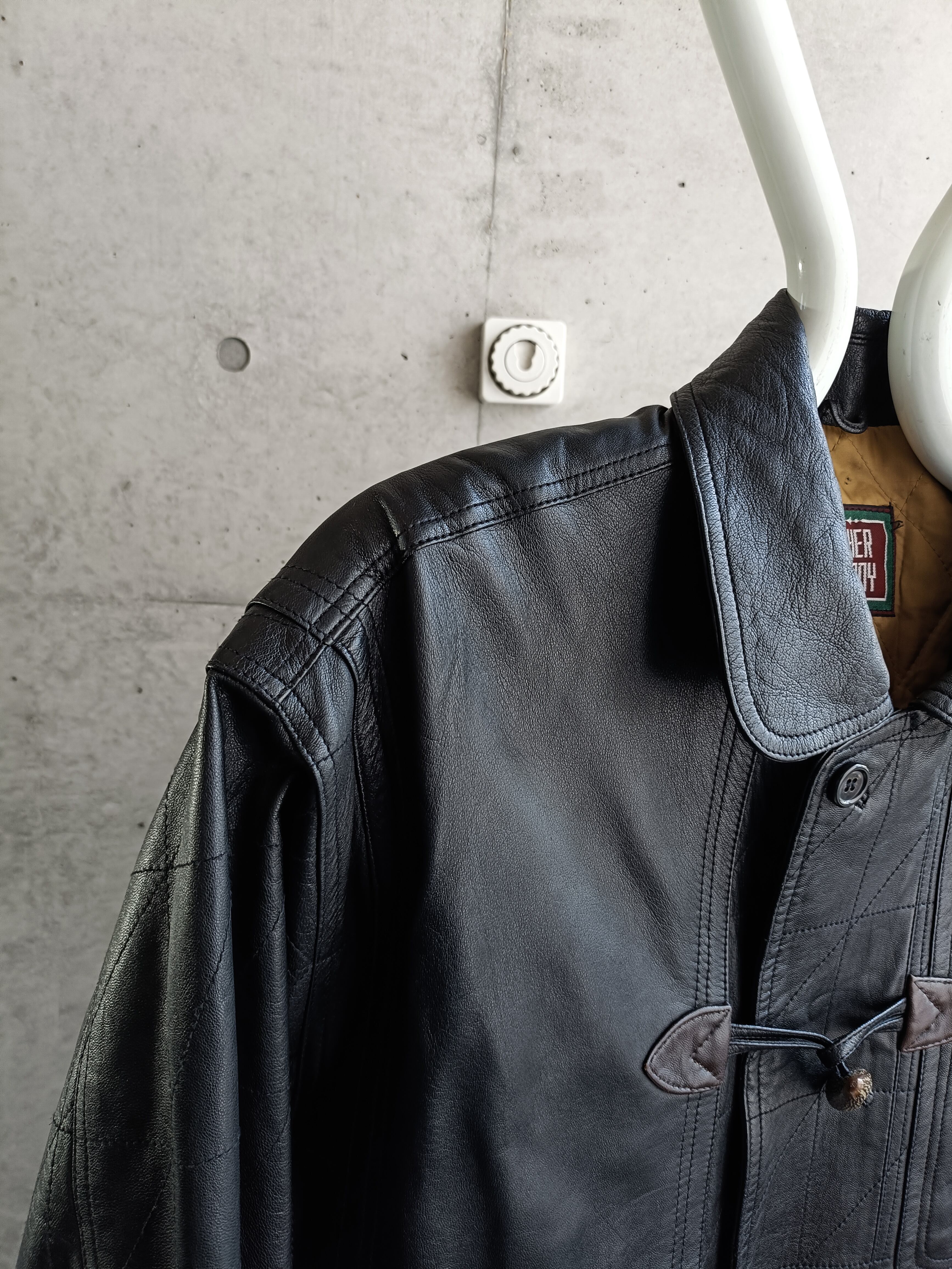 ブラックのレザーダッフルコートの入荷です。モチモチな薄いラムレザー。ジップはririジップです。袖ベルトで袖に溜まりができるのもポイント。裏地は中綿入りです。