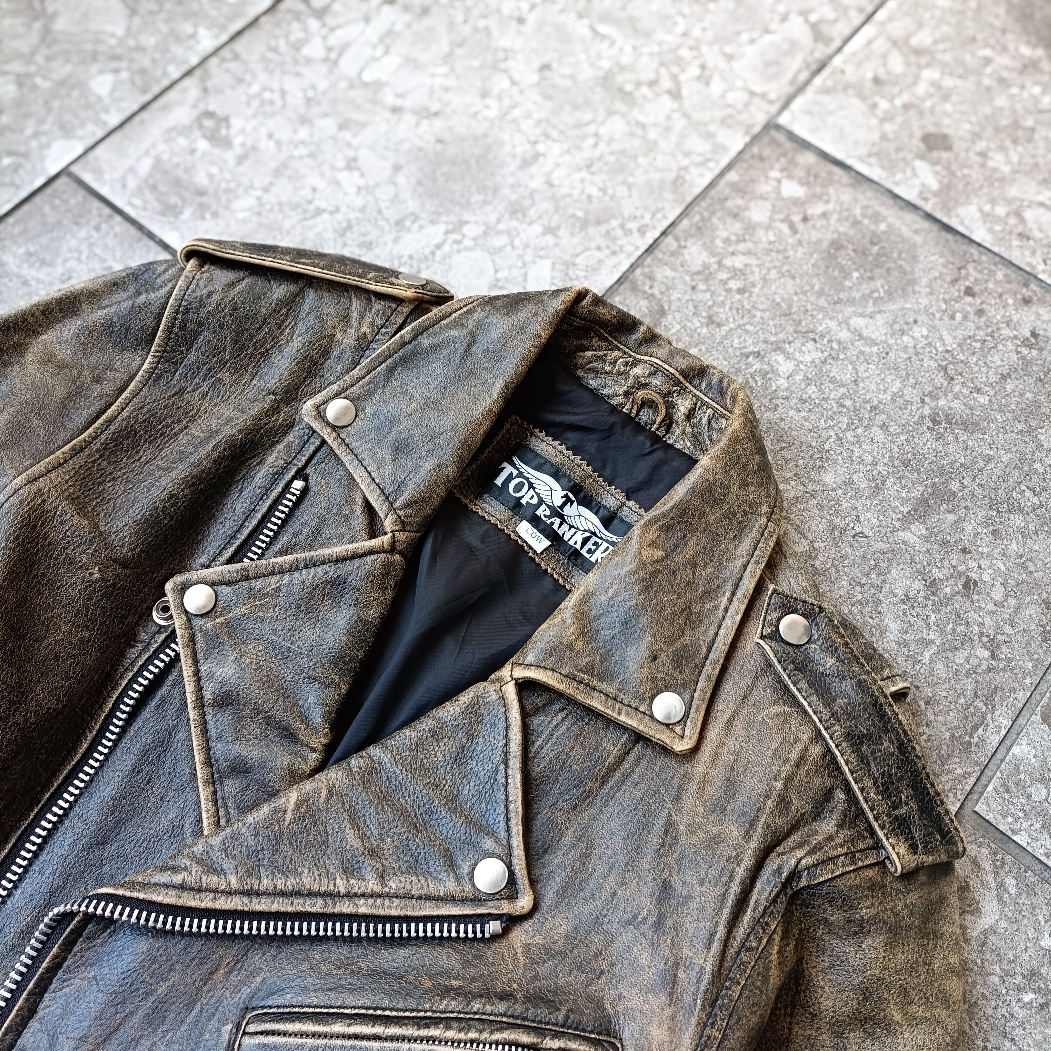 vintage damaged cow leather riders blouson