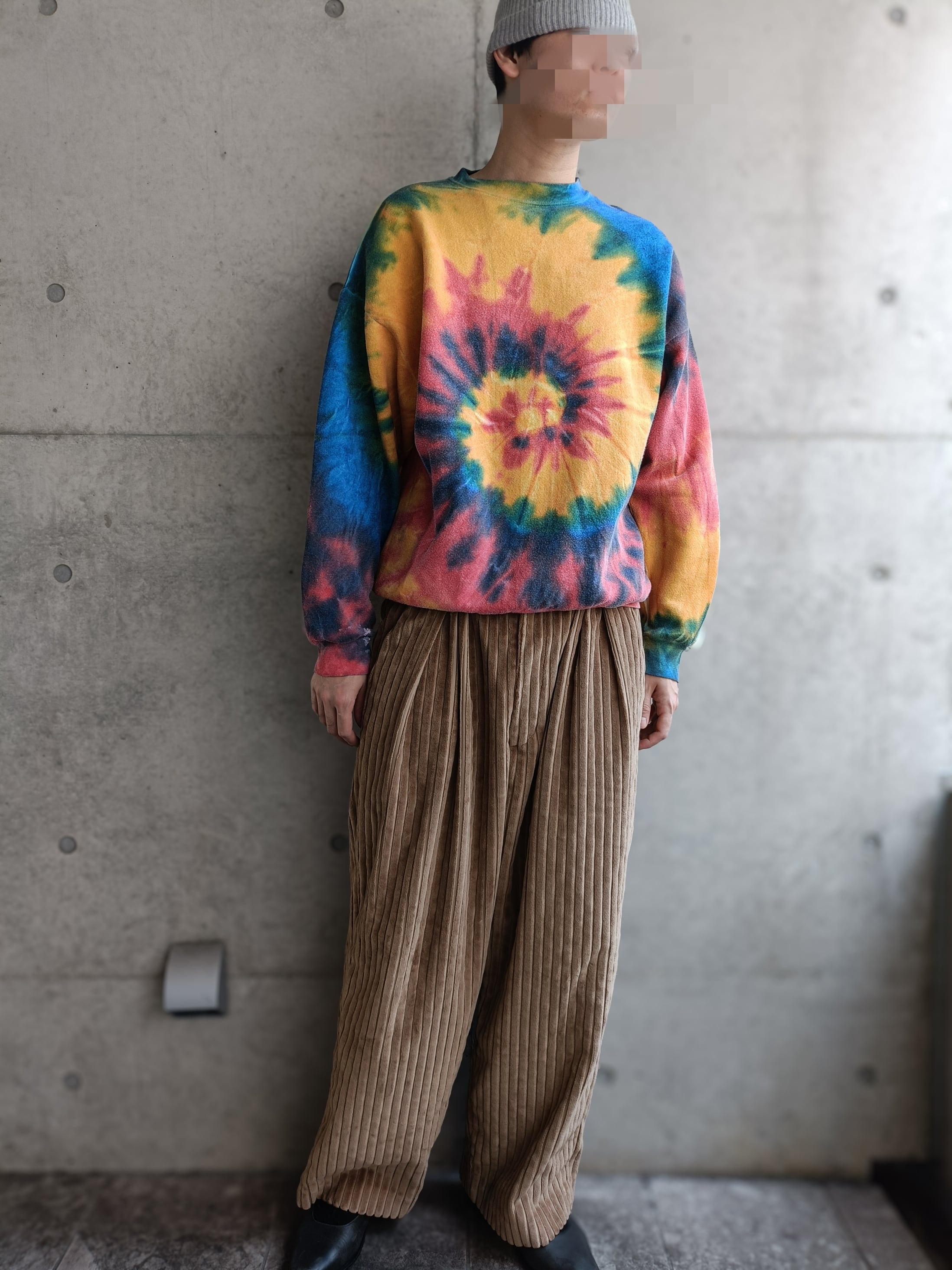 USA製のタイダイスウェット。ボディはTULTEX。アーム太くて、着やすいシルエット。本日のスタイリングでも大活躍だった一着です。