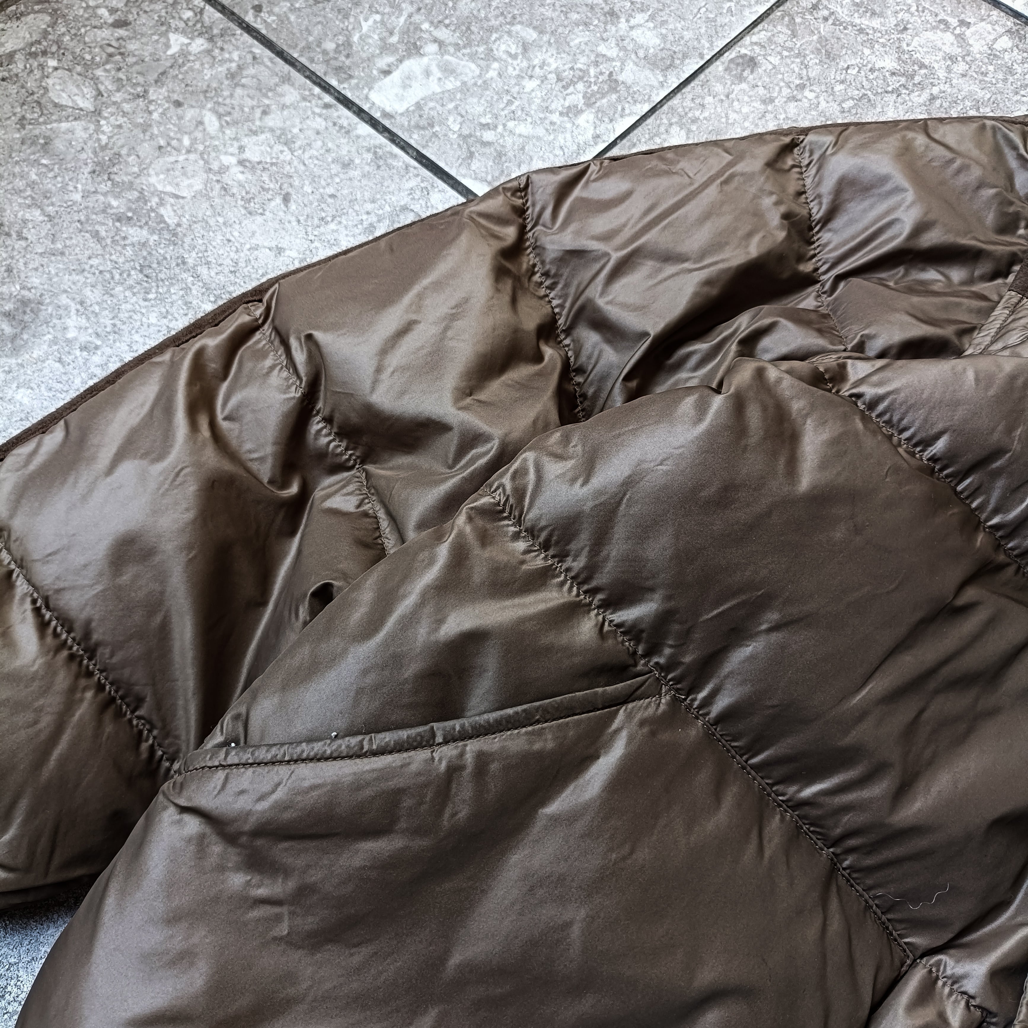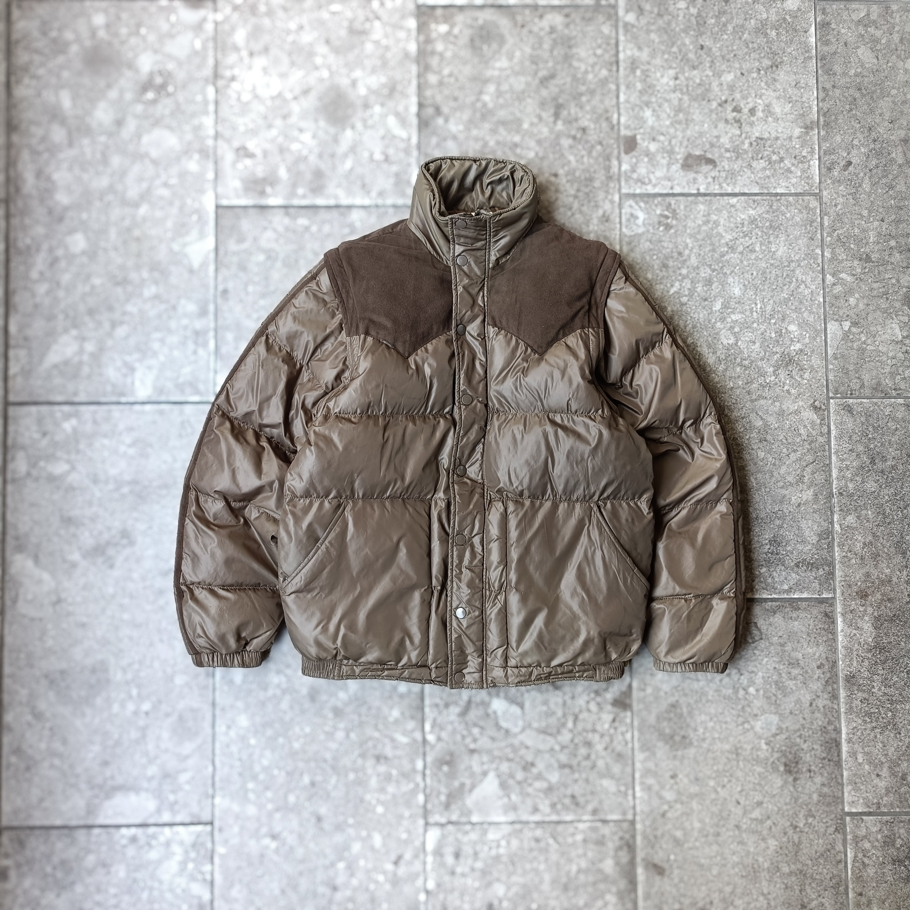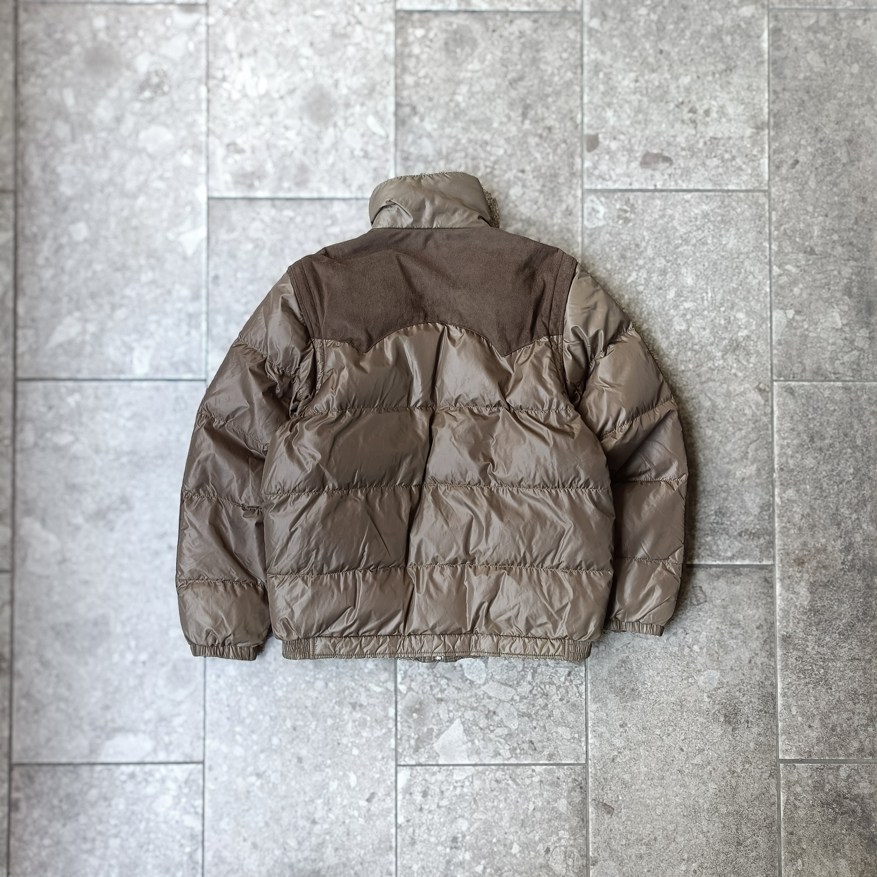 vintage moca brown micro suede switching puffer jacket