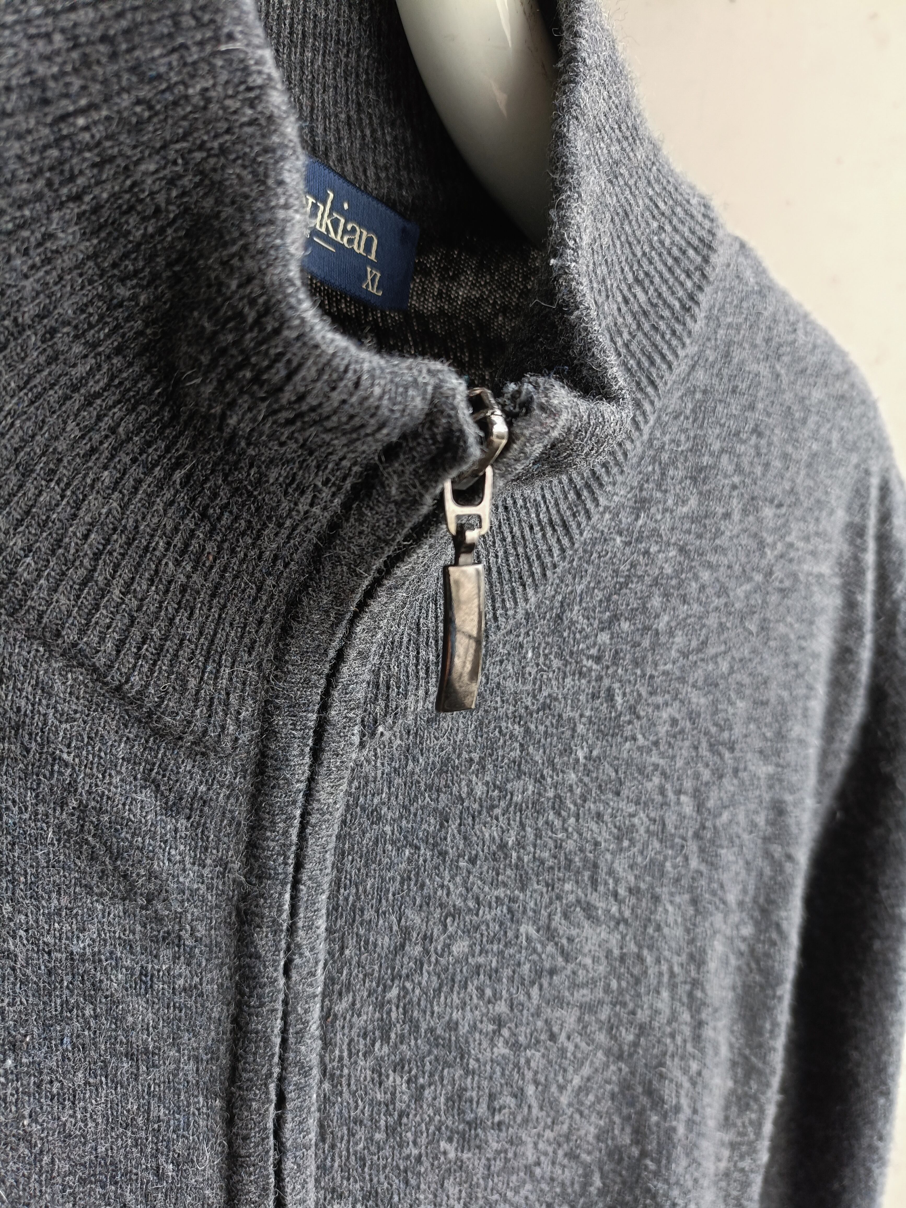 チャコールカラーのカシミヤニット。カシミヤニットで珍しいジップアップ型。ジップも棒ジップなのが最高です。着回し力高くて、本日のスタイリングでも大活躍したニットです。