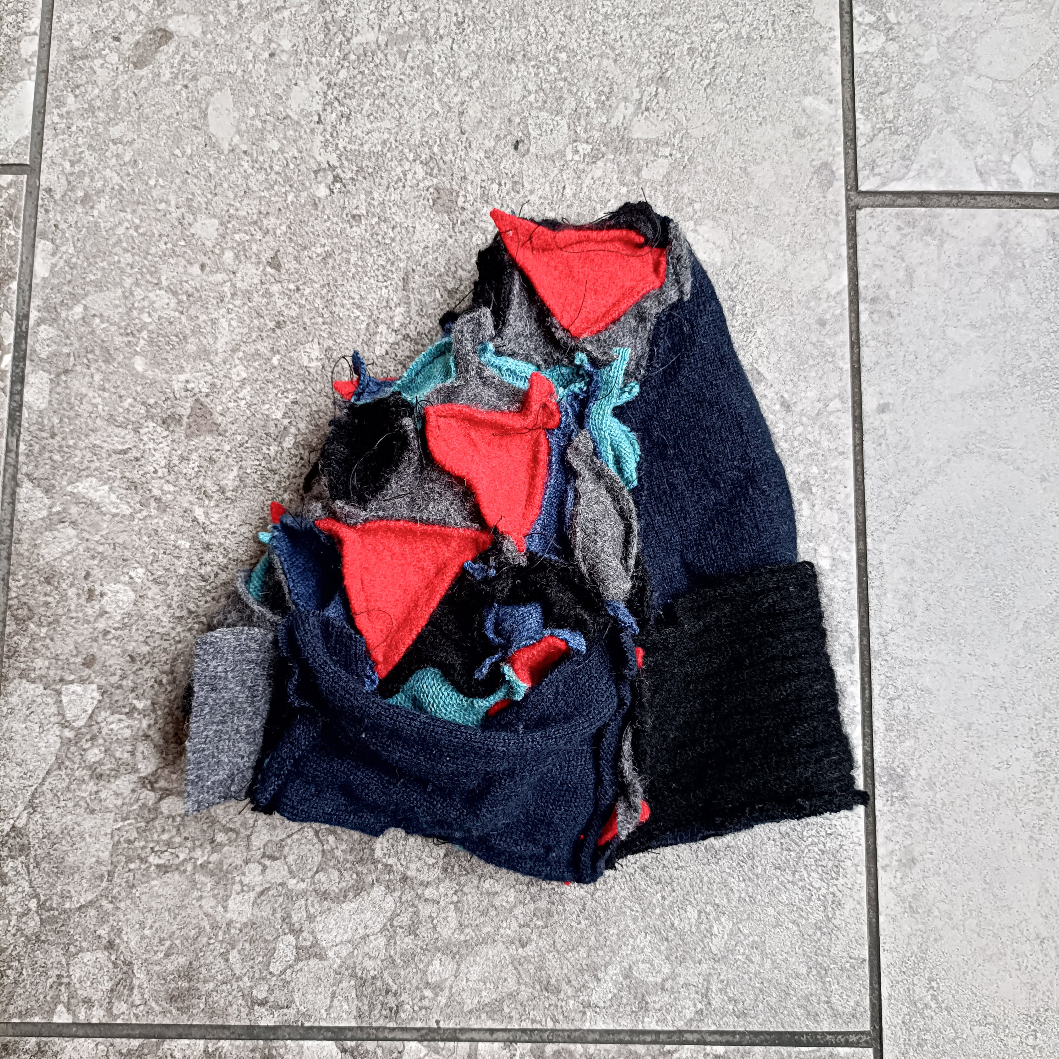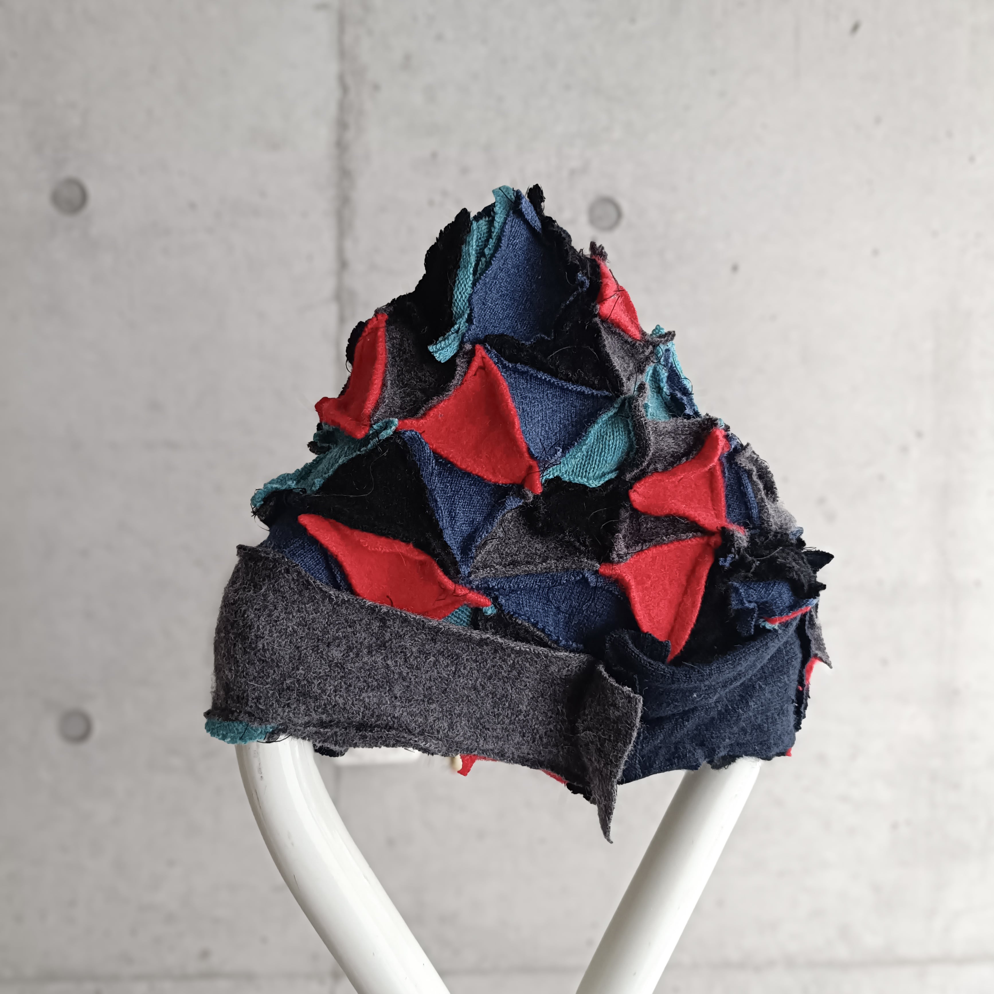スペシャル。全てヴィンテージのカシミヤ生地を使用したパッチワークニットキャップ。カシミヤ100%なのに、このラフさとバランス感。黒もリブ編みのカシミヤが使われていて面白いです。