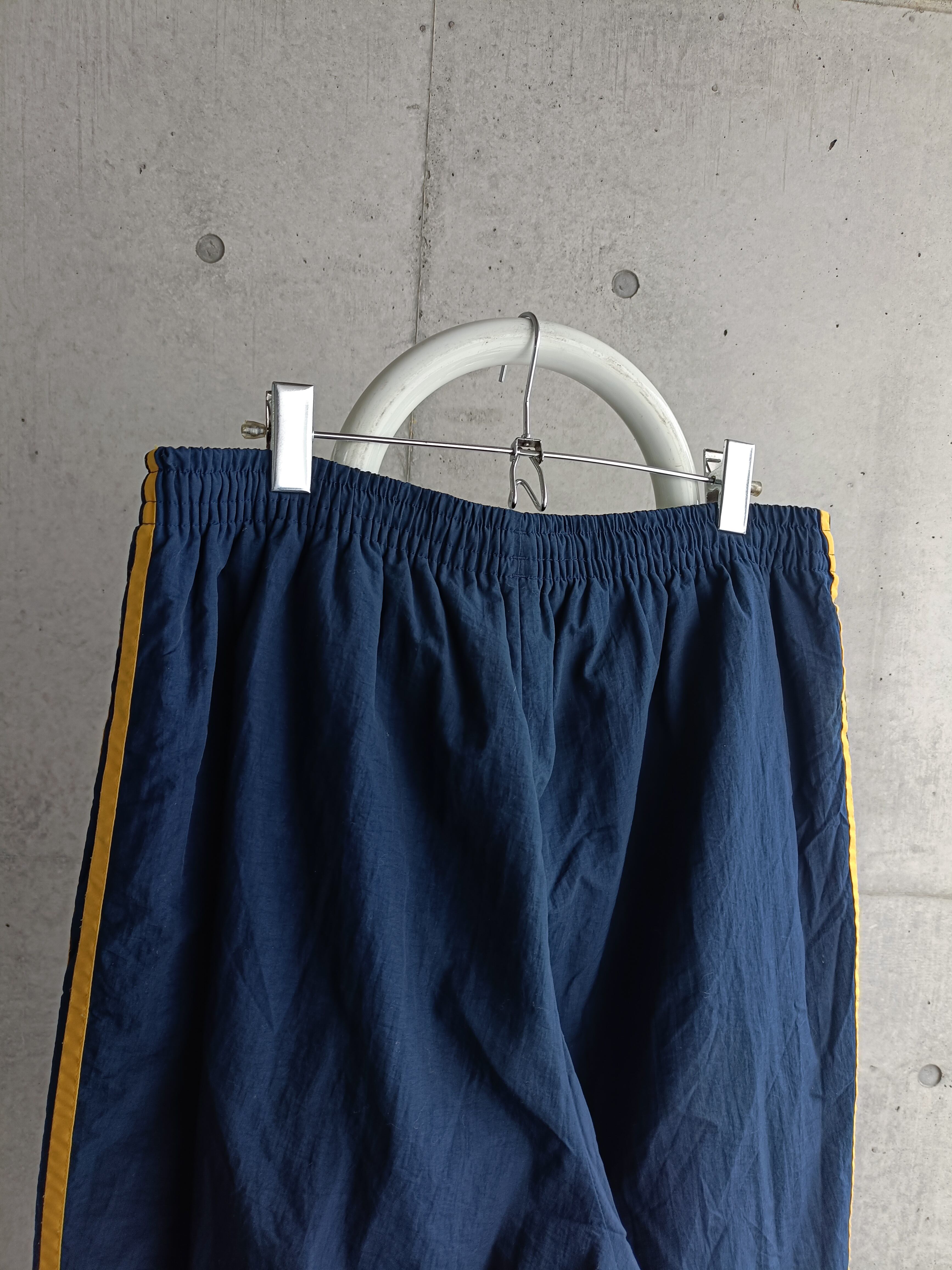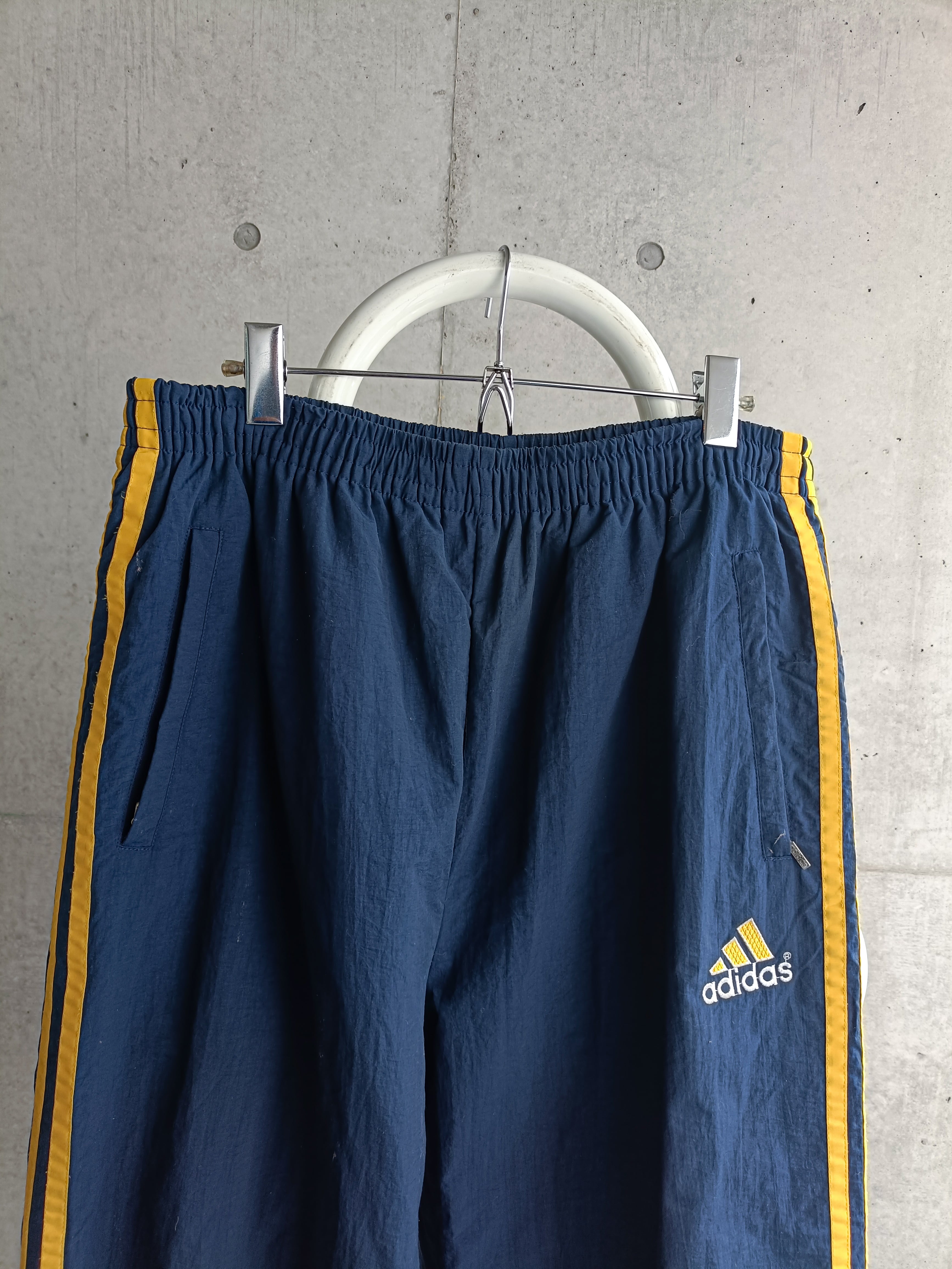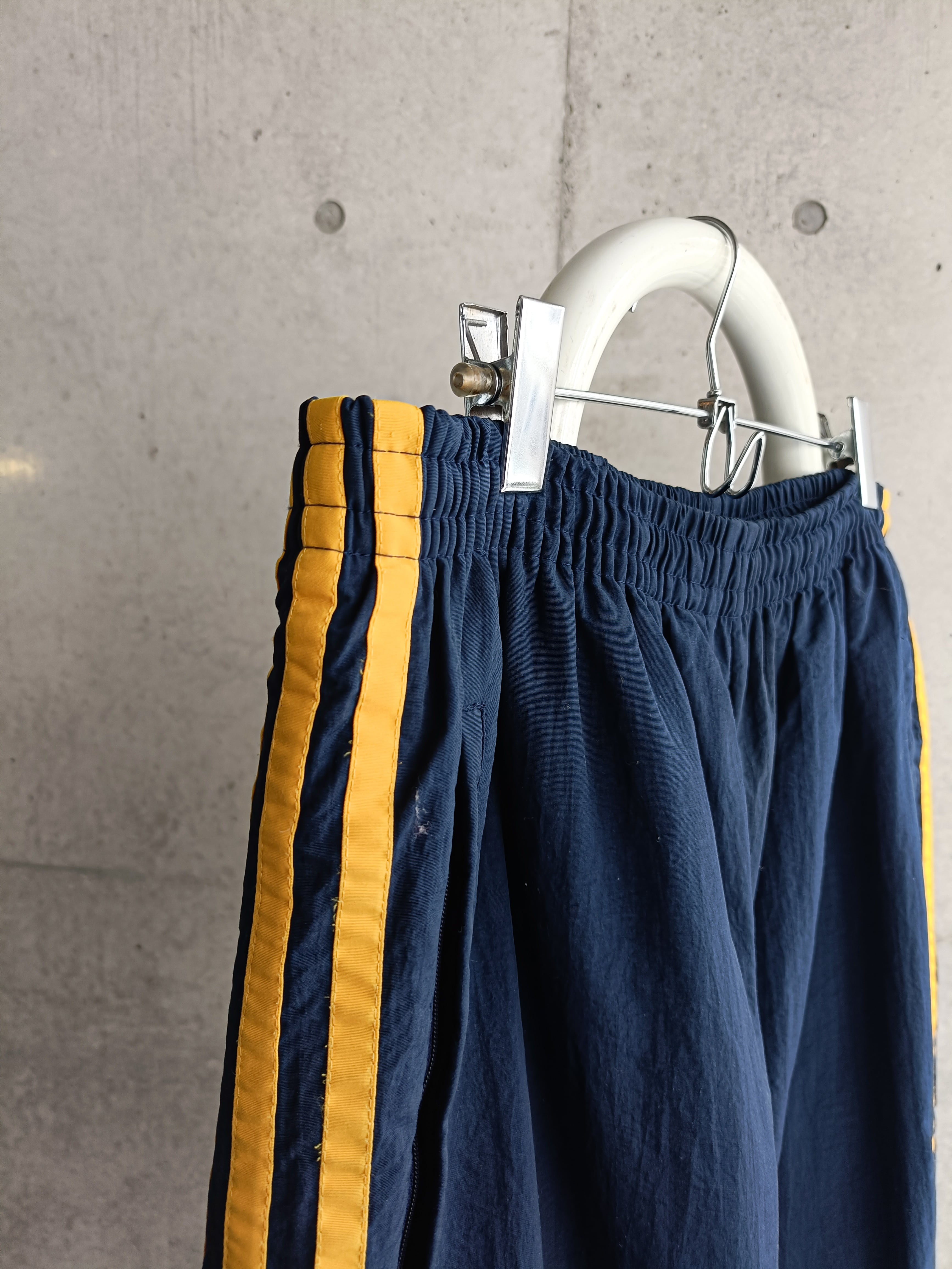 adidasのトラックパンツ。90s特有のシャリ感のあるナイロン生地。ネイビーにイエローで個人的にも好きな配色。裾サイドはジップで開閉可能です。ズドンとしたシルエット。