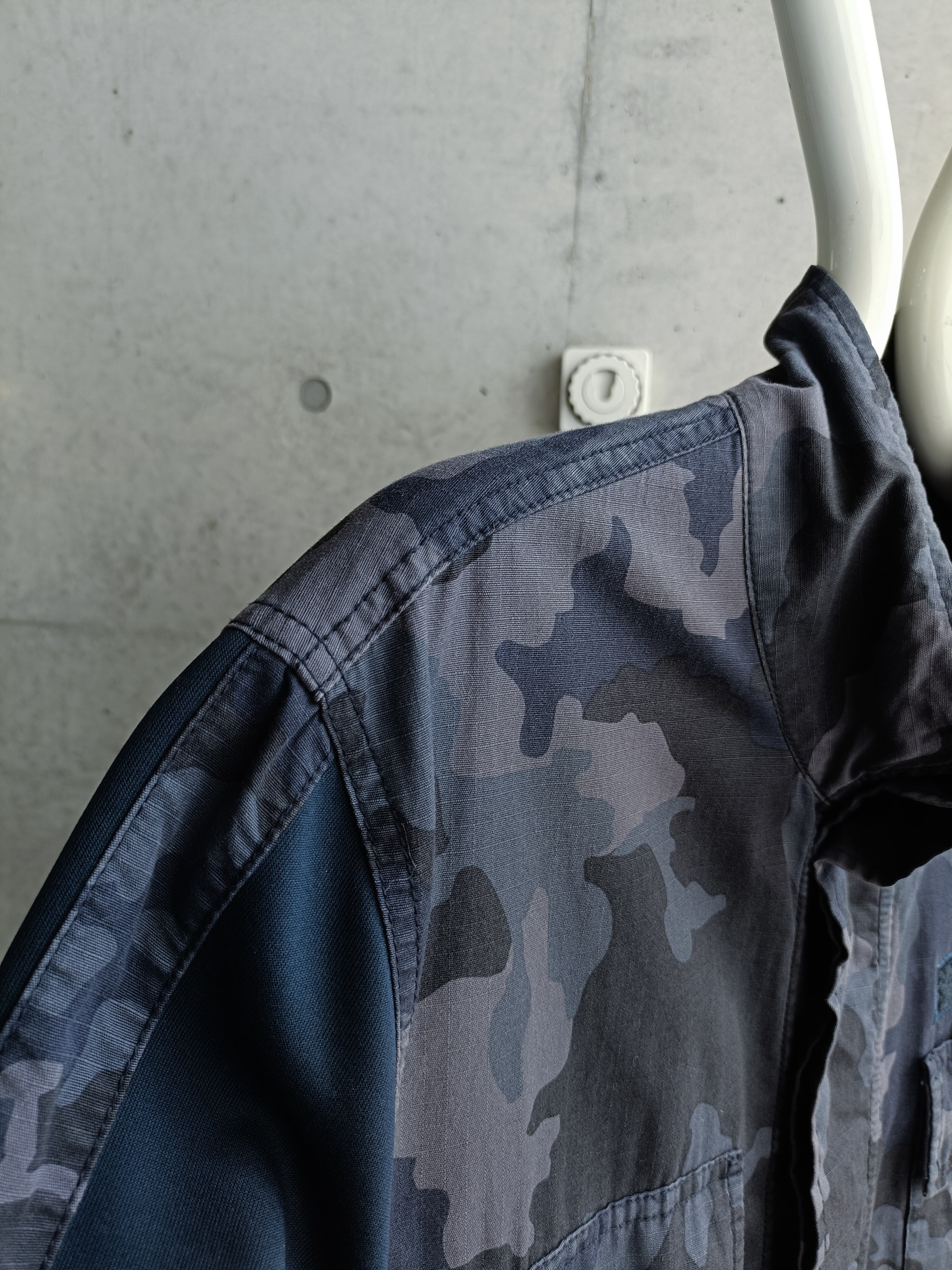 NIKEのカモフラジャケット。全くNIKEっぽくないデザインが良くてピックしました。黒とネイビー系のダークカモフラージュ。本日入荷のストライプシャツとのスタイリングもオススメです。