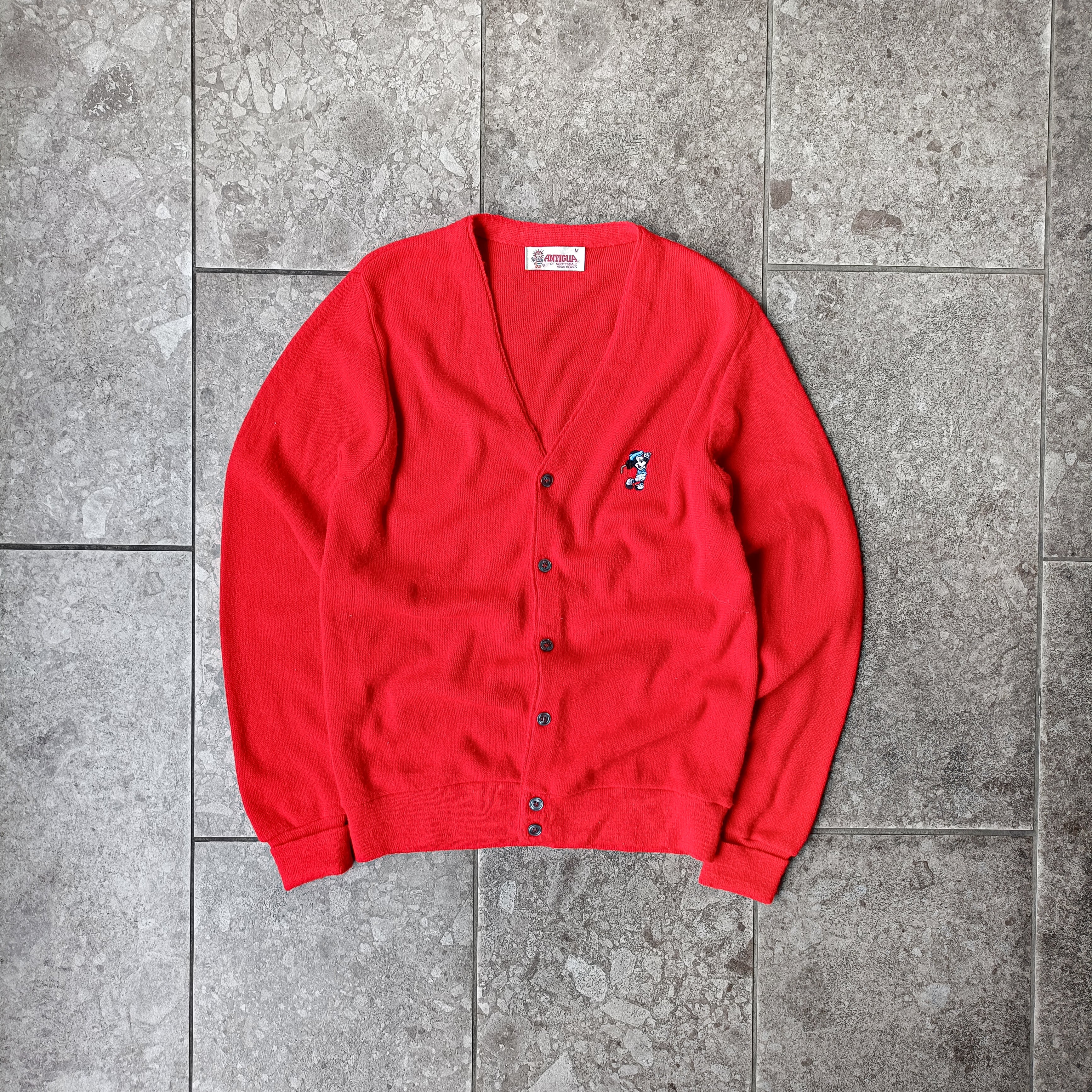 vintage Made In USA red mickey acrylic knit cardigan