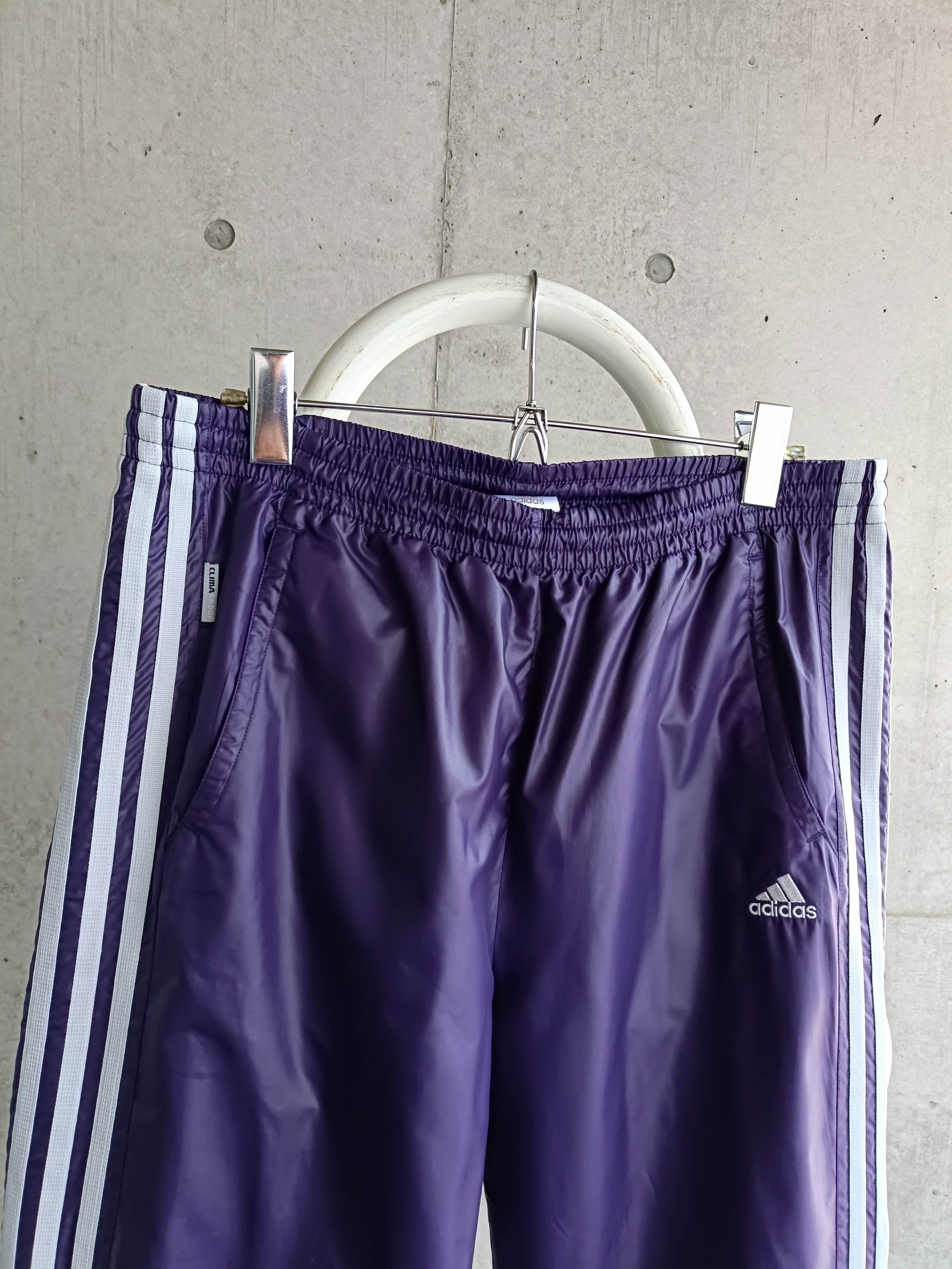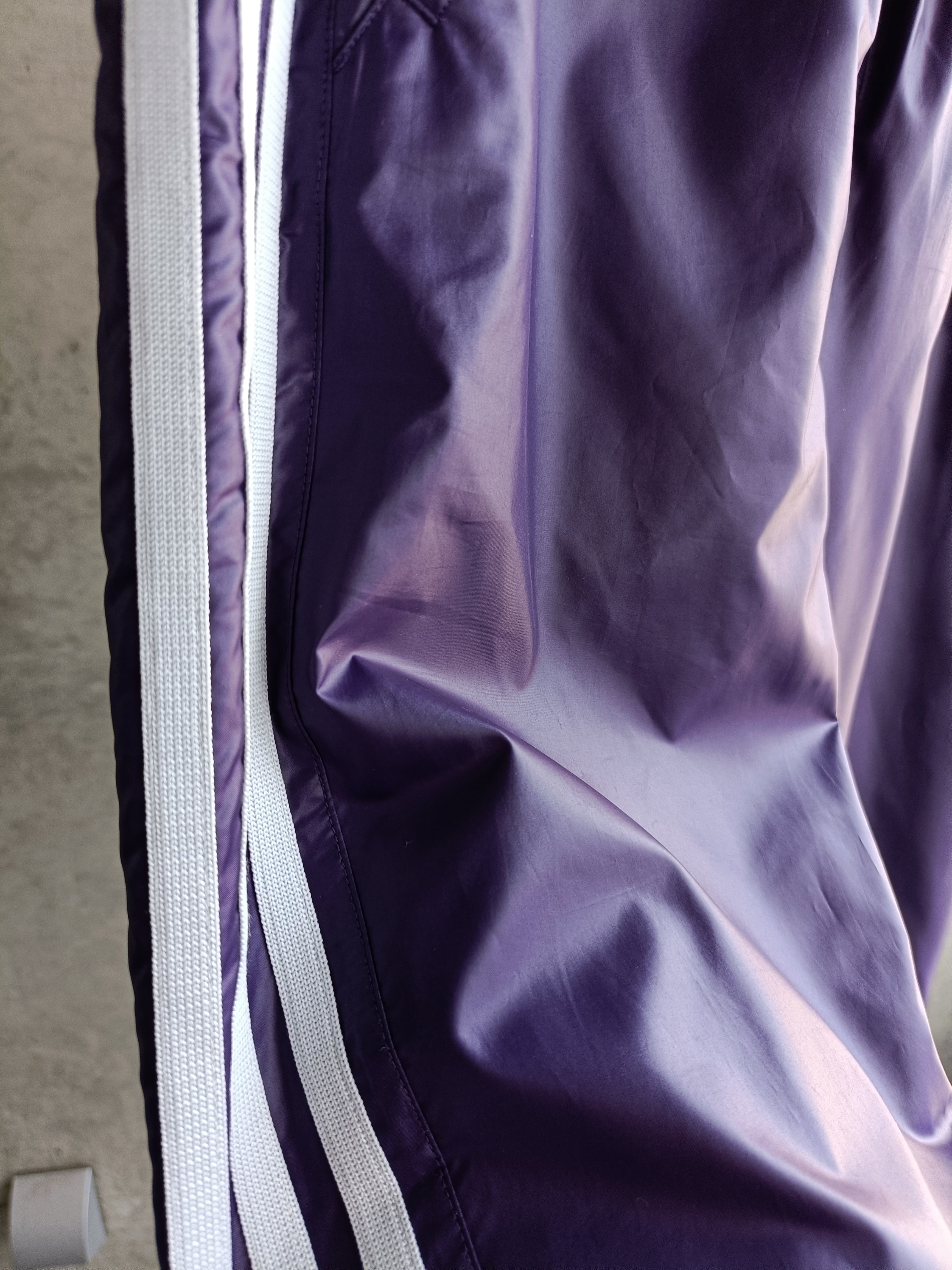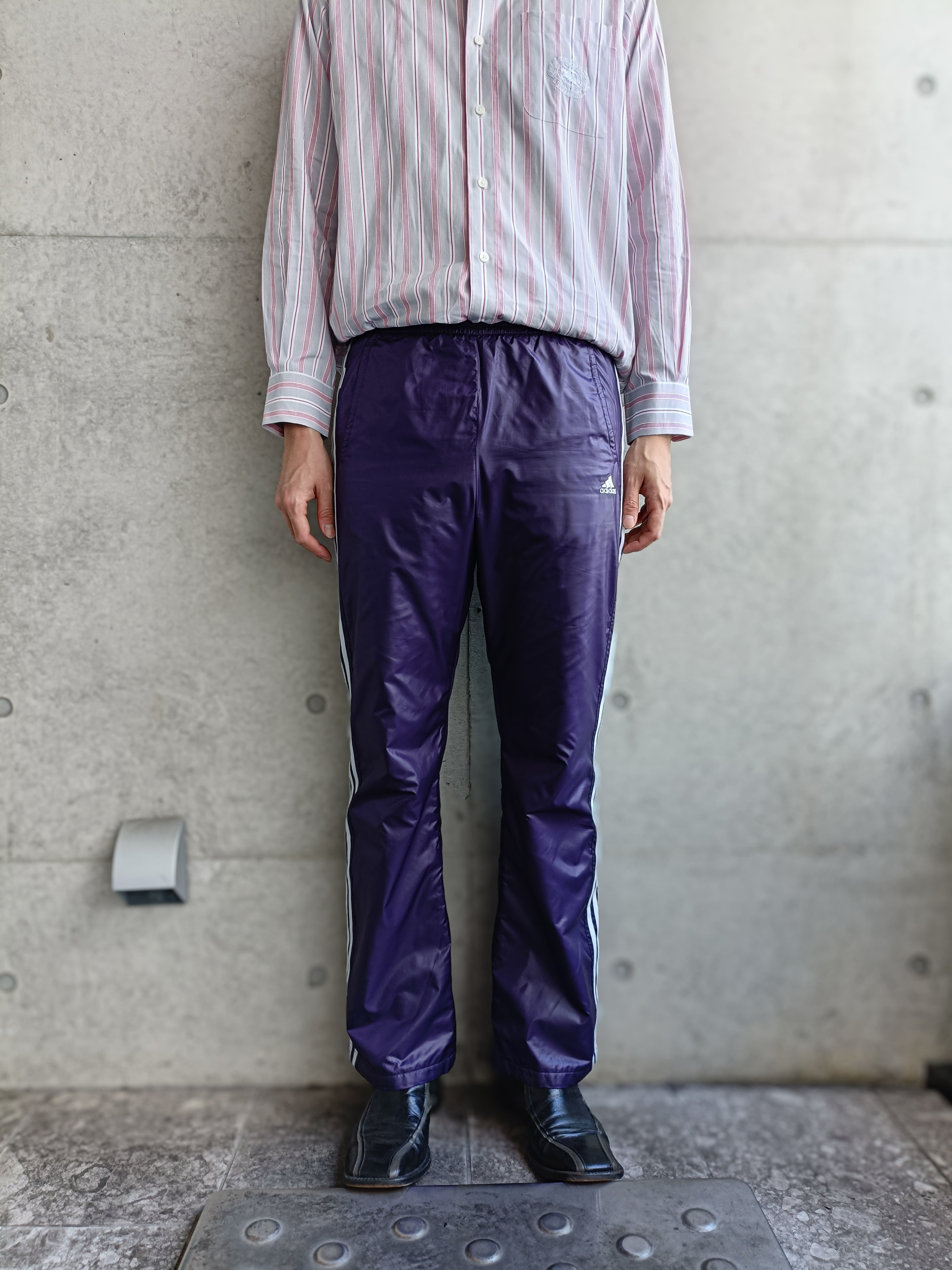 adidasのパープルトラックジャージ。ジャストなサイズ感で、モードさも感じるトラックジャージ。この色味、細身のシルエットが気分です。シャツと合わせて違和感出すのもオススメです。
