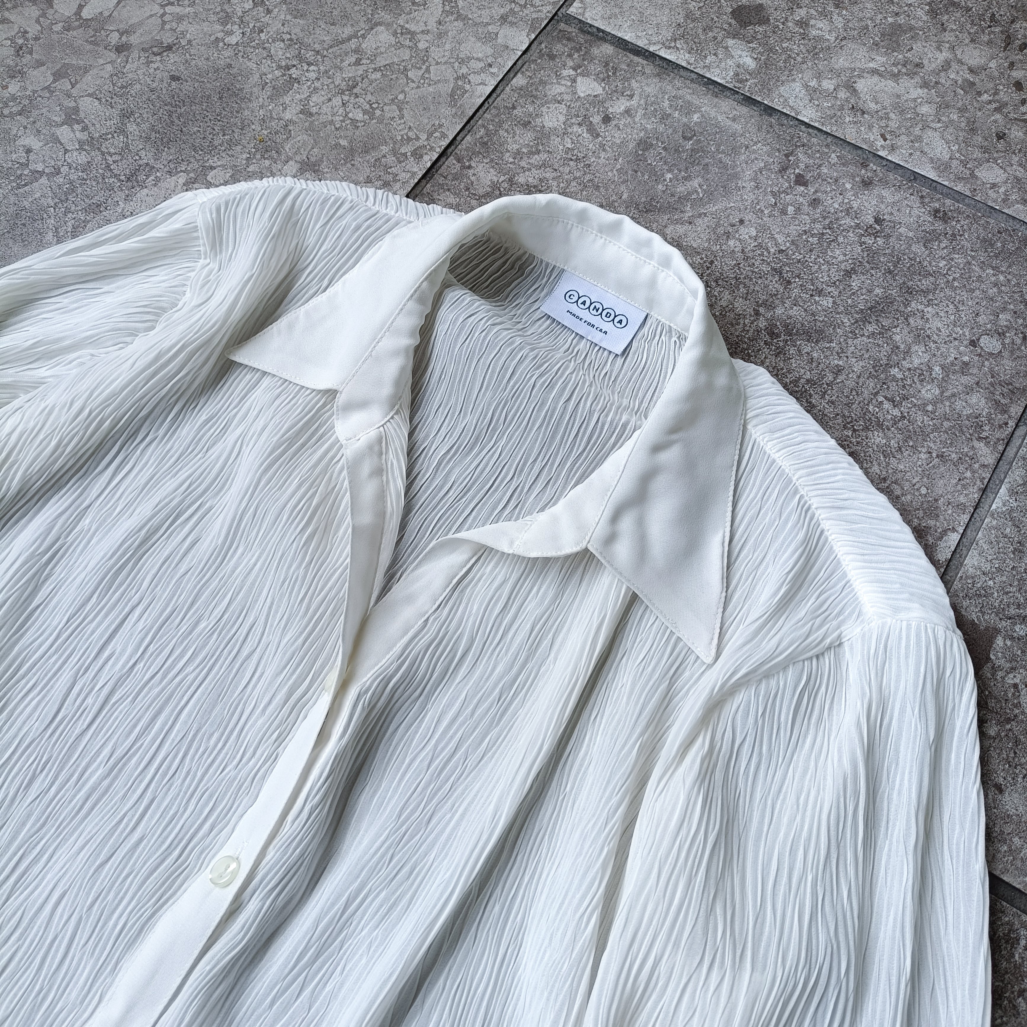 いい古着多いCANDAのプリーツシャツ。袖に紐が付いて、絞っても垂らしてもいいです。小柄なメンズ、レディース向けサイズ。