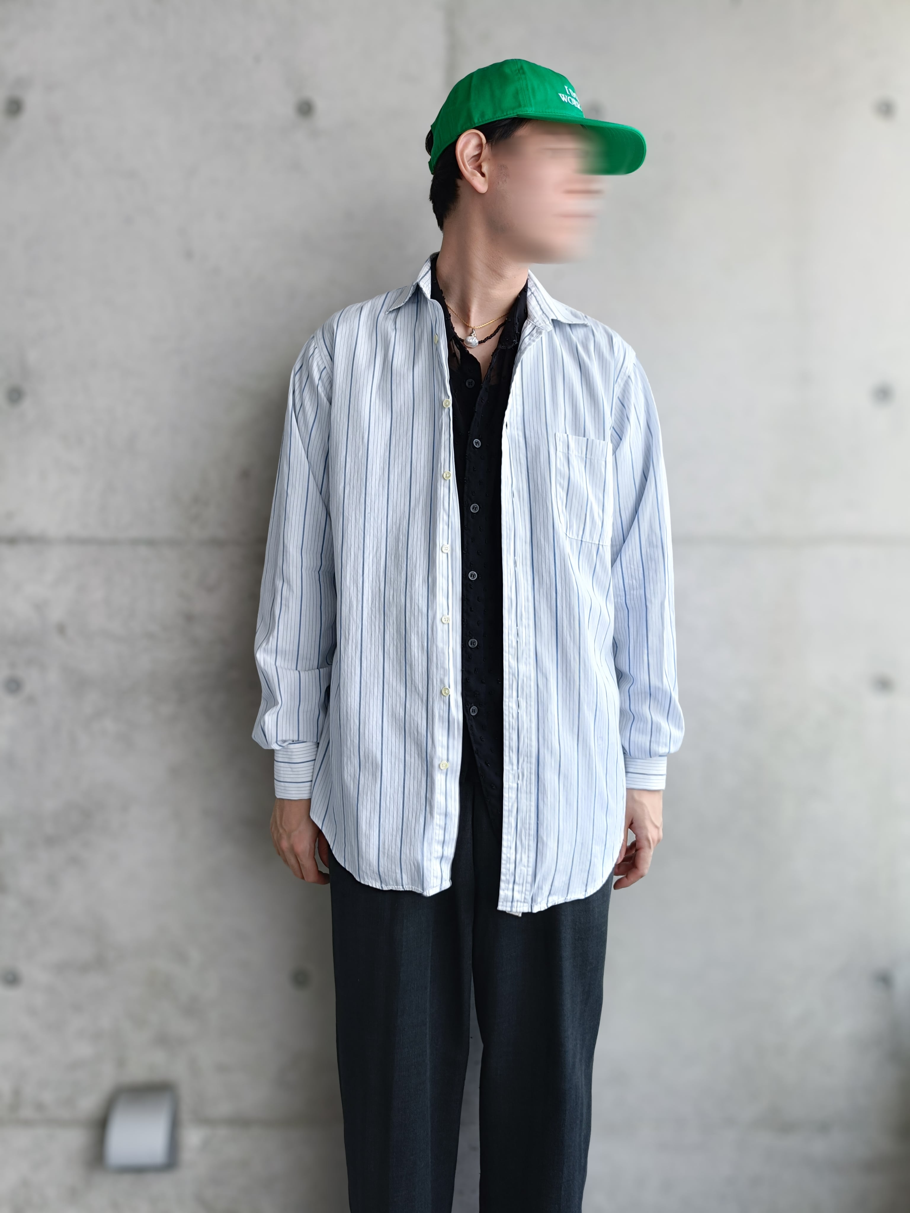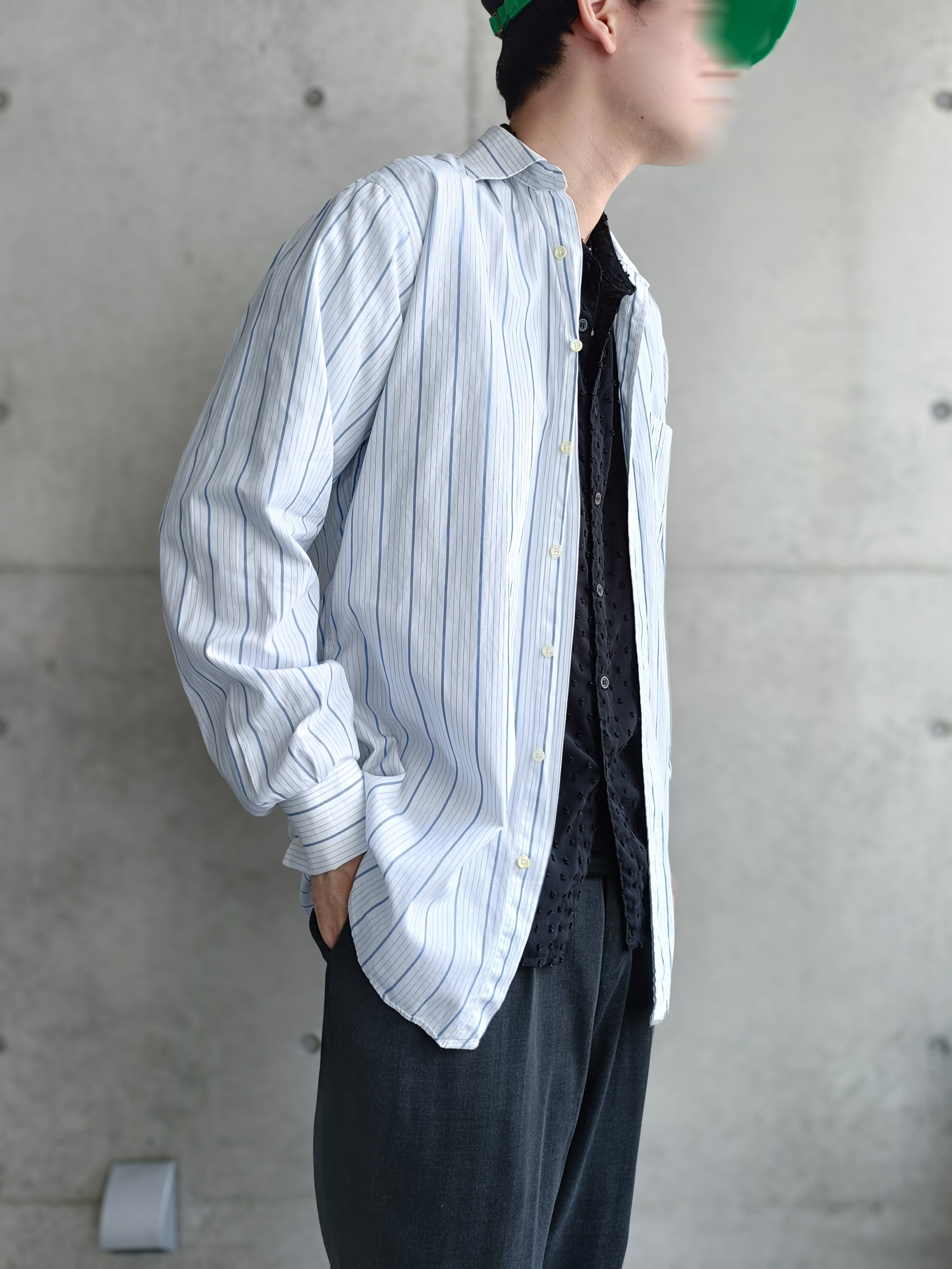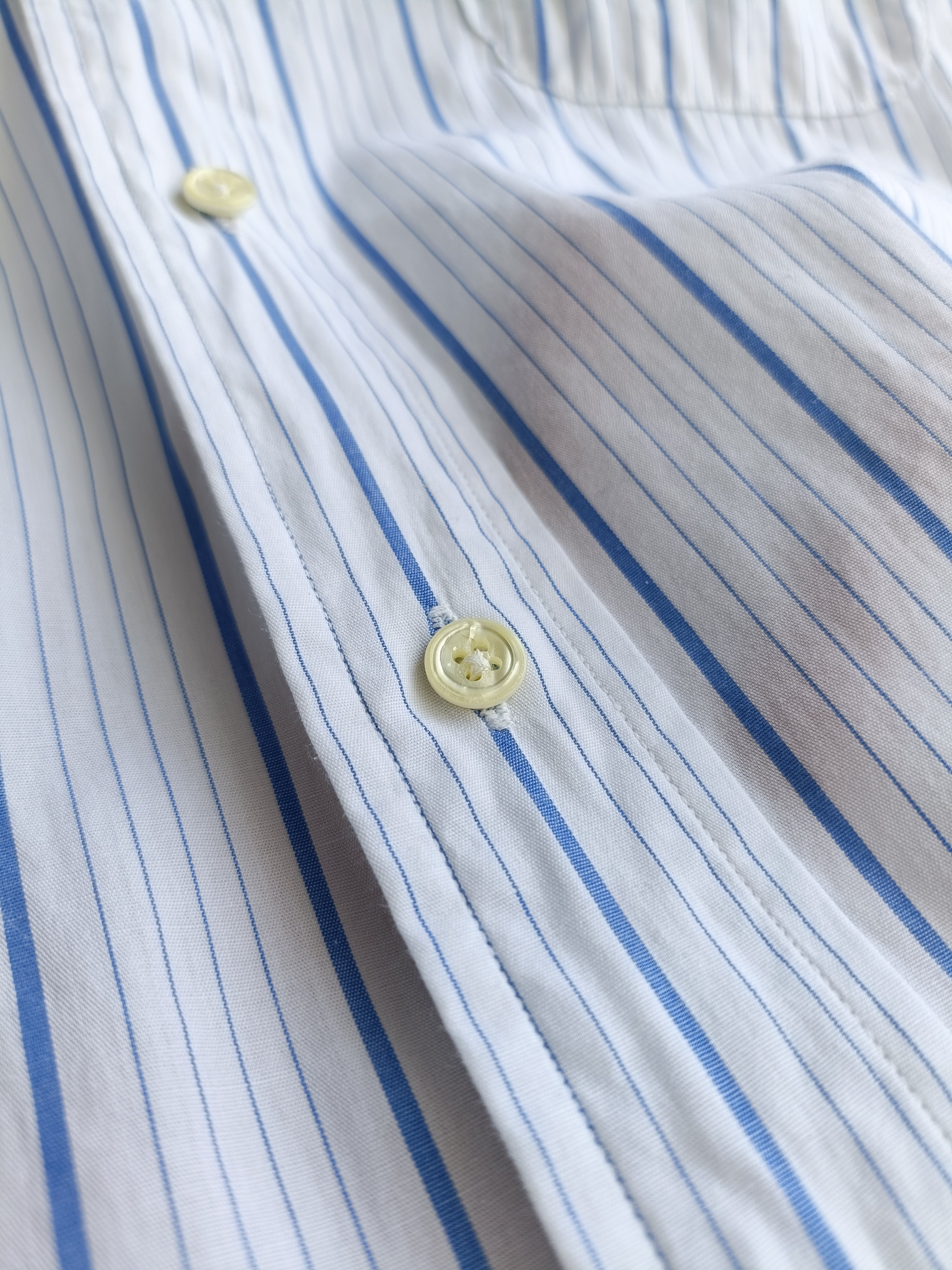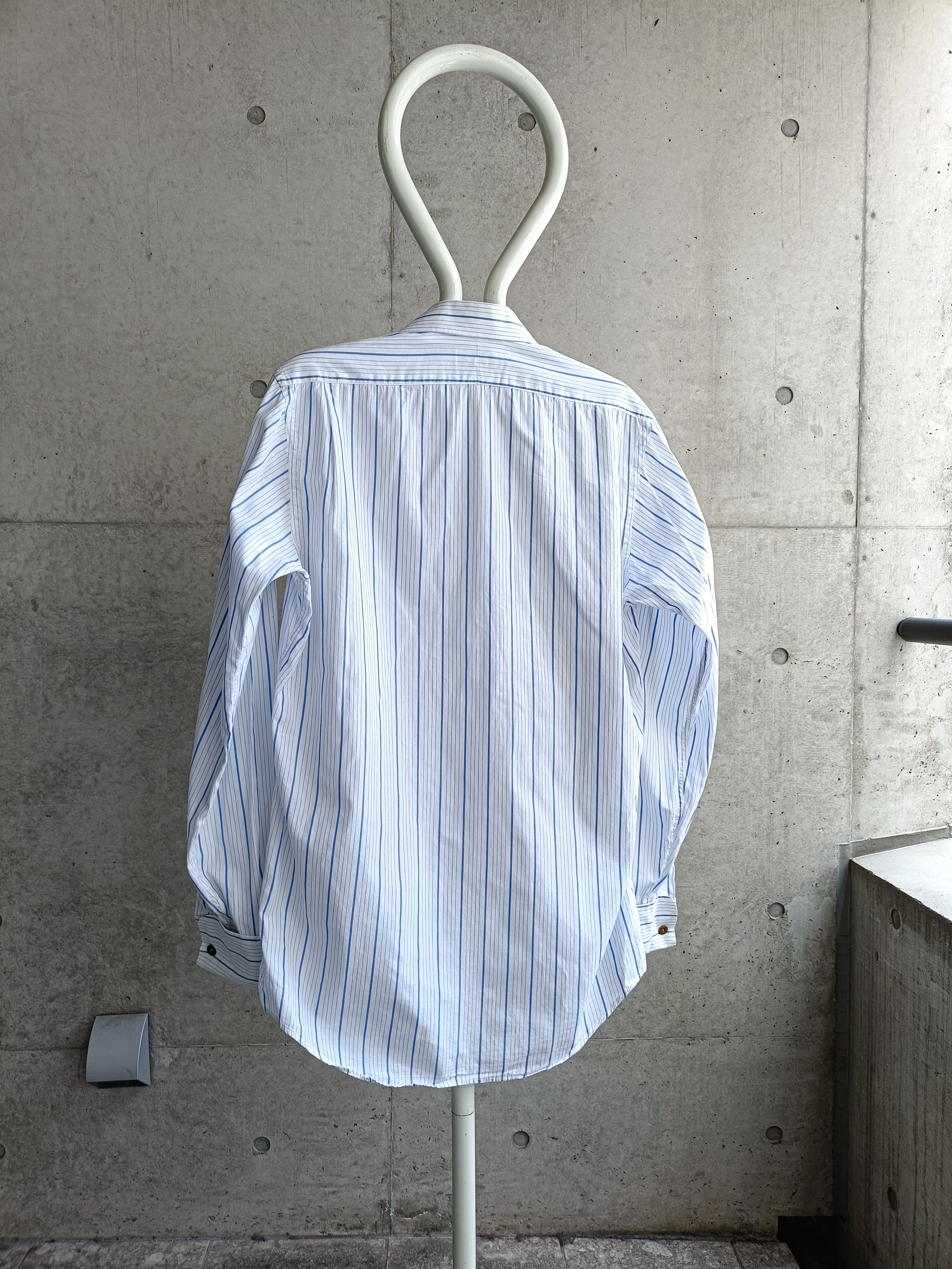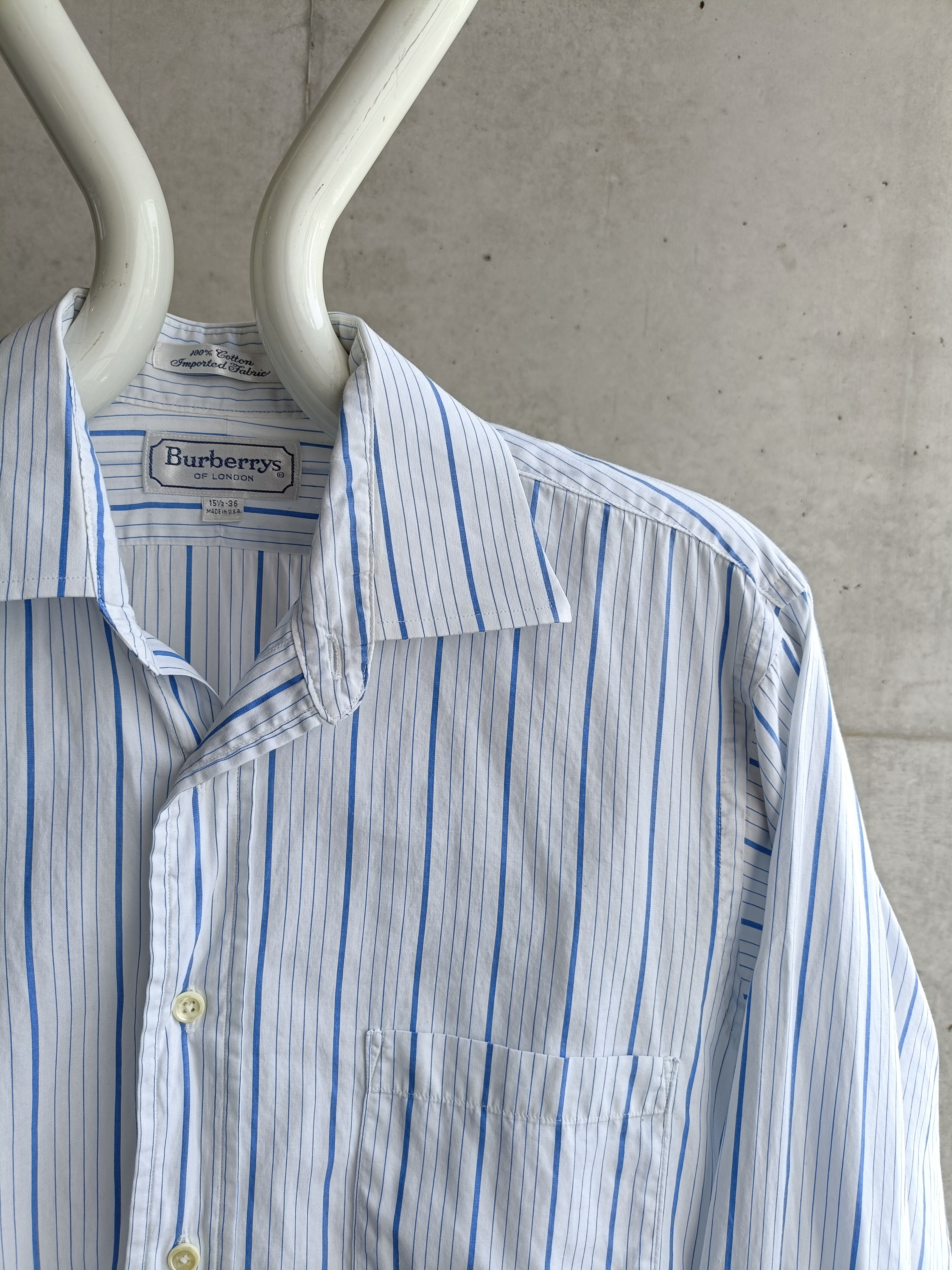 USA製のBURBERRY。爽やかなブルーのストライプシャツ。ダブルカフスなのも凄くいいです。