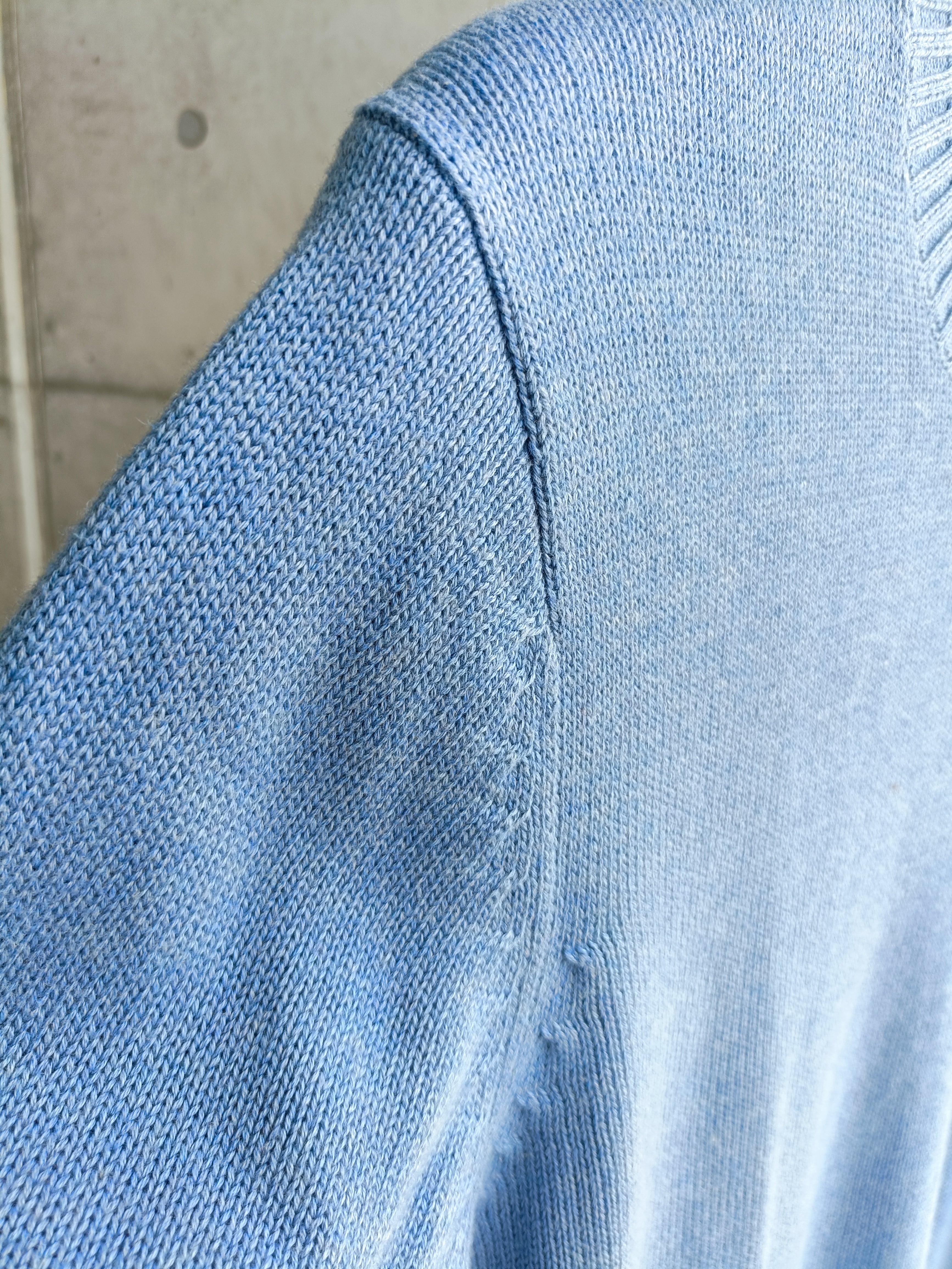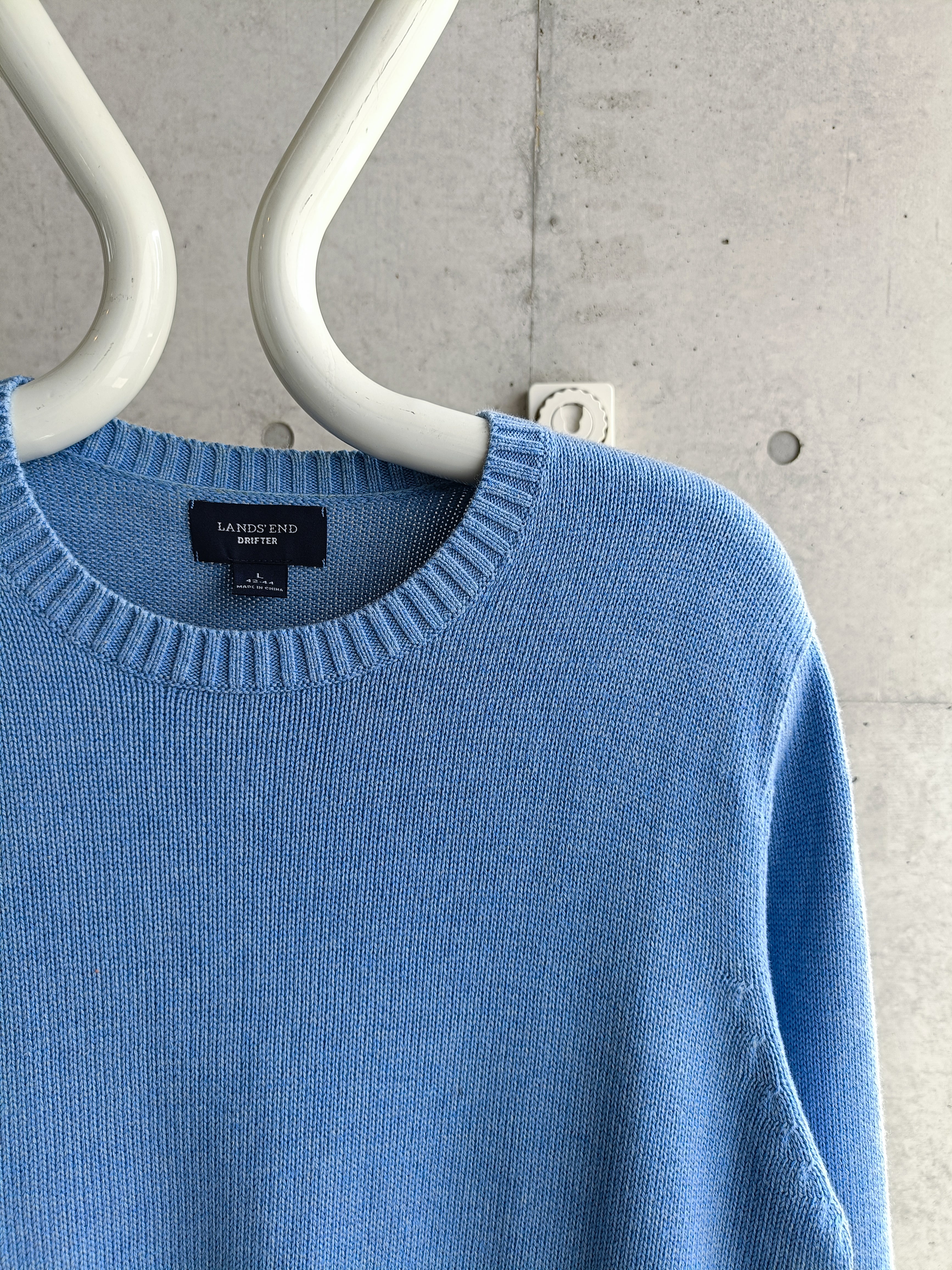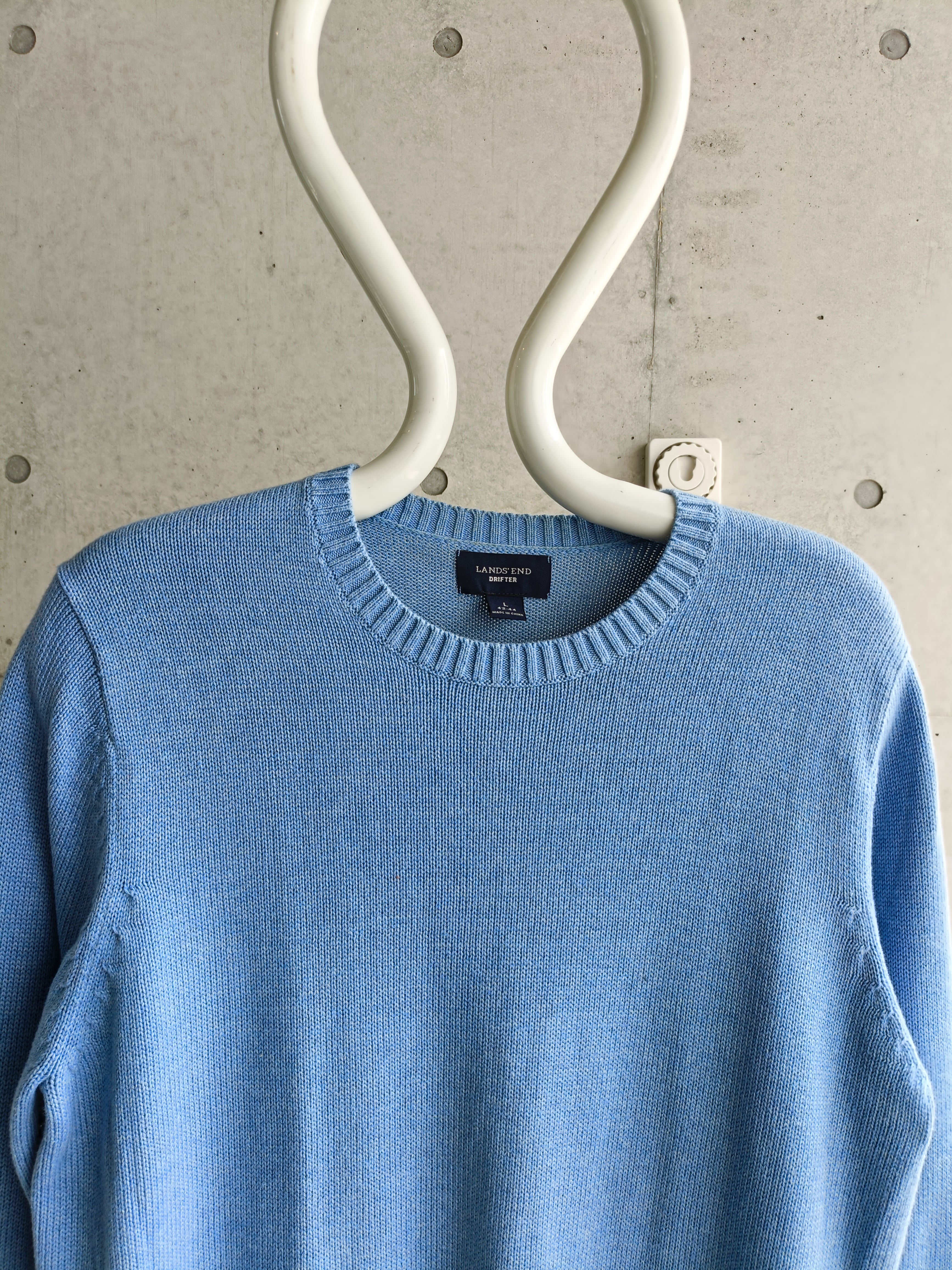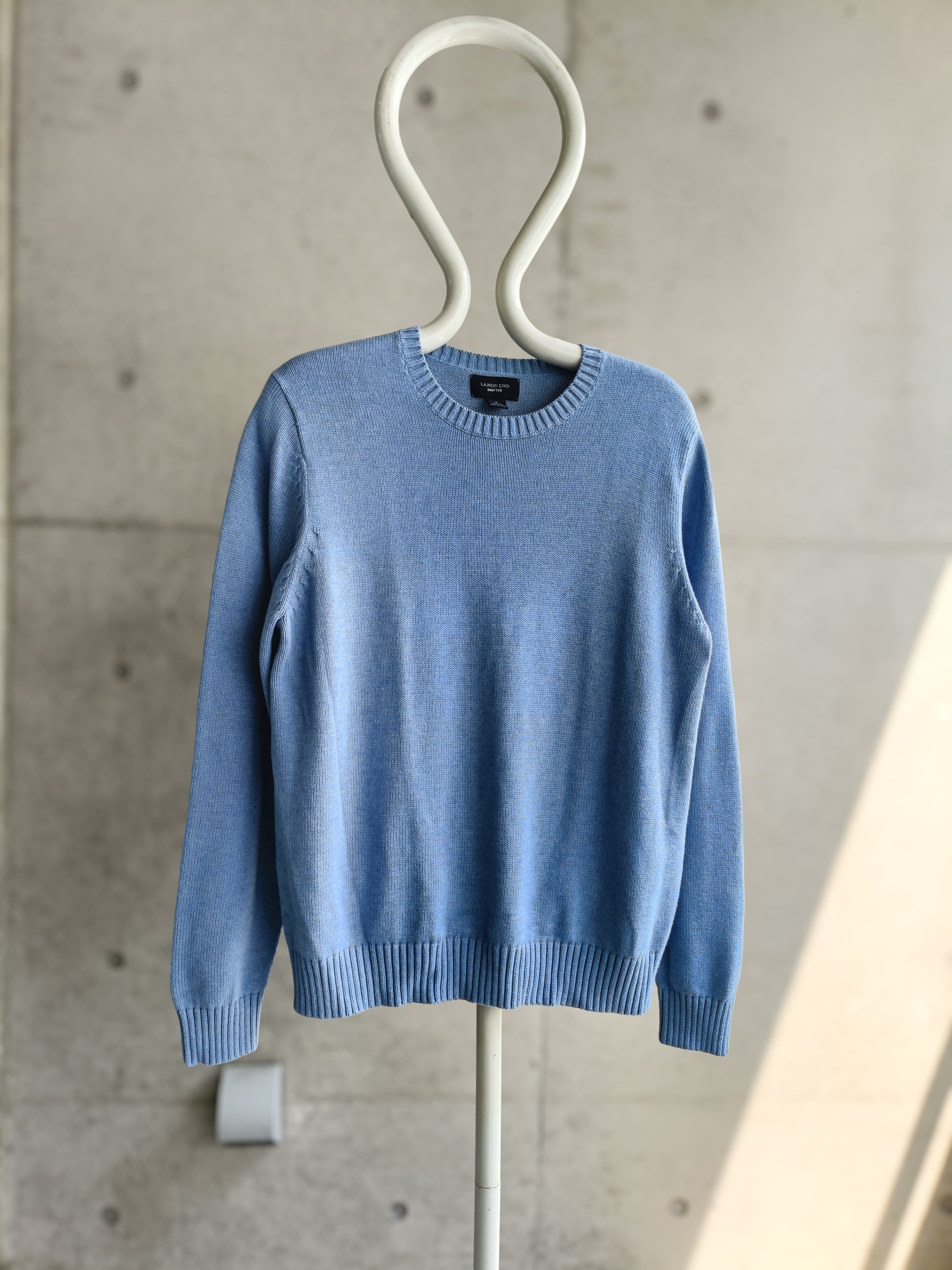 LANDS' ENDの名作コットンニット。綺麗なサックスブルーカラー。シルエットも綺麗です。爽やかな春らしい色味です。