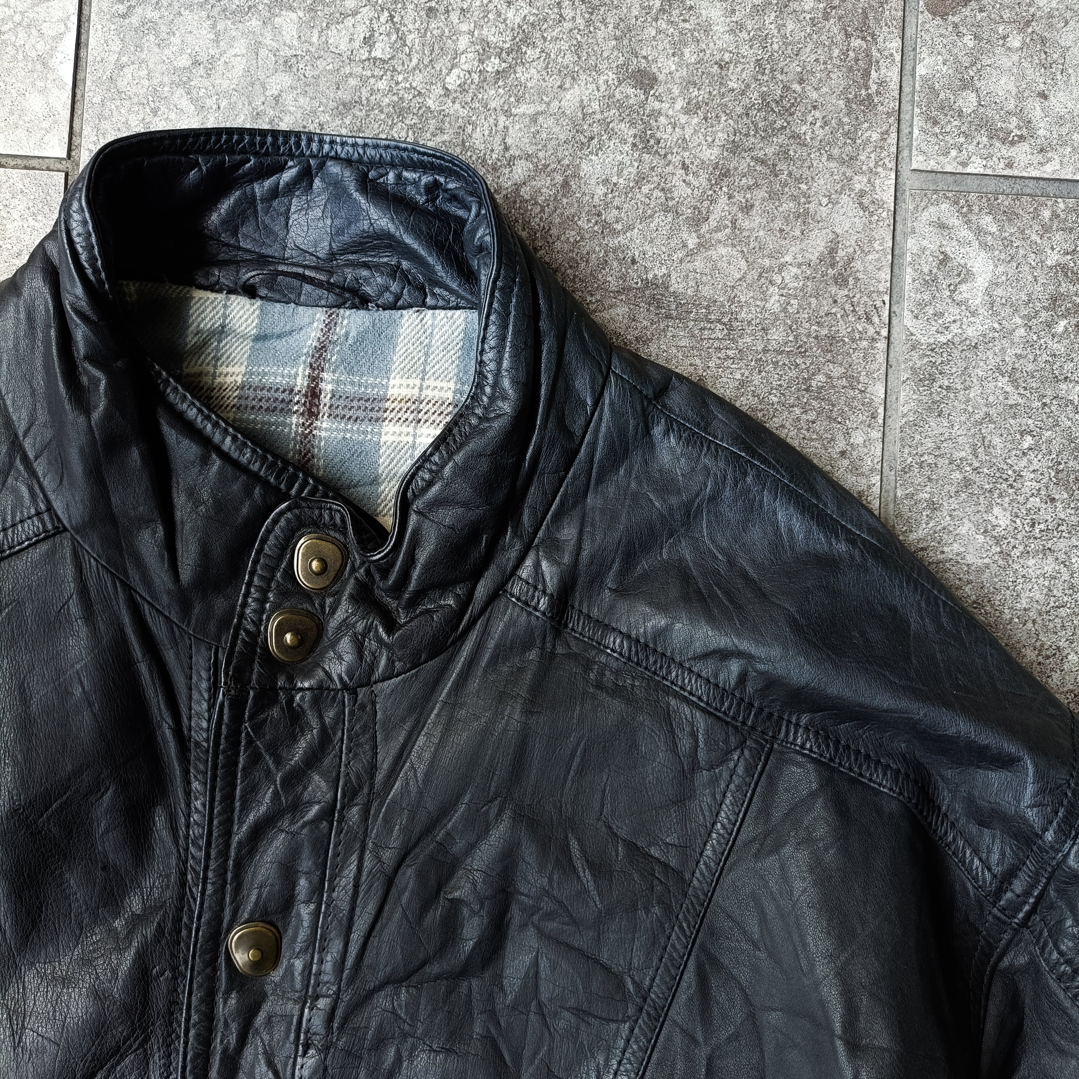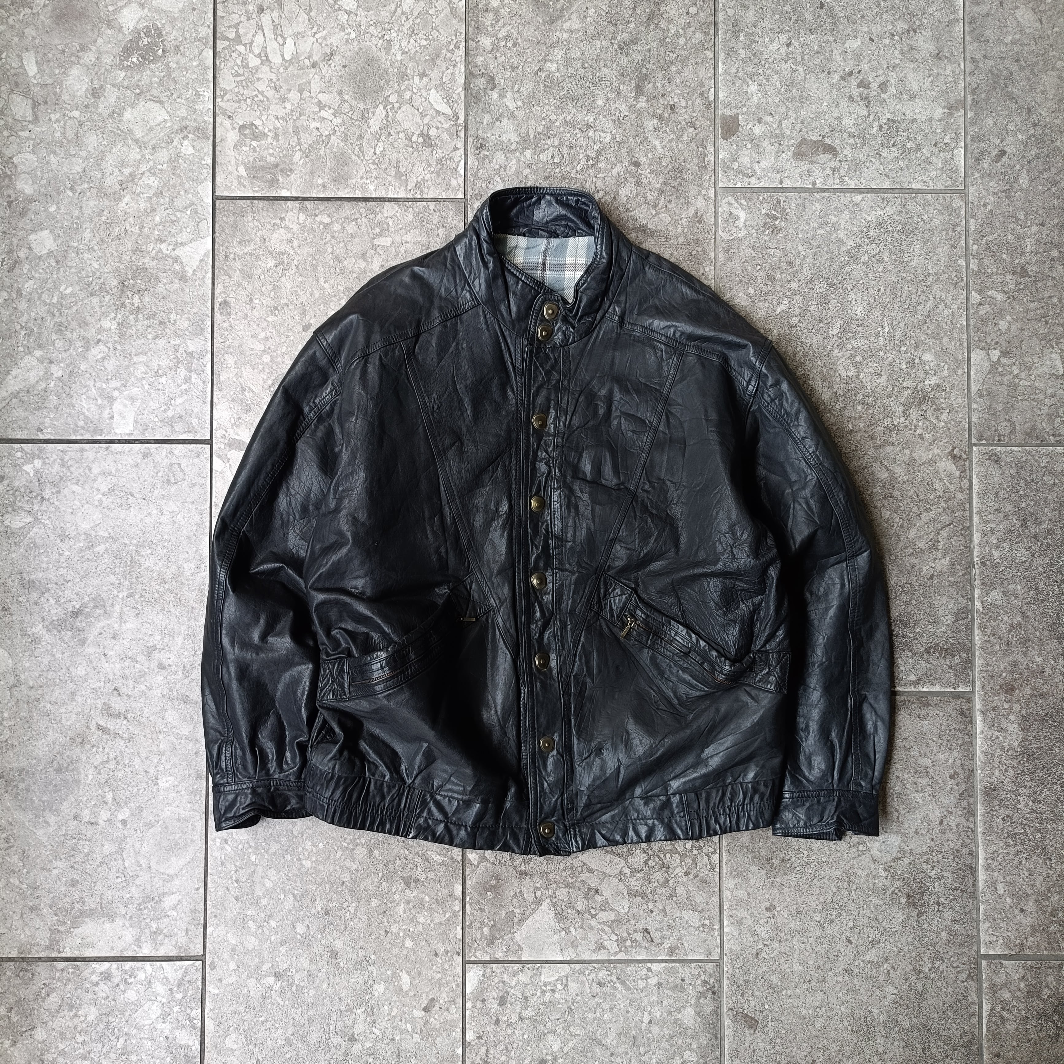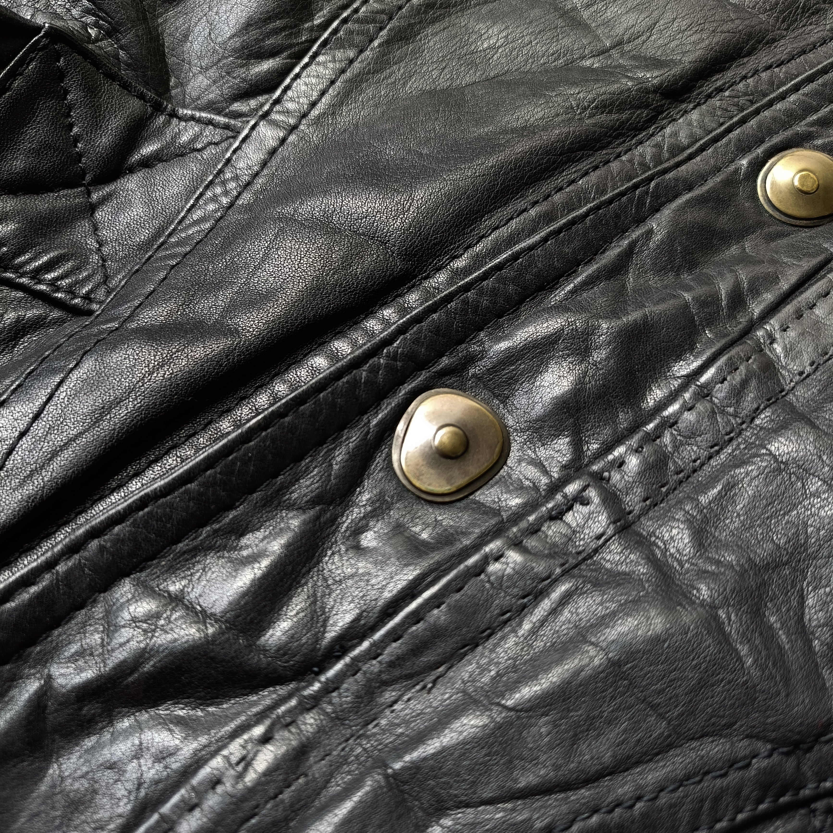 vintage black distorted snap leather blouson