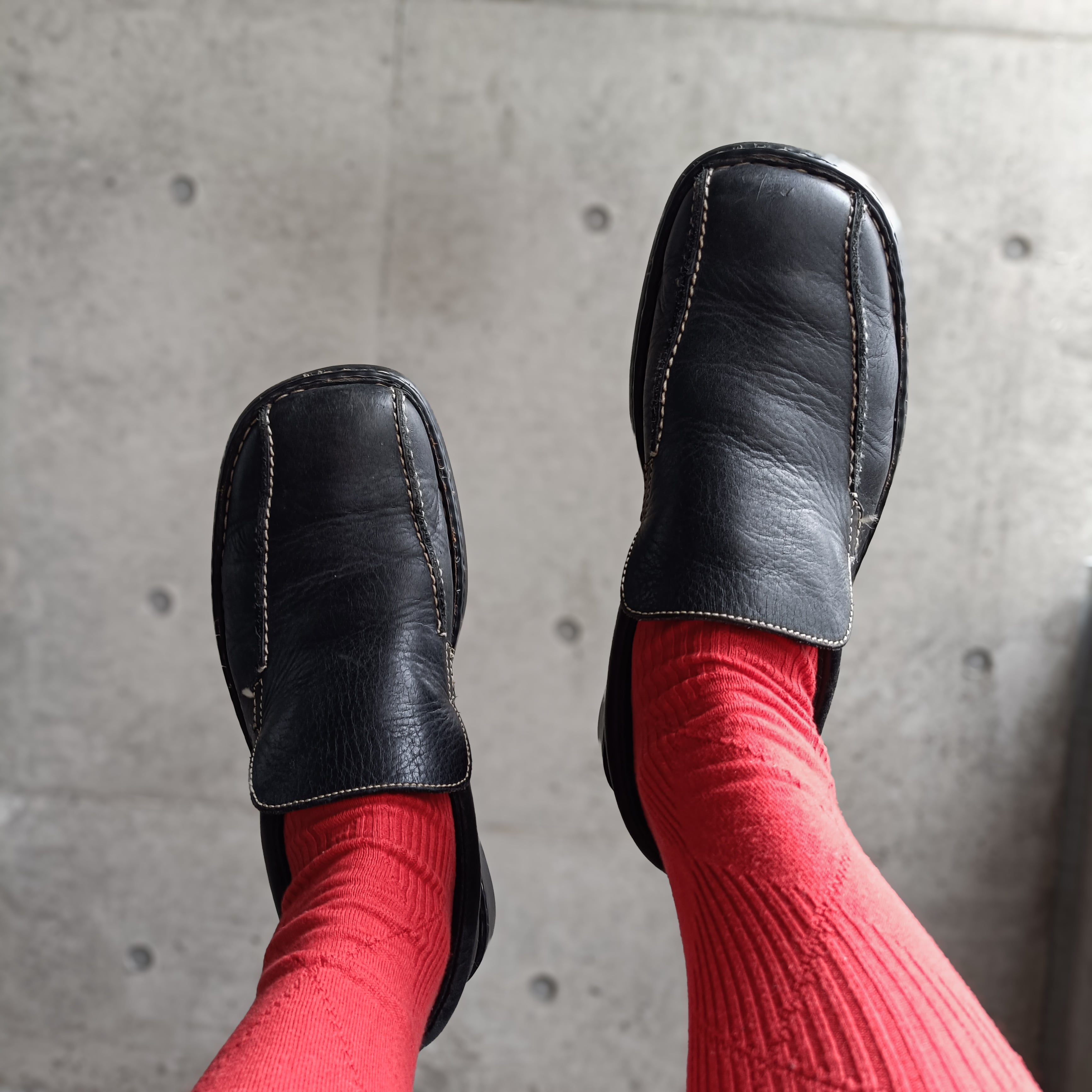 ブラックのレザースニーカー。探してますが圧倒的に数が少ない本革のスニーカータイプ。当店イチオシのスクウェア型。非常に柔らかいシボ革で履き心地抜群。足元に丁度良いボリューム感出してくれる靴です。