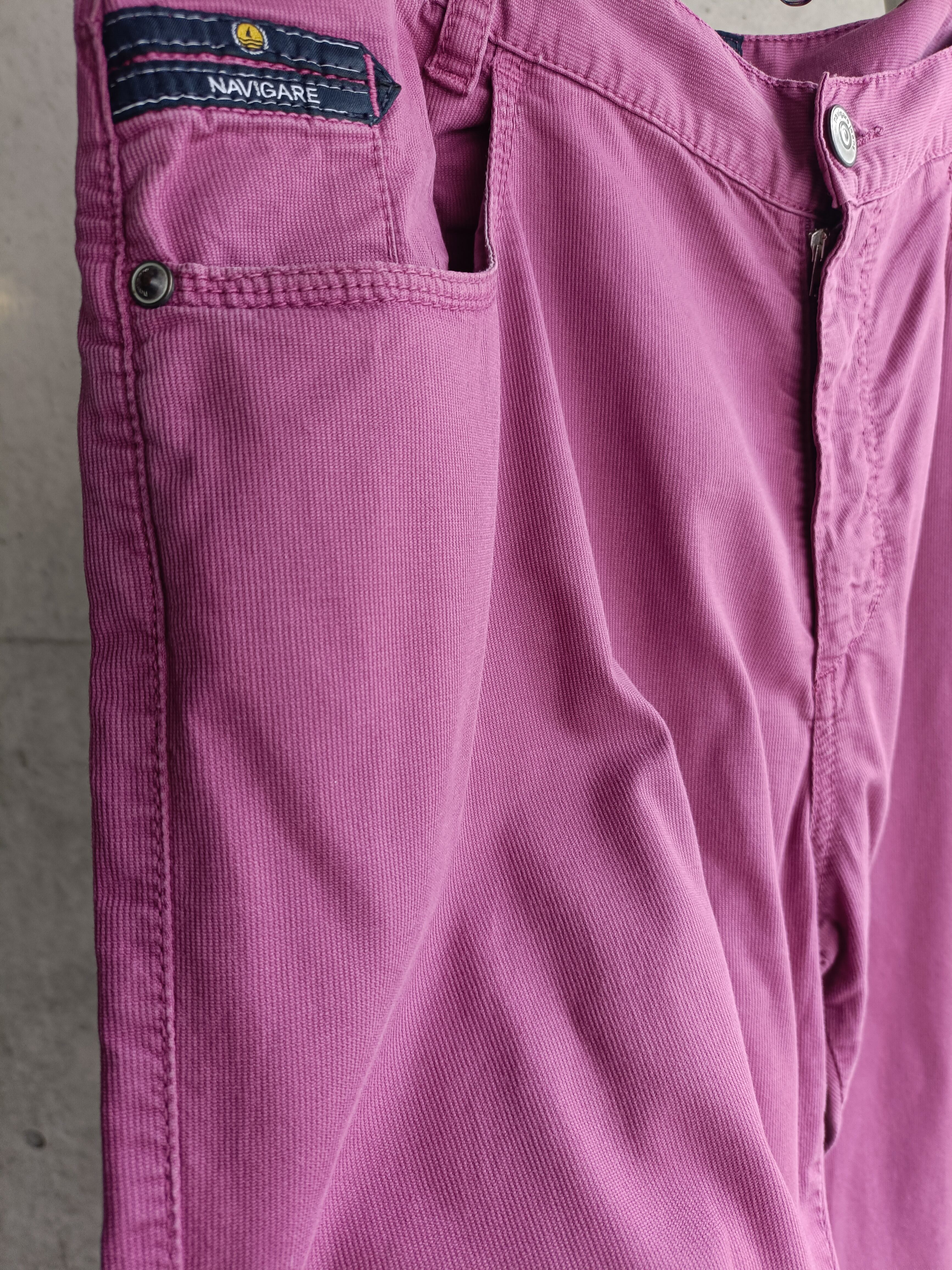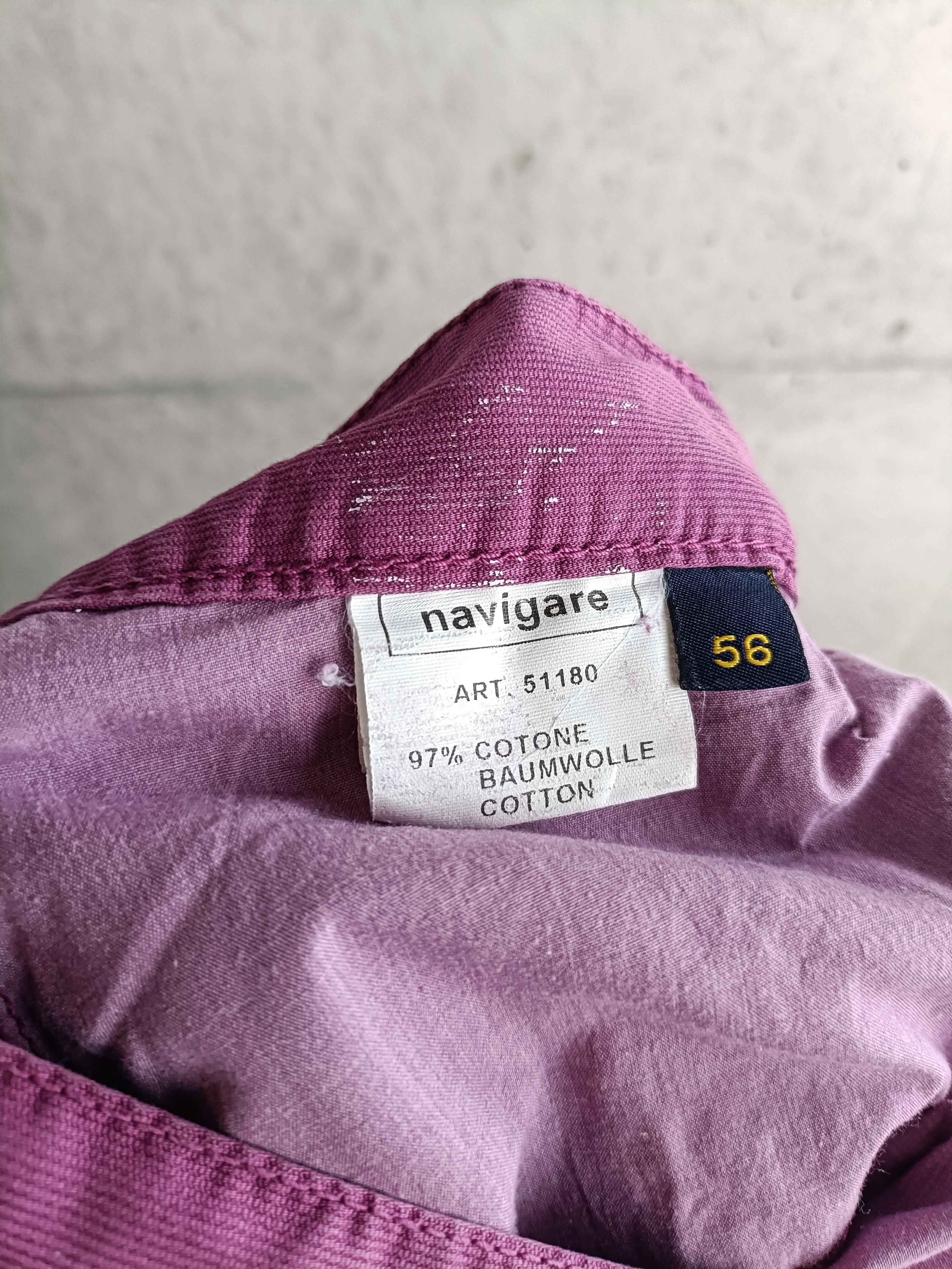パープルのコットンパンツ。薄手のピケのような生地感。適度に太さもあるストレートシルエット。ブーツやボリュームある靴に裾溜めて履くのもオススメです。