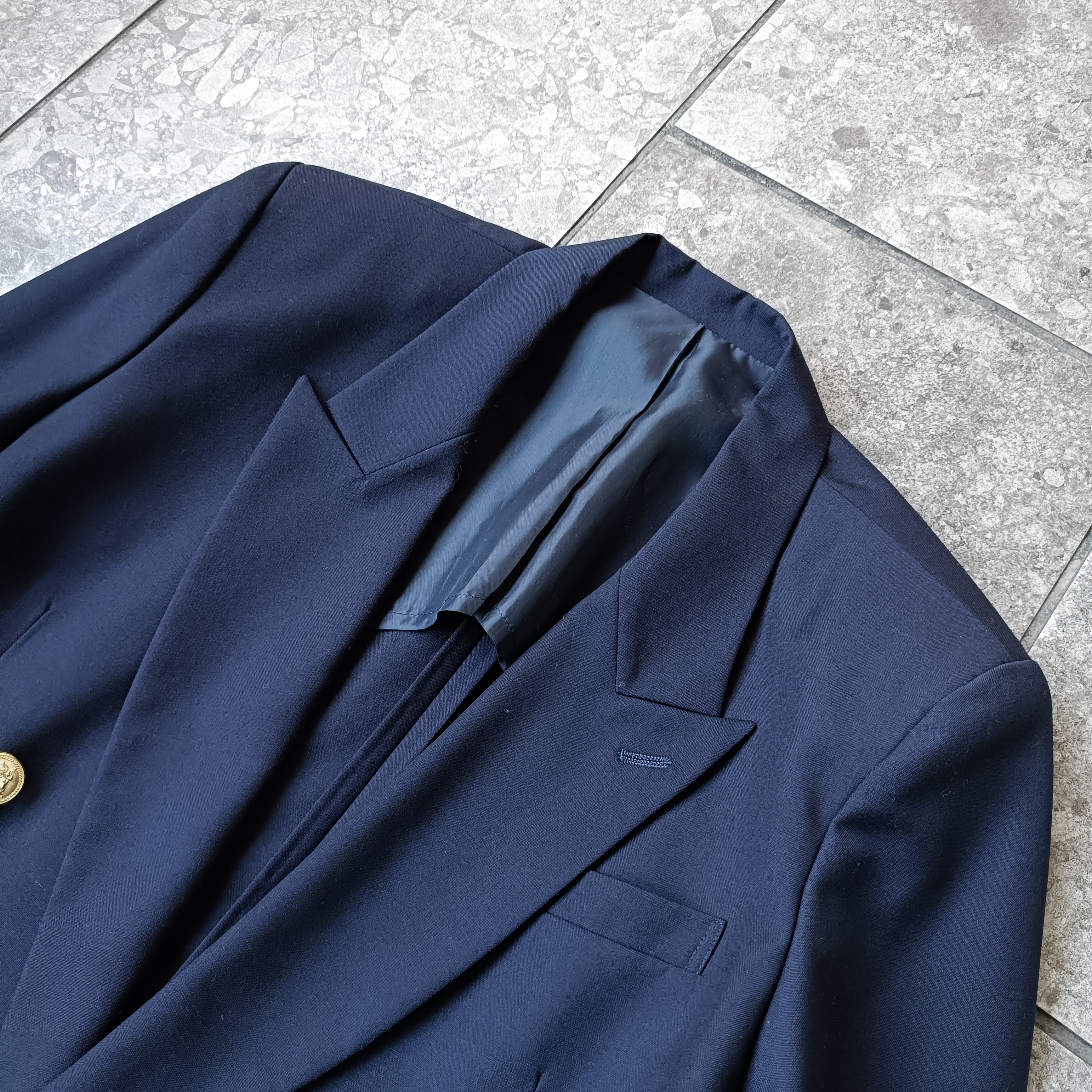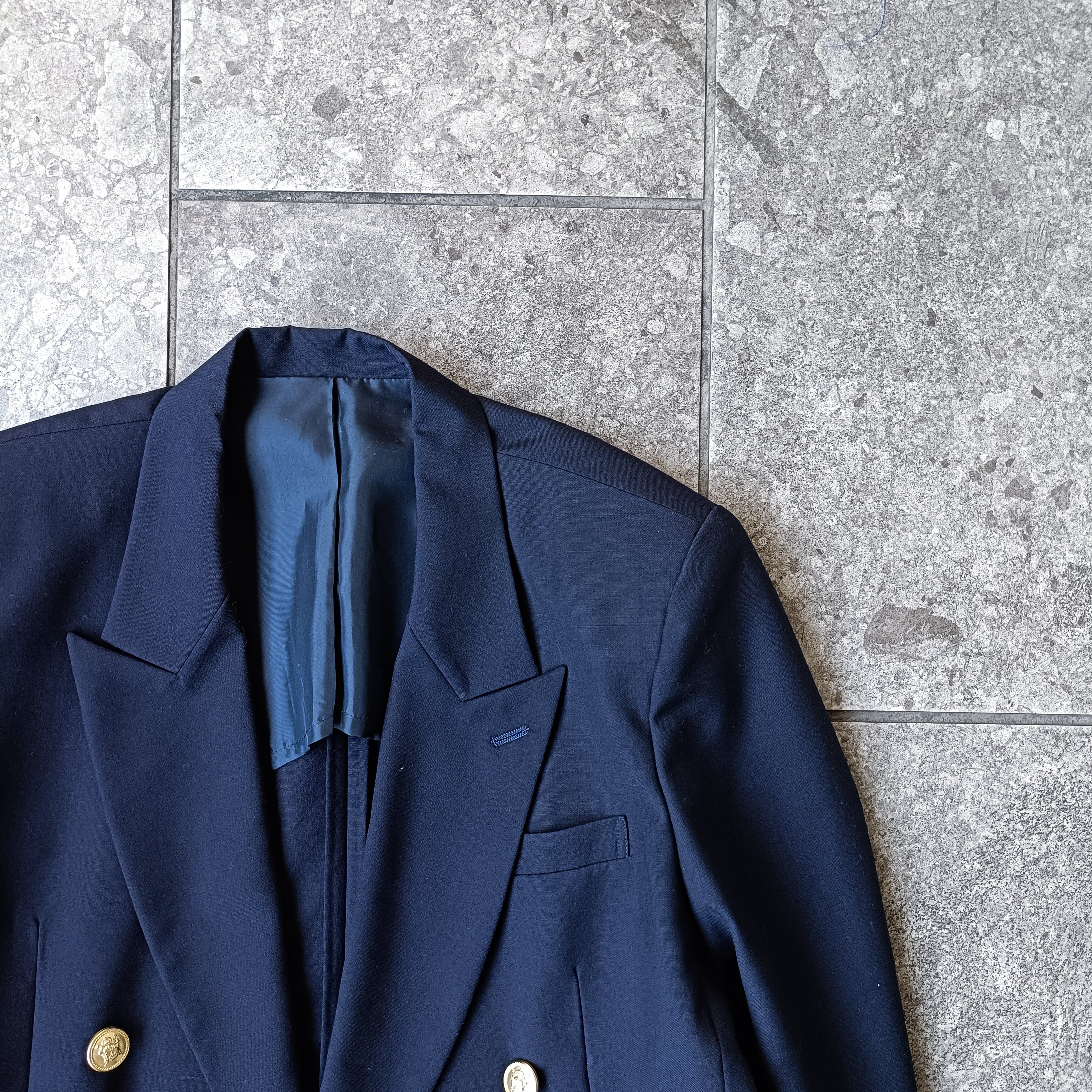 vintage navy gold buttons double jacket