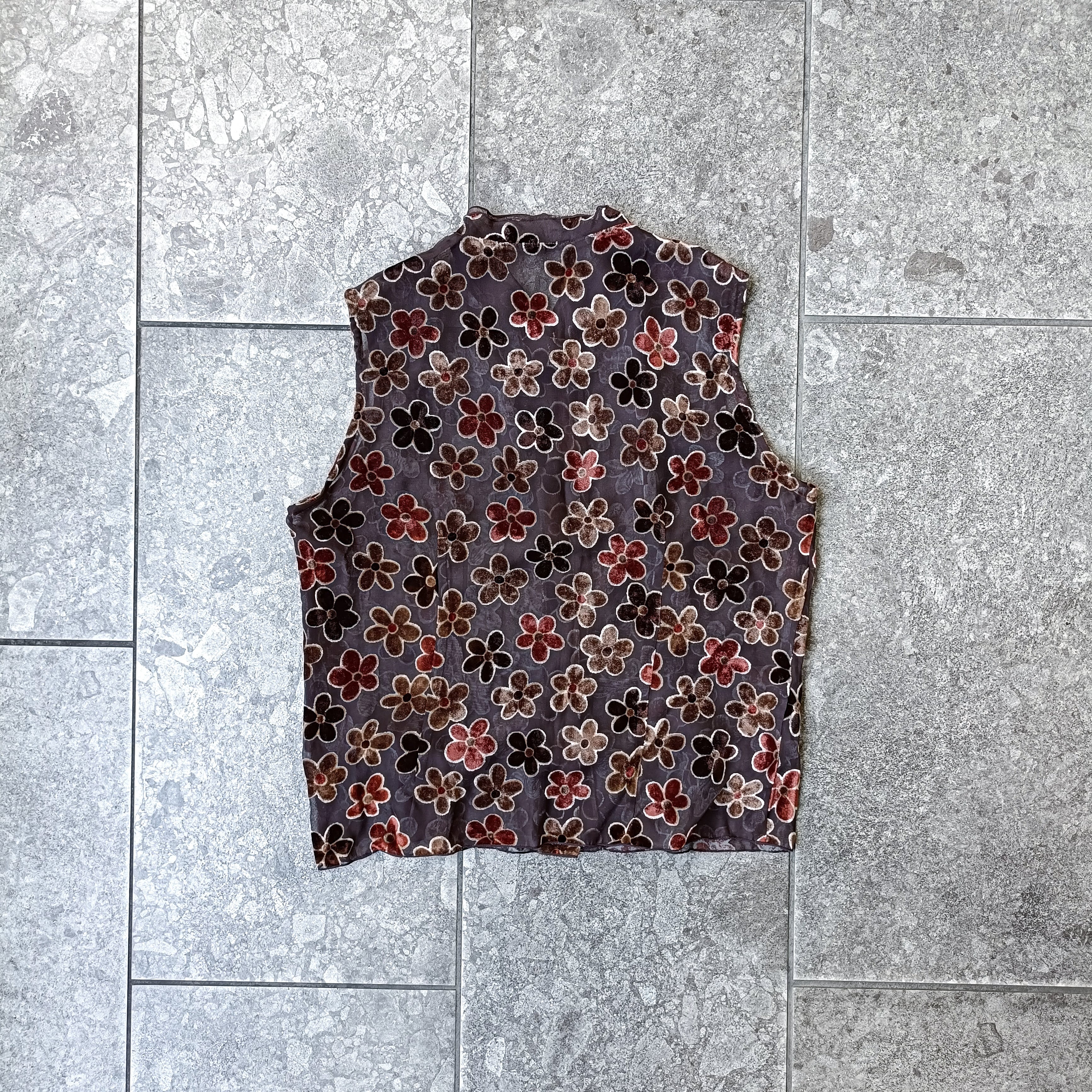 vintage brown velvet flower sheer no sleeve