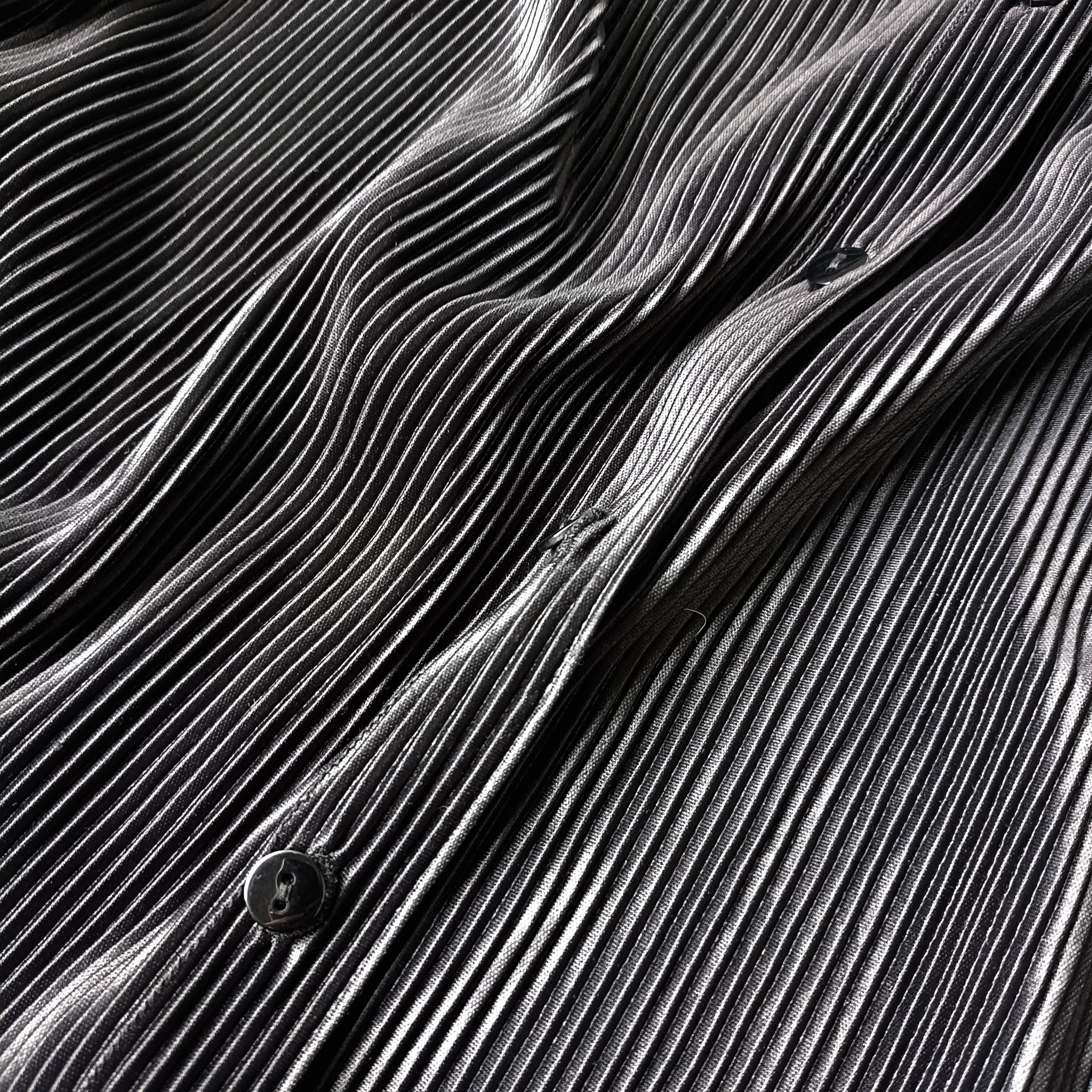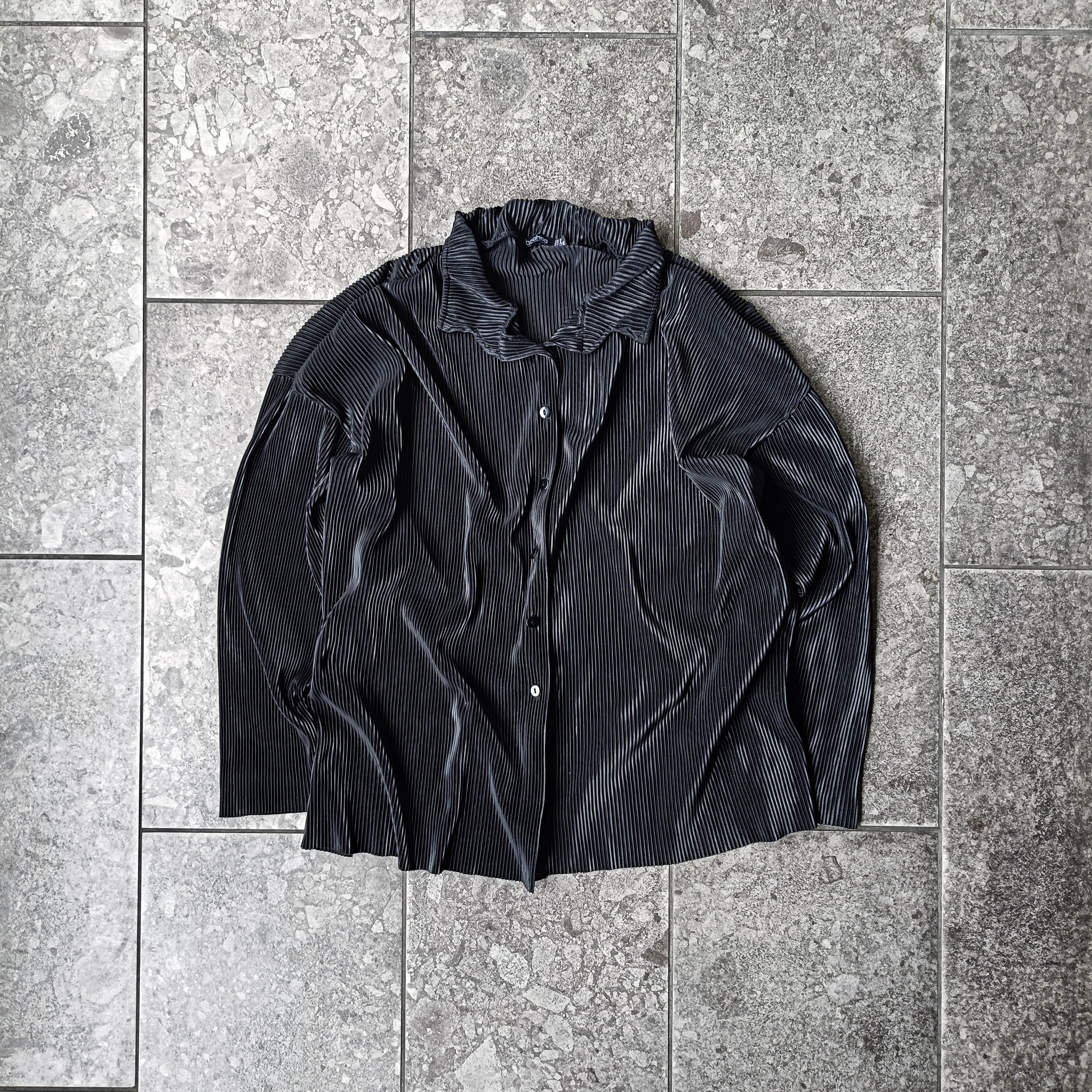 ブラックのプリーツシャツの入荷。探してますが、圧倒的に数が少ないブラック。襟の形がクシュッとしていて、襟立ててスタンドカラーにして着るのもオススメです。