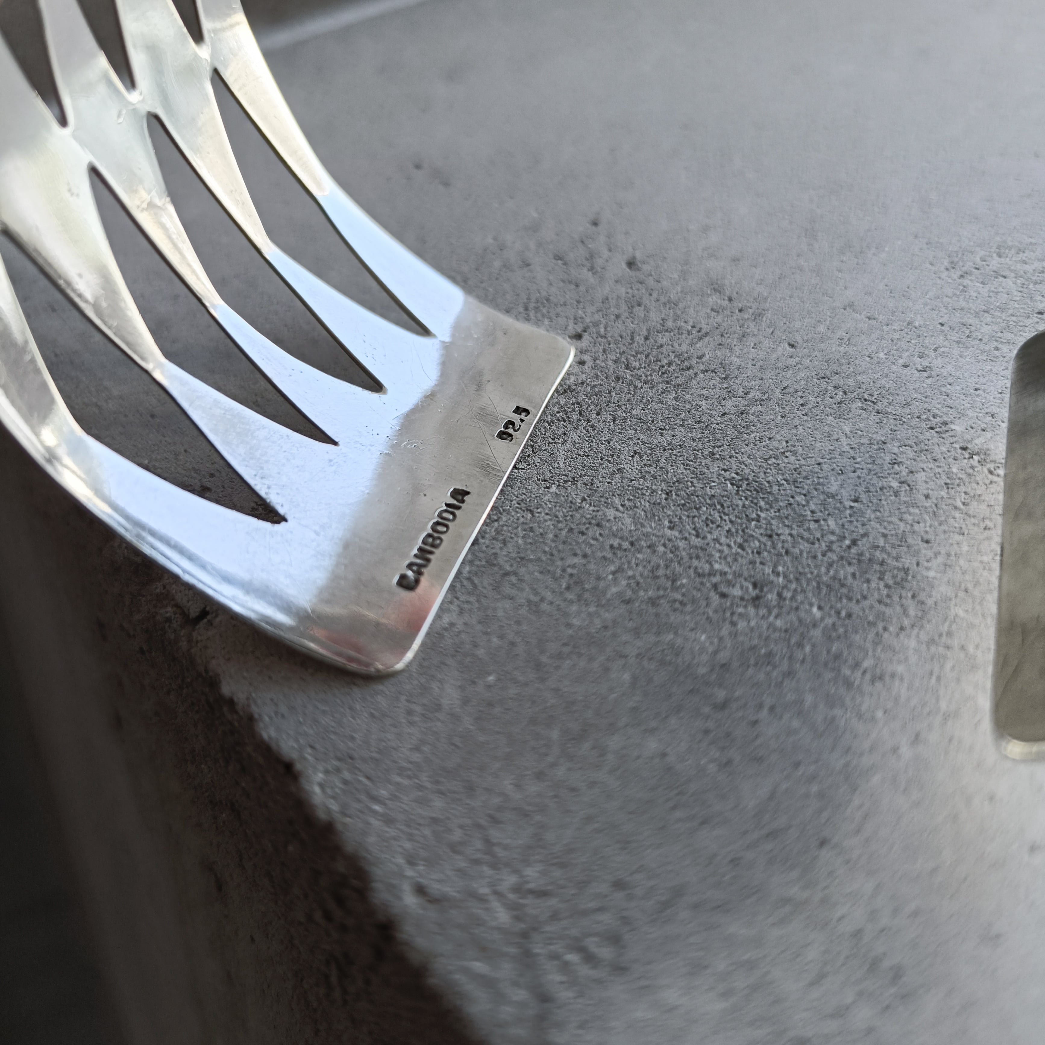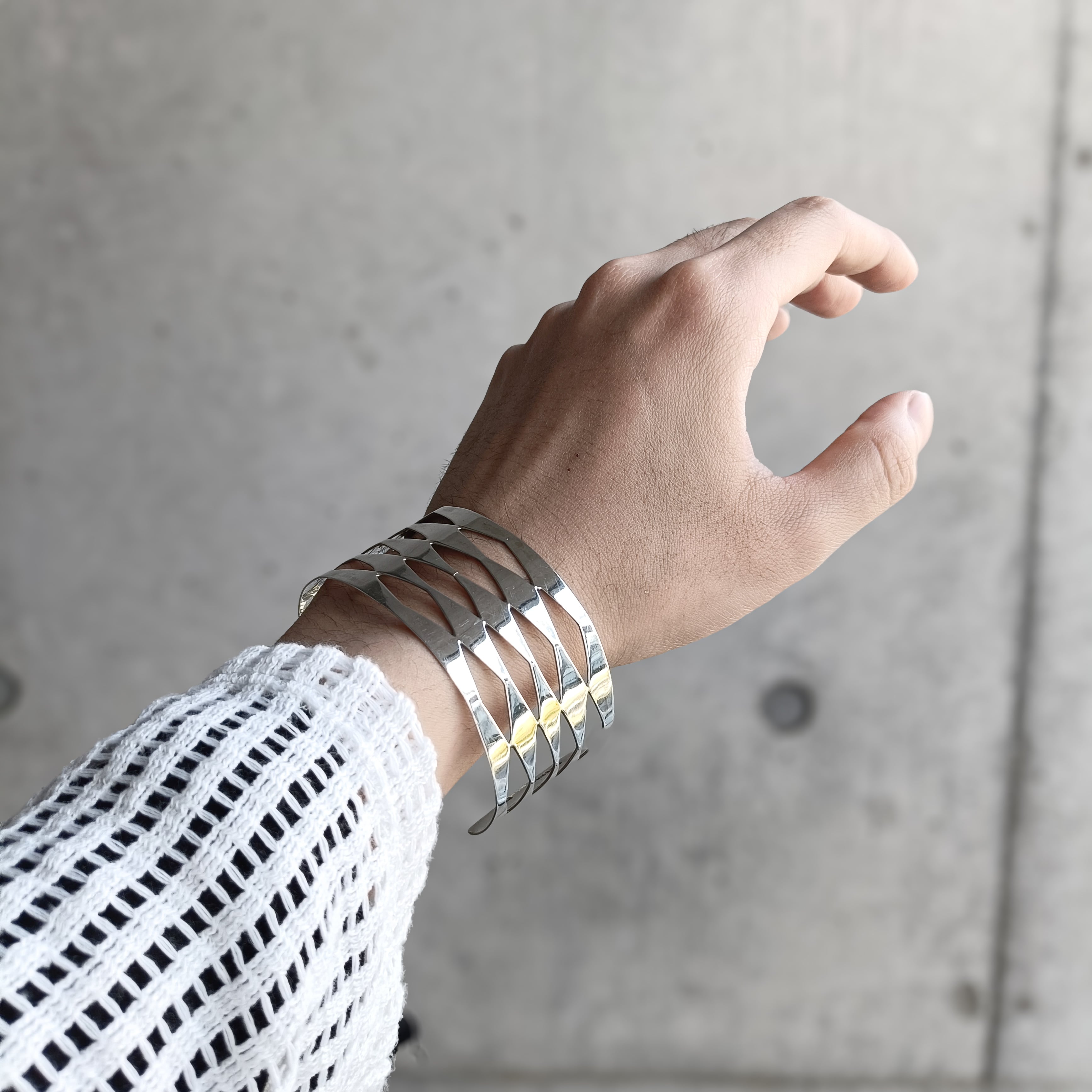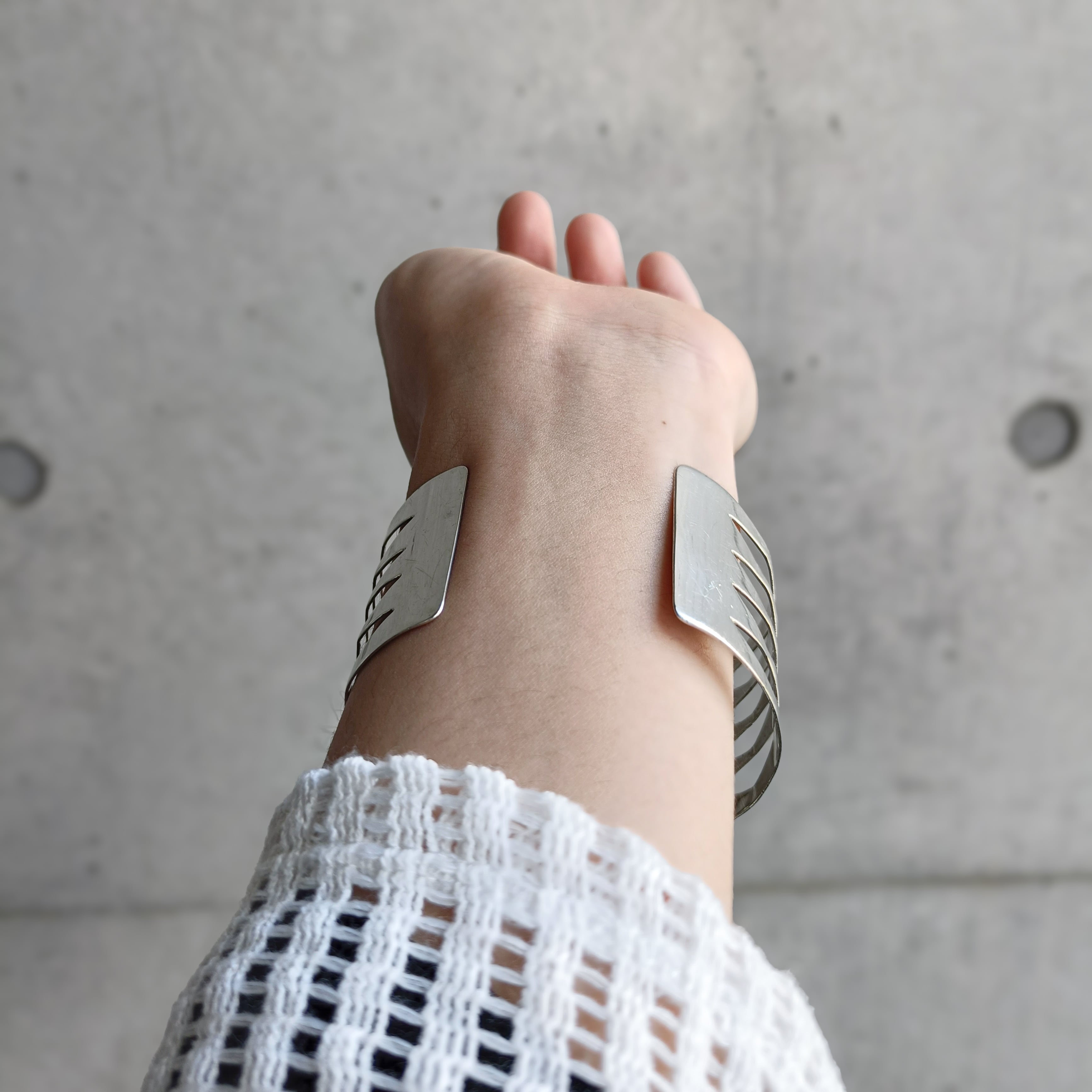 超スペシャル。フランスよりシルバー925のバングルの入荷。ダイヤパターンの幾何学模様が特徴的なデザイン。恐らくカンボジアで作られた物。丁度よいボリューム感で、手元に良いアクセントになってくれます。