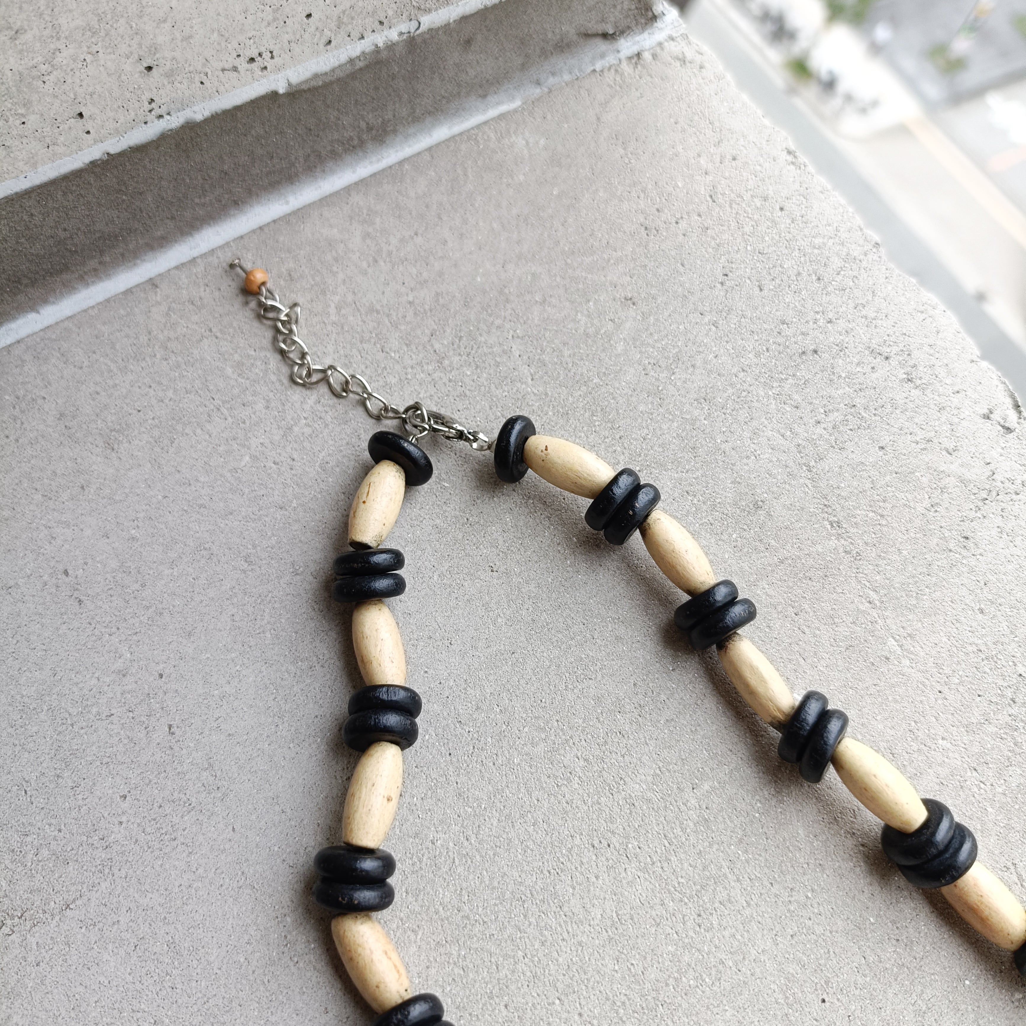 vintage wood black beads necklace