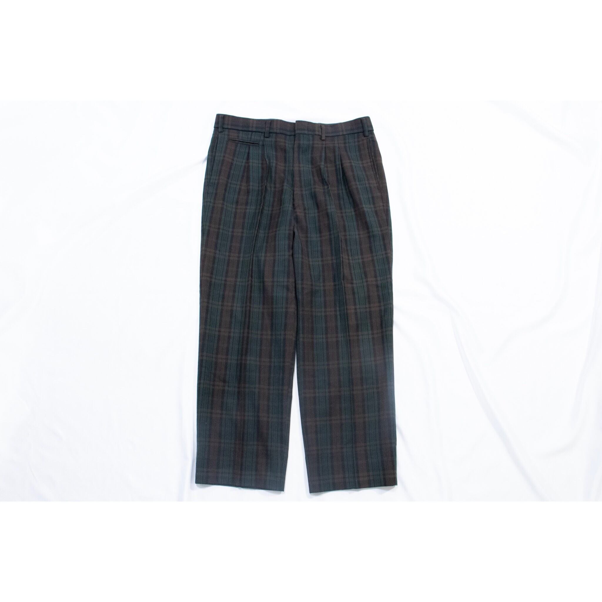 ブラウン×グリーンのチェックスラックス