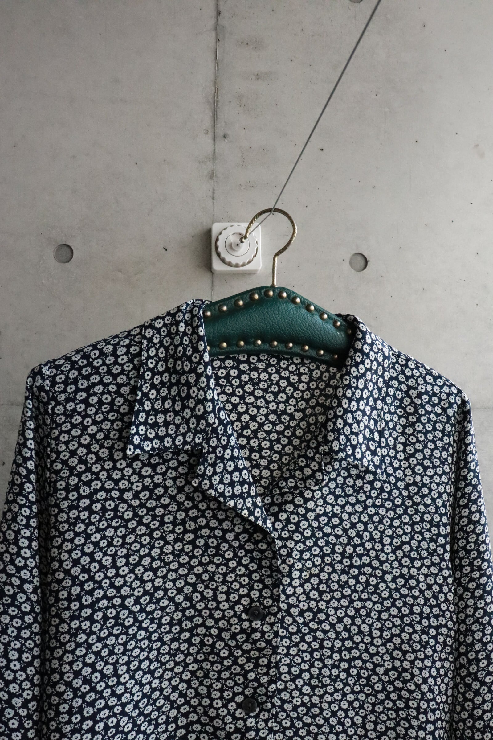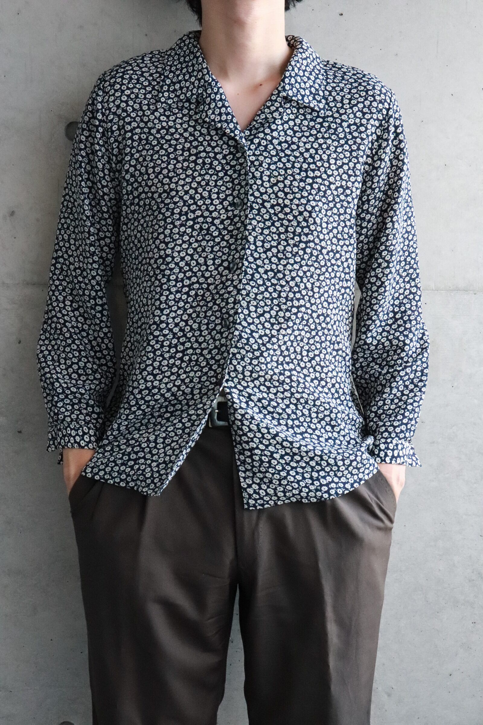 ネイビーのフラワーシャツ。小花柄で開襟パターン。ジャストで着れるサイズ感です。本日入荷のシアーシャツとも相性抜群な一着です。