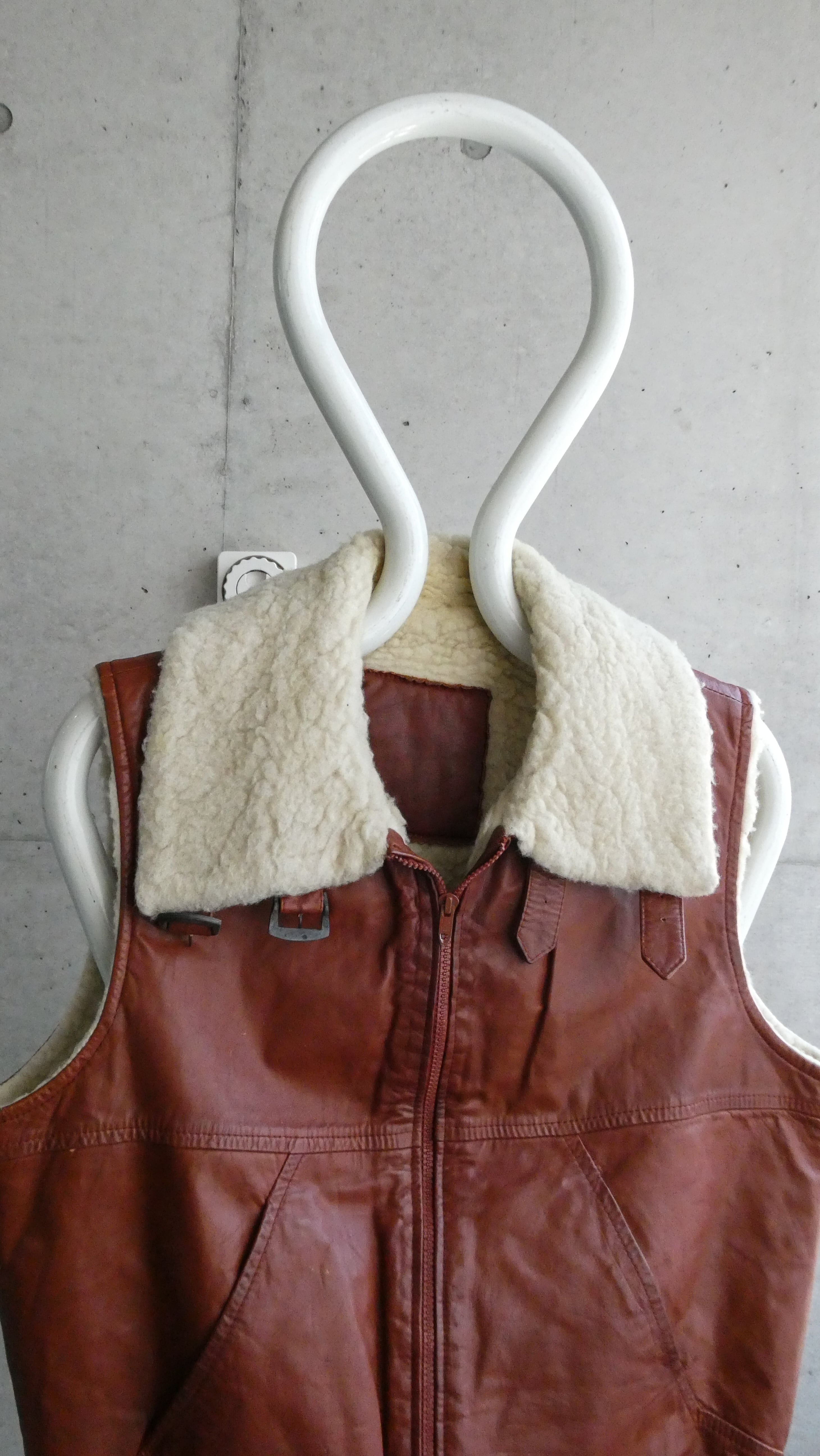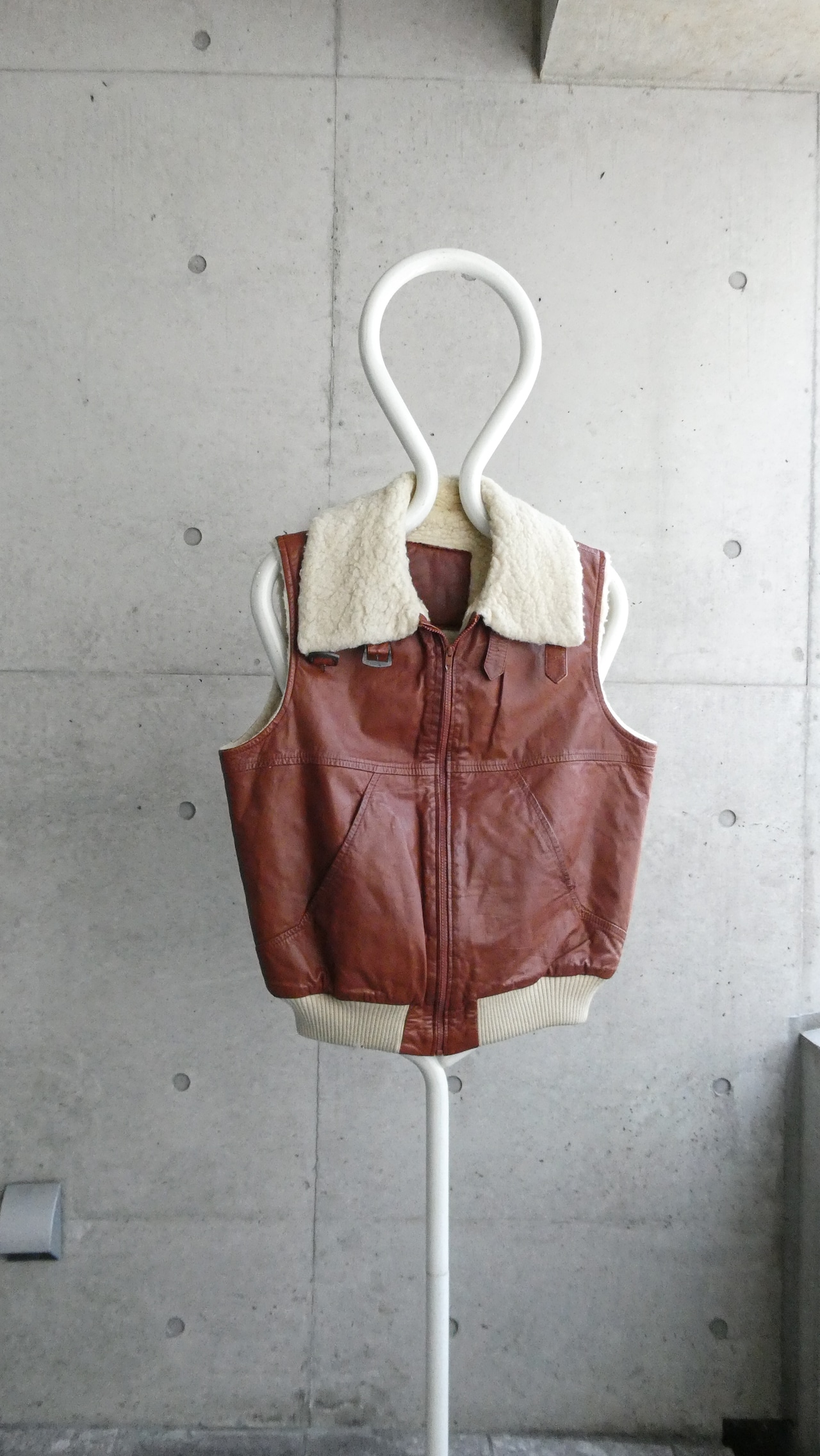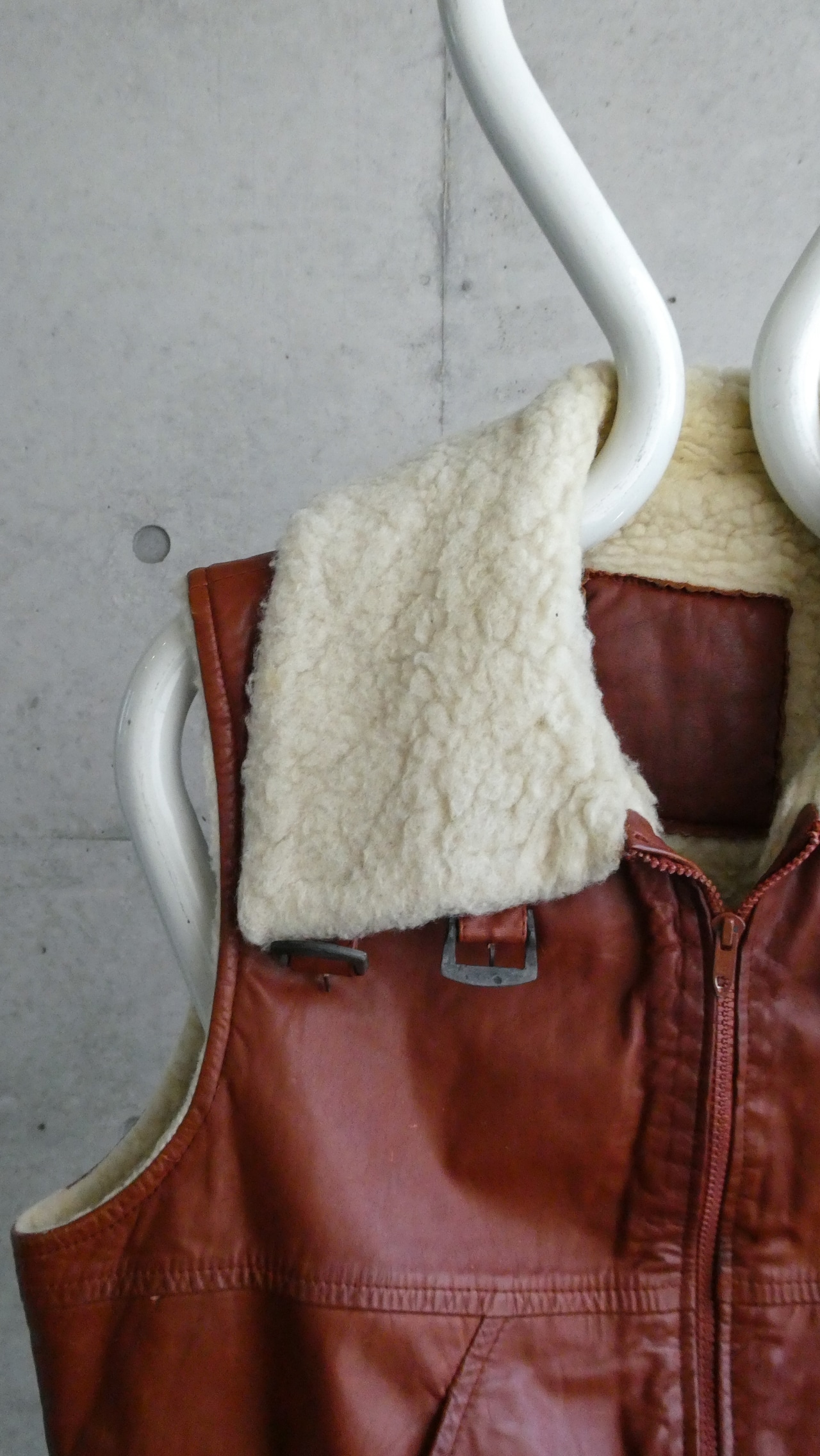 70s頃のウルグアイ製のレザーベスト。赤茶っぽい綺麗なブラウンカラー。ジップはtalon。アームホールも太いのでアウターの上からでも着れます。