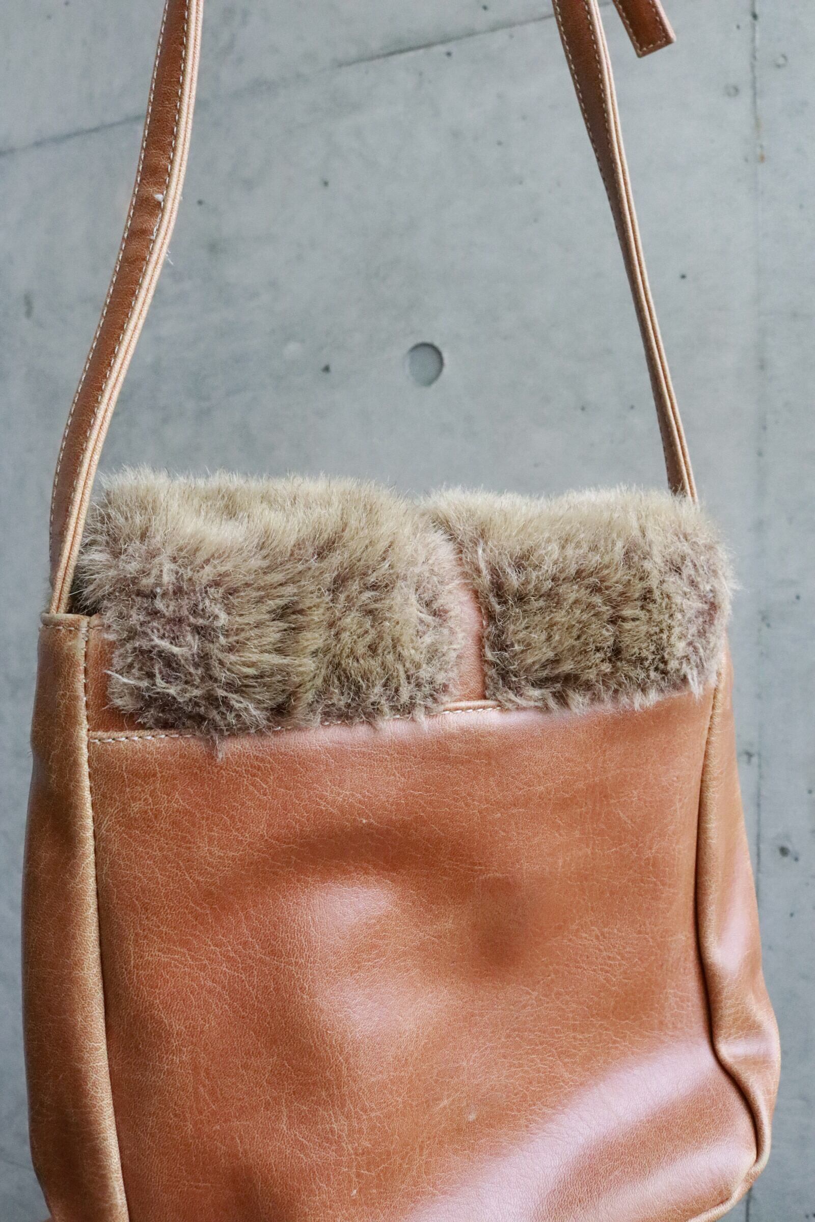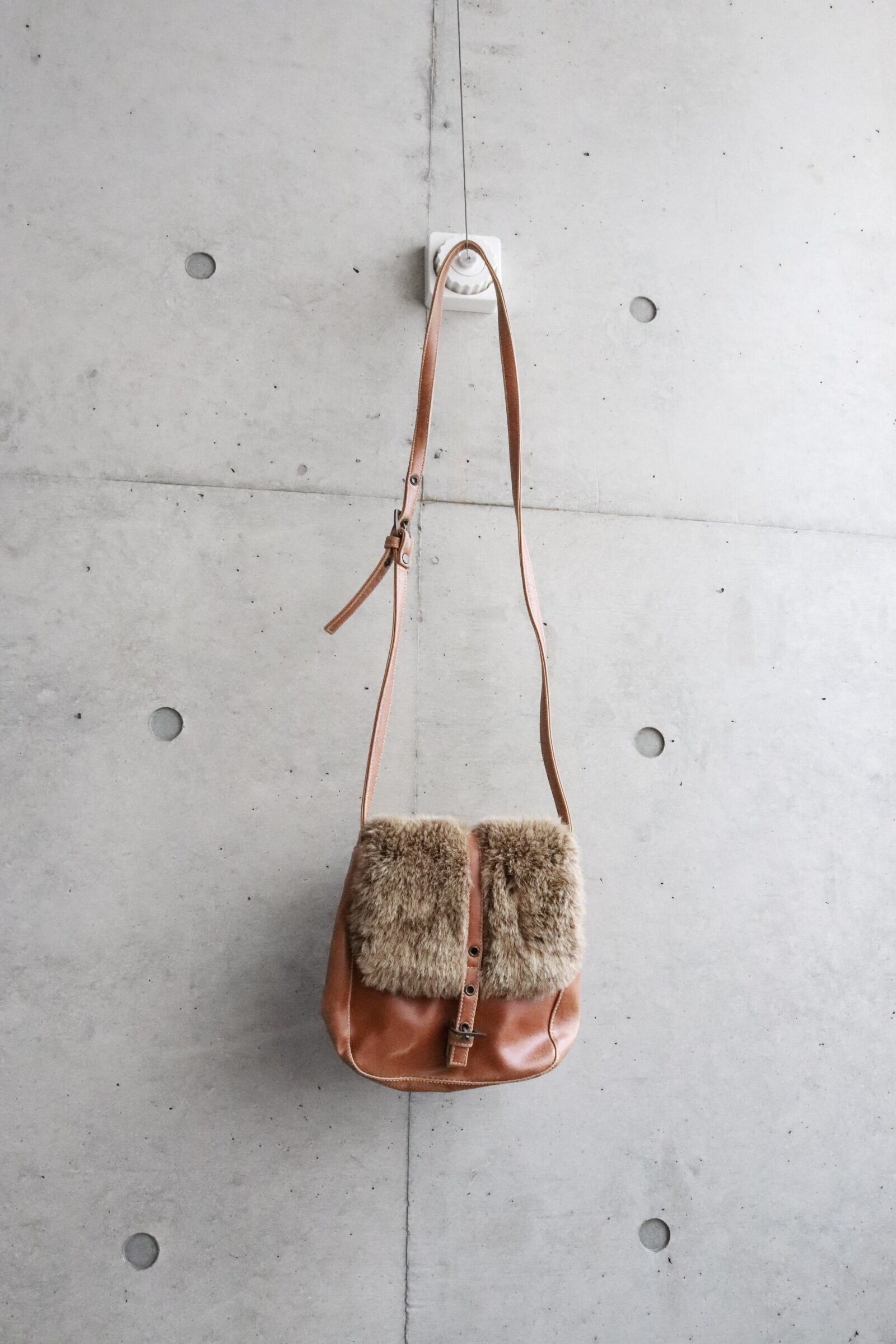 ファー切替デザインのショルダーバッグ。使い易い大きさです。ベルトデザインでマグネットタブで簡単に開閉可能です。背負うだけでスタイリングに雰囲気出るアイテムです。