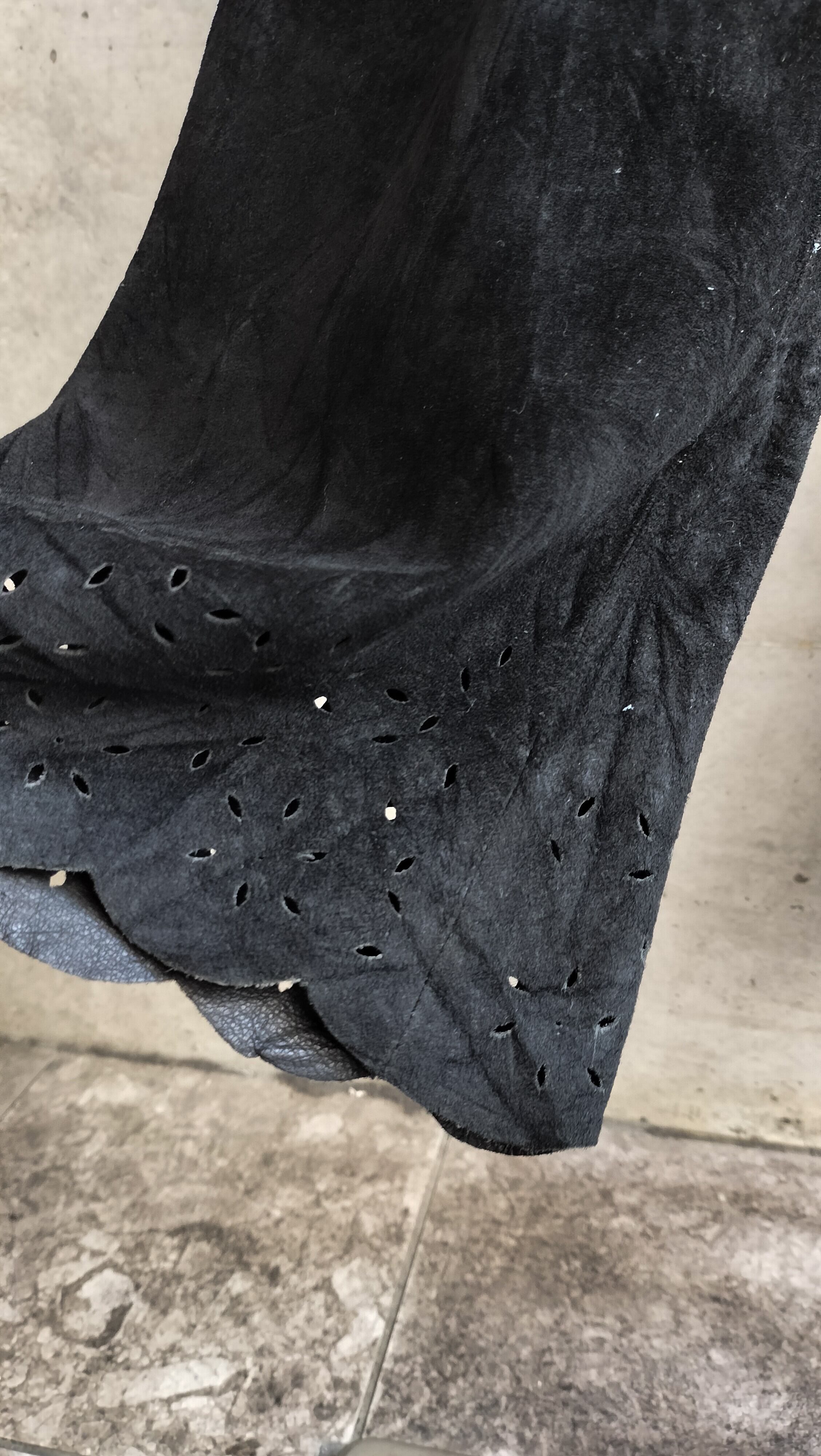 vintage black suede leather sheer flare pants