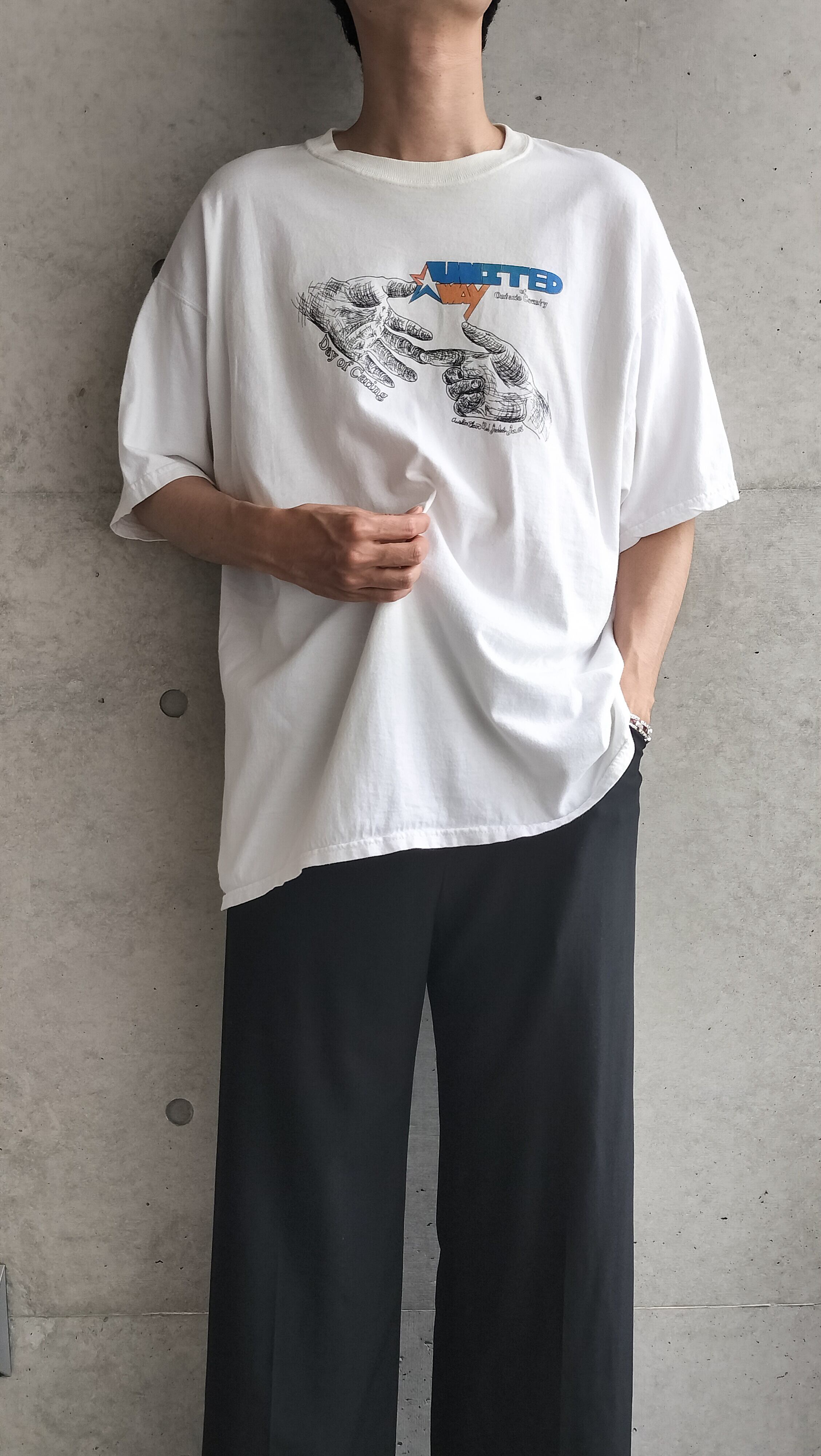スペシャル。手の彫刻スケッチデザインのTシャツ。シンプルにツラがいいです。緩く着れるサイズ感。フルーツタグです。インナーとしてもいい存在感出してくれる一着です。