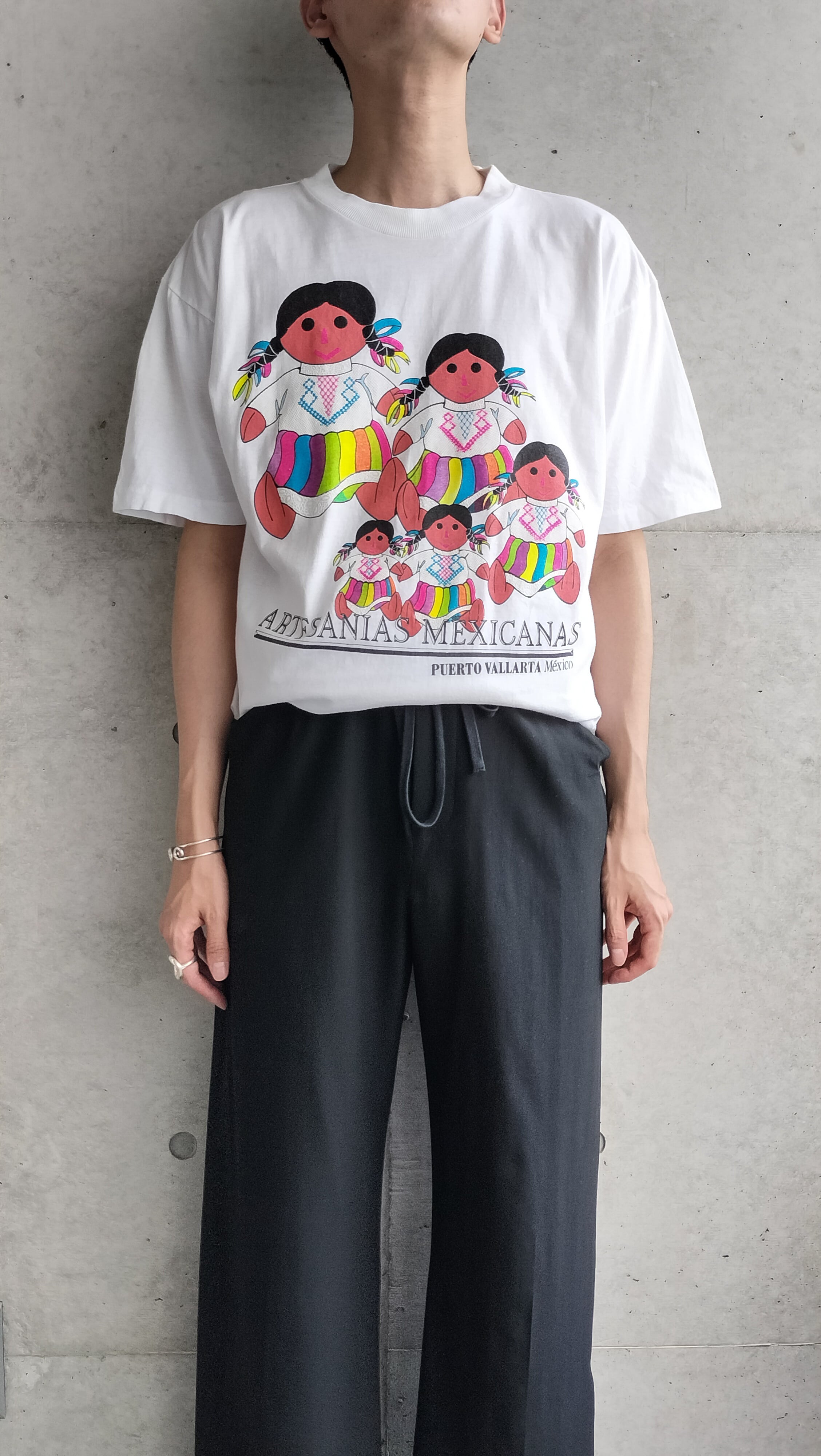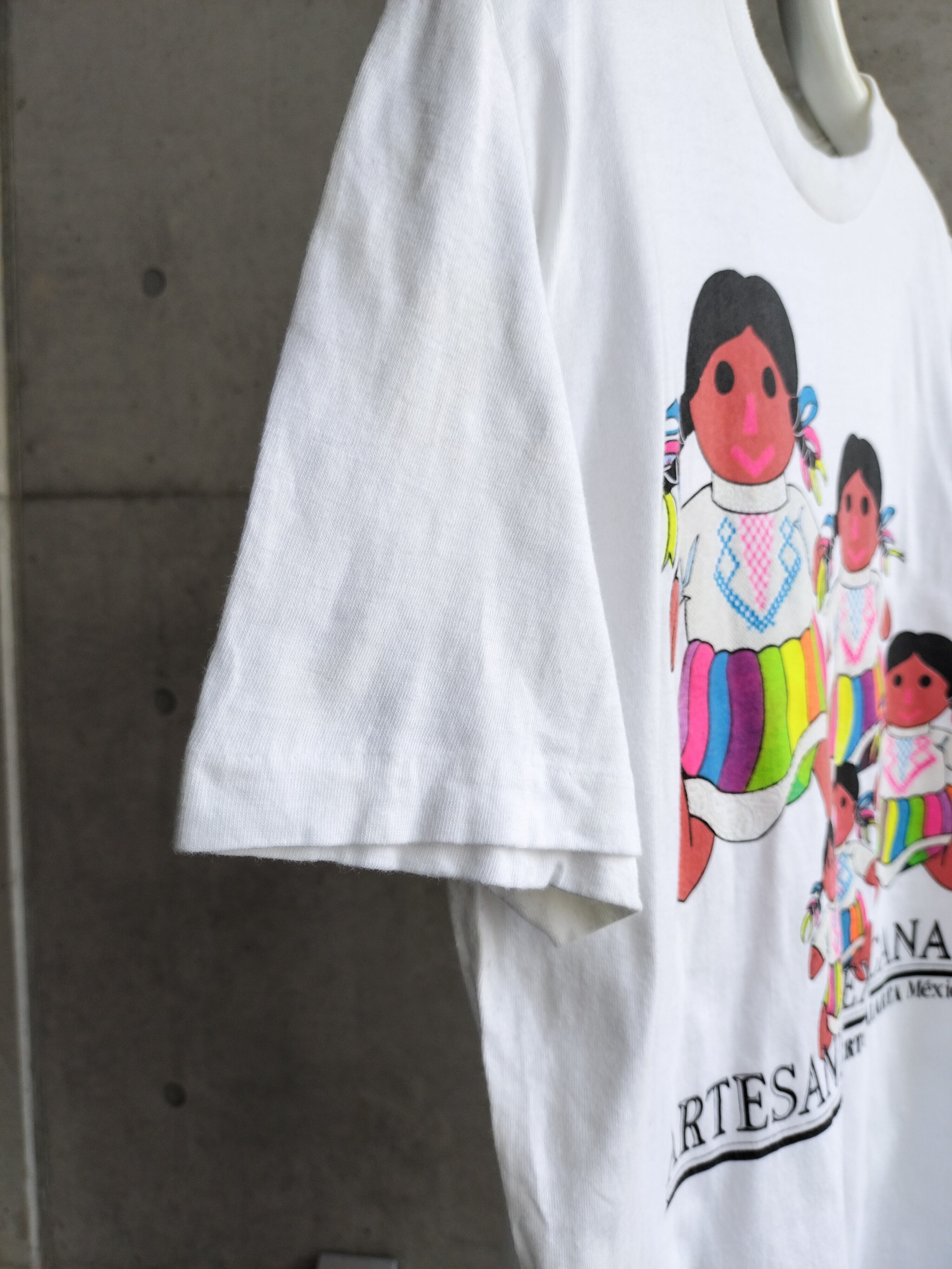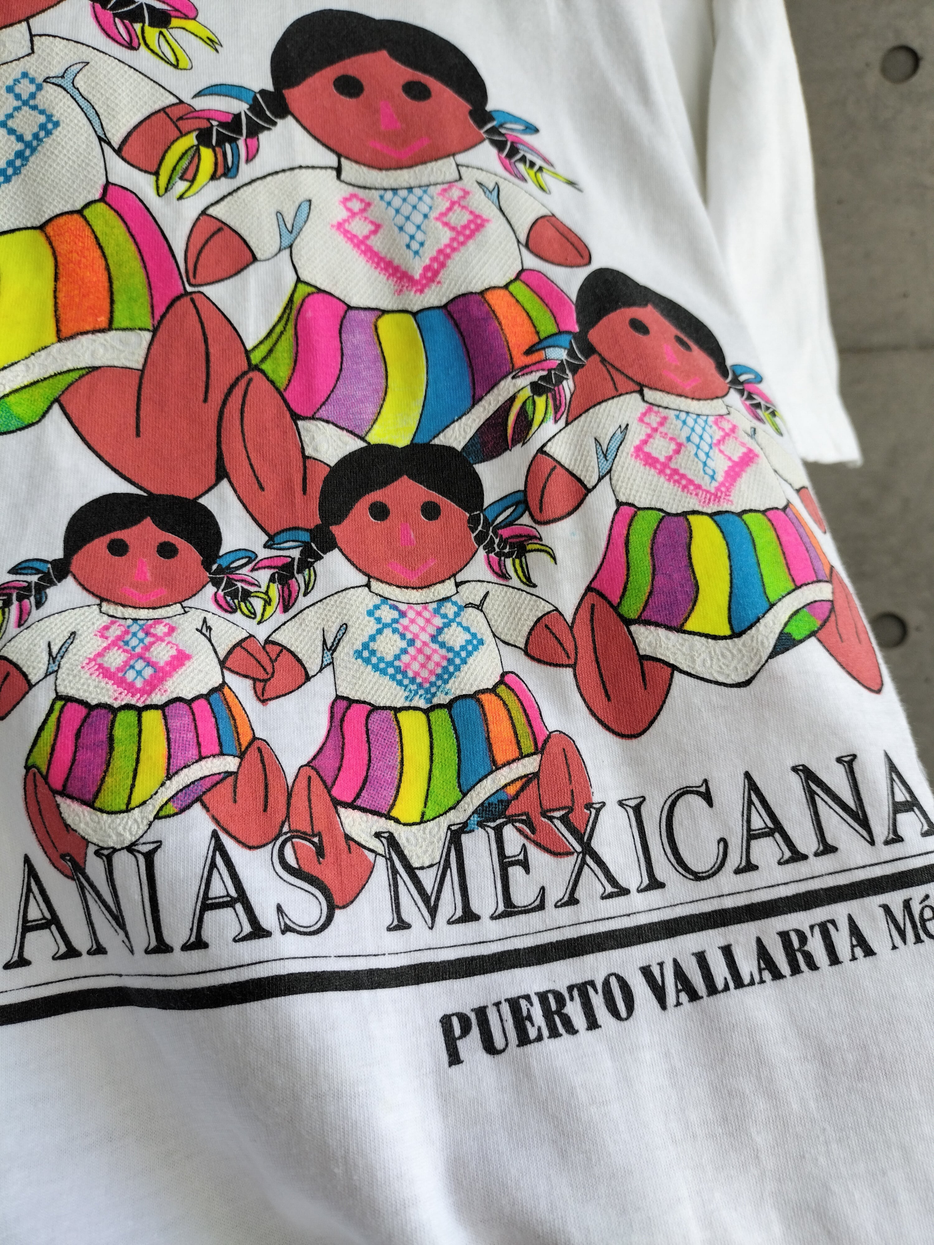 メキシコの民族T。ポップなアニメーションキャラ。衣装部分が立体的な印刷。拘って作られてます。シングルステッチ。