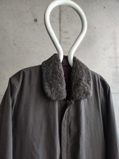 チャコール色のピーチスキンブルゾン。ピーチスキンのブルゾンは珍しいですが、ボア襟なのも希少です。ボア襟は取り外し可能です。シンプルに癖のないブルゾンです。